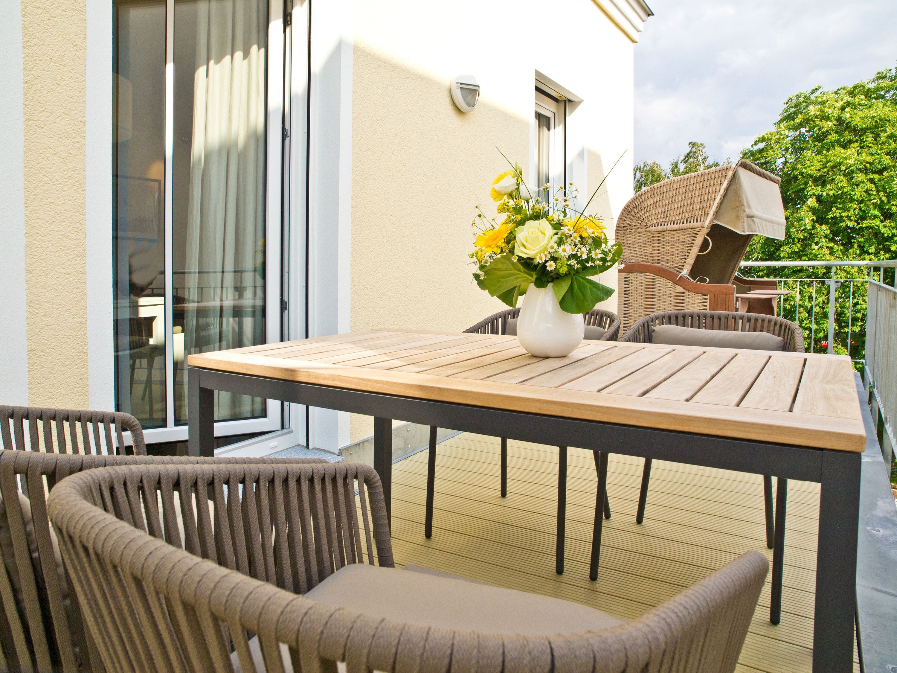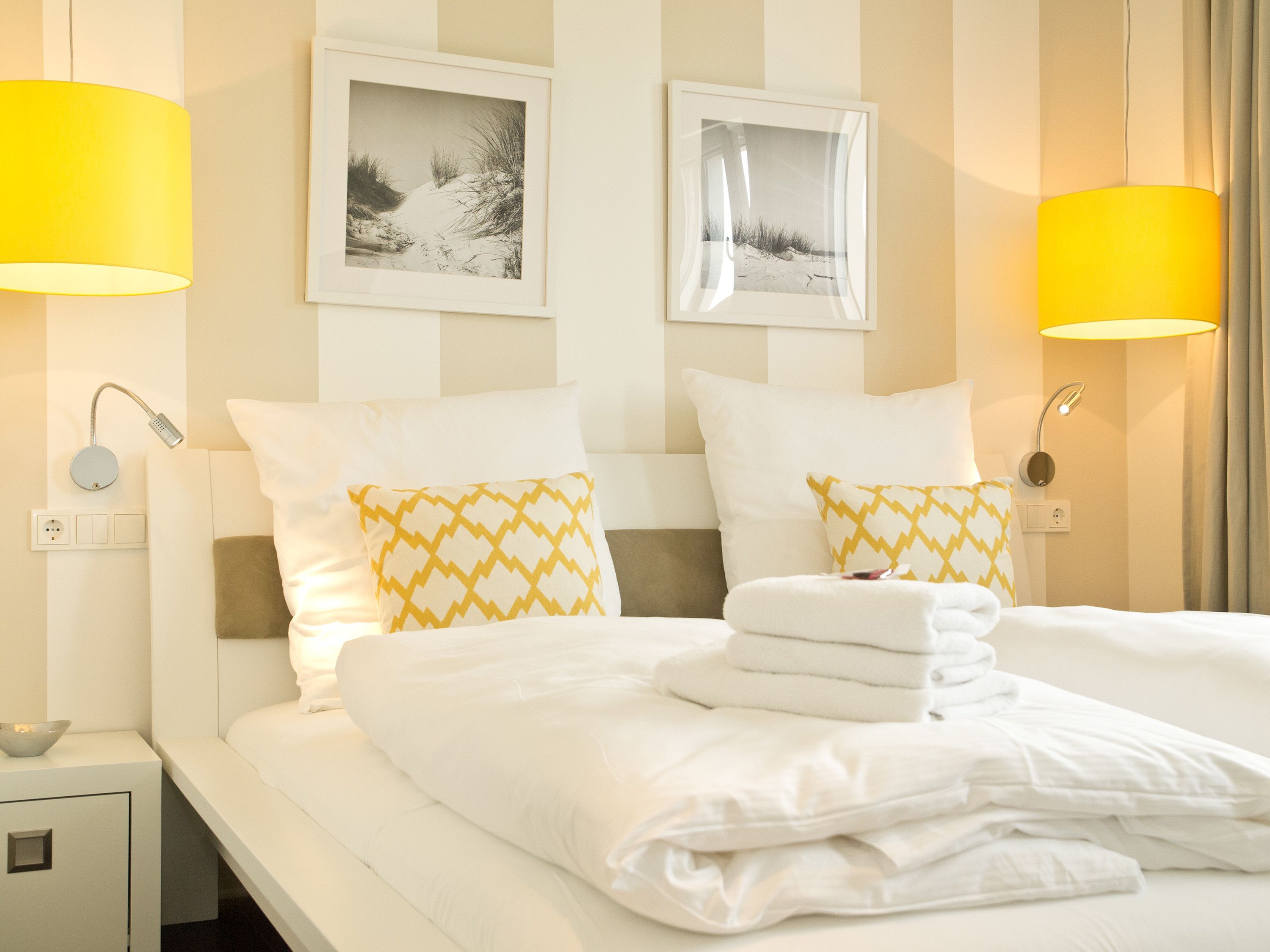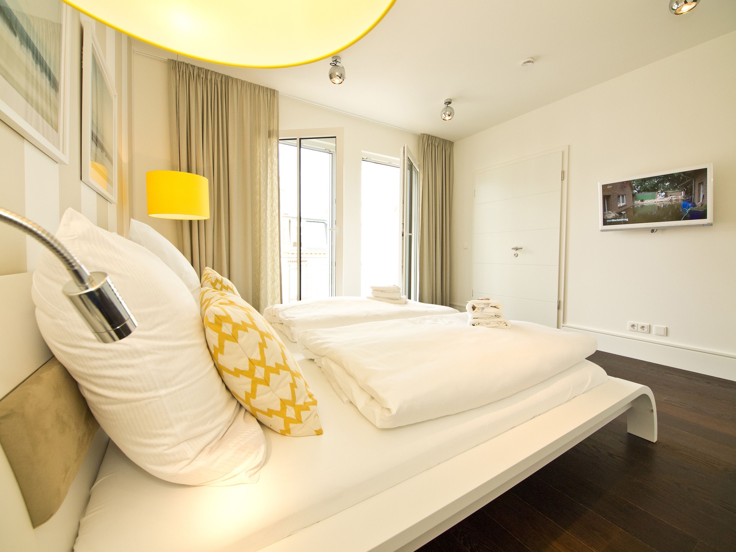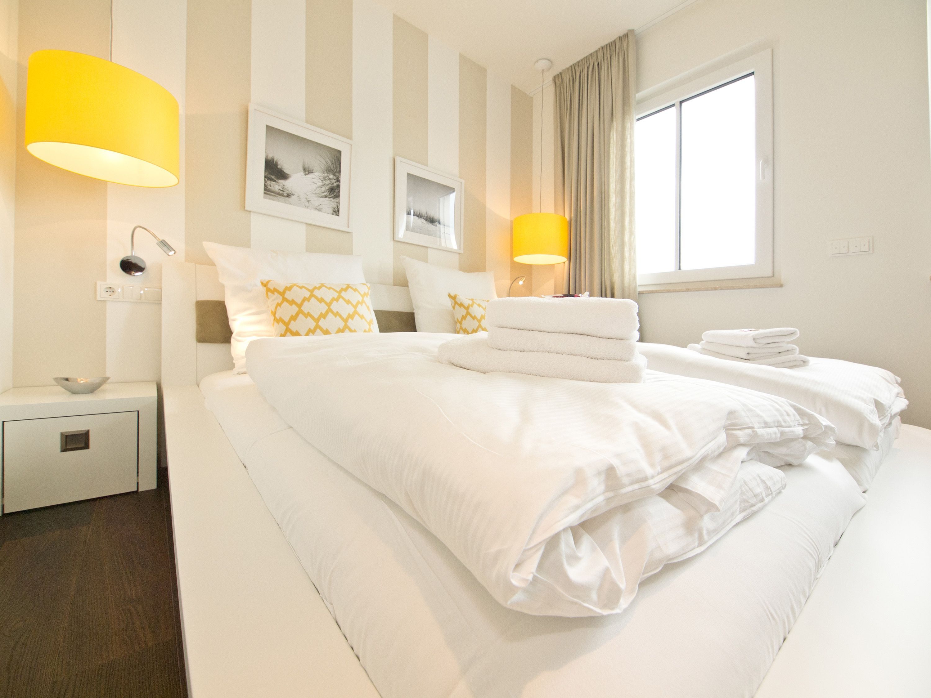 Im 2. Obergeschoss des Dünenpalais trifft modernes Design exklusive Ausstattung! Auf 100 qm wurden hochwertige Einbauten, ein edler dunkler Dielenboden und geschmackvolle Dekorationen von versierter Innenarchitektenhand zusammengestellt und schaffen so eine stylische Wohlfühlatmosphäre für bis zu 4 Personen und 1 Kleinkind (bis 3 Jahre im Kinderreisebett). Der großzügige Wohnbereich mit bequemer Sitzgruppe und Flat-TV schließt sich an die offene Küche mit Essplatz an. Ein besonderes Highlight ist der Gaskamin, der per Fernbedienung ein tolles Ambiente zaubert. Der Masterbedroom (mit Doppelbett 1,80m und Flat-TV) mit Balkon (Nordseite) verfügt über ein eigenes Ankleidezimmer, an das sich das große Bad mit Echtglasdusche & WC anschließt. Hier wurde ebenfalls die wohnungseigene Sauna (gegen Gebühr 1,00 pro Stunde) integriert, nicht nur in der kalten Jahreszeit ein Ort zum Relaxen. Das zweite Schlafzimmer ist ebenfalls mit Doppelbett und eigenem Flat-TV ausgestattet, ihm gegenüber liegt das zweite Duschbad. Im Abstellraum kann eine Waschmaschine ( gegen Gebühr) genutzt werden. Ein sonniger Südbalkon mit Strandkorb und Gartenmöbeln rundet das Appartement ab. Für Ihren Komfort steht die Erstausstattung Wäsche für Sie bereit. Auf Wunsch stellen wir ein Kinderreisebett (ohne Matratze & Bettzeug) und einen Kinderhochstuhl gegen einen Aufpreis zur Verfügung. Ein PKW-Stellplatz steht Ihnen in der Tiefgarage zur Verfügung.