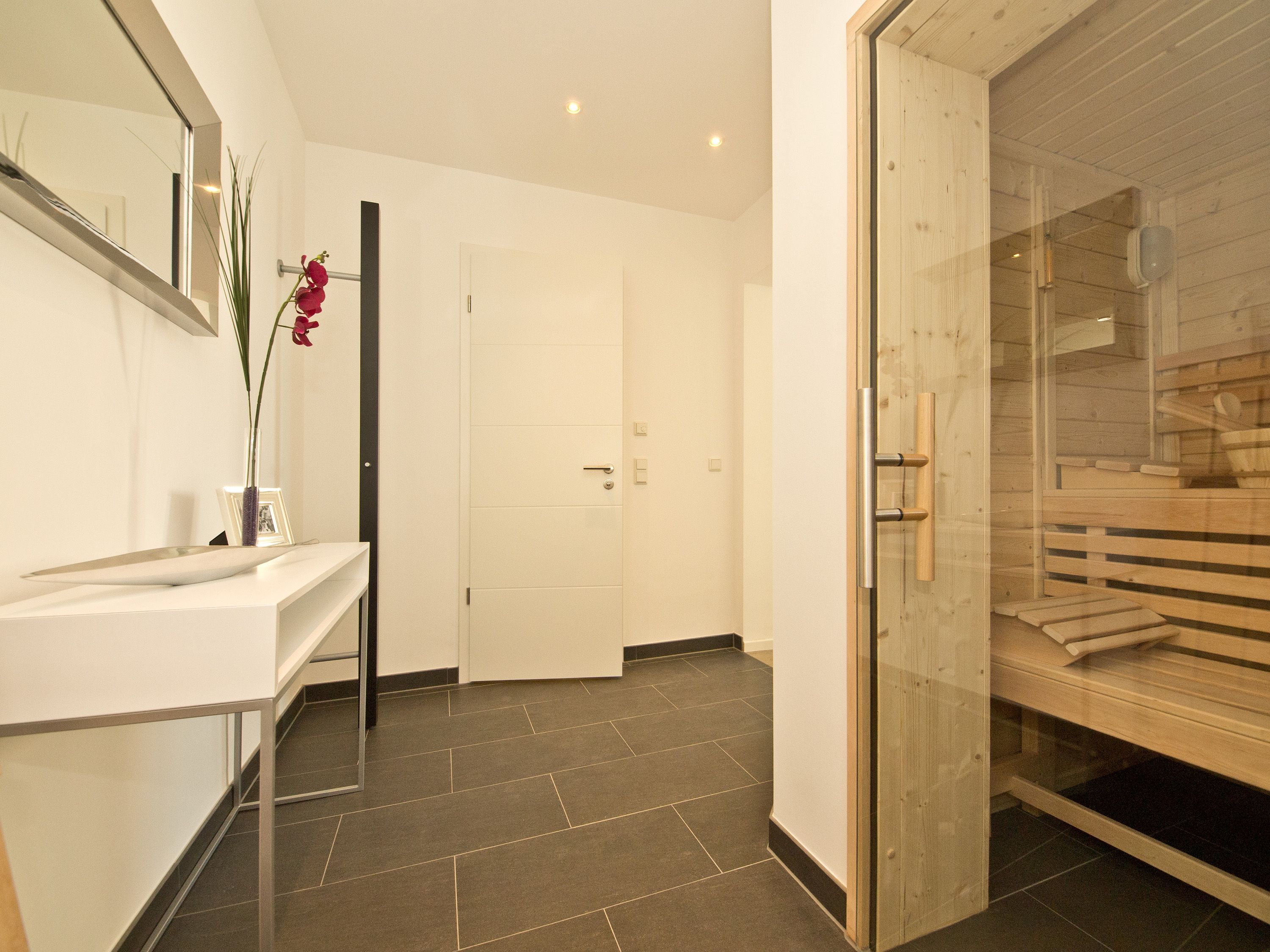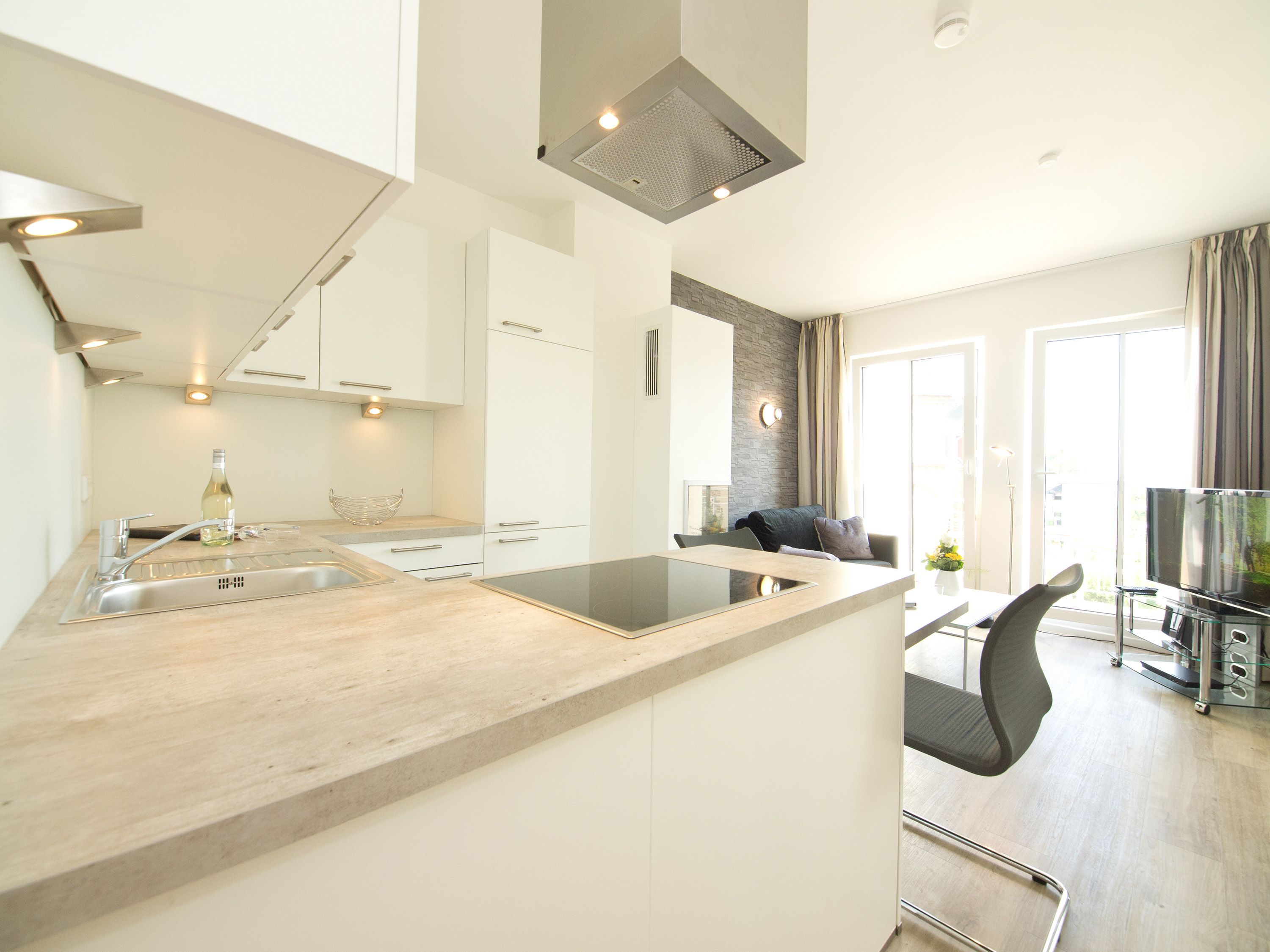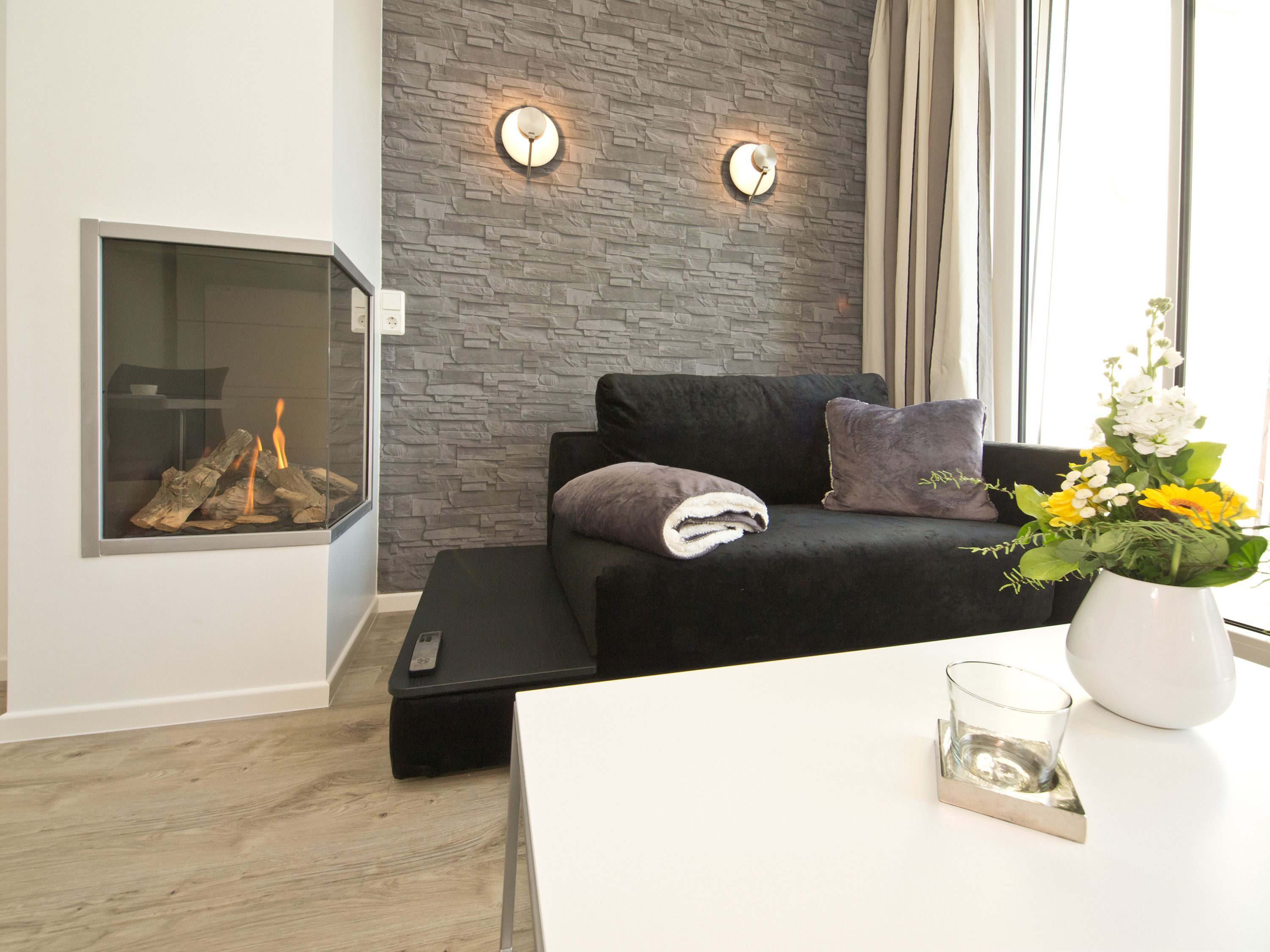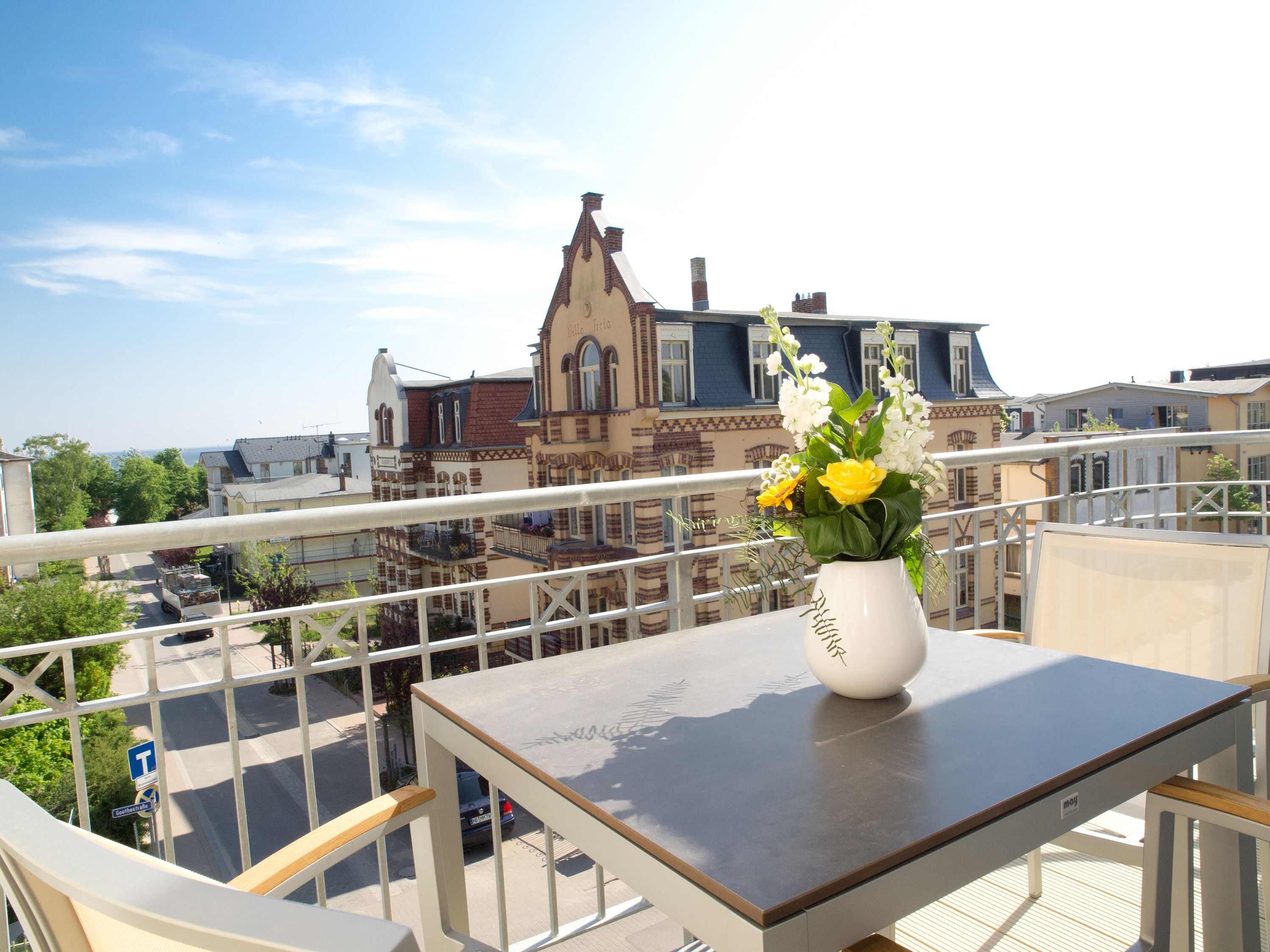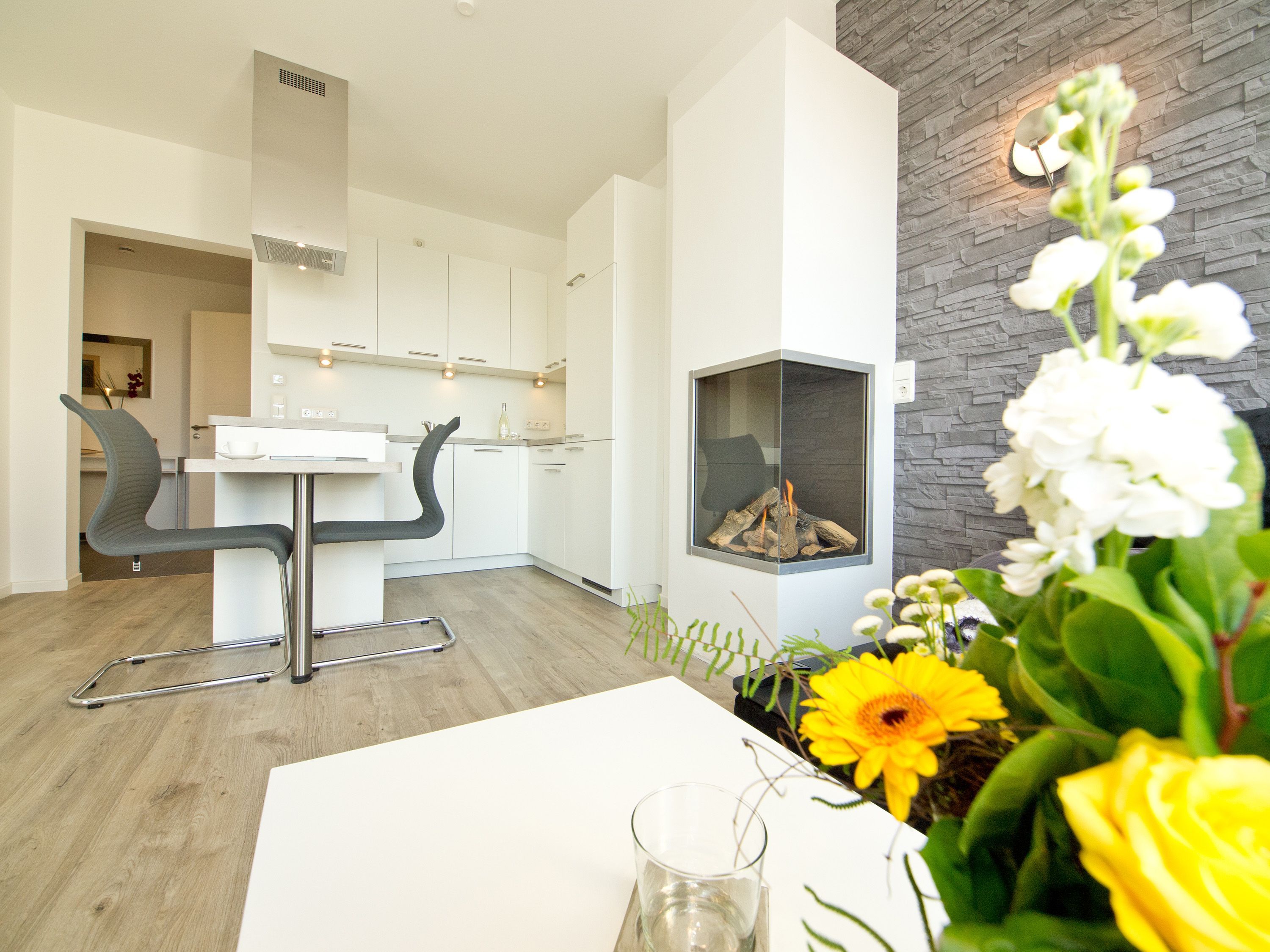 Im 2. Obergeschoss des Vorderhauses empfängt Sie die Ferienwohnung 16. Modern, exklusiv, stylisch, aber dennoch gemütlich mit Kuschelsofa und Gaskamin, der per Fernbedienung ganz einfach zu benutzen ist. Das 2-Raum-Appartement ist für 2 Personen und ein Kleinkind (bis 3 Jahre im Kinderreisebett) eingerichtet. Der Wohnbereich mit Flat-TV wird durch die offene, komplett ausgestattete Küche ergänzt. Der Schlafbereich mit bequemem Doppelbett ist durch eine Schiebetür getrennt. Von hier hat man (wie auch aus dem Wohnbereich) Zugang auf den schönen Balkon, der zur Meerseite ausgerichtet ist. Über die Bäume an der Promenade und die Goethestraße hinweg, kann man sogar die Ostsee sehen. Ein besonderes Highlight ist die wohnungseigene Sauna, die gegen eine Gebühr von 2,00 EUR / Stunde zu nutzen ist. Gleich daneben liegt das Bad mit Echtglasdusche und WC. Auf Wunsch stellen wir für unsere kleinen Gäste ein Kinderreisebett (ohne zusätzliche Matratze & Bettzeug) und einen Kinderhochstuhl ( gegen einen Aufpreis) zur Verfügung. Für Ihren Komfort sind die Betten bei der Anreise bezogen und Handtücher liegen bereit. Ein PKW-Stellplatz steht in der Tiefgarage am Haus zur Verfügung.