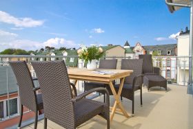 Ein moderner Bau im klassischen Stil ist jüngst mit dem Dünenpalais im Seebad Ahlbeck entstanden. Hier vereint sich modernster Wohnkomfort mit exponierter Seebadlage. Die zwei Neubauvillen sind verbunden durch Laubengänge und einen Aufzug, der auch in die Tiefgarage ( Einfahrthöhe 1,90 m) des Hauses führt (hier findet man auch einen Fahrradkeller). Die großzügigen 2- und 3-Raum-Appartements mit sonnigen Balkonen und Gaskaminen (teilweise auch Sauna und Meerblick) wurden wunderschön ausgestattet und bieten alle Highlights für einen besonderen Urlaub. Ein WLAN-Netz ist kostenfrei nutzbar. Außerdem steht für jede Wohnung ein Briefkasten am Haus zur Verfügung.