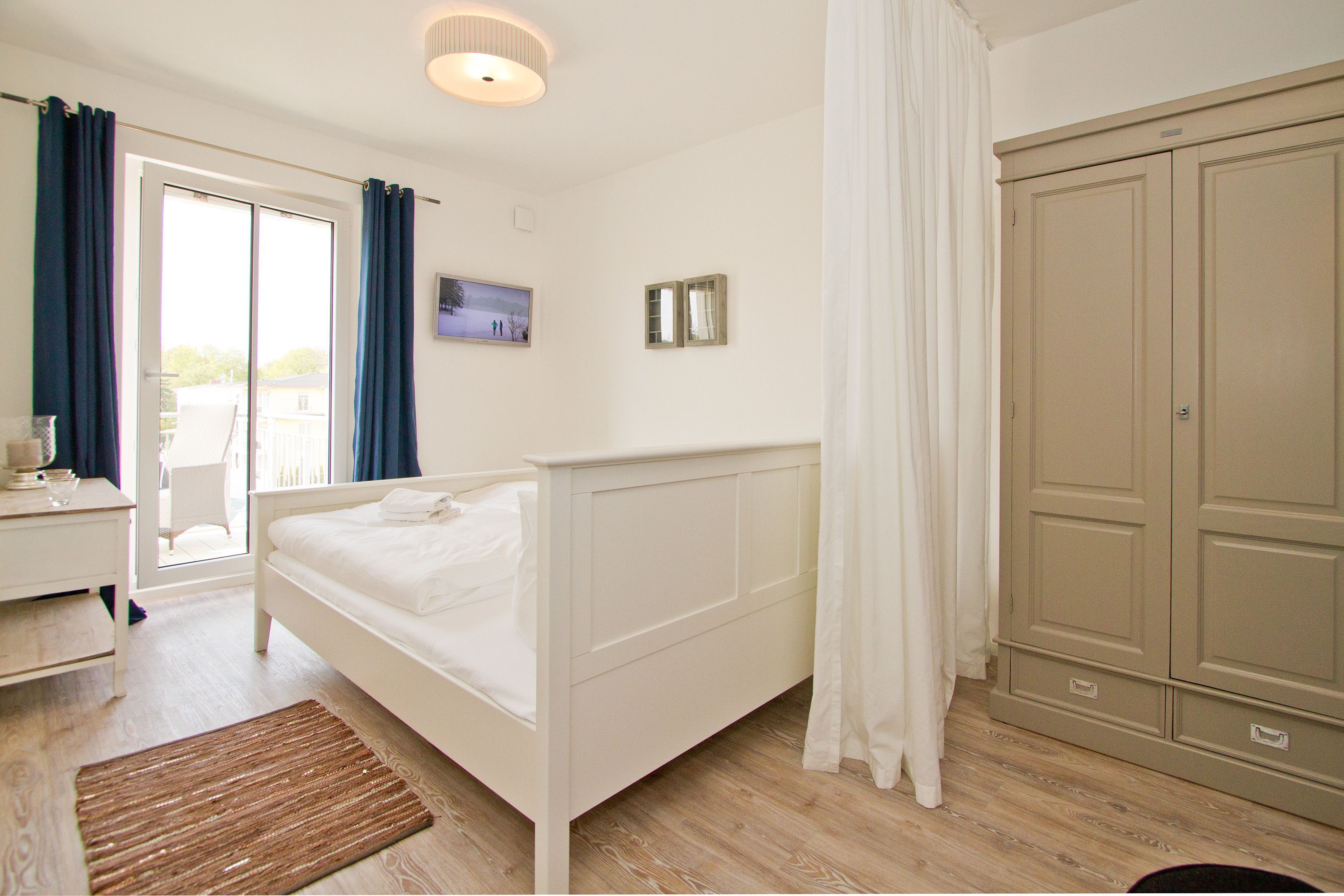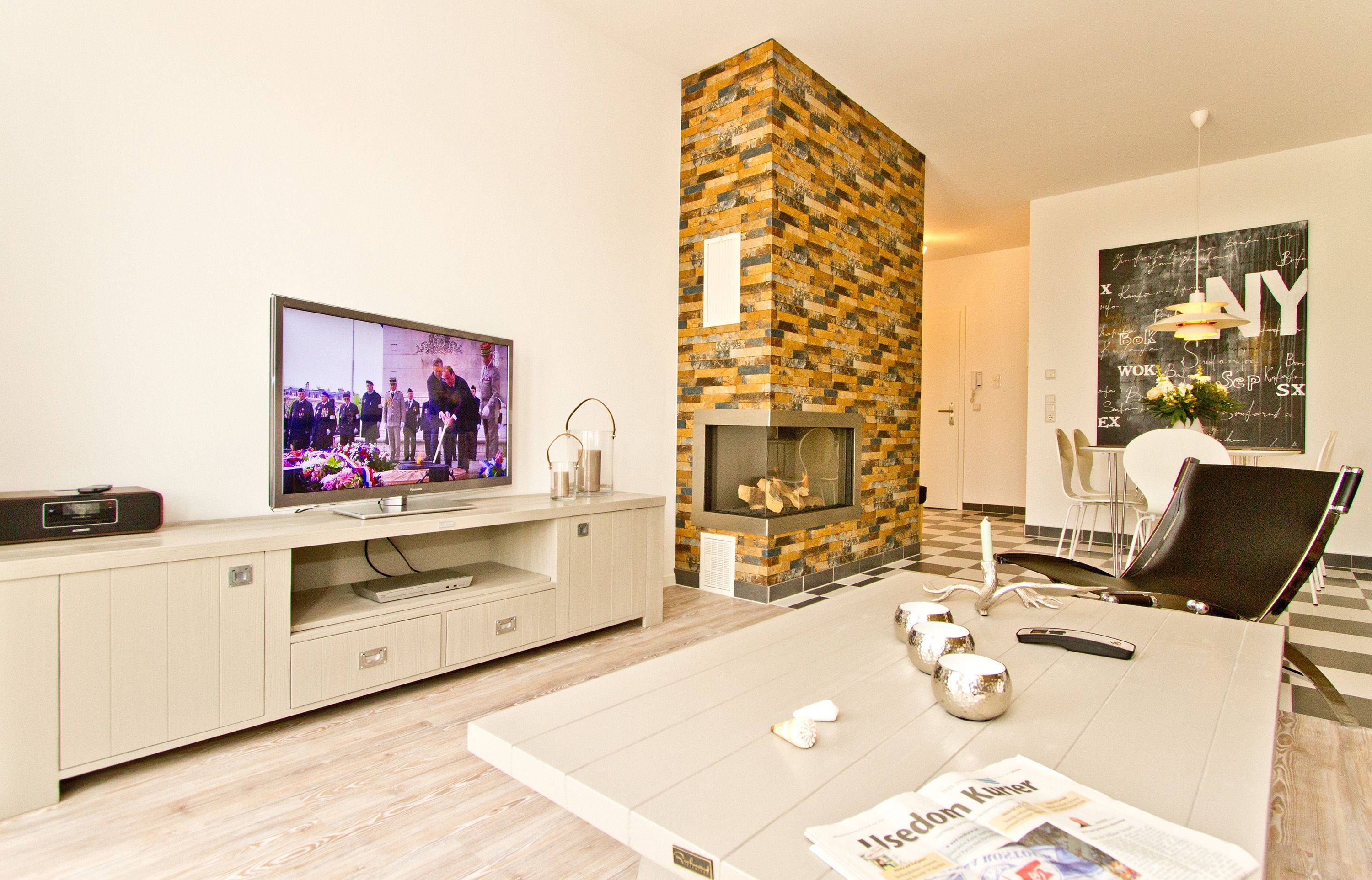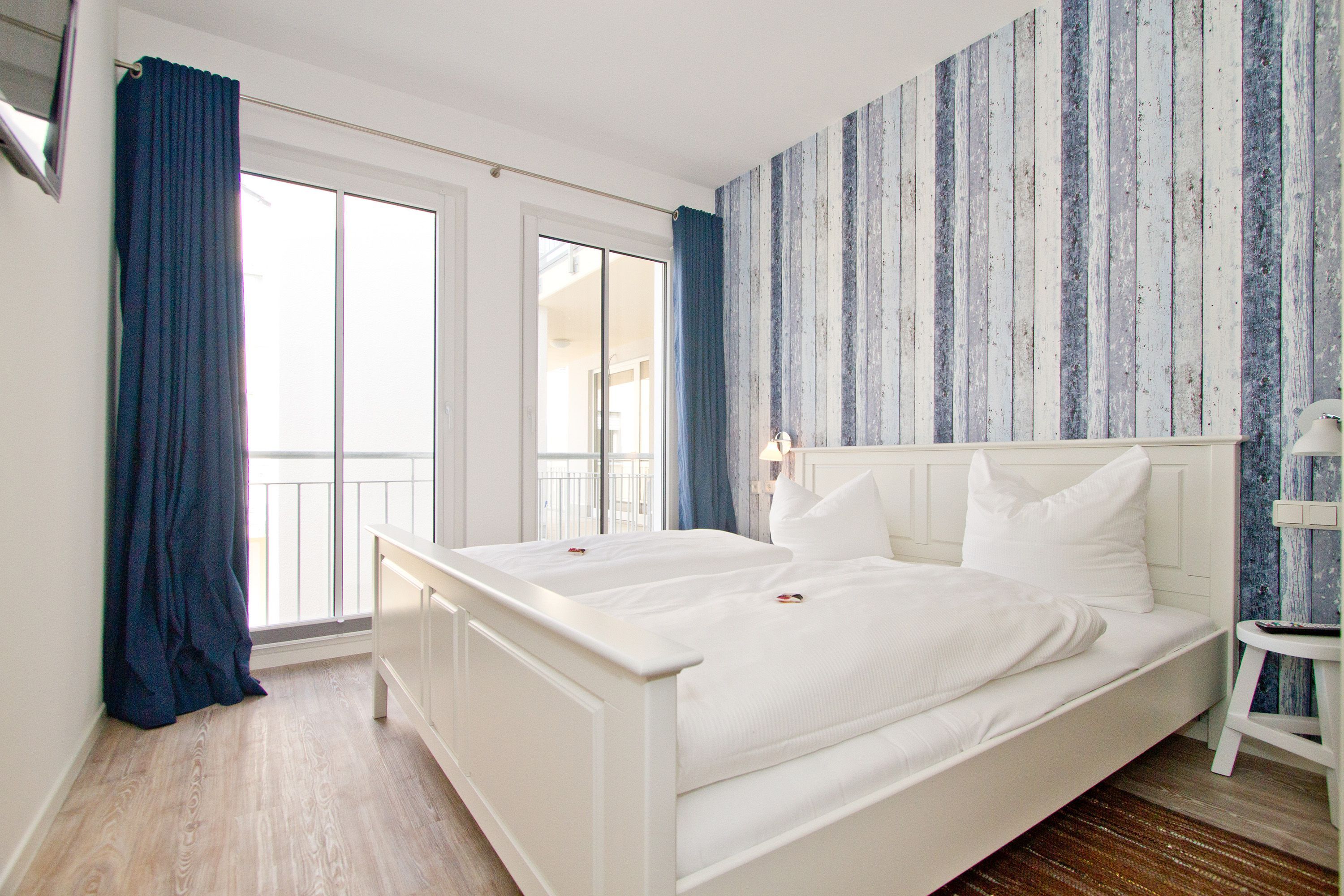 Ein bisschen extravagant, stylisch und skandinavisch gemütlich - Willkommen in der Ferienwohnung 18. Das schöne 3-Raum-Appartement im 2. Obergeschoss ist zur Westseite gelegen und bietet Platz für 4 Erwachsene und ein Kleinkind (bis 3 Jahre im Kinderreisebett). Der Wohnraum mit Sitzgruppe und Flat-TV (Blue-Ray-Player, Ipod-Dockingstation) wird durch die offene Küche mit Esstisch ergänzt. Zwei Schlafzimmer mit Doppelbetten und jeweils TV und ein Bad mit Dusche und WC komplettieren das Appartement. Der Balkon zur Westseite ist vom Wohnbereich und von einem Schlafzimmer aus zu betreten, hier genießt man die Sonne bis in den Abend hinein. Besondere zusätzliche Highlights sind der per Fernbedienung zu bedienende Gaskamin und die kleine, wohnungseigene Sauna, sicher nicht nur in der kalten Jahreszeit eine schöne Abwechslung. Auf Wunsch stellen wir ein Kinderreisebett (ohne Matratze & Bettzeug) und einen Kinderhochstuhl gegen einen Aufpreis zur Verfügung. Ein PKW- Stellplatz (Nr. 19) steht Ihnen in der Tiefgarage zur Verfügung. Das WLAN-Netz ist kostenfrei nutzbar.