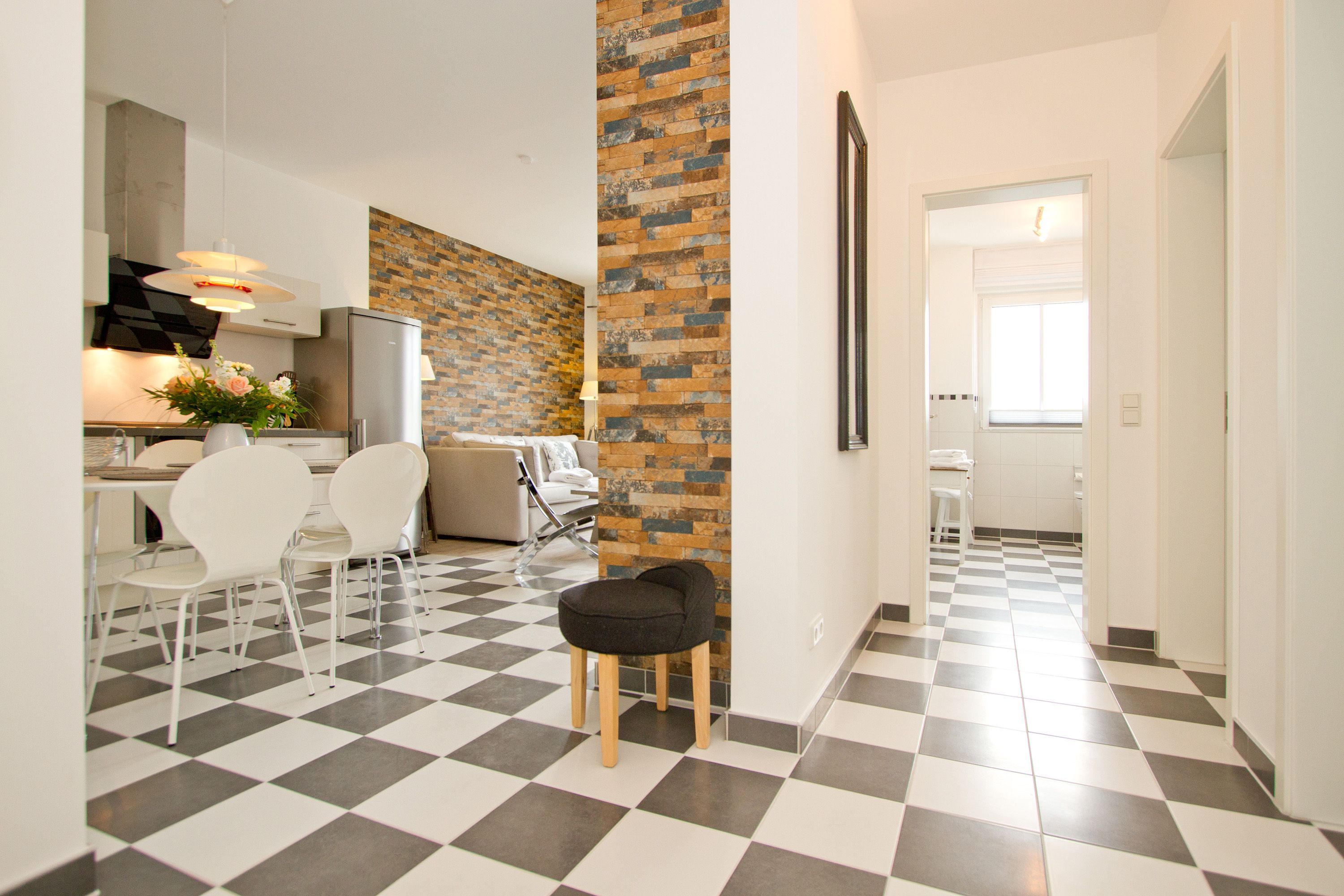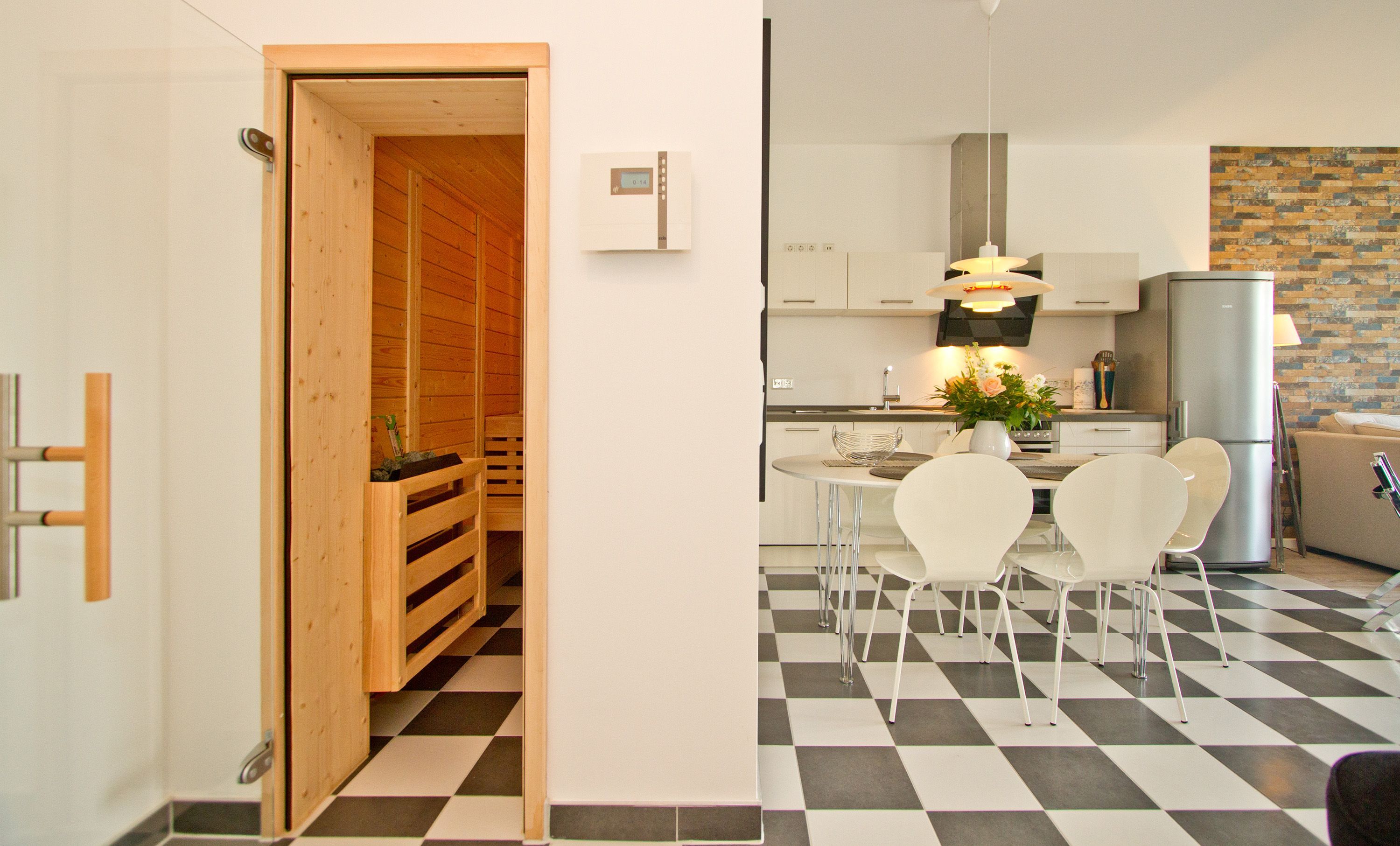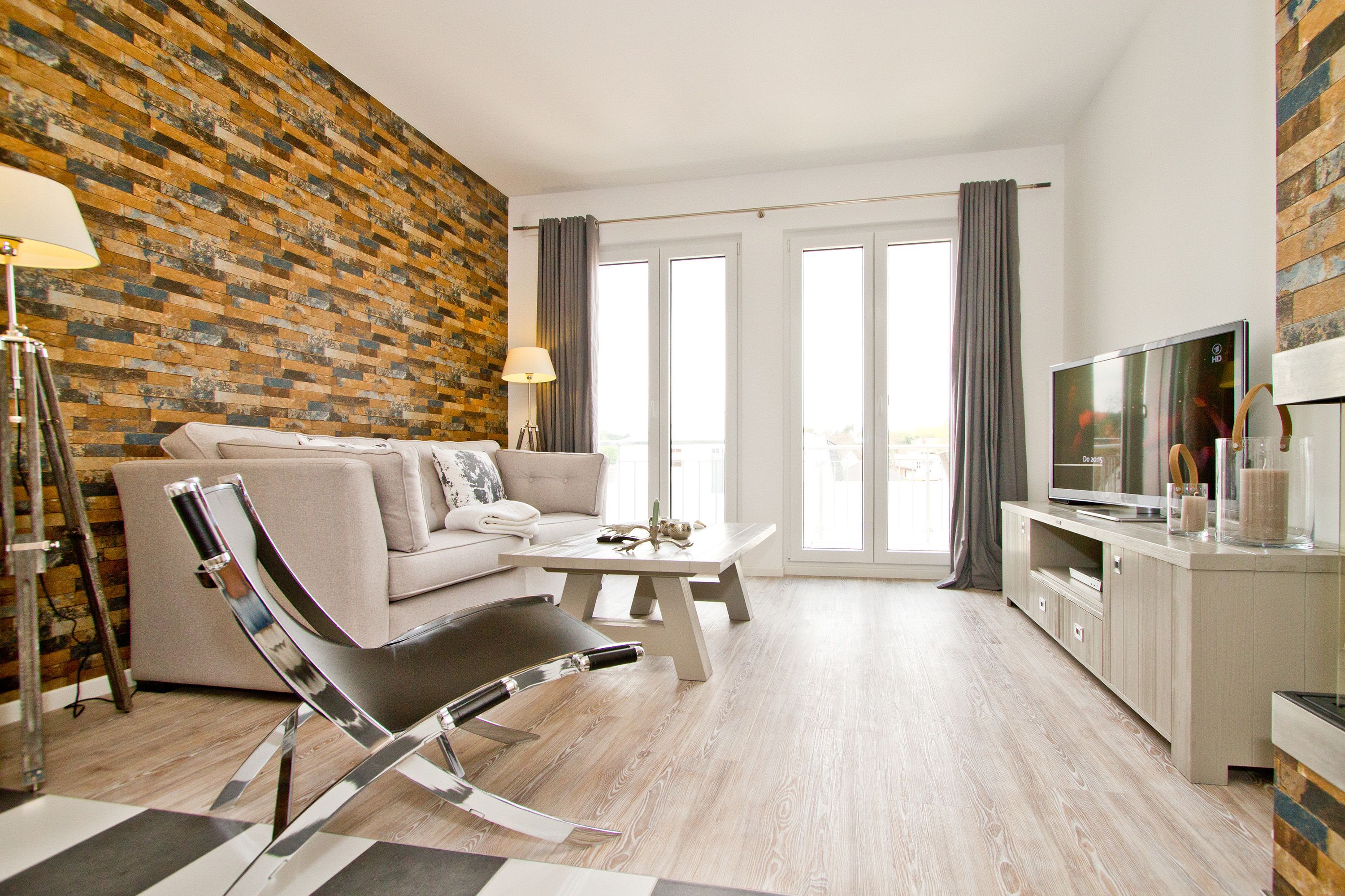 Ein bisschen extravagant, stylisch und skandinavisch gemütlich - Willkommen in der Ferienwohnung 18. Das schöne 3-Raum-Appartement im 2. Obergeschoss ist zur Westseite gelegen und bietet Platz für 4 Erwachsene und ein Kleinkind (bis 3 Jahre im Kinderreisebett). Der Wohnraum mit Sitzgruppe und Flat-TV (Blue-Ray-Player, Ipod-Dockingstation) wird durch die offene Küche mit Esstisch ergänzt. Zwei Schlafzimmer mit Doppelbetten und jeweils TV und ein Bad mit Dusche und WC komplettieren das Appartement. Der Balkon zur Westseite ist vom Wohnbereich und von einem Schlafzimmer aus zu betreten, hier genießt man die Sonne bis in den Abend hinein. Besondere zusätzliche Highlights sind der per Fernbedienung zu bedienende Gaskamin und die kleine, wohnungseigene Sauna, sicher nicht nur in der kalten Jahreszeit eine schöne Abwechslung. Auf Wunsch stellen wir ein Kinderreisebett (ohne Matratze & Bettzeug) und einen Kinderhochstuhl gegen einen Aufpreis zur Verfügung. Ein PKW- Stellplatz (Nr. 19) steht Ihnen in der Tiefgarage zur Verfügung. Das WLAN-Netz ist kostenfrei nutzbar.