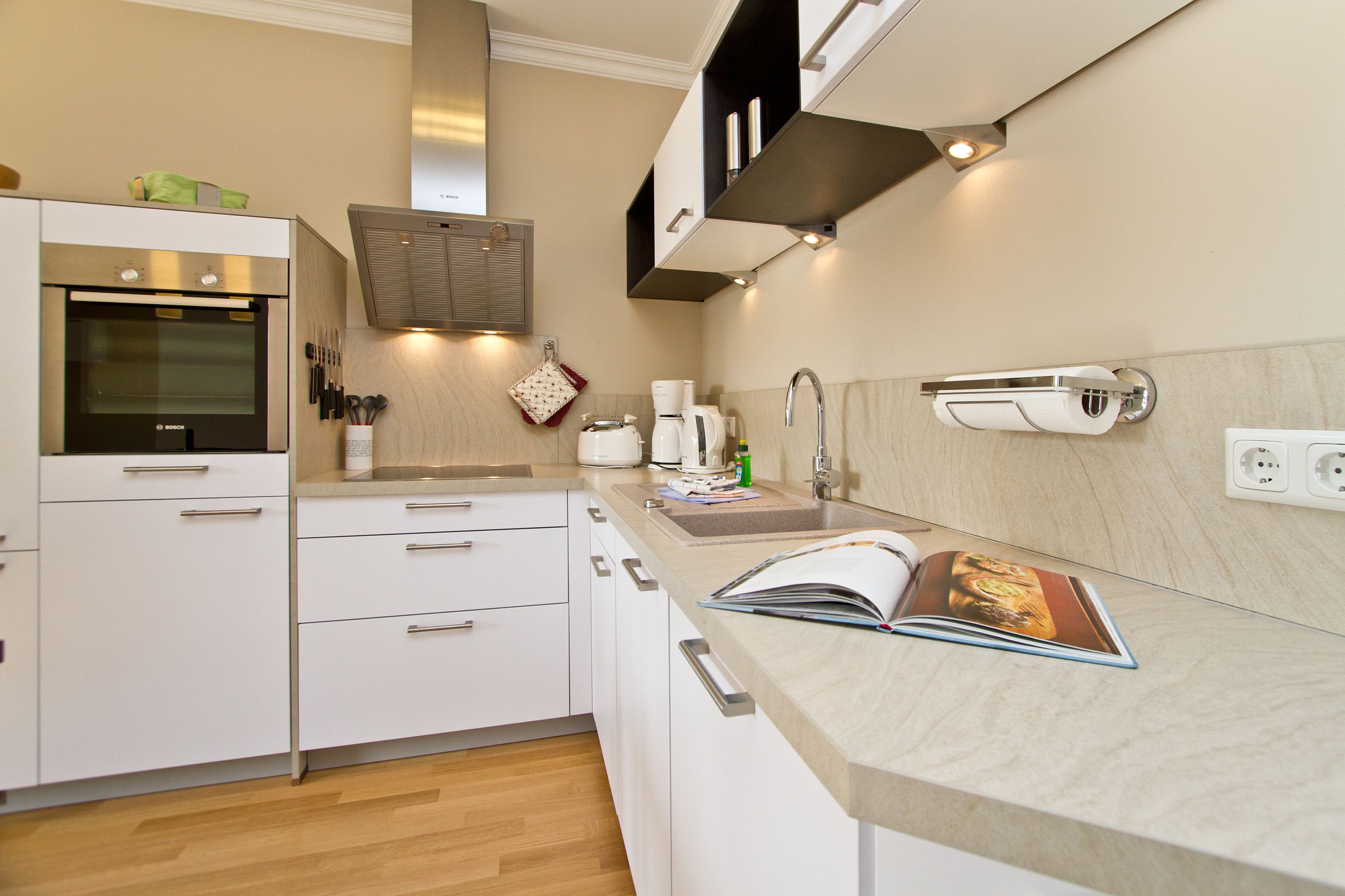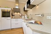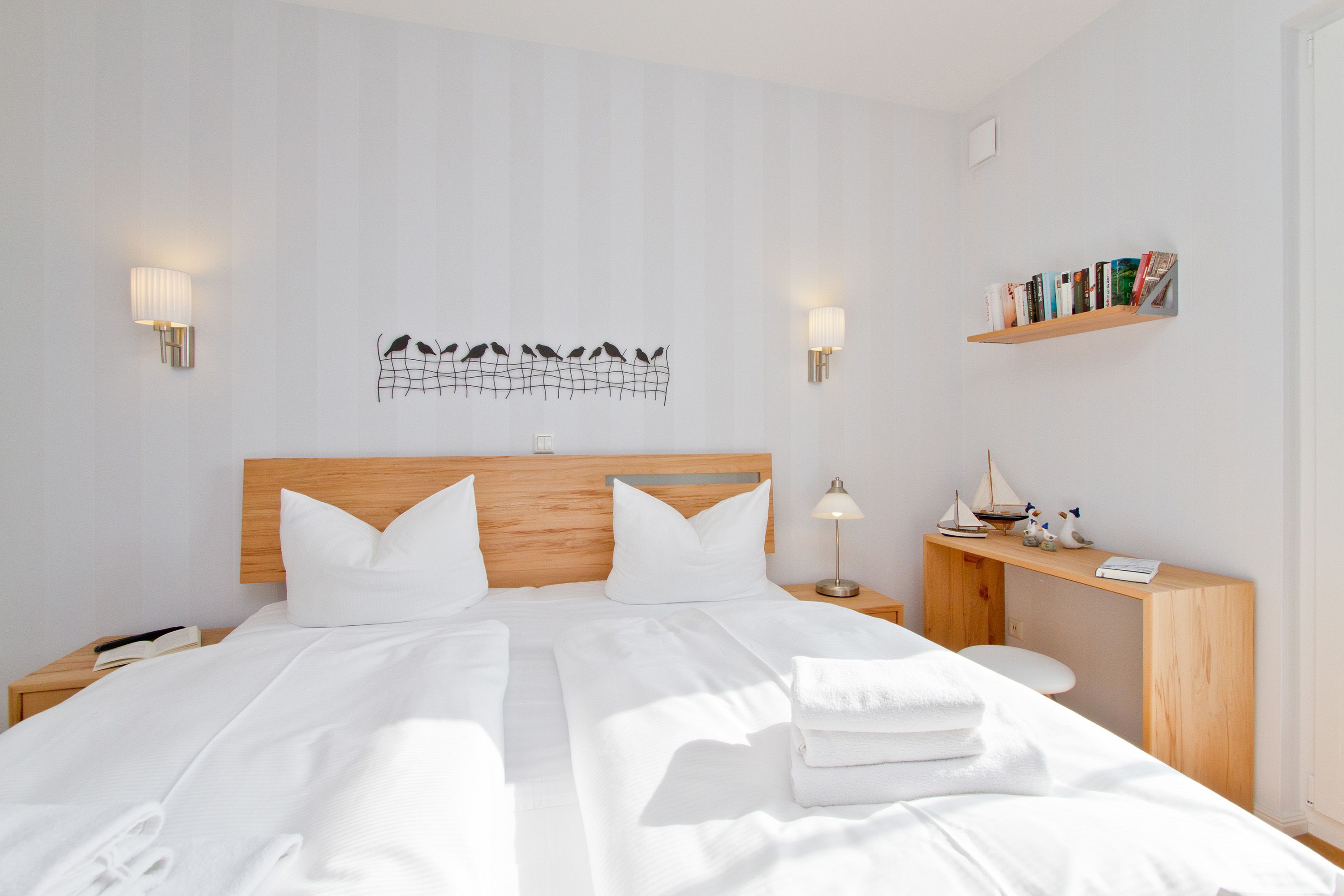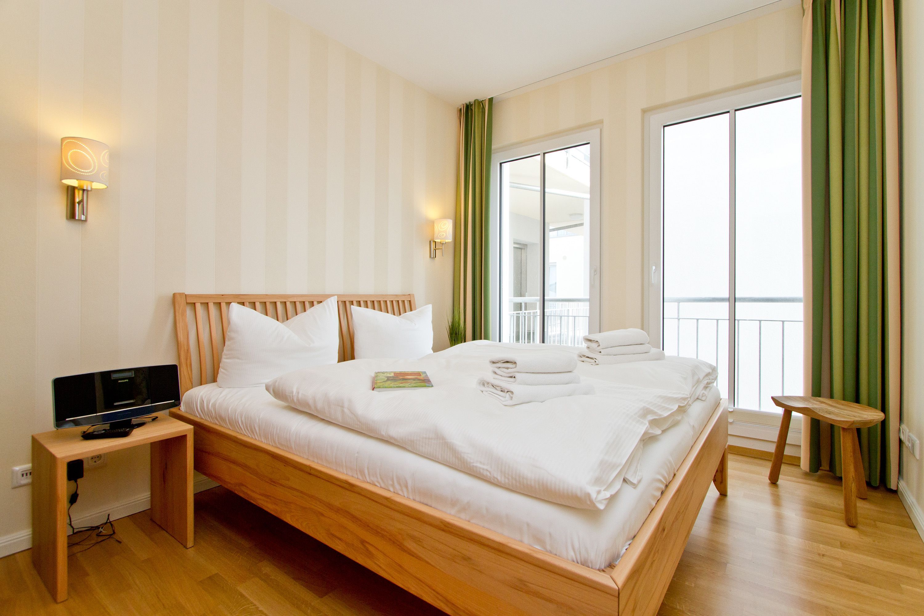 Im 2. Obergeschoss des Südhauses befindet sich diese schöne 3-Raum-Ferienwohnung für 4 Personen (inklusive Kleinkind bis 2 Jahre). Helle Räume, passend abgestimmte Farben und Stoffe und eine moderne, aber gemütliche Einrichtung werden Sie hier begeistern. Der Wohnbereich ist mit einer bequemen Sitzgruppe ausgestattet und wird ergänzt durch die komplett ausgestattete Küchenzeile mit Essplatz. Ein besonderes Highlight ist der per Fernbedienung bedienbare Gaskamin. Die beiden Schlafzimmer sind mit schönen Holzmöbeln eingerichtet. Metallfreie Doppelbetten unterstützen hier erholsamen Schlaf. Das helle Bad verfügt über eine große Echtglasdusche, Waschtisch, Bidet und ein WC. Im Hauswirtschaftsraum finden Sie eine Waschmaschine. Ein großer Ostbalkon lädt zum Frühstücken ein, von hier genießt man bis zum frühen Nachmittag die Usedomer Sonne. Das Blu-Ray-Heimkinosystem lässt aber auch Regentage wie im Flug vergehen. Gern können Sie den kostenfreien, wohnungseigenen DSL-Anschluss mit LAN und WLAN-Funktionalität nutzen. Für Ihren Komfort steht die Erstausstattung Wäsche für Sie bereit. Auf Wunsch stellen wir ein Kinderreisebett (ohne Matratze & Bettzeug) und einen Kinderhochstuhl gegen einen Aufpreis zur Verfügung. Ein Pkw-Stellplatz ( Nr.15) befindet sich in der Tiefgarage des Hauses.