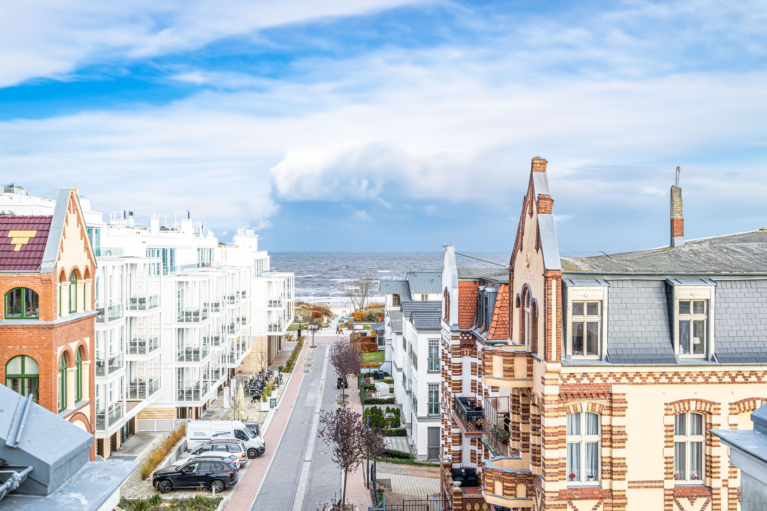 Ein moderner Bau im klassischen Stil ist jüngst mit dem Dünenpalais im Seebad Ahlbeck entstanden. Hier vereint sich modernster Wohnkomfort mit exponierter Seebadlage. Die zwei Neubauvillen sind verbunden durch Laubengänge und einen Aufzug, der auch in die Tiefgarage ( Einfahrthöhe 1,90 m) des Hauses führt (hier findet man auch einen Fahrradkeller). Die großzügigen 2- und 3-Raum-Appartements mit sonnigen Balkonen und Gaskaminen (teilweise auch Sauna und Meerblick) wurden wunderschön ausgestattet und bieten alle Highlights für einen besonderen Urlaub. Ein WLAN-Netz ist kostenfrei nutzbar. Außerdem steht für jede Wohnung ein Briefkasten am Haus zur Verfügung.