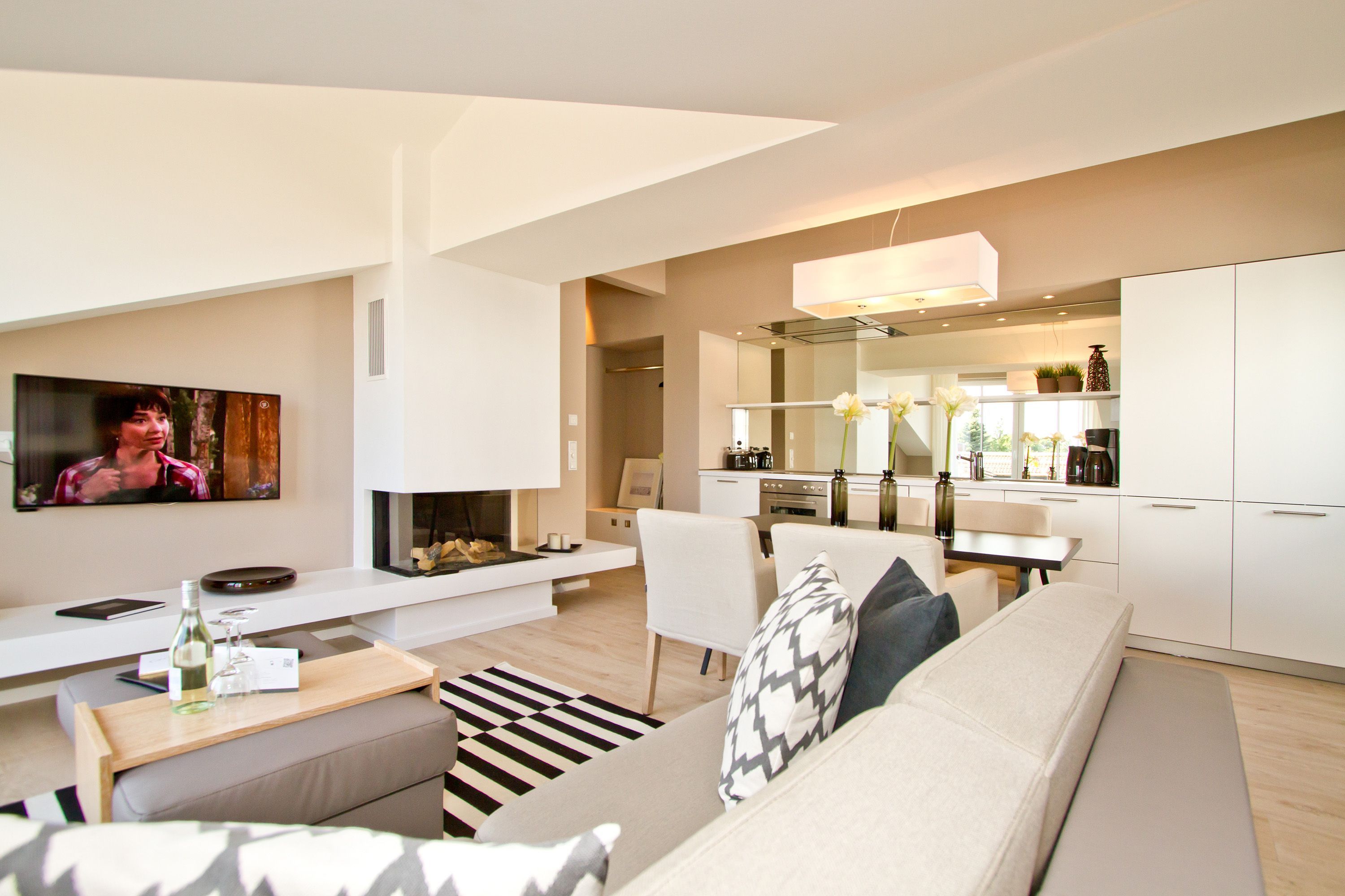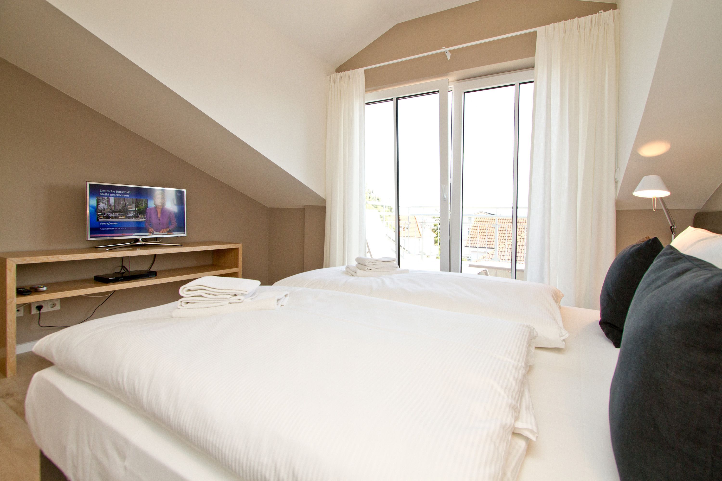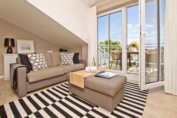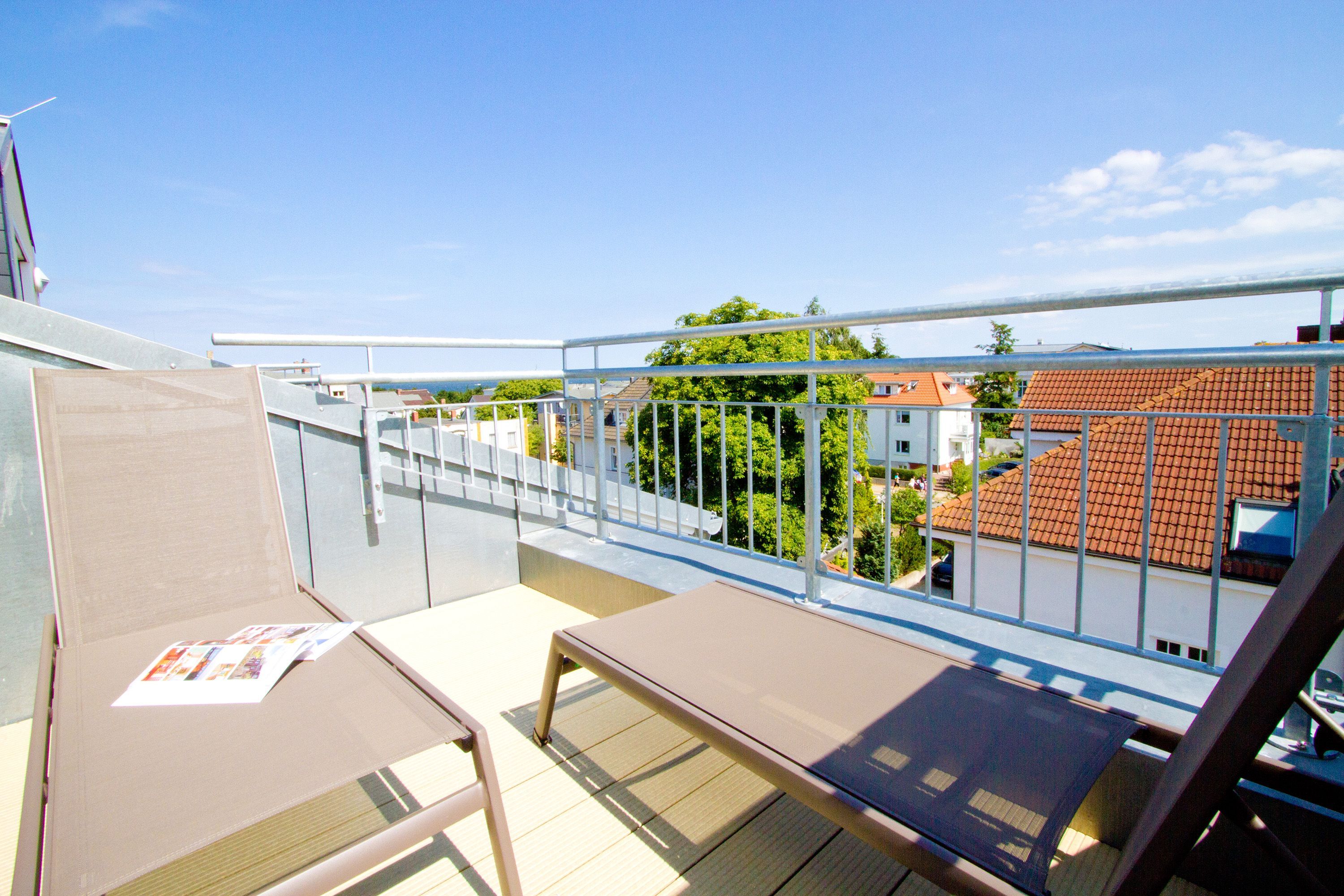 Dieses Domizil & den Ausblick auf die Ostsee werden Sie lieben! Direkt unter dem Dach des Hauses gelegen, erwartet Sie eine stylische 2-Raum-Ferienwohnung (55 qm) für 2 Personen und ein Kleinkind (bis 3 Jahre im Kinderreisebett). Modernes Design, geschmackvoll abgestimmte Farben und schöne Dekorationen wurden von gekonnter Innenarchitektenhand arrangiert und versetzen Sie schnell in Urlaubslaune. Der Wohnbereich mit bequemer Sitzgruppe, Flat- TV und Design-Gaskamin wird ergänzt durch die offene, komplett ausgestattete Küche und den angrenzenden Essplatz. Das Schlafzimmer mit komfortablen Einbauten und Boxspringbett (1,80 x 2 m) verfügt über einen schönen Balkon (Ostseite) mit Blick auf die Ostsee. Auch der zweite sonnige Balkon (mit Zugang vom Wohnbereich) mit Gartenmöbeln bietet über die Dächer der alten Villen einen schönen Blick auf das Meer. Im großzügigen Bad finden Sie eine Echtglasdusche & WC. Für Ihren Komfort sind die Betten bei der Anreise bezogen und Handtücher liegen bereit. Ein Pkw-Stellplatz ( Nr. 2) steht in der Tiefgarage zur Verfügung. Auf Wunsch stellen wir ein Kinderreisebett (ohne Matratze & Bettzeug) und einen Kinderhochstuhl gegen einen Aufpreis zur Verfügung.