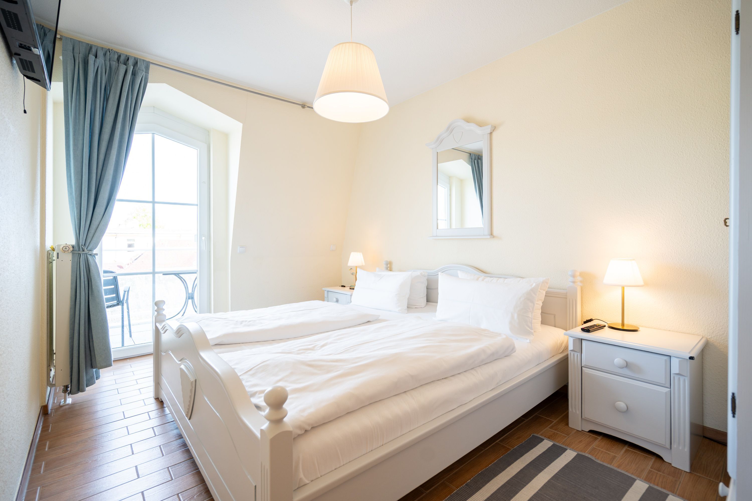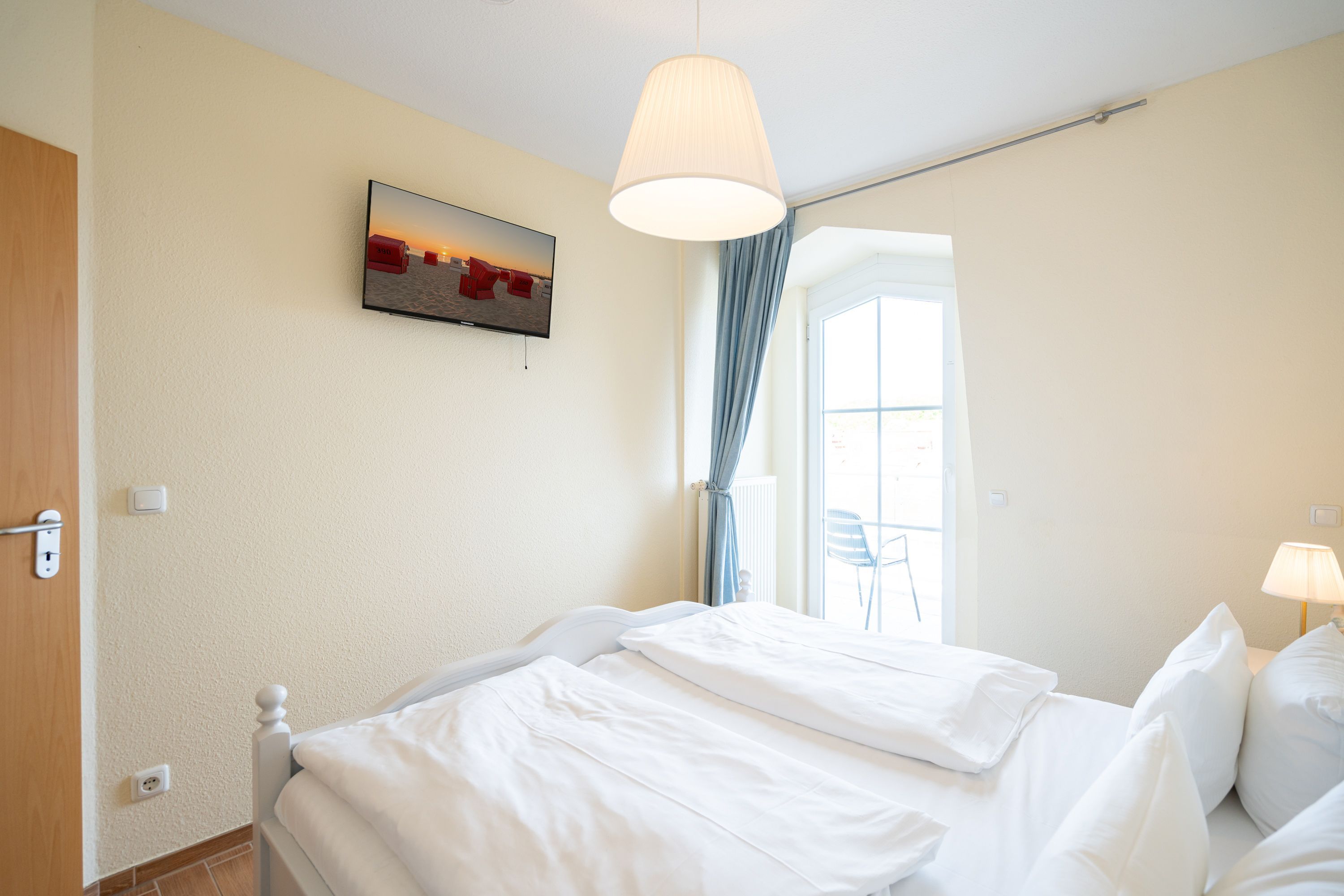 Die stilvoll eingerichtete 45 qm Ferienwohnung ist von Licht durchflutet und bietet einen schönen (seitlichen) Ausblick auf das Meer und den Strand (für max. 2 Erwachsene & 1 Kind bis 16 Jahre). Das Haus befindet sich in exponierter ruhiger Lage direkt an der Promenade und am Strand. Die Ferienwohnung verfügt über ein Wohnzimmer mit Einbauküche, Schlafzimmer, Duschbad, TV und 2 Balkone. Im Wohnbereich befindet sich als zusätzliche Schlafmöglichkeit eine Couch mit einer Liegefläche von 1,60 m mal 2 m. Auf Wunsch stellen wir für unsere kleinen Gäste ein Kinderreisebett (ohne zusätzliche Matratze & Bettzeug) und einen Kinderhochstuhl (gegen einen Aufpreis) zur Verfügung. Für Ihren Komfort sind die Betten bei der Anreise bezogen und Handtücher liegen bereit. Das WLAN-Netz ist kostenfrei nutzbar.