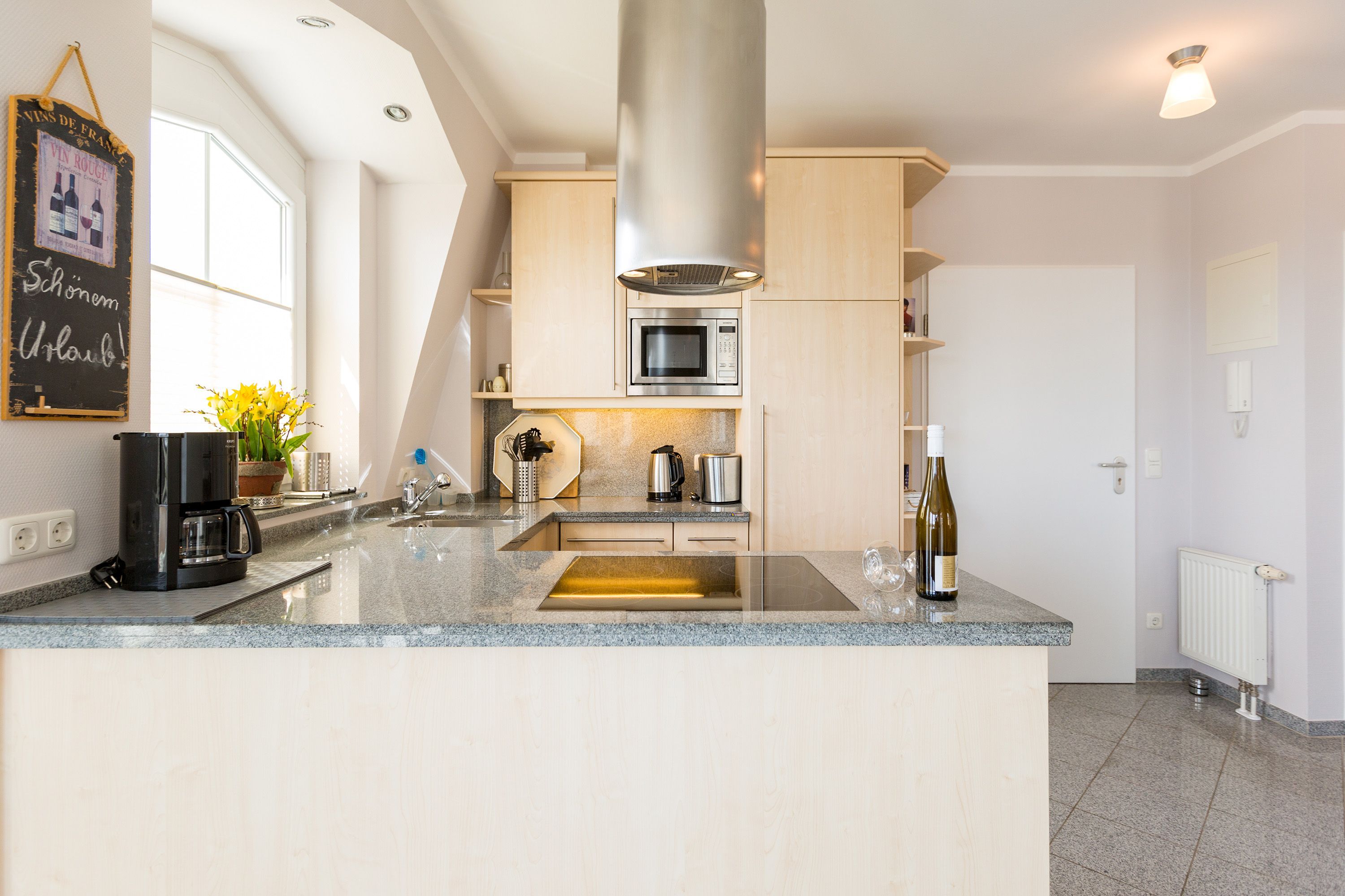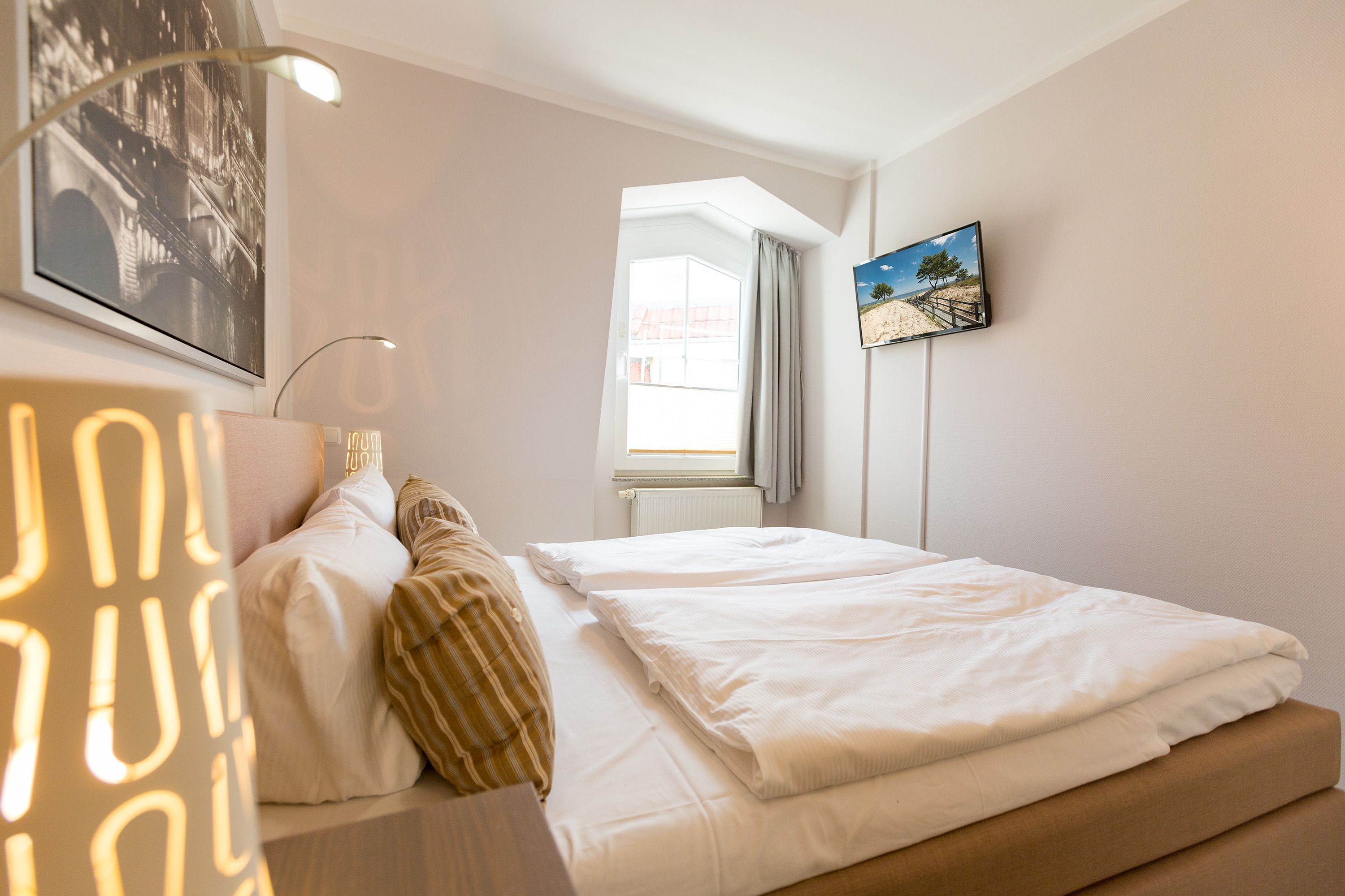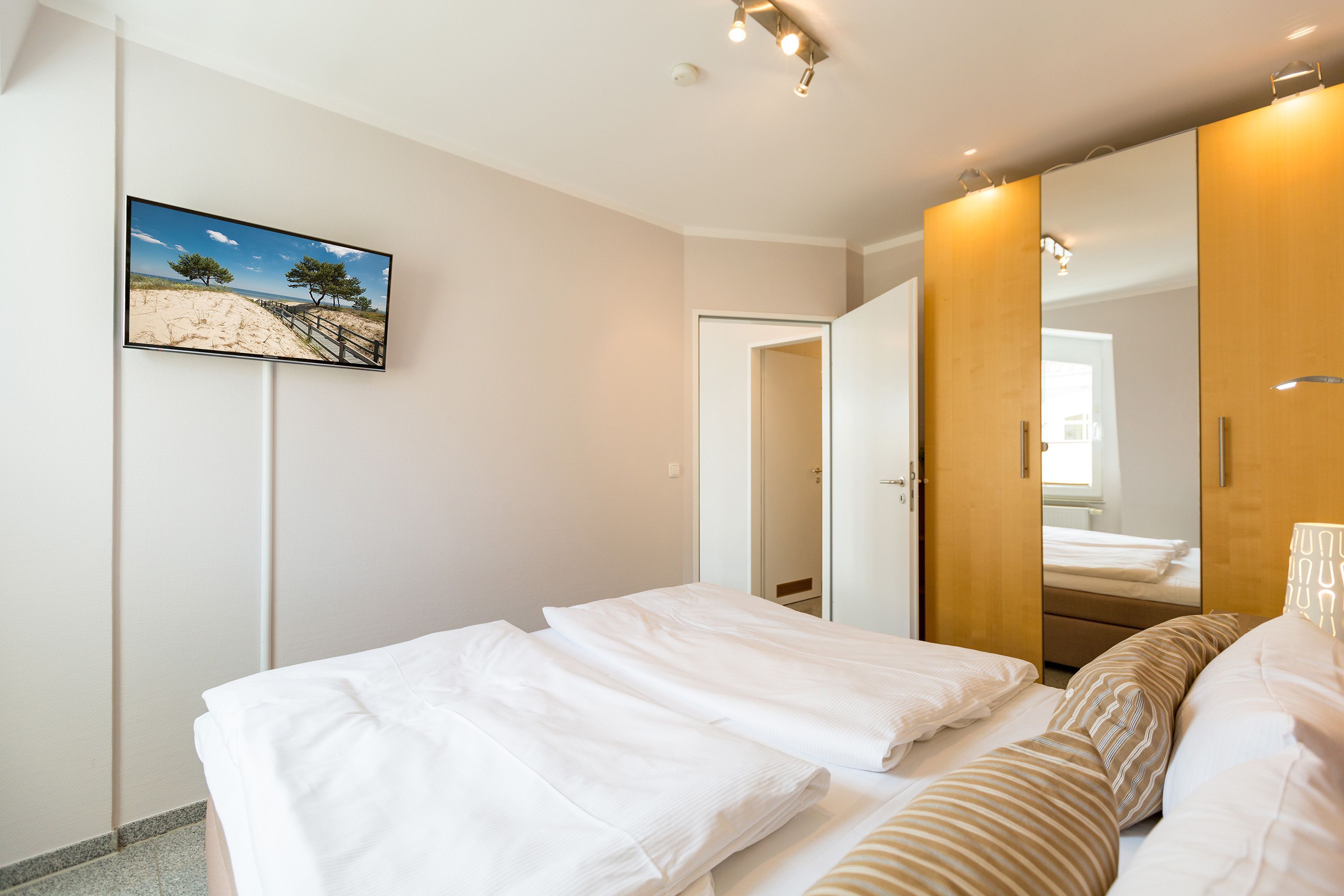 Diese schön gestaltete 2-Raum-Ferienwohnung empfängt Sie in der 3. Etage der Dünenresidenz und bietet Platz für 2 Personen und 1 Kleinkind bis 3 Jahre. Die stilvolle, moderne Möblierung und die geschmackvollen Dekorationen sorgen für einen schönen Urlaub. Der helle, freundliche Wohnbereich mit bequemer Sitzgruppe (Flat-TV, DVD) wird ergänzt durch und eine offene, komplett ausgestattete Küche und den schönen Essplatz im Glaserker. Von hier bietet sich Ihnen ein schöner Blick auf den Schloonsee und auf die Ostsee. Das Schlafzimmer mit Boxspringbett (1,80 m x 2,00m) bietet erholsamen Schlafkomfort. Ein modernes Wohlfühlbad mit WC und Dusche und ein Abstellraum für Ihre Koffer stehen ebenfalls zur Verfügung. Auf dem Südbalkon mit Blick auf Bansin genießt man die Abendsonne, der zweite seitliche Balkon bietet einen schönen Blick auf die Ostsee. Auf Wunsch stellen wir für unsere kleinen Gäste ein Kinderreisebett (ohne zusätzliche Matratze & Bettzeug) und einen Kinderhochstuhl (gegen einen Aufpreis) zur Verfügung. Für Ihren Komfort sind die Betten bei der Anreise bezogen und Handtücher liegen bereit.