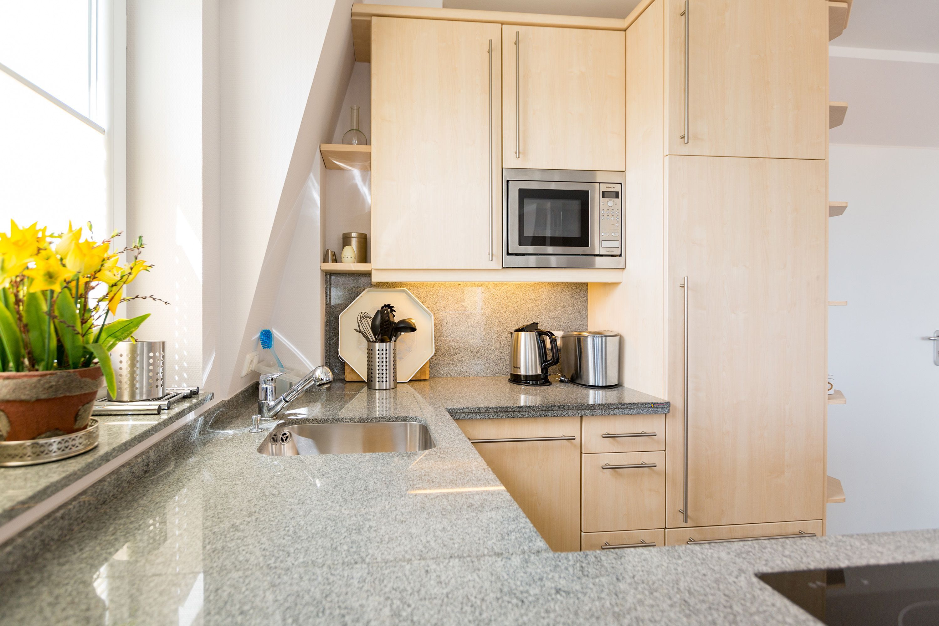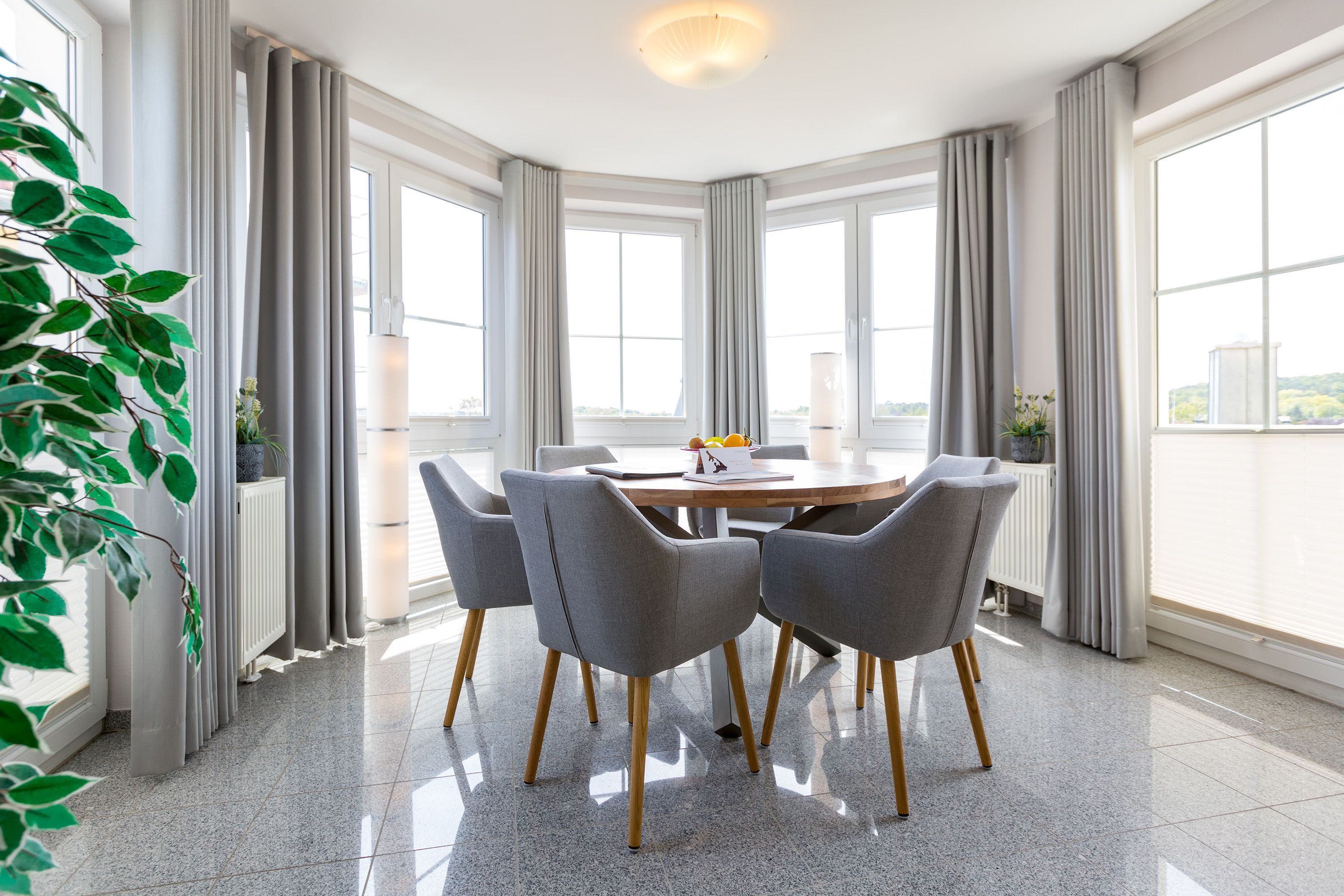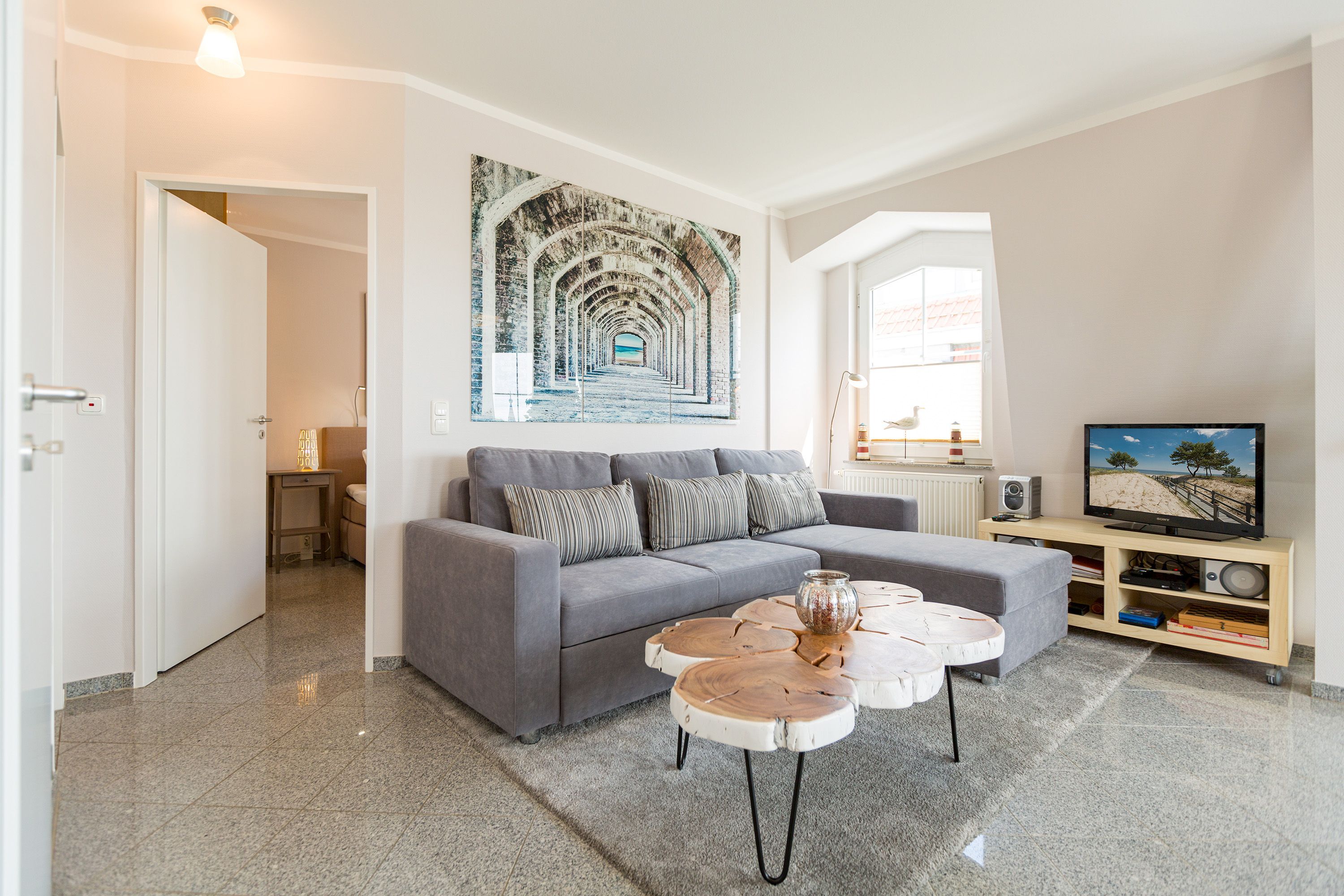 Diese schön gestaltete 2-Raum-Ferienwohnung empfängt Sie in der 3. Etage der Dünenresidenz und bietet Platz für 2 Personen und 1 Kleinkind bis 3 Jahre. Die stilvolle, moderne Möblierung und die geschmackvollen Dekorationen sorgen für einen schönen Urlaub. Der helle, freundliche Wohnbereich mit bequemer Sitzgruppe (Flat-TV, DVD) wird ergänzt durch und eine offene, komplett ausgestattete Küche und den schönen Essplatz im Glaserker. Von hier bietet sich Ihnen ein schöner Blick auf den Schloonsee und auf die Ostsee. Das Schlafzimmer mit Boxspringbett (1,80 m x 2,00m) bietet erholsamen Schlafkomfort. Ein modernes Wohlfühlbad mit WC und Dusche und ein Abstellraum für Ihre Koffer stehen ebenfalls zur Verfügung. Auf dem Südbalkon mit Blick auf Bansin genießt man die Abendsonne, der zweite seitliche Balkon bietet einen schönen Blick auf die Ostsee. Auf Wunsch stellen wir für unsere kleinen Gäste ein Kinderreisebett (ohne zusätzliche Matratze & Bettzeug) und einen Kinderhochstuhl (gegen einen Aufpreis) zur Verfügung. Für Ihren Komfort sind die Betten bei der Anreise bezogen und Handtücher liegen bereit.