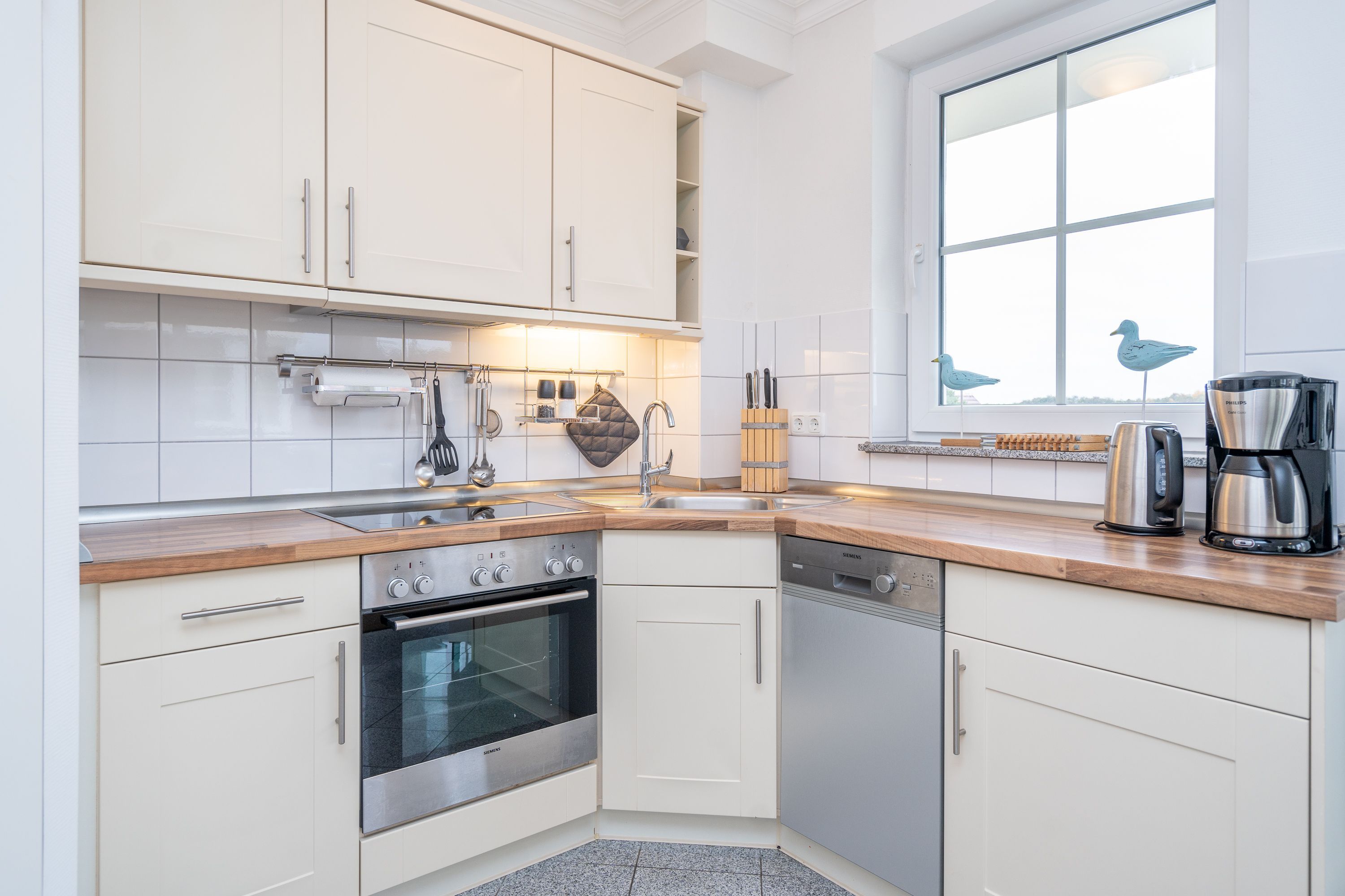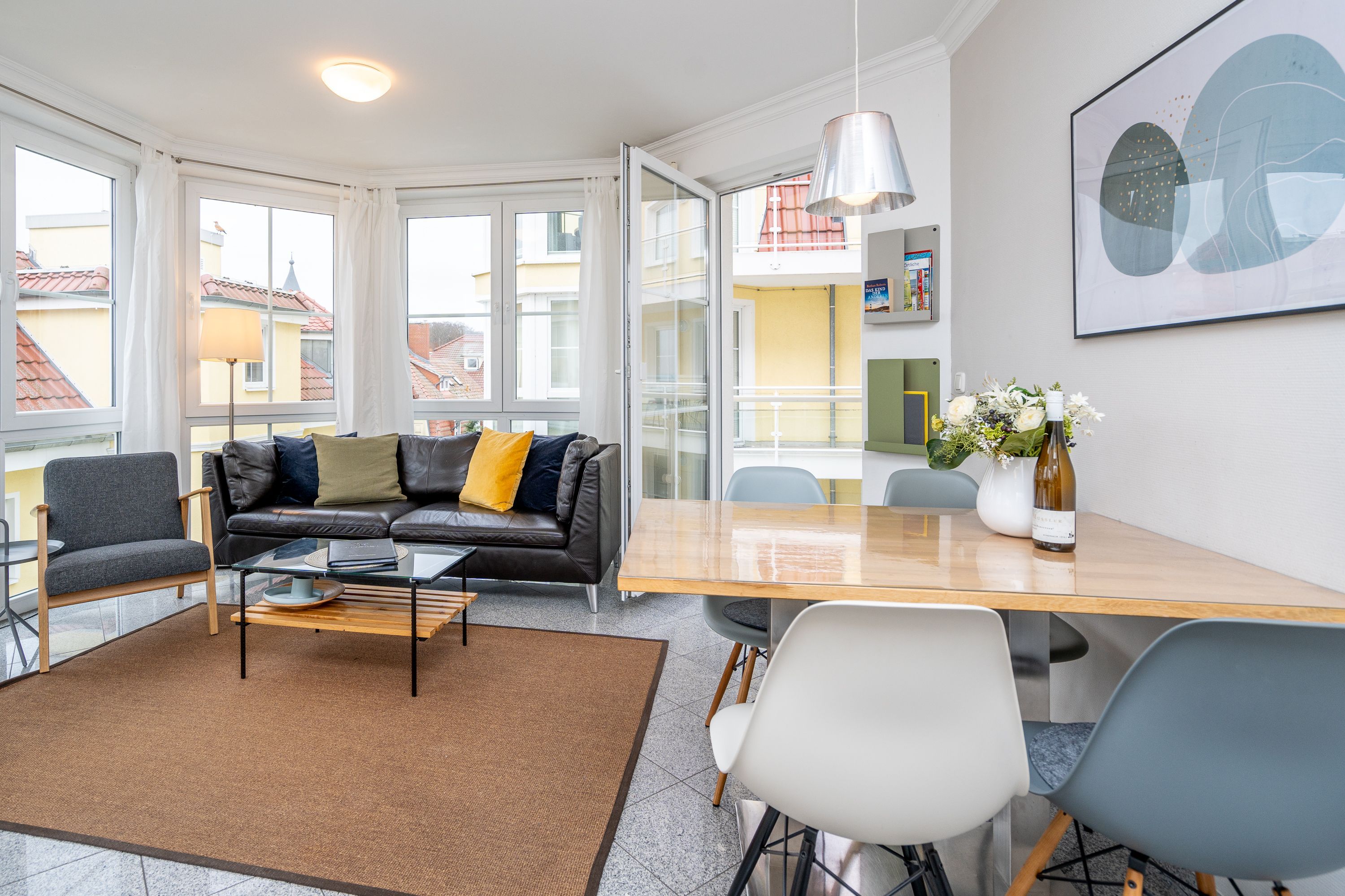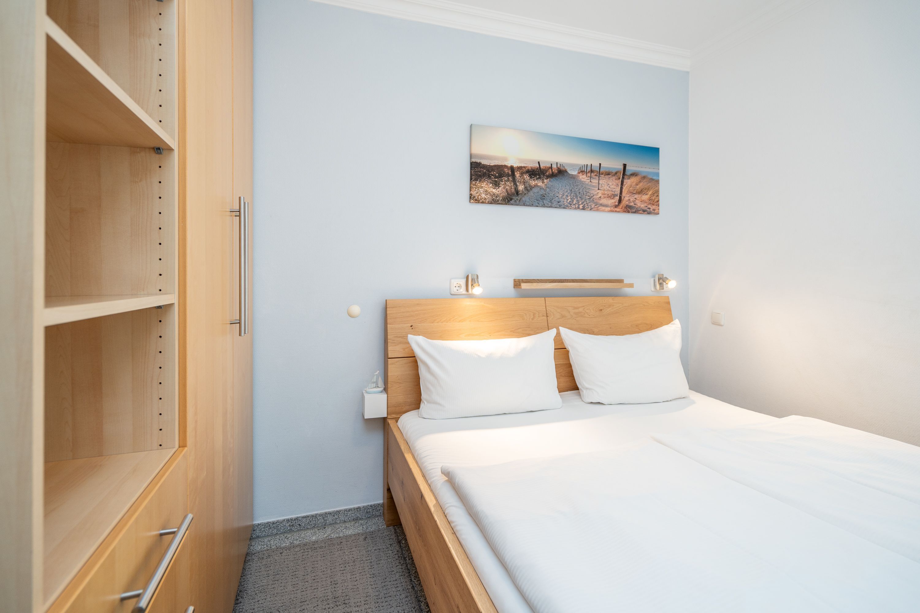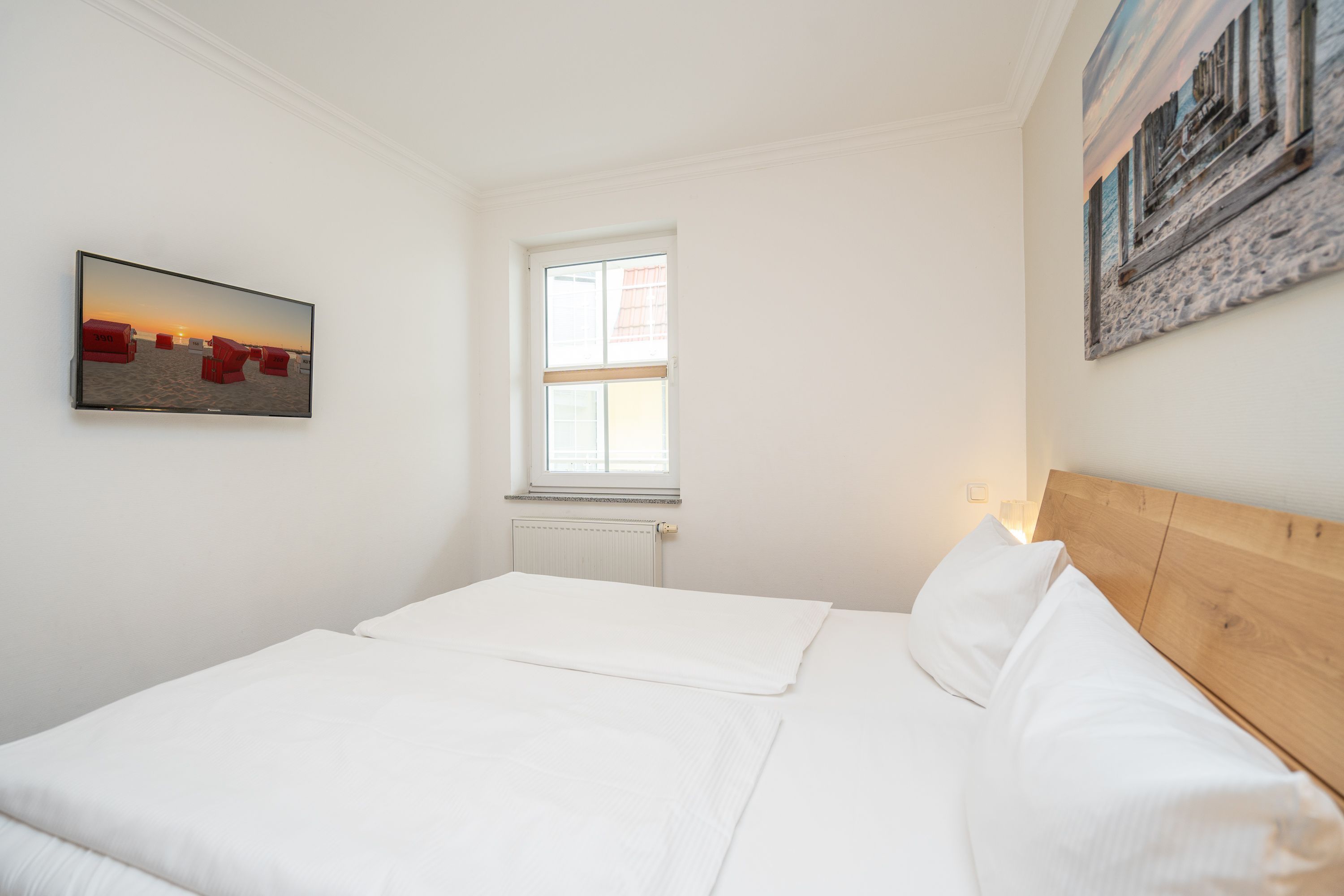 Die Ferienwohnung B11 lädt Sie ein, entspannte Urlaubstage zu verbringen (für max. 4 Personen). Geschmackvoll eingerichtet, lässt die komfortable Ausstattung keine Wünsche offen. Im 2. Obergeschoss gelegen, bietet Ihnen das Appartement ein Wohnzimmer, eine komplett ausgestattete Küchenzeile (Ceranfeld, Geschirrspüler, Backofen), zwei Schlafzimmer mit Doppelbetten, ein Duschbad und ein Gäste-WC. Zwei Balkone verfügen über einen schönen Blick auf die Ostsee und auf den idyllischen Schloonsee. Für Ihren Komfort sind die Betten bei Ihrer Anreise bezogen und die Handtücher (Erstausstattung) liegen bereit.