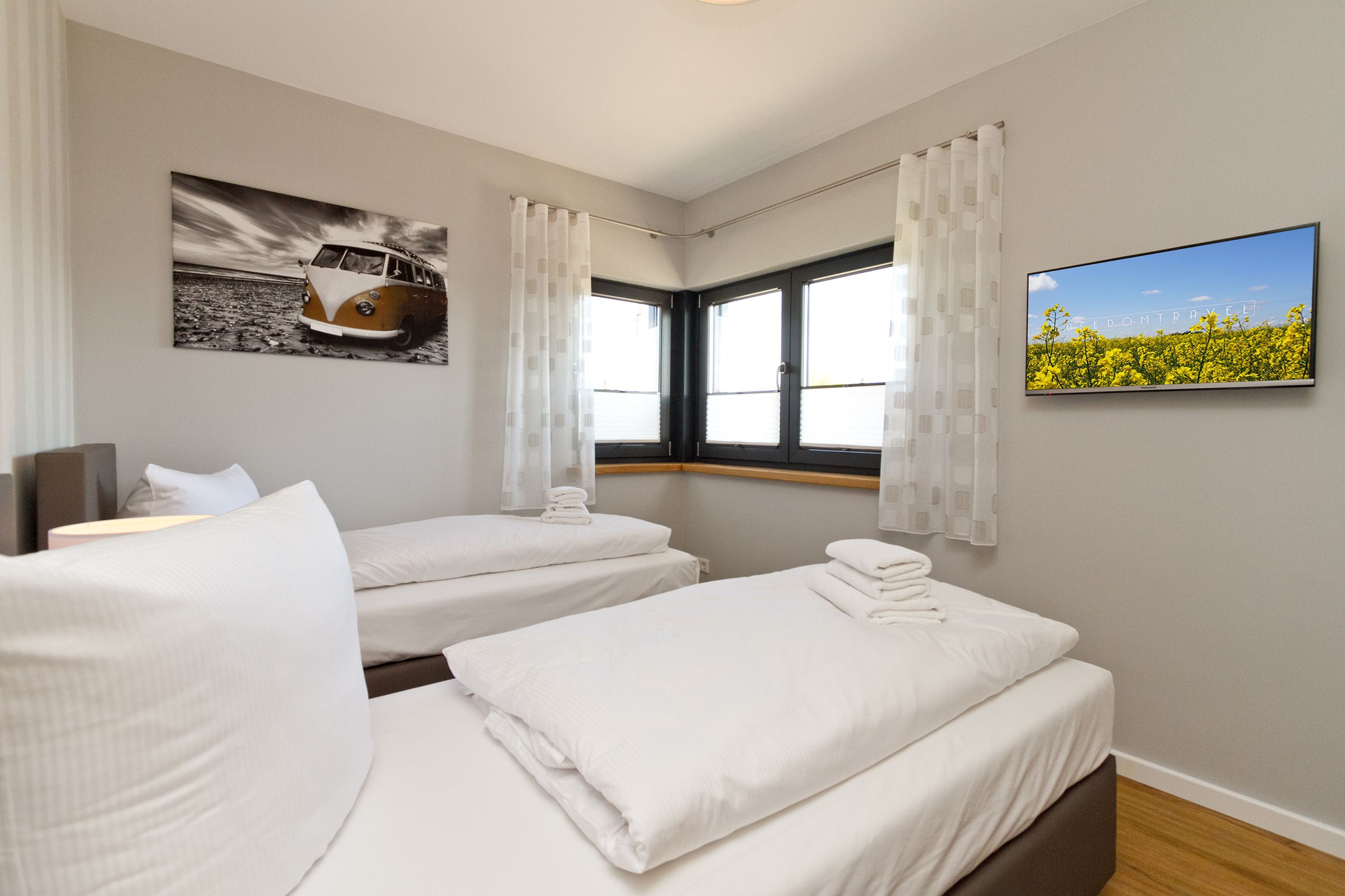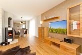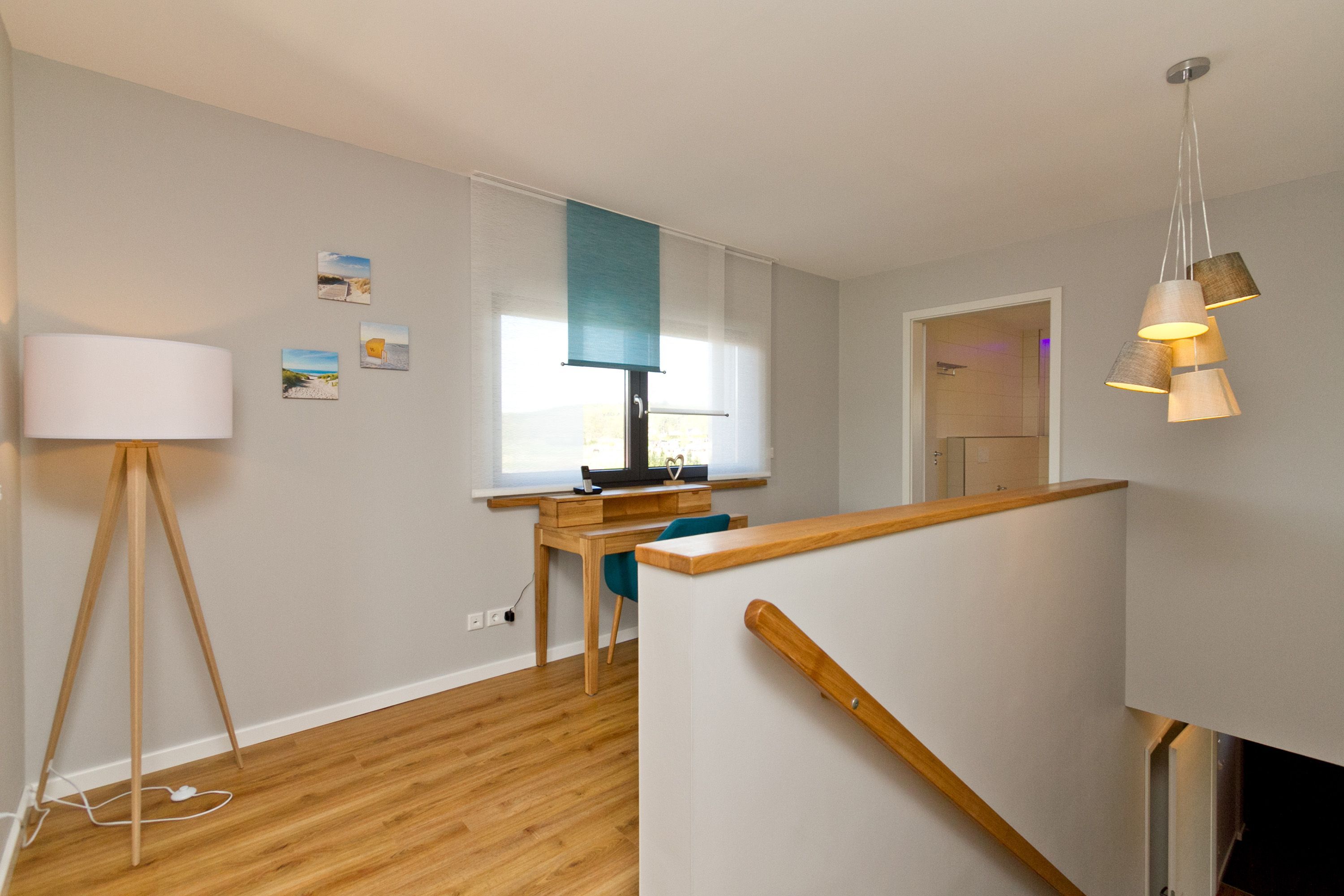 Herzlich Willkommen im Ferienhaus Wiesenblick. Hier erholen Sie sich mit bis zu 6 Personen & 2 Kleinkinder ( bis 3 Jahre im Kinderreisebett) auf 140 qm Wohnfläche - ideal für Familien. Im Erdgeschoss befindet sich der helle Wohnbereich mit gemütlicher Sitzgruppe, Flat-TV, Internet-Radio & Kamin mit Zugang zur sonnigen Süd-Terrasse ( 30 qm), ausgestattet mit Strandkorb & Sitzmöbeln und traumhaftem Blick in die Ahlbecker Wiesen. Außerdem finden Sie hier die offene, voll ausgestattete Küche mit hellem Essplatz, ein Bad mit Dusche und WC sowie ein Hauswirtschaftsraum mit Waschmaschine & Trockner (kostenfrei nutzbar). In der oberen Etage sind 1 großes Schlafzimmer mit Doppelbett ( 1,80m x 2,00m) & Flat-TV sowie ein modernes Farblicht-Badezimmer mit Badewanne, Dusche & Doppelwaschtisch. Das 2. Schlafzimmer mit Doppelbett ( 1,80m x 2,00m ) ist ein Durchgangszimmer zum 3. Schlafzimmer mit 2 Boxspringeinzelbetten (je 0,90m x 1,90m) mit Flat-TV. Als Verdunklungsmöglichkeit stehen im ganzen Haus elektrische Jalousien zur Verfügung. Als zusätzliches Highlight steht Ihnen im Garten ein Saunahäuschen (mit Münzautomat) zur Verfügung. Das WLAN-Netz im Haus kann kostenfrei genutzt werden. Als Highlight haben Sie die Möglichkeit, Fahrräder kostenfrei dazu zu buchen (ausgenommen Juli & August).