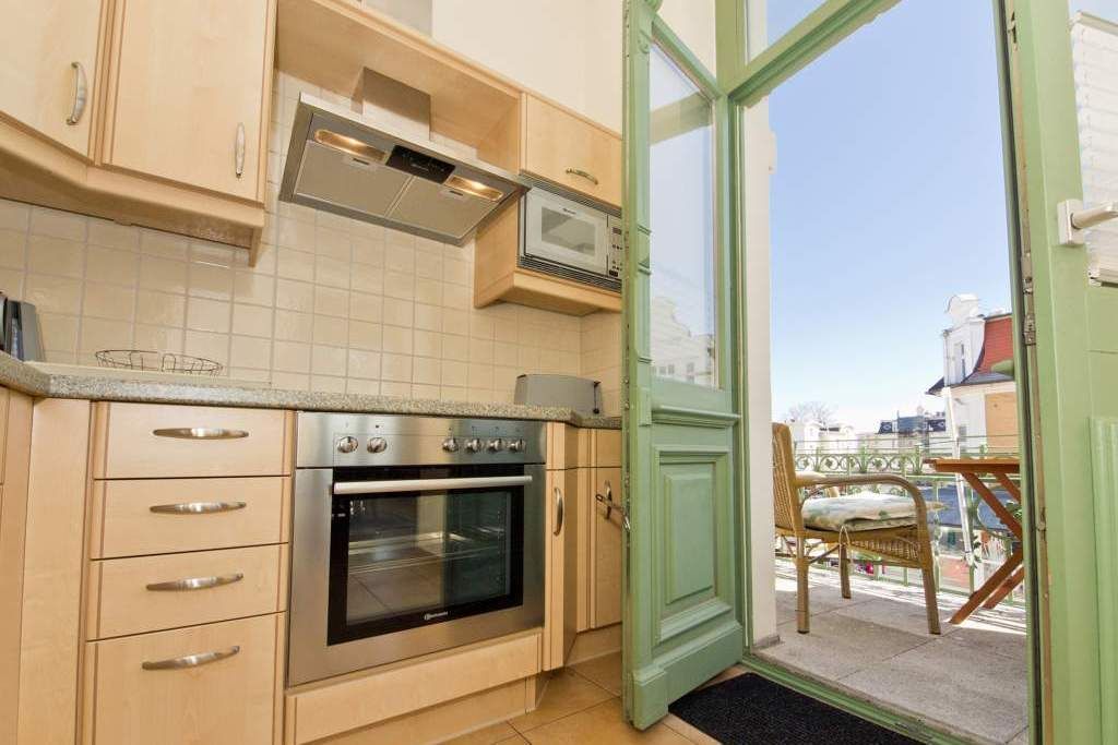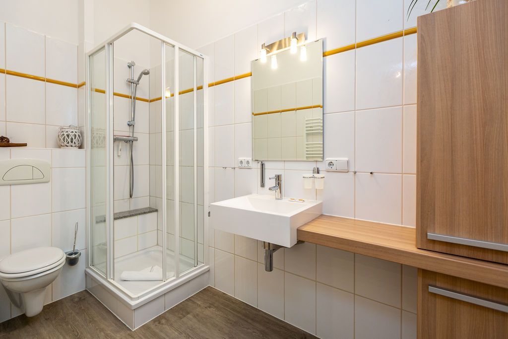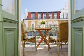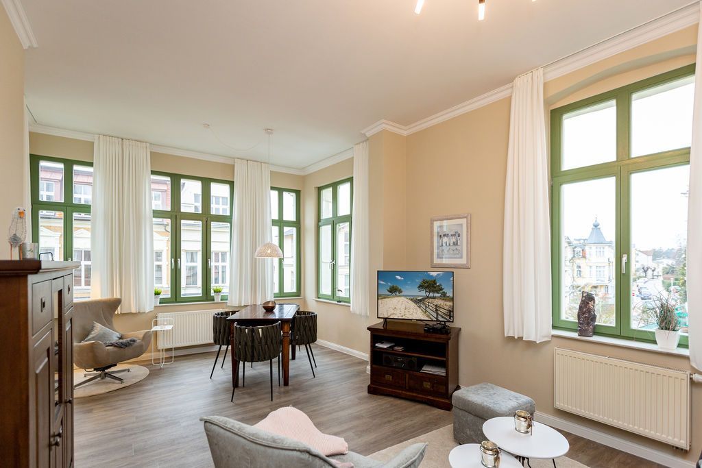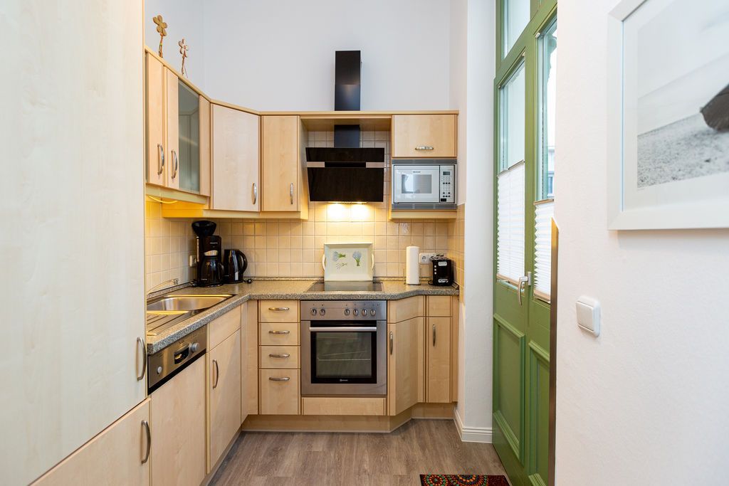 Die exklusive Ferienwohnung im 1. Obergeschoss des Hauses ist 60 qm groß und bietet zwei Personen Platz zum Wohlfühlen und Entspannen. Die moderne und stilvolle Einrichtung lassen keine Wünsche offen. Das Appartement verfügt über ein Wohnzimmer (mit seitlichem Meerblick) mit gemütlicher Sitzgruppe & Flat-TV, eine vollständig ausgestattete Küche (Ceranfeld, Geschirrspüler, Mikrowelle), ein Schlafzimmer mit Doppelbett und ein Duschbad. Auf den 2 Balkonen können Sie den Blick auf die Seestraße genießen.