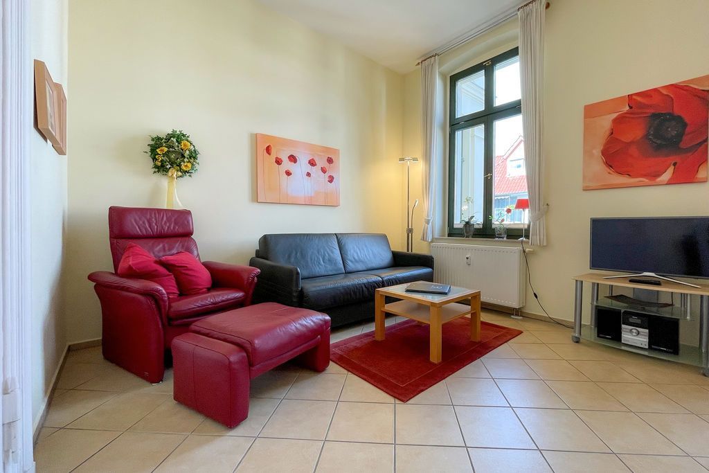 Klassisch elegant! Die Ferienwohnung 4 bietet Ihnen 43 qm Wohnfläche zum Wohlfühlen und ist zur Süd/ West Seite der Villa Goodewind ausgerichtet. Der Wohnbereich mit offener, komplett ausgestatteter Küchenzeile und Balkon lässt keine Wünsche offen. Klassisches Interieur in hochwertiger Ausführung, arrangiert mit liebevollen Details sorgen für eine entspannte, stimmungsvolle Urlaubsatmosphäre. Das Appartement 4 hat den einzigen Balkon der der Nachmittag- und Abendsonne zugewandt ist. Ein Schlafzimmer mit Doppelbett und eine Schlafcouch im Wohnzimmer bieten 3 Personen Platz für einen gelungenen Urlaub. Ein Badezimmer mit Dusche macht die Wohnung komplett. Für Ihren Komfort steht die Erstausstattung Wäsche für Sie bereit. Das WLAN-Netz im Haus kann kostenfrei genutzt werden.