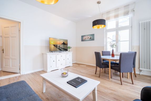 Die Villa Hartmann-Drewitz reiht sich ein in die schönen Häuser der Klenzestraße im Seebad Heringsdorf. Ihre Strandnahe und vor allem zentrale Lage machen sie so beliebt. Die modernen 2- und 3-Raum-Appartements sind komfortabel ausgestattet und bieten teilweise eine Terrasse, einen Balkon oder verglaste Veranden. Ein Urlaubsdomizil für bis zu 4 Personen und ein Kleinkind. Für jede Wohnung steht ein Pkw-Stellplatz am Haus zur Verfügung. Im Keller steht eine Waschmaschine, die gegen Gebühr zu nutzen ist.