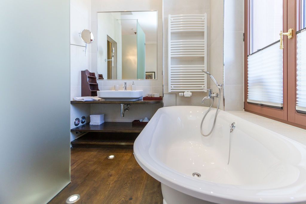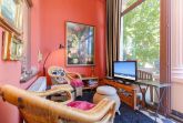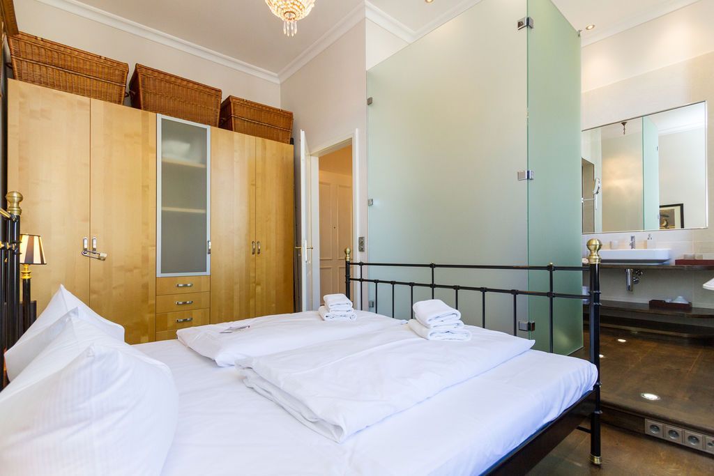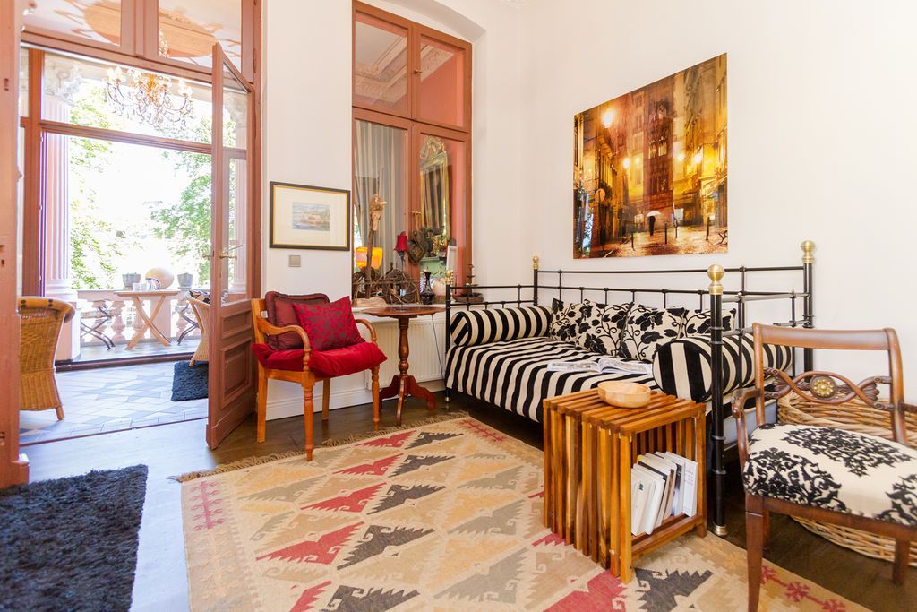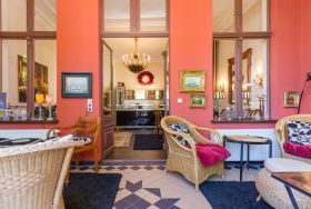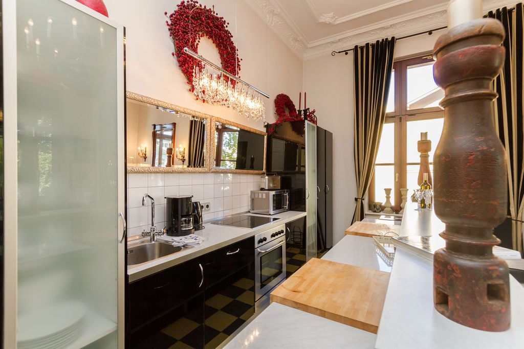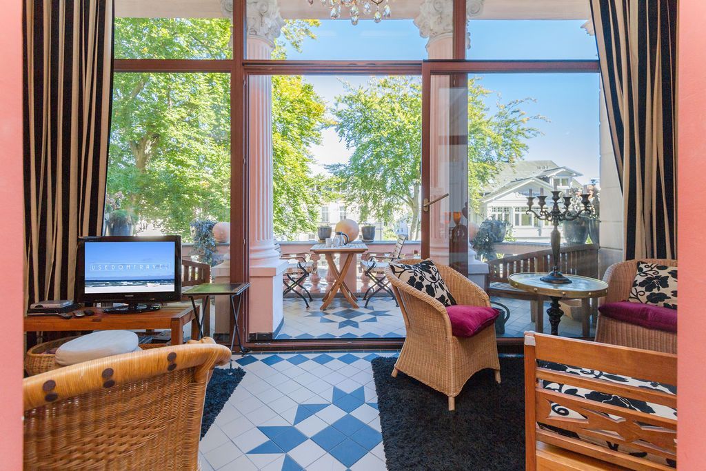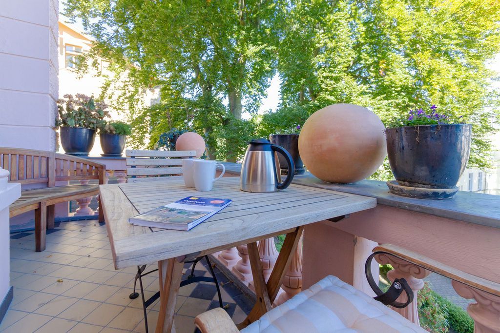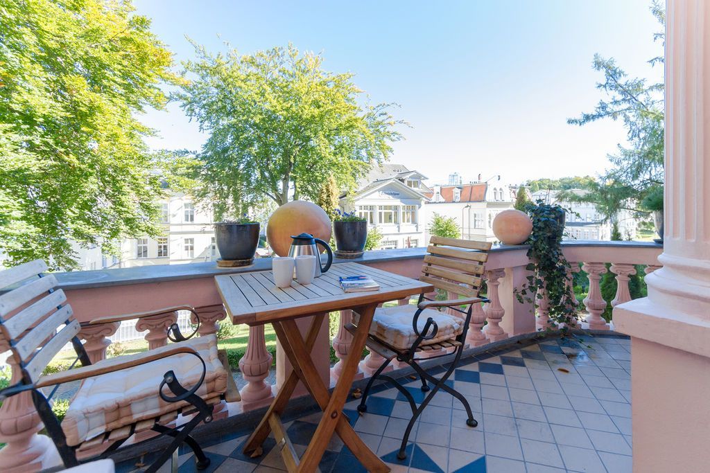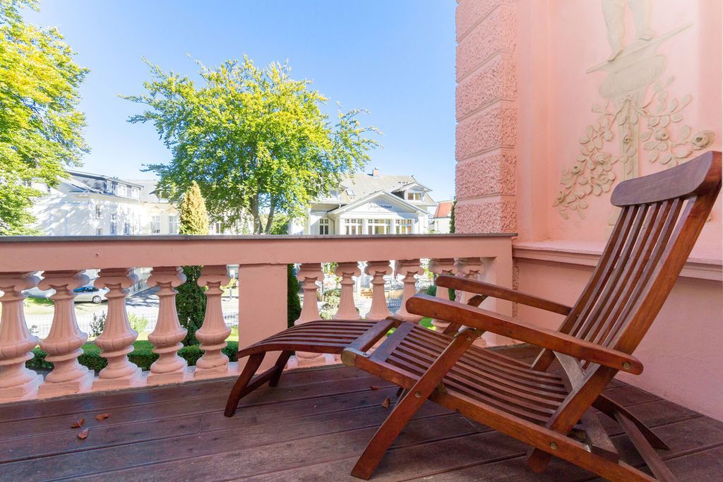 Die Ferienwohnung 6 ist im Hochparterre der Villa Hintze gelegen, verfügt über ein Wohnzimmer, eine verglaste Veranda, eine offene, komplett ausgestattete Küche, ein Schlafzimmer mit Doppelbett, ein Badezimmer offen im Schlafzimmer integriert mit Dusche und Badewanne, WC separat und einen großzügigen Balkon. Für die 3. Person steht eine Aufbettungsmöglichkeit im Wohnraum zur Verfügung. Für ein Kleinkind kann im Vorwege ein Kinderreisebett bestellt werden. Das W-Lan kann kostenfrei genutzt werden.