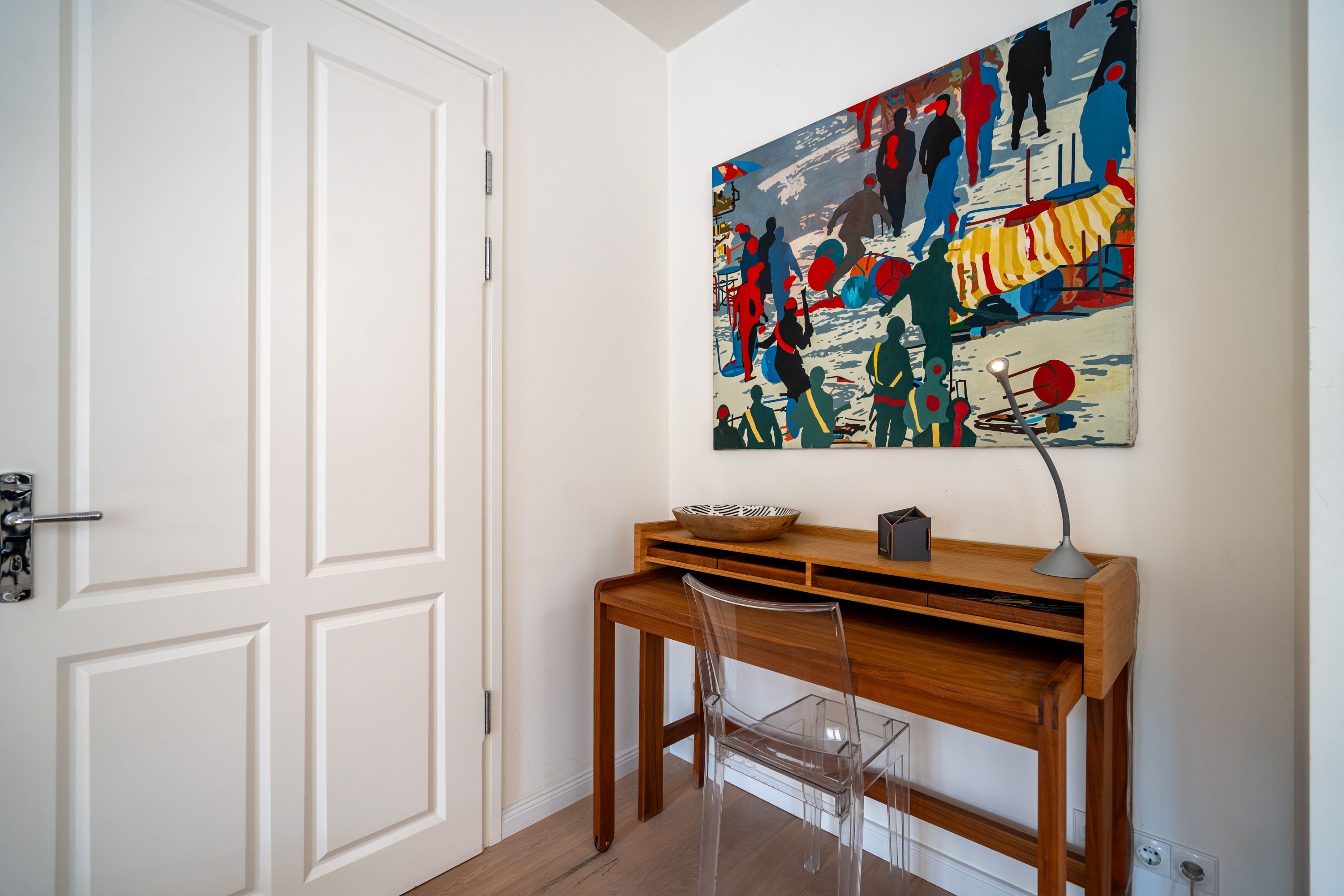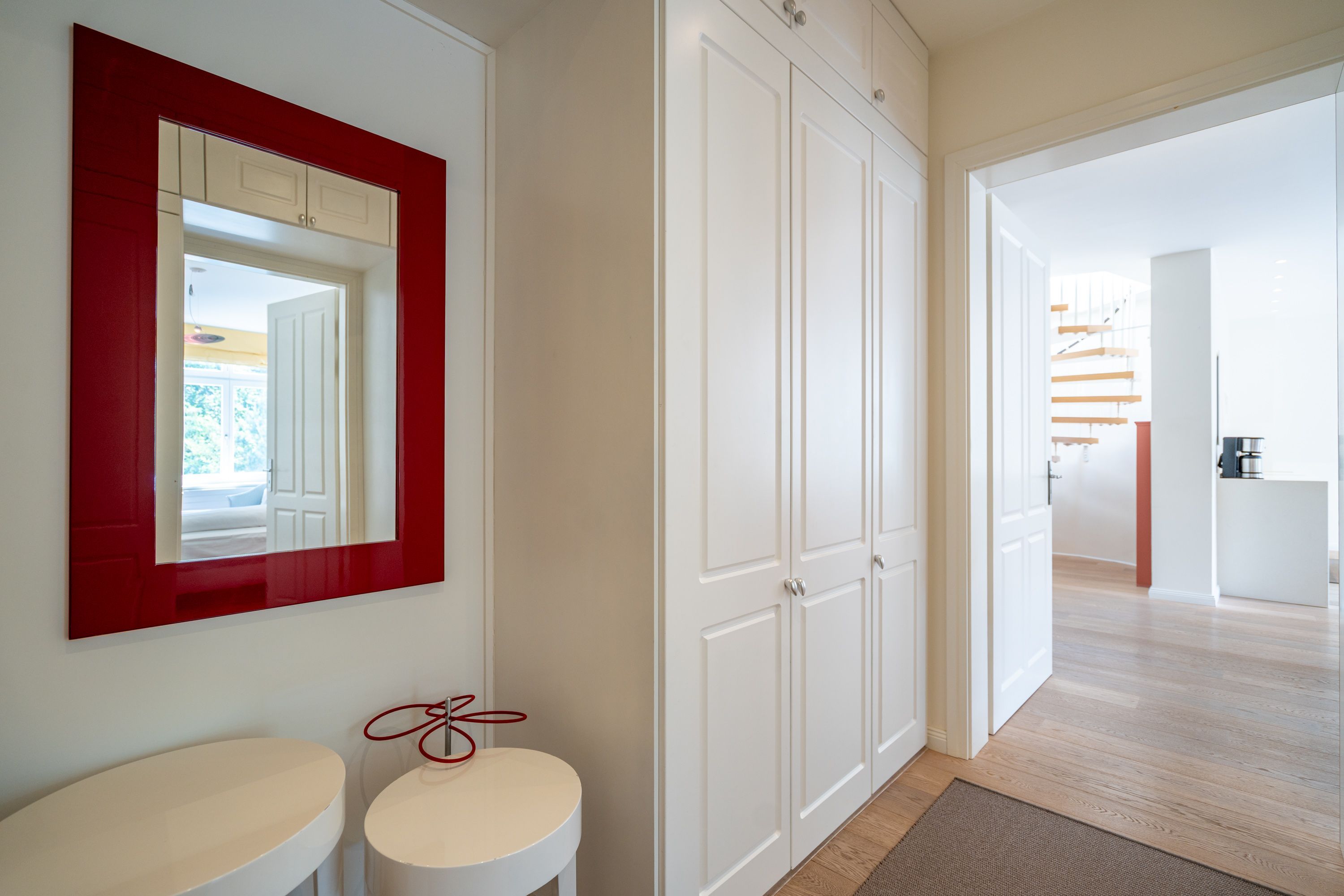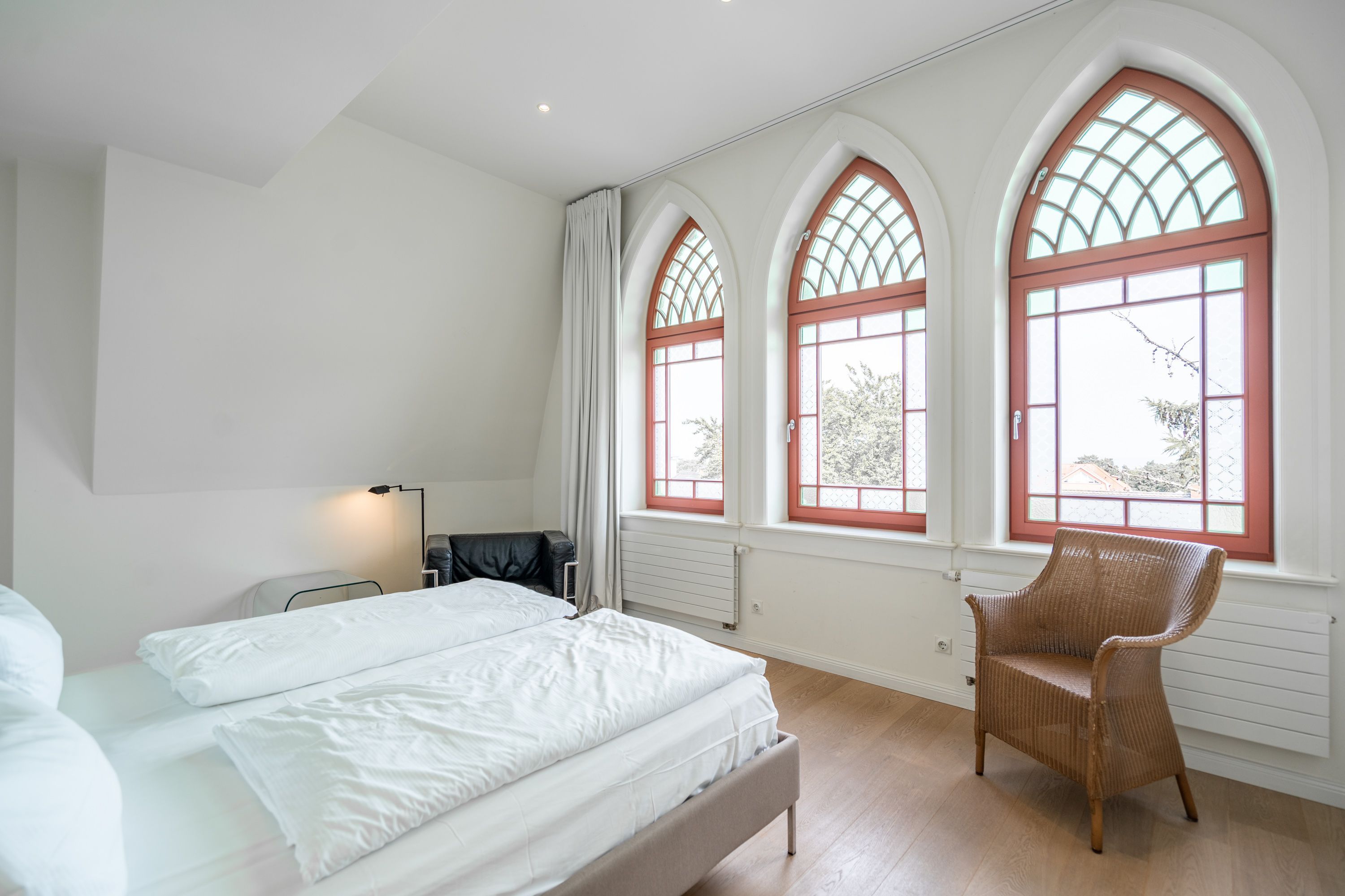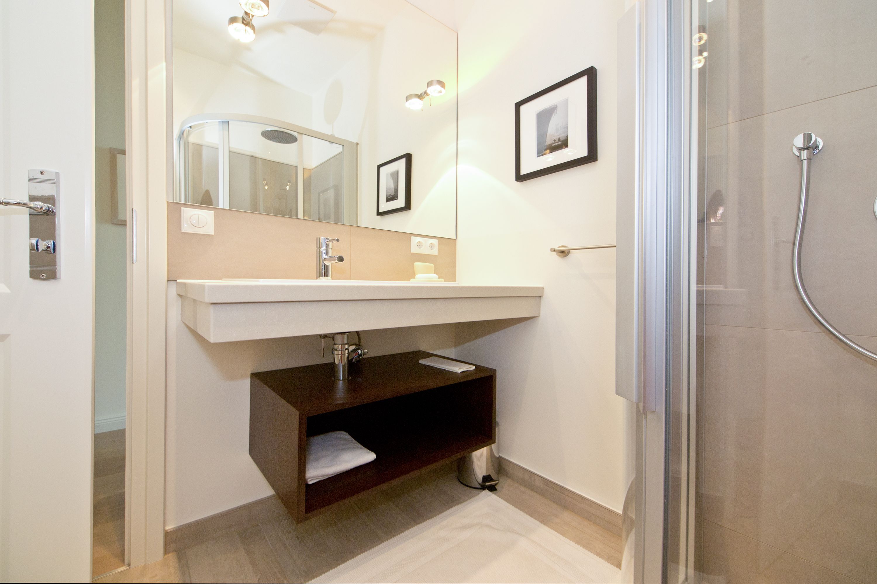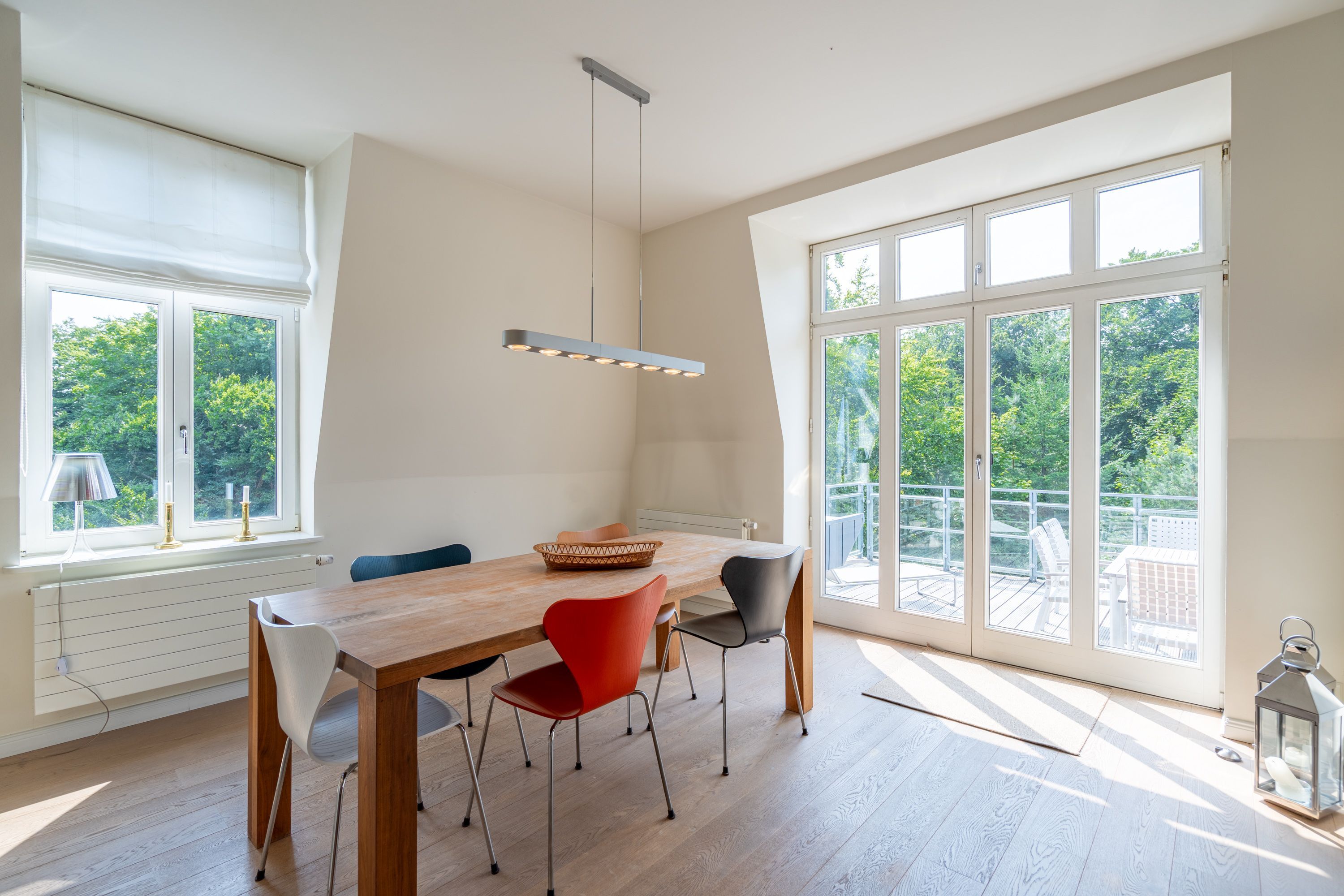 Im Dachgeschoss der Villa Hintze erwarten Sie großzügige 125 qm Luxus! Die neu gestaltete Ferienwohnung 13 (für maximal 4 Personen) offeriert Ihnen ein Wohnambiente der besonderen Art und jede Menge Ausblick auf die Ostsee! Helle, großzügige Räume, moderne Kunst und Möbel von bekannten Designern erfüllen auch anspruchsvolle Urlaubswünsche. Der Wohnbereich mit Sitzgruppe vor dem Kamin und Flat-TV wird ergänzt durch den exklusiven Küchenbereich mit schönem Essplatz. Von hier hat man Zugang zum sonnigen Südbalkon der mit Gartenmöbeln und Sonnenliege von Garpa ausgestattet ist. An den Masterbedroom mit Doppelbett und großem Einbauschrank ist ein wunderschönes Bad mit Badewanne, großer Echtglasdusche und Doppelwaschtisch angegliedert. Und das Beste - schon morgens beim Aufwachen blicken Sie von Ihrem Bett aus über die Dächer der ersten Reihe auf das Meer! Ein zweites, kleineres Schlafzimmer bietet ebenfalls ein Doppelbett (1,60m) und auch ein zweites Bad mit Dusche steht zur Verfügung. Ein ganz besonderes Highlight ist die riesige 100 qm Dachterrasse (über die wohnungseigene Wendeltreppe zu erreichen), die einen traumhaften Blick auf das Meer und Heringsdorf bietet. Hier schaffen die Sitzgruppe, der Strandkorb oder eine bequeme Liegewiese genug Auswahlmöglichkeiten zum Relaxen. In einem separaten Abstellraum auf dem Hausflur können Waschmaschine und Trockener genutzt werden. Für Ihren Komfort sind die Betten bei der Anreise bezogen und Handtücher liegen bereit. Ein Pkw-Stellplatz steht auf dem abgeschlossenen Grundstück zur Verfügung. Das WLAN in der Wohnung ist kostenlos nutzbar.