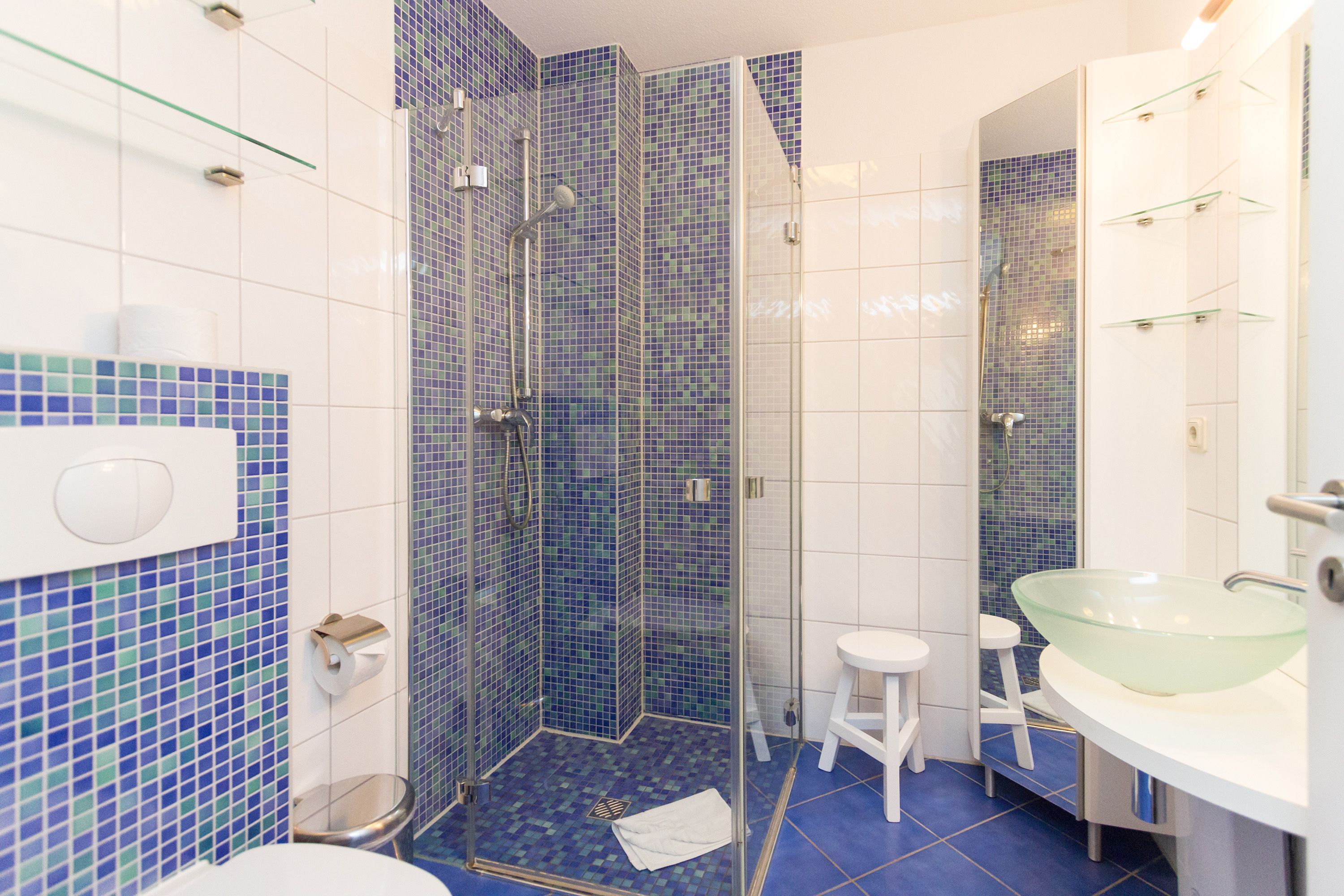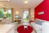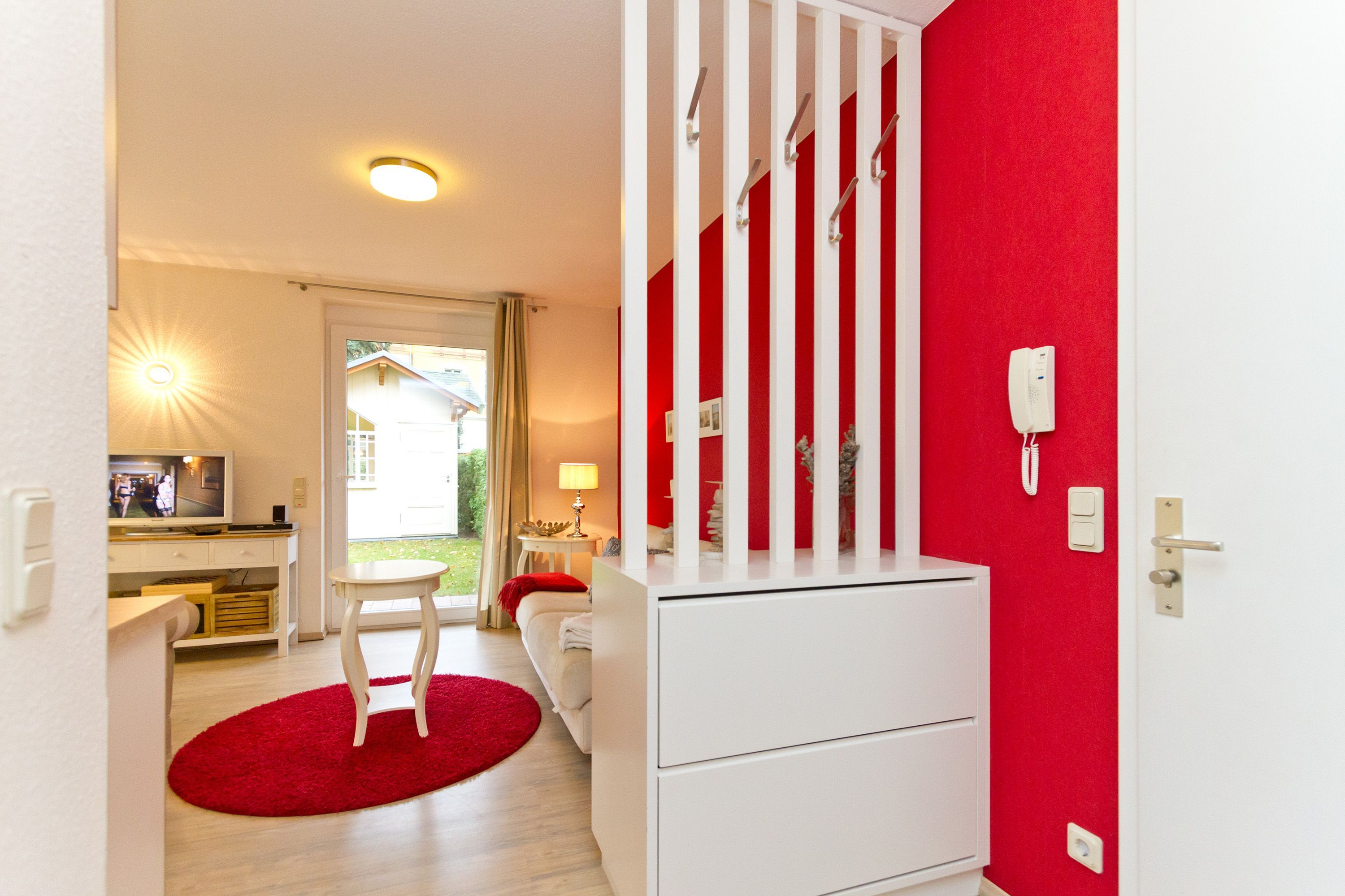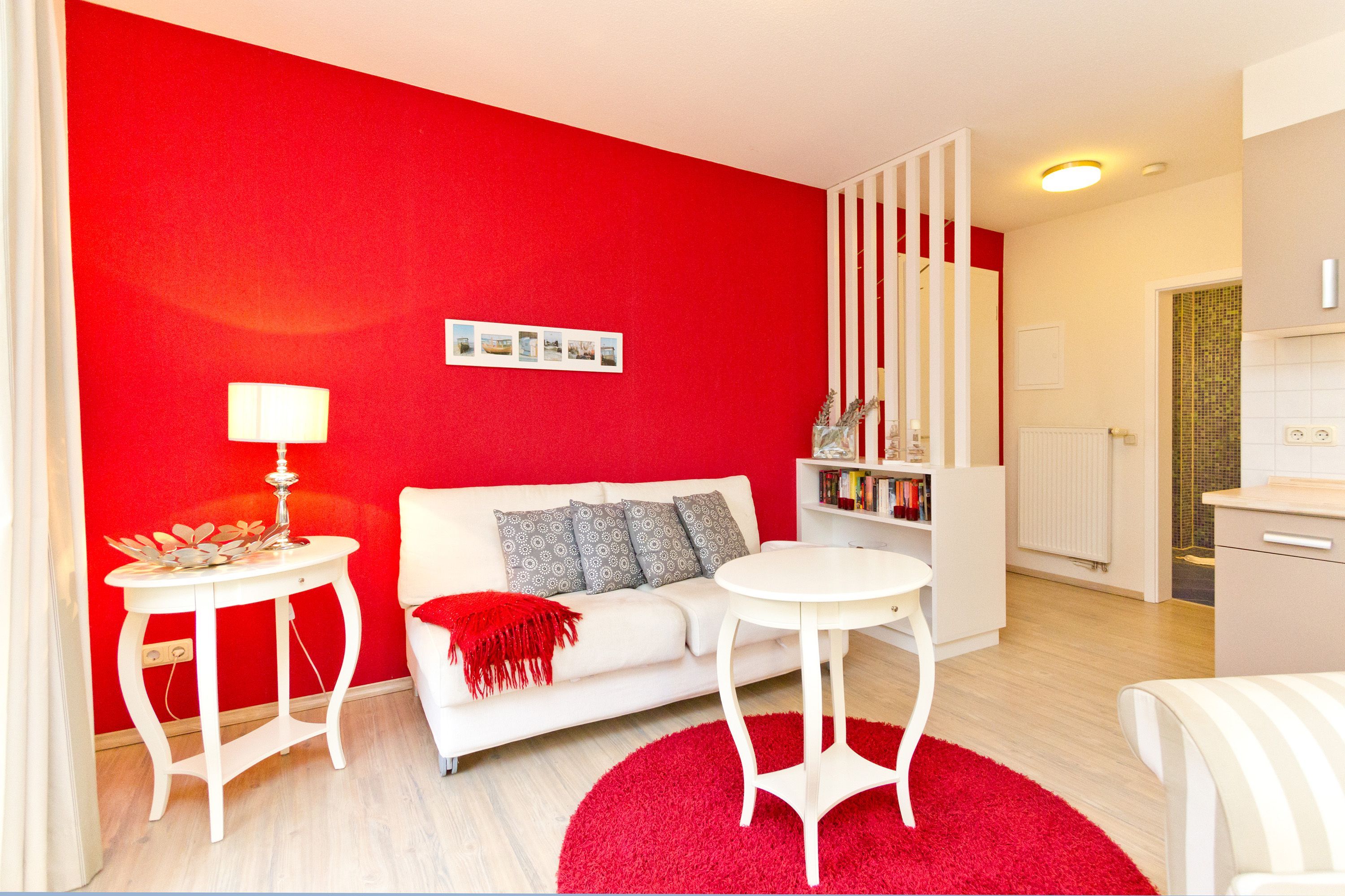 Diese 2-Raum-Ferienwohnung besticht durch eine zeitlos elegante Einrichtung und harmonierende Stoffe und Farben. Das helle Wohnzimmer mit Flachbild-TV und die komplett ausgestattete Küchenzeile eignen sich für einen komfortablen Urlaub. Im stylischen Schlafzimmer mit Doppelbett (1,80m x 2,00m) findet auch ein Babyreisebett Platz. Auf der umlaufenden Terrasse genießen sie die Morgen- und Nachmittagssonne und als besonderes Bonbon steht Ihnen noch ein kleines Teehäuschen vor Ihrer Terrasse zur Verfügung. Auf Wunsch stellen wir für unsere kleinen Gäste ein Kinderreisebett (ohne zusätzliche Matratze & Bettzeug) und einen Kinderhochstuhl ( gegen einen Aufpreis) zur Verfügung. Für Ihren Komfort sind die Betten bei der Anreise bezogen und Handtücher liegen bereit. Ein tolles Domizil für zwei Erwachsene und ein Kleinkind.