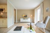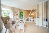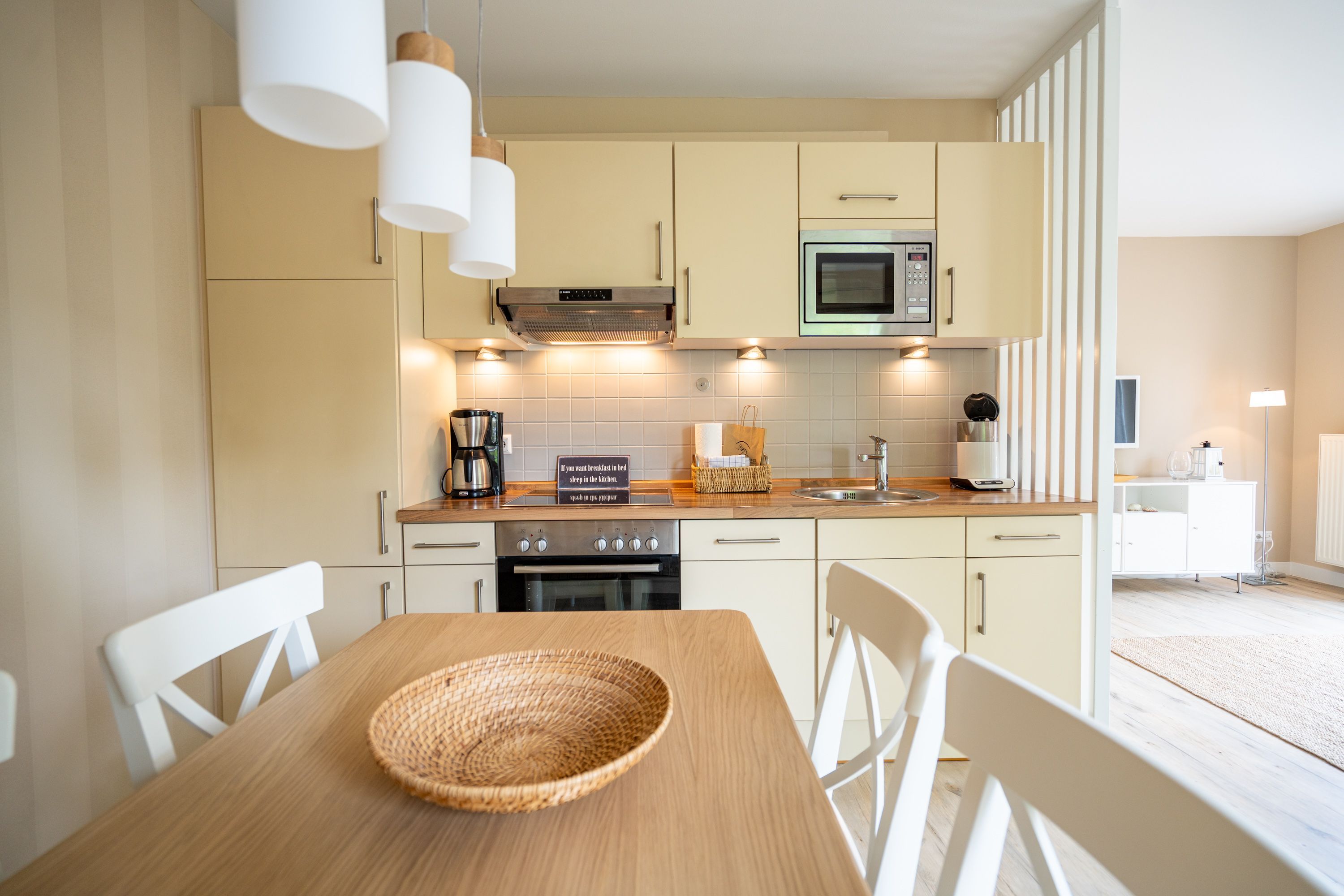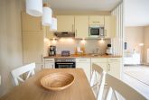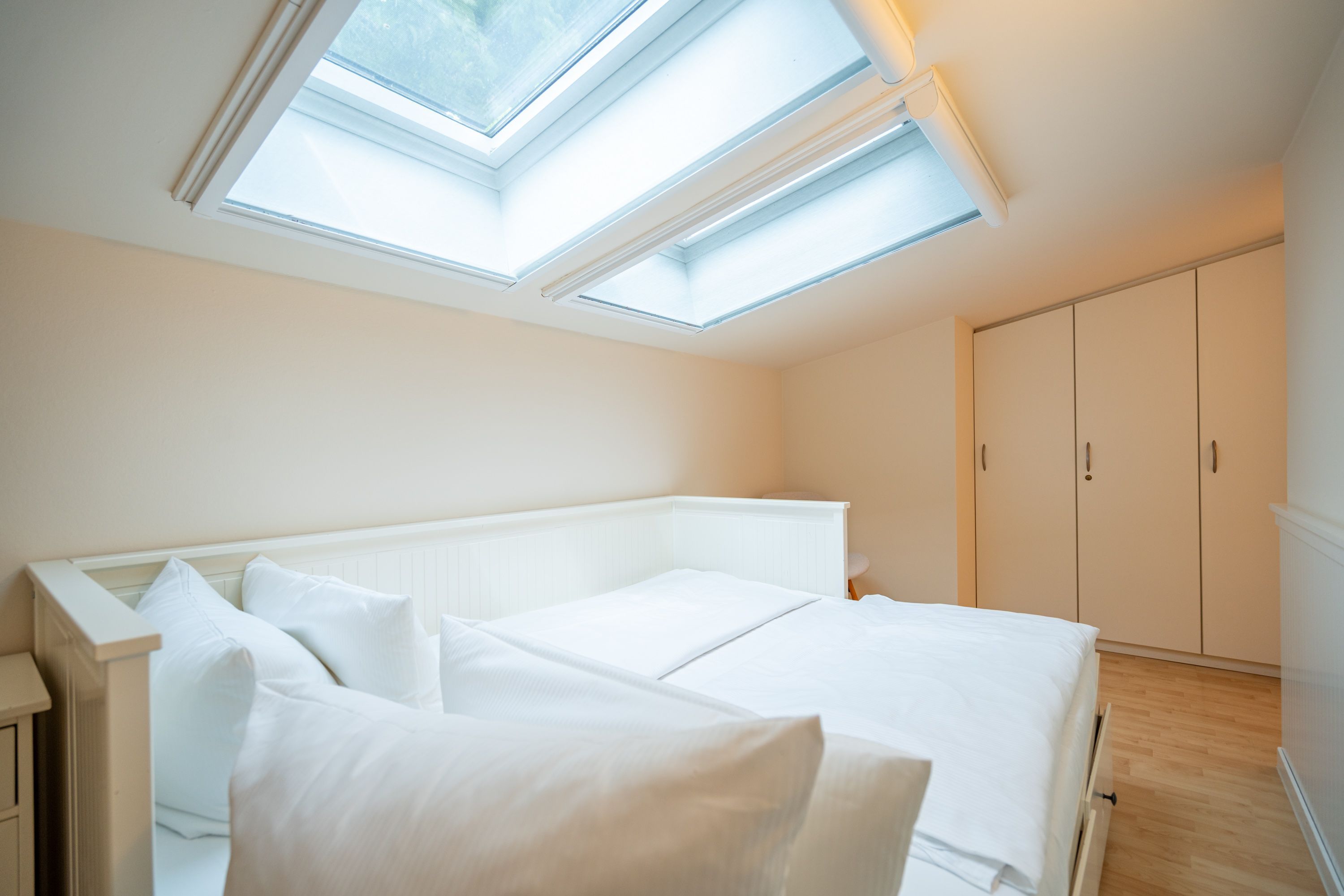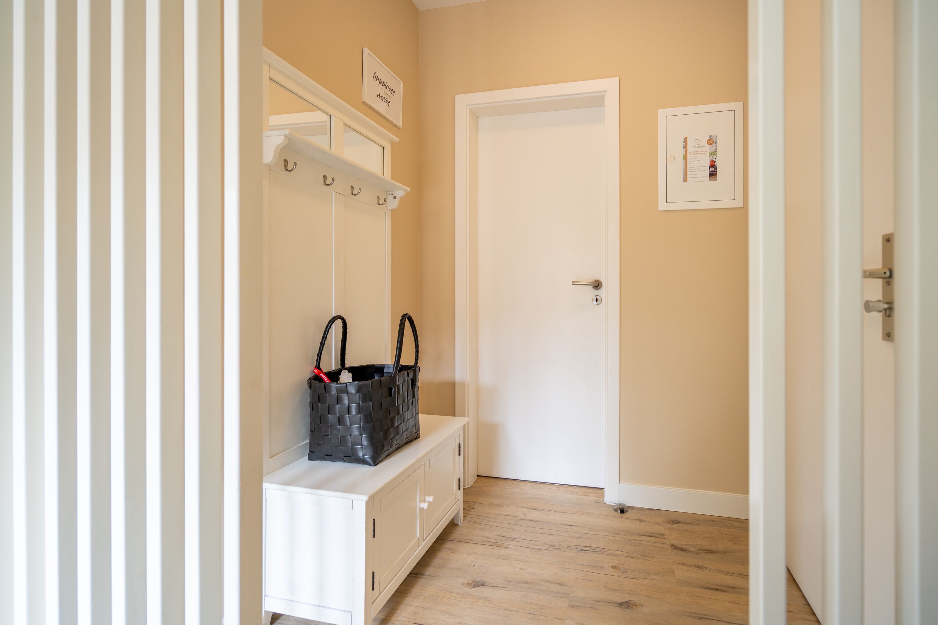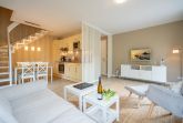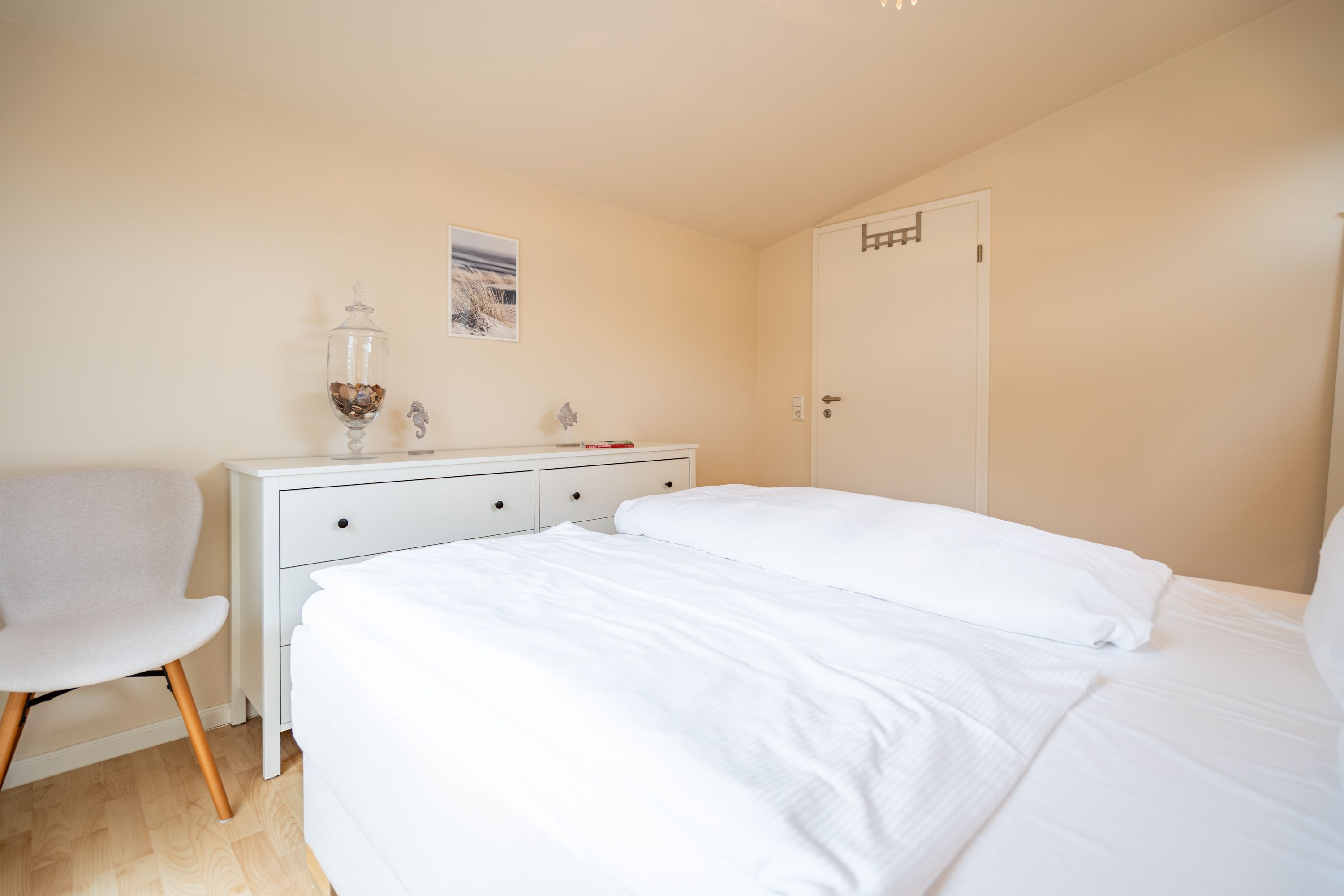 Die helle und freundlich eingerichtete 3-Raum-Ferienwohnung erstreckt sich über 2 Etagen und bietet Ihnen Platz zum Wohlfühlen und Entspannen. In der unteren Etage lässt der lichtdurchflutete Wohnbereich mit offener, komplett ausgestatteter Küchenzeile, 2 großen Südbalkonen und dem Gäste-WC keine Wünsche offen. Eine moderne, hochwertige Ausstattung und liebevolle Details versprechen einen traumhaften Urlaub. Das Schlafzimmer mit Doppelbett, ein Kinderzimmer mit einem ausziehbaren Tages/Doppelbett, sowie das Bad mit Dusche erwarten Sie im Obergeschoss. Auf Wunsch stellen wir für unsere kleinen Gäste ein Kinderreisebett (ohne zusätzliche Matratze & Bettzeug) und einen Kinderhochstuhl ( gegen einen Aufpreis) zur Verfügung. Für Ihren Komfort sind die Betten bei der Anreise bezogen und Handtücher liegen bereit.