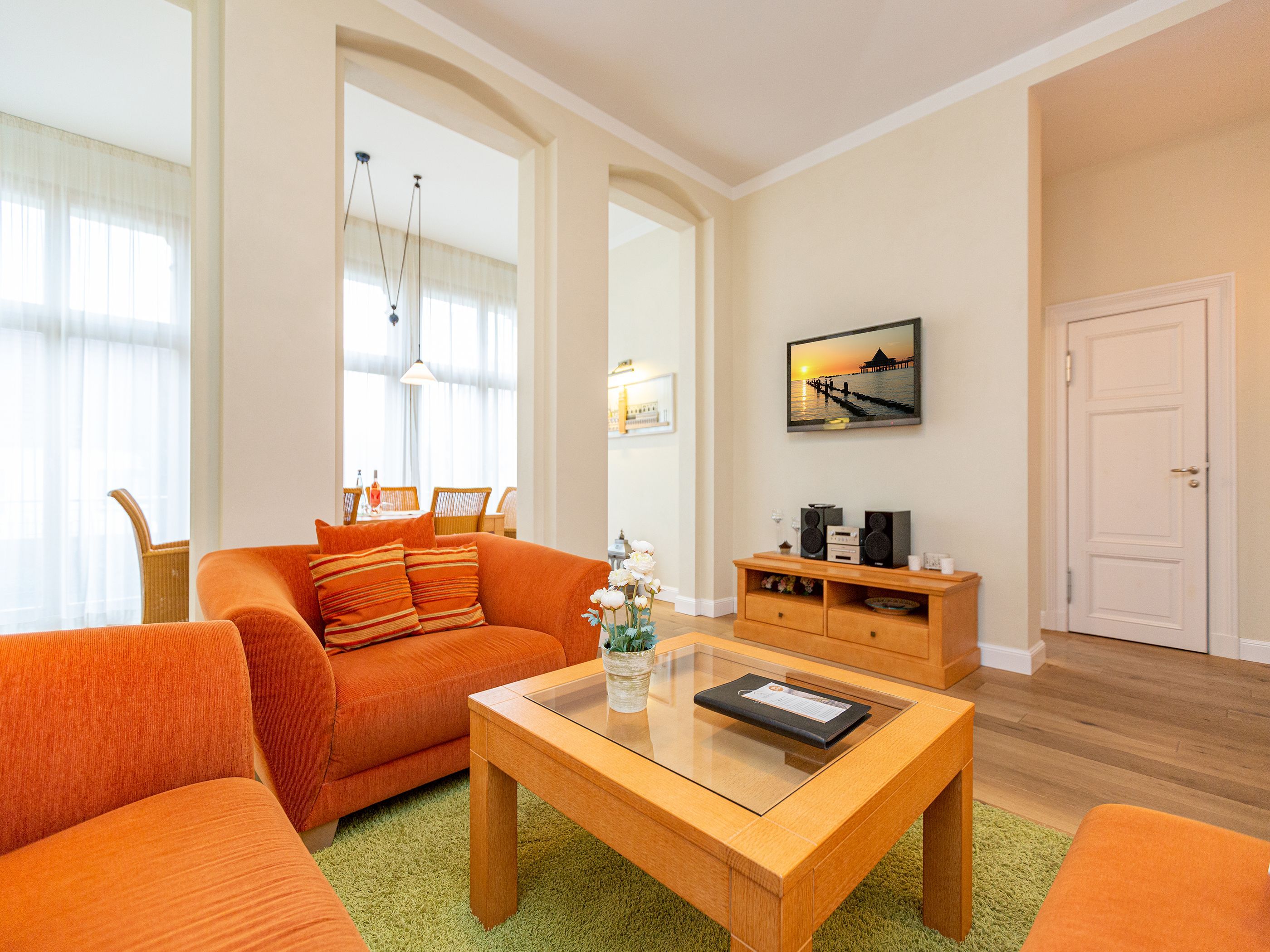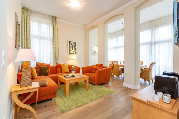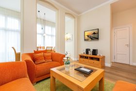 Villa Julius - Freuen Sie sich auf ein Wohnerlebniss der besonderen Art. Eine wunderschöne historische Villa mit großzügigen, stylischen Wohnungen und hochwertigster Einrichtung ist ein passendes Hideaway! Lassen Sie sich begeistern von einem stilvollen Ambiente, das von einer versierten Innenarchitektin gestaltet wurde. Viel Platz und jeglicher Komfort verstehen sich von selbst. Jedes der sechs 2- bzw. 3-Raum-Appartements wurde individuell eingerichtet: Marrakesch, La Mer, American Style... Wohnungen, die sofort Urlaubsatmosphäre versprühen. Auch die wunderschöne Gartenanlage mit einer Grillecke wird Sie begeistern. Das WLAN-Netz im Haus kann kostenfrei genutzt werden. Fahrradständer und ein Pkw-Stellplatz befinden sich am Haus.