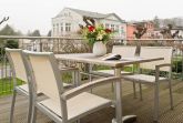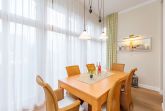 Moderner Landhausstil auf wohnlichen Holzdielen - willkommen in der gemütlichen Ferienwohnung PROVENCE (82 qm). Frische Farben, stilvolle Pinienmöbel auch hier stimmt einfach alles. Dieses großzügige 2-Raum-Appartement im Hochparterre bietet 2 Personen und einem Kleinkind (Babyreisebett und Hochstuhl zubuchbar) Platz für einen entspannten Urlaub. Der großzügige Wohnbereich unterteilt sich in eine bequeme Sitzgruppe mit Flat-TV und den Essbereich in der offenen Veranda. Ein großer Westbalkon verlängert den Wohnbereich und lädt zum Entspannen ein. Die Küche ist selbstverständlich komplett ausgestattet, von hier hat man auch Zugang zum zweiten großen Balkon: Frühstück in der Morgensonne! Auch das Schlafzimmer mit dem Doppelbett (1,80 m breit ) lädt zum Träumen ein. Neben dem schönen Bad mit großer Glasdusche und WC, steht noch ein Gäste-WC zur Verfügung. Für Ihren Komfort ist das Appartement mit dem 1. Satz Handtücher ausgestattet und liebevoll bezogen.