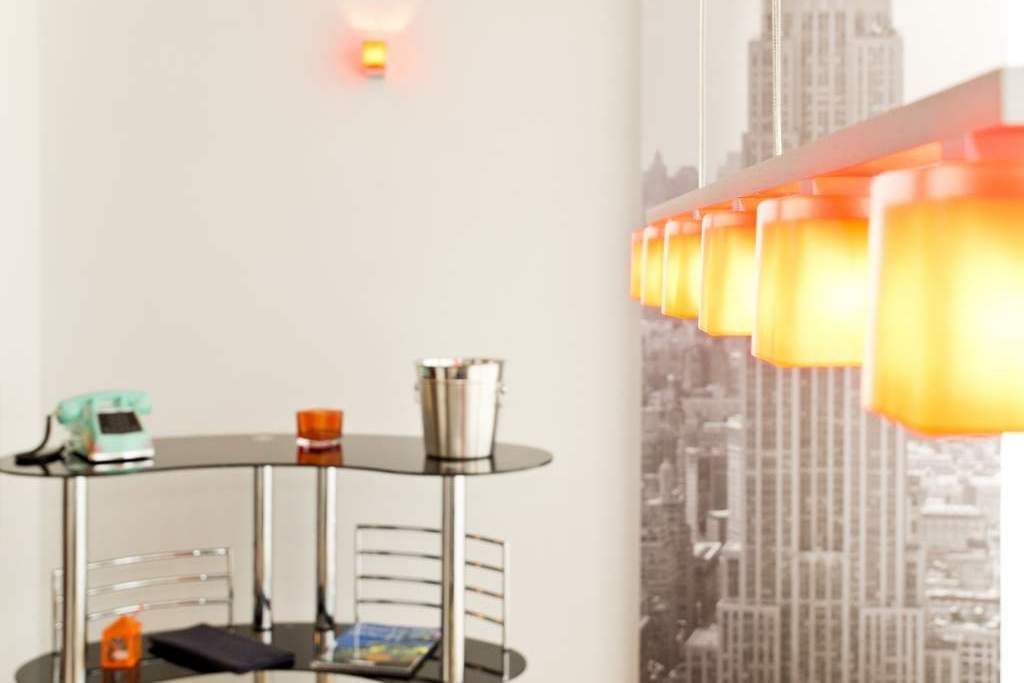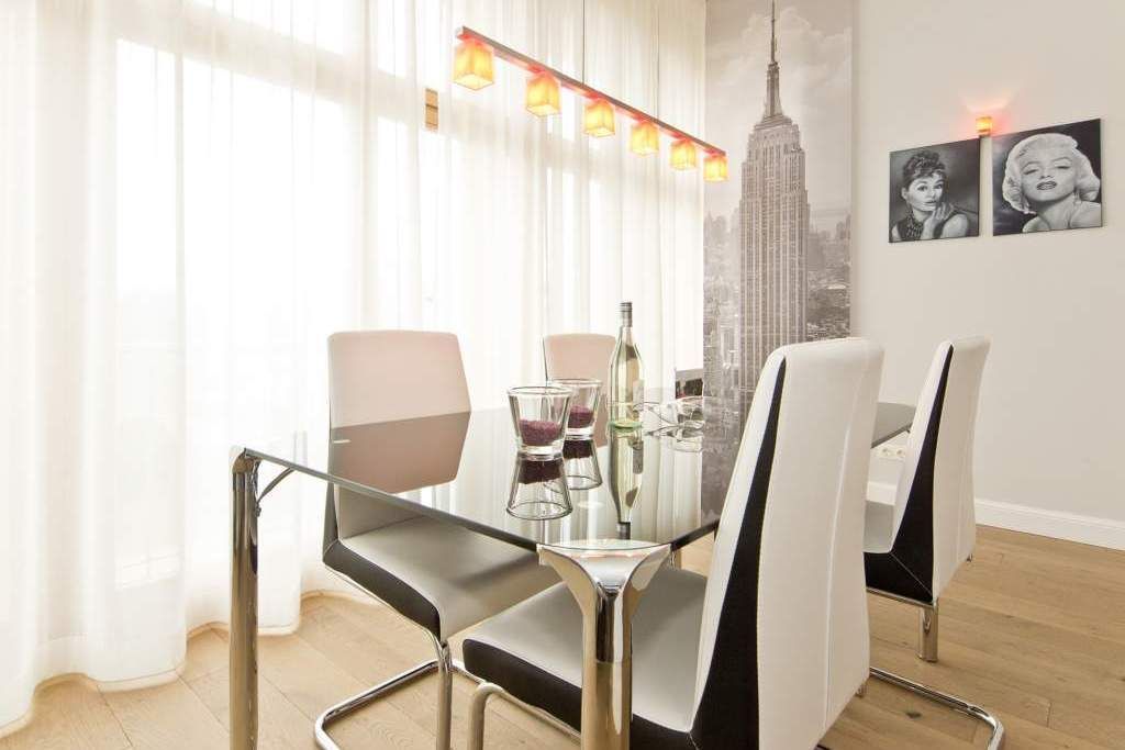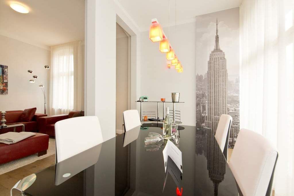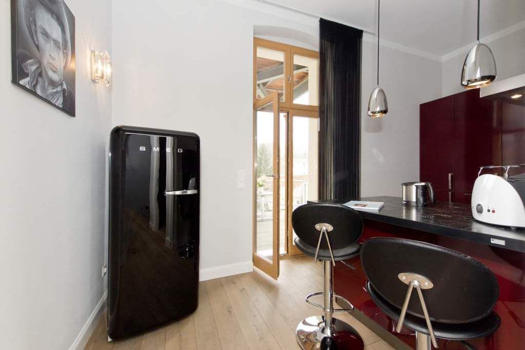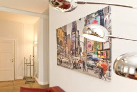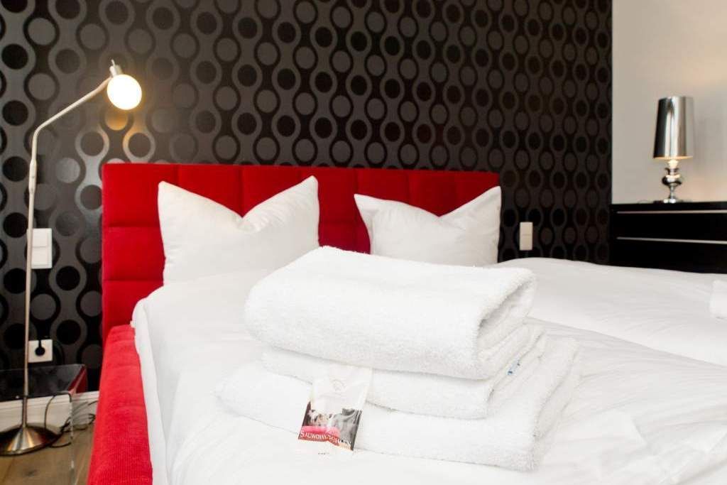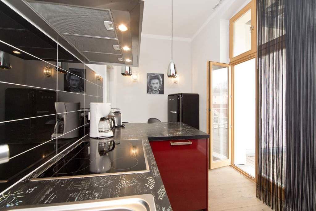 Sie haben eine Vorliebe für Design und Besonderes? Dann heißen wir Sie im AMERICAN STYLE-Appartement Herzlich Willkommen. Diese großzügige 2-Raum-Ferienwohnung ( 75 qm) im 1. Obergeschoss bietet 2 Personen und einem Kleinkind (Babybett /passt nicht ins Schlafzimmer und Hochstuhl zubuchbar) Platz für einen entspannten Urlaub. Der großzügige Wohnbereich unterteilt sich in eine stilechte Ledersitzgruppe mit Flat-TV und den Essbereich in der offenen Veranda. Die rote Küche ist selbstverständlich komplett ausgestattet, von hier hat man auch Zugang zum großen Balkon: Frühstück in der Morgensonne! Auch das Schlafzimmer mit dem Doppelbett (1,60m breit) vor schwarzer Designwand ist ein echtes Highlight. Neben dem stylischen, schwarzgoldenem Wellnessbad mit großer Dusche und WC, steht noch ein Gäste-WC zur Verfügung. Ob großer Kühlschrank, New Yorker Kunst oder eine eigene Bar - trendy mit einer Prise amerikanischem Flair eben. Für Ihren Komfort ist das Appartement mit dem 1. Satz Handtücher ausgestattet und liebevoll bezogen.
