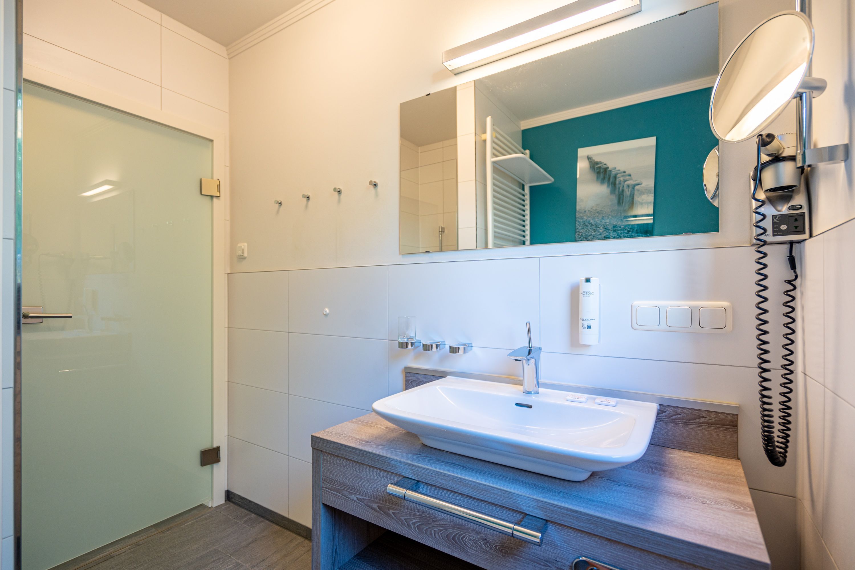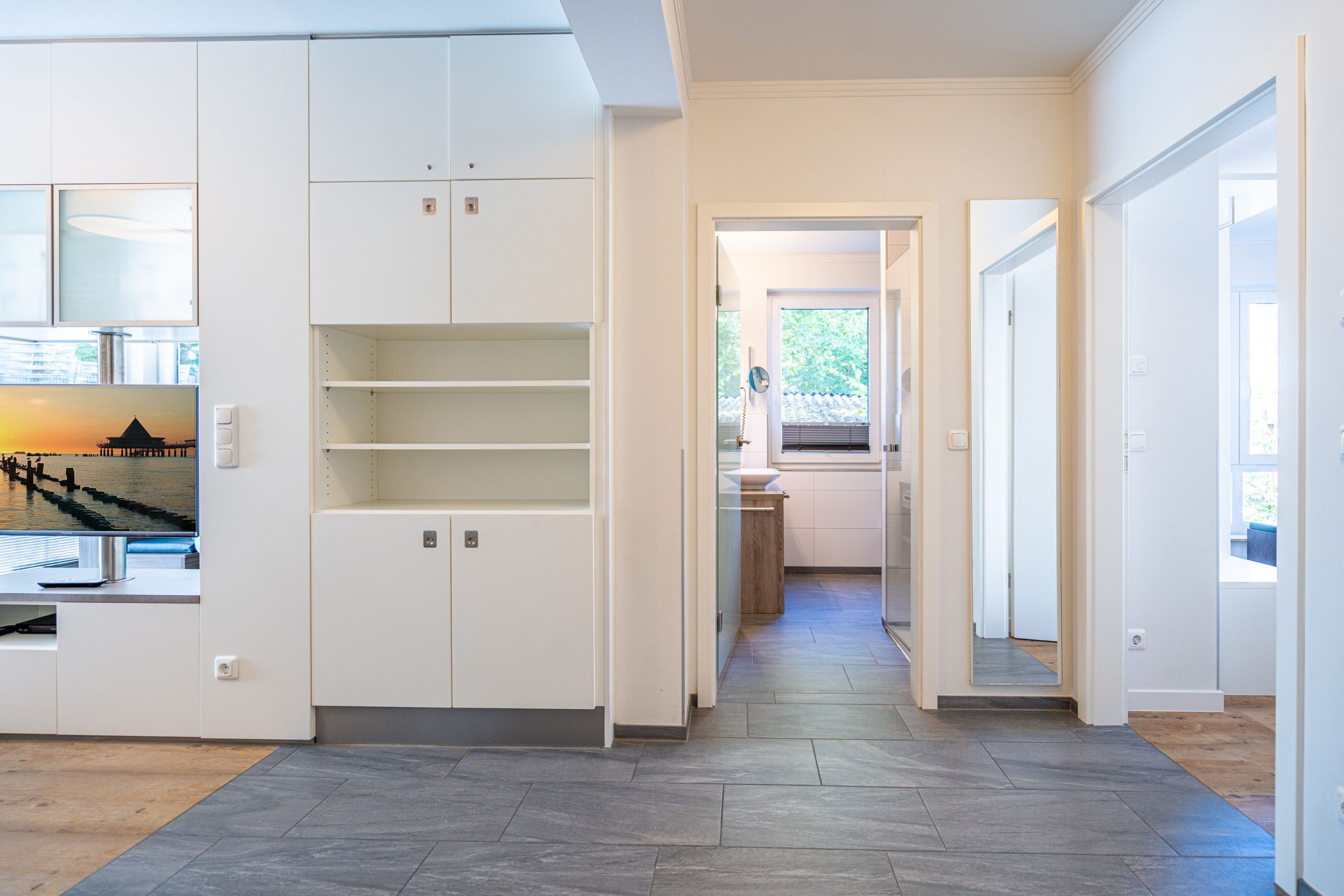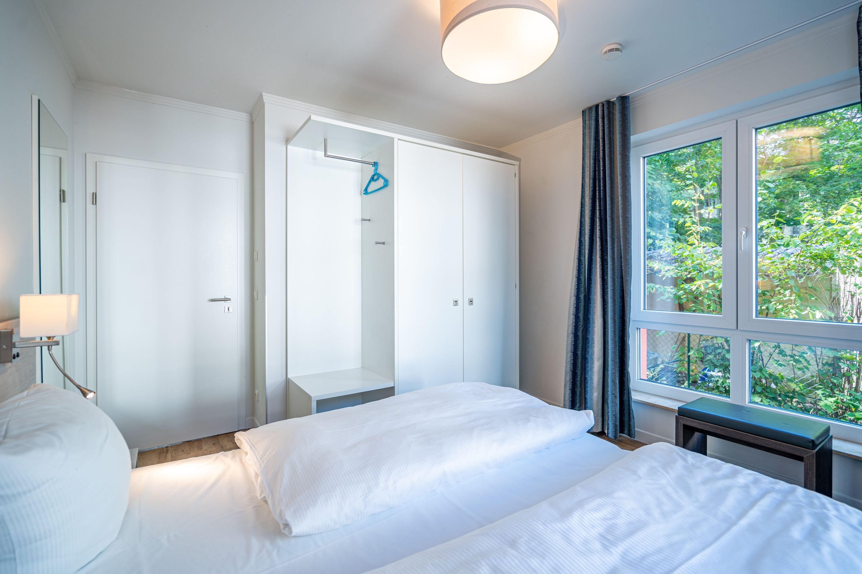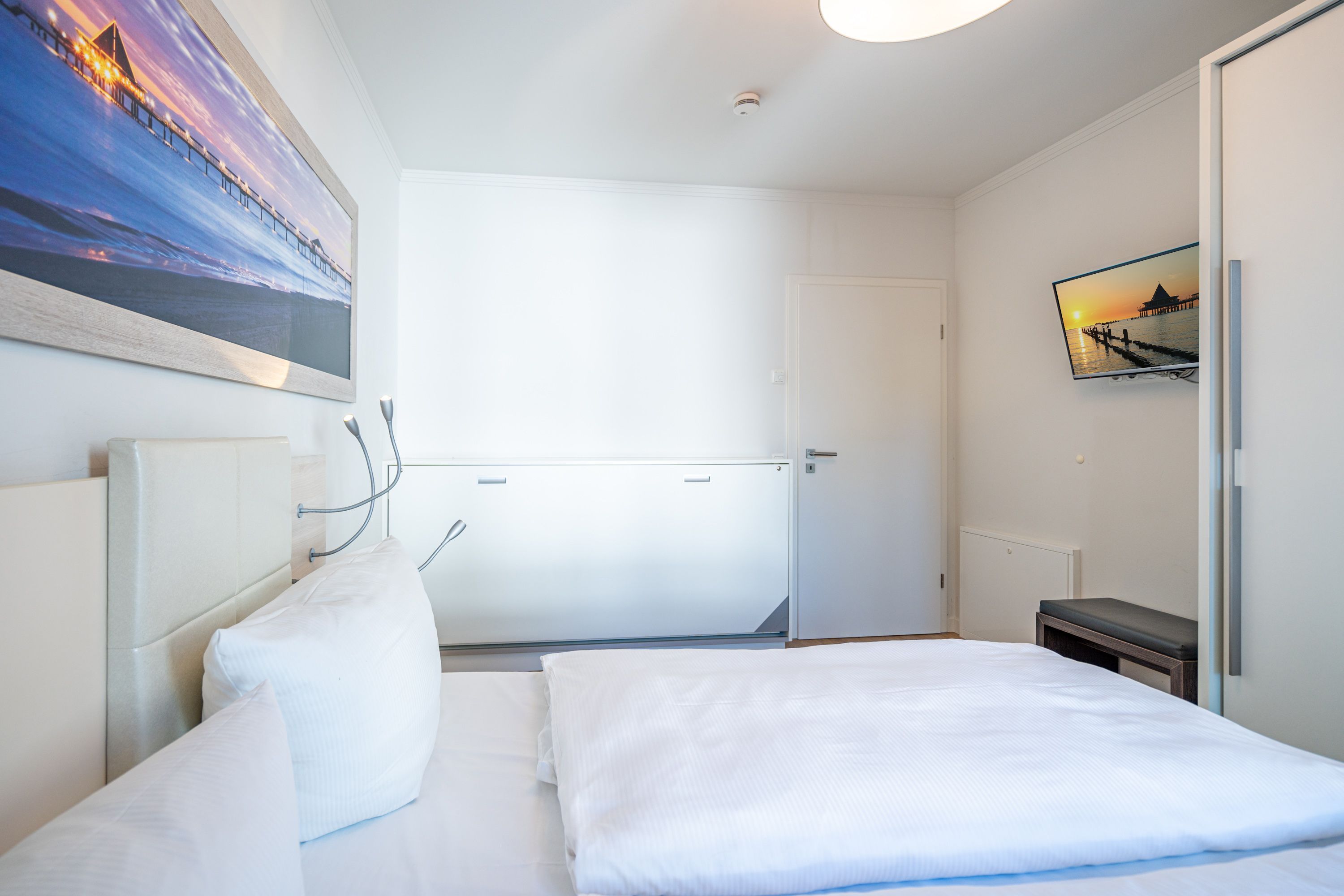 Freuen sie sich auf einen schönen Urlaub in dieser neuen 3-Raum-Ferienwohnung ( 64 qm) im Erdgeschoss der Villa Limora. Helle Farben, modernes Design und Interior wurden kombiniert mit perfekten Einbauten und schaffen so den idealen Urlaubsrahmen für 4 Personen und ein Kleinkind bis 3 Jahre (im Babyreisebett).Der helle Wohnbereich mit großer Ledercouch und Flat-TV schließt sich an die offene, komplett ausgestattete Küche (Cerankochfeld, Geschirrspüler, Mikrowellenkombigerät) mit schönem Essplatz an. Von hier hat man auch Zugang zur großzügigen Südterrasse, die mit Gartenmöbeln ausgestattet ist. Zwei Schlafzimmer mit Doppelbetten (1x 1,80m x2,00m und 1x 1,60m x 2,00m) und jeweils separatem Flat-TV sorgen für erholsamen Schlaf. Die Wohnung wird ergänzt durch ein modernes Duschbad mit ebenerdiger Glasdusche und ein kleines Gäste-WC. In der Tiefgarage (Stellplatz 2) steht ein Pkw-Stellplatz zur Verfügung. Das WLAN-Netz in der Wohnung kann kostenfrei genutzt werden.