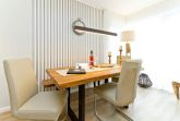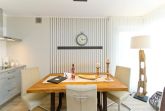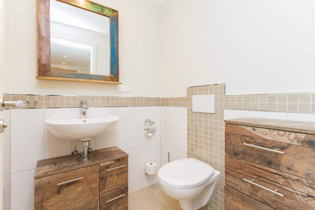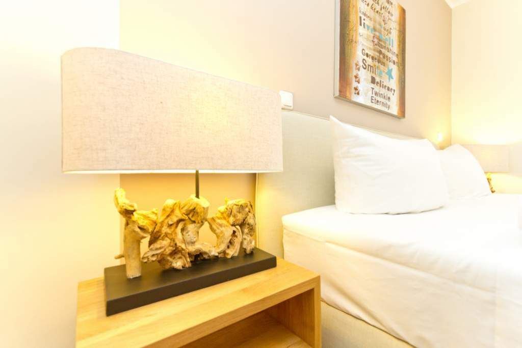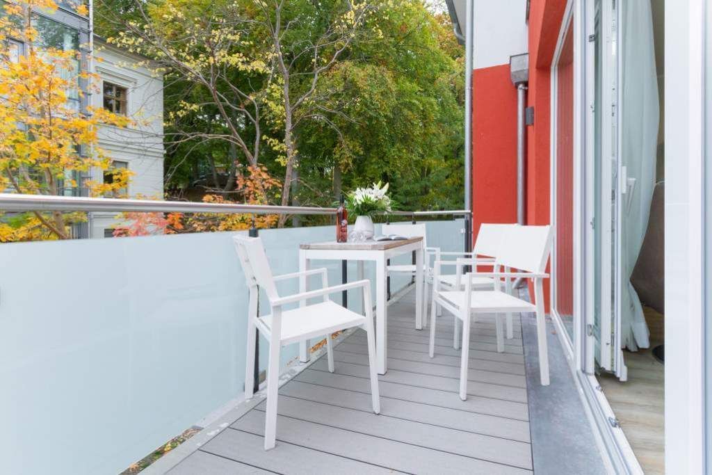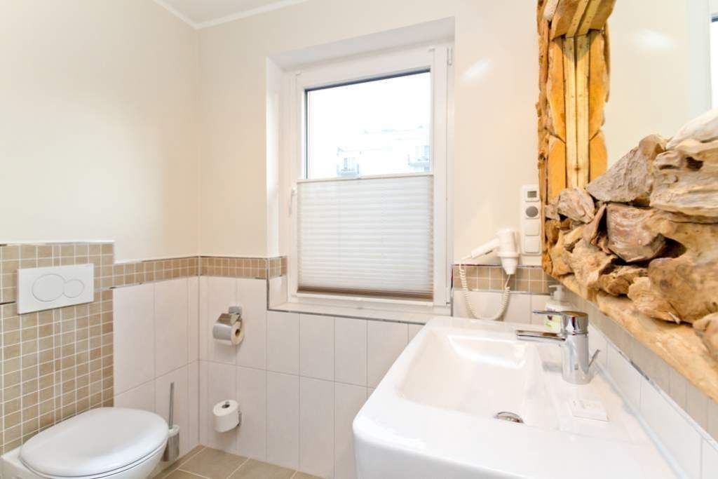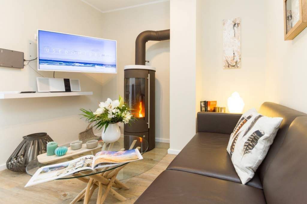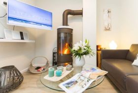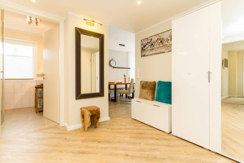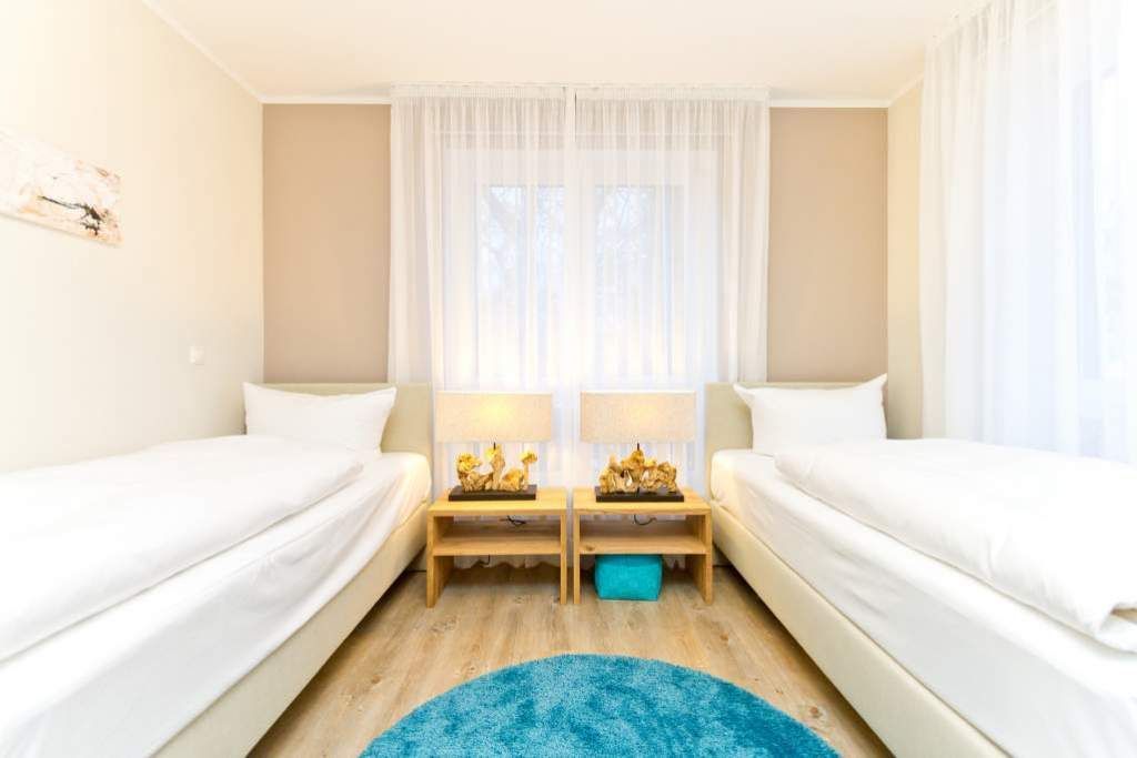 Im ersten Obergeschoss der neuen Villa Limora erwartet Sie eine wunderschön gestaltete 3-Raum-Ferienwohnung (65 qm) für bis zu 4 Personen (inkl. Kleinkind). Harmonisch abgestimmte Farben und Stoffe und hochwertige Möblierung gepaart mit stilvollen Details lassen hier die Arbeit der Innenarchitektin erkennen. Der Wohnbereich mit bequemer Sitzgruppe, Flat-TV und Kaminofen schließt sich an die komplett ausgestattete Küchenzeile mit Essplatz an. Zwei Schlafzimmer mit Boxspringbetten (1.SZ: Doppelbett 1,80x 2,00m/ 2. SZ: zwei Einzelbetten je 0,9x2,00m, hier passt auch ein Babyreisebett) und jeweils Flat-TV sorgen für erholsame Nächte. Das schöne Bad mit Glasdusche und WC wird durch ein zusätzliches Gäste-WC ergänzt. Auch der schöne, großzügige Süd- Balkon mit Gartenmöbel lädt zum Relaxen ein. In der Tiefgarage (Stellplatz 3) steht ein Pkw-Stellplatz zur Verfügung. Das WLAN- Netz in der Wohnung ist kostenfrei nutzbar.