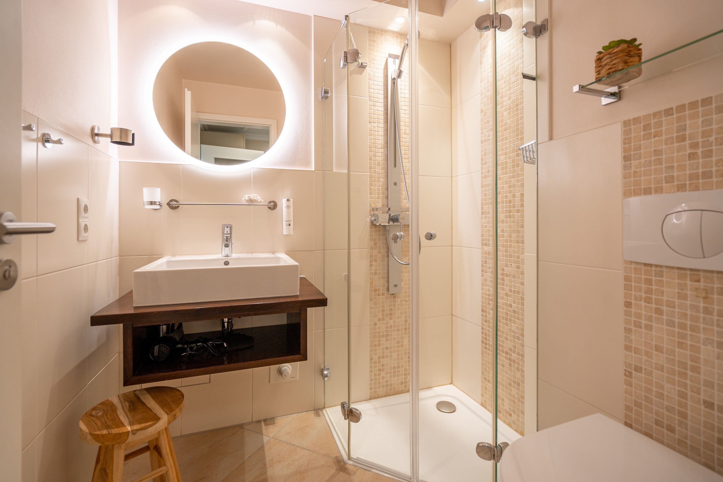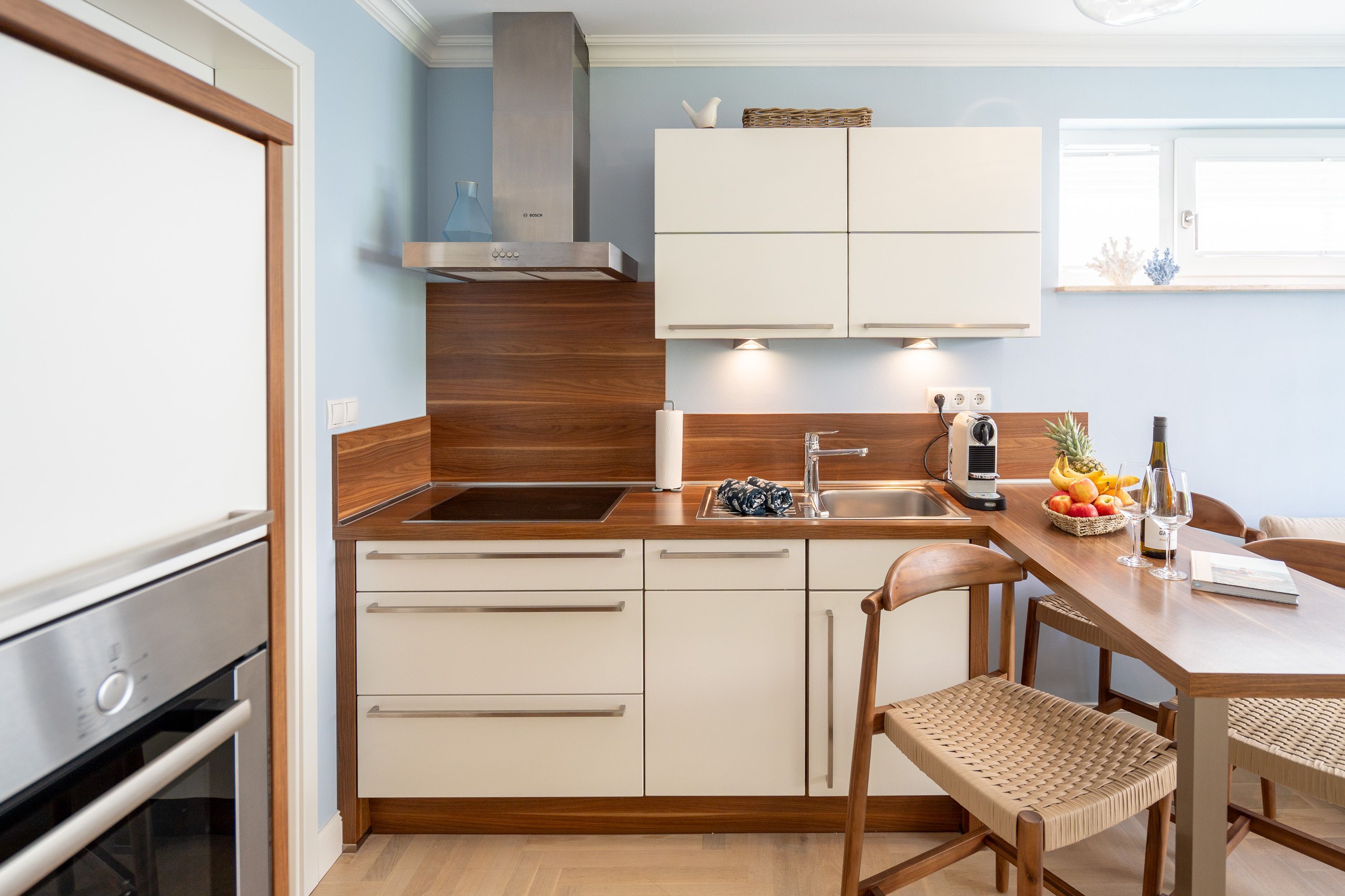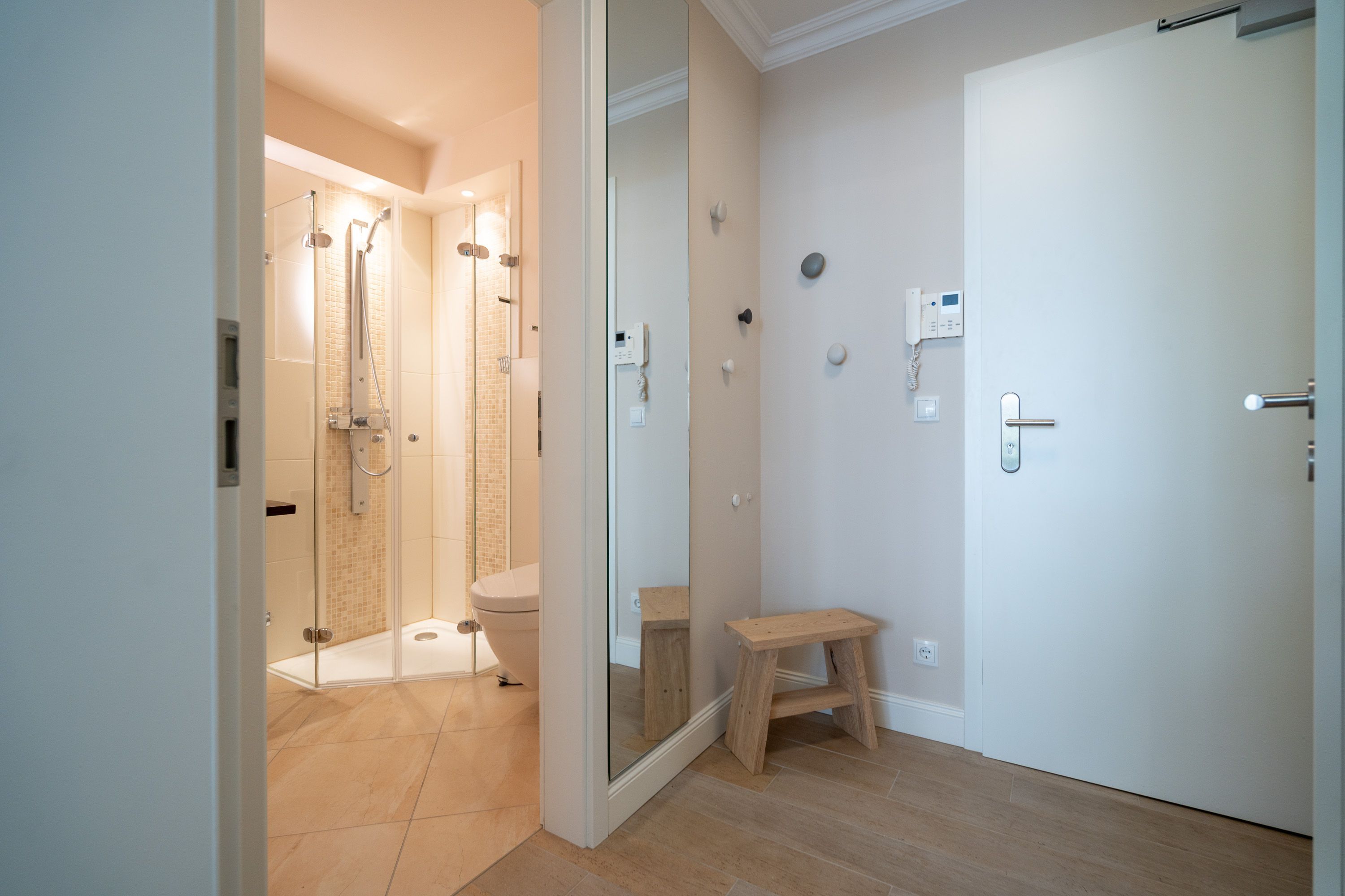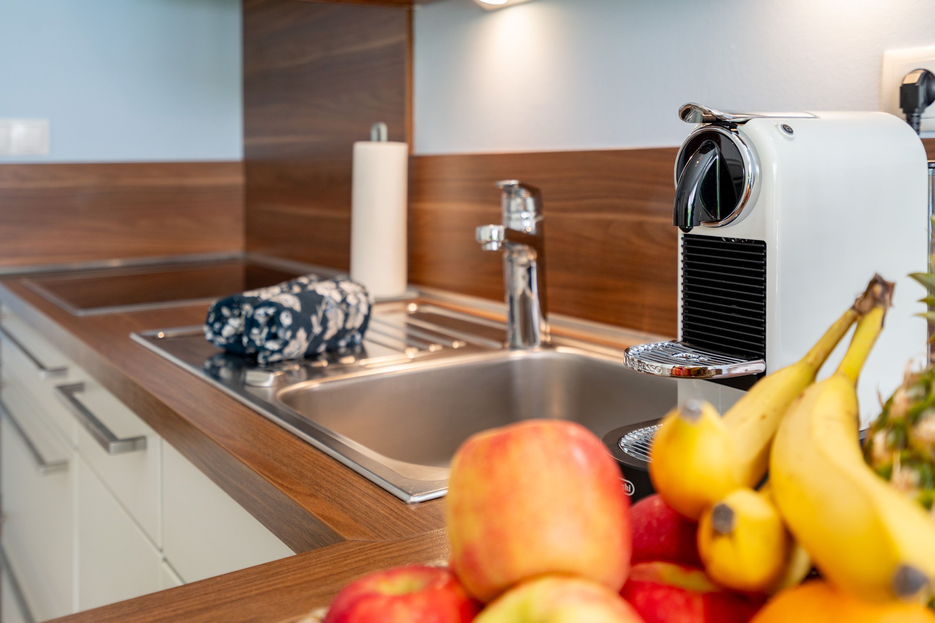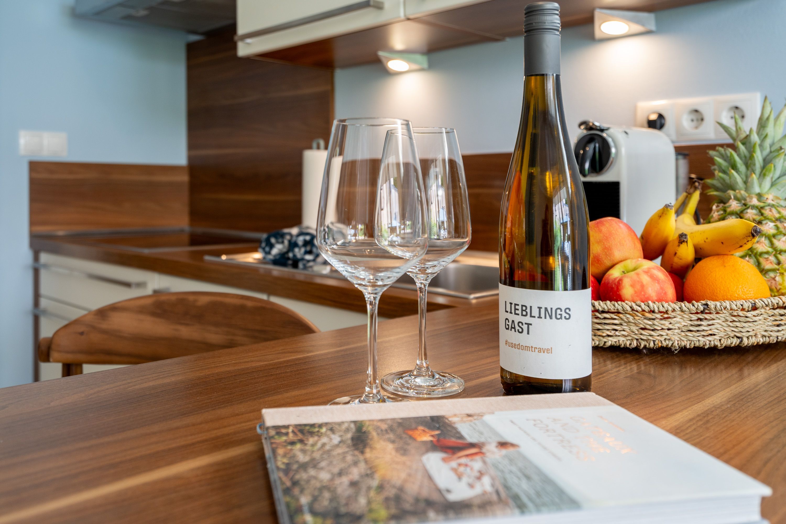 Klein aber fein! Die liebevoll eingerichtete 2-Raum-Ferienwohnung befindet sich im Erdgeschoss und ist 40 qm groß. Detailversessen wurde an alles gedacht, ein Wohnbereich mit Sitzgruppe und Flat-TV lädt zum Verweilen ein. Ergänzt wird es durch eine komplett ausgestattete Küchenzeile mit angrenzendem Essplatz. Ein Schlafzimmer mit Doppelbett (1,80m x 2m) und TV und elektrischen Jalousien sorgt für eine angenehme Nachtruhe. Für Ihren Komfort sind die Betten bei der Anreise bezogen und Handtücher liegen bereit (Erstausstattung). Sonnige Stunden verspricht die nach Süden ausgerichtete Terrasse mit Möblierung. Ein weiteres Highlight ist das exklusive Badezimmer mit integrierter Fußbodenheizung und Echtglas-Dusche. Perfekt für einen Urlaub zu zweit. Für Ihren PKW ist der Stellplatz Nr. 4 in der Tiefgarage reserviert.