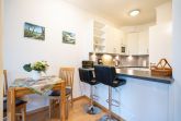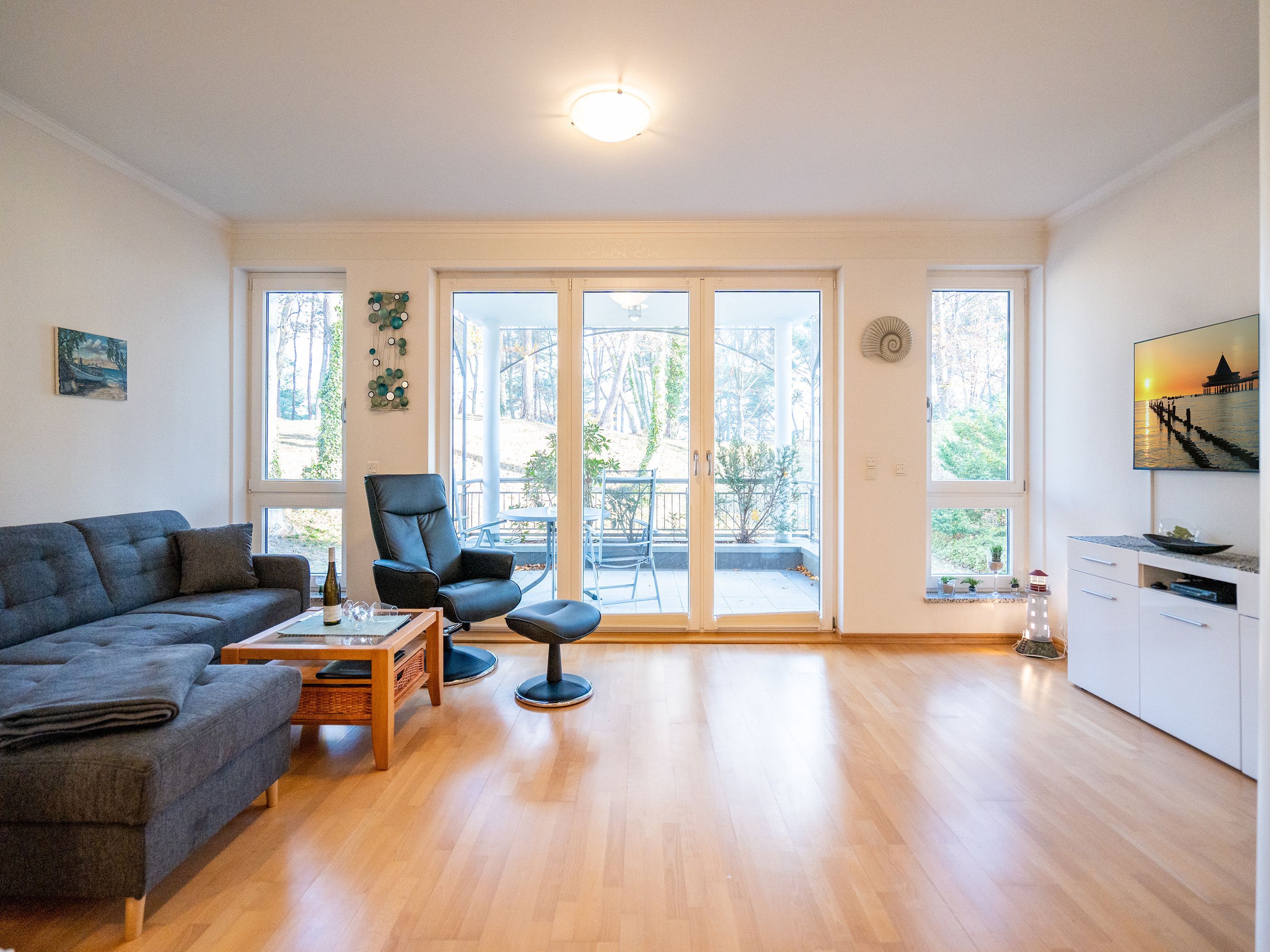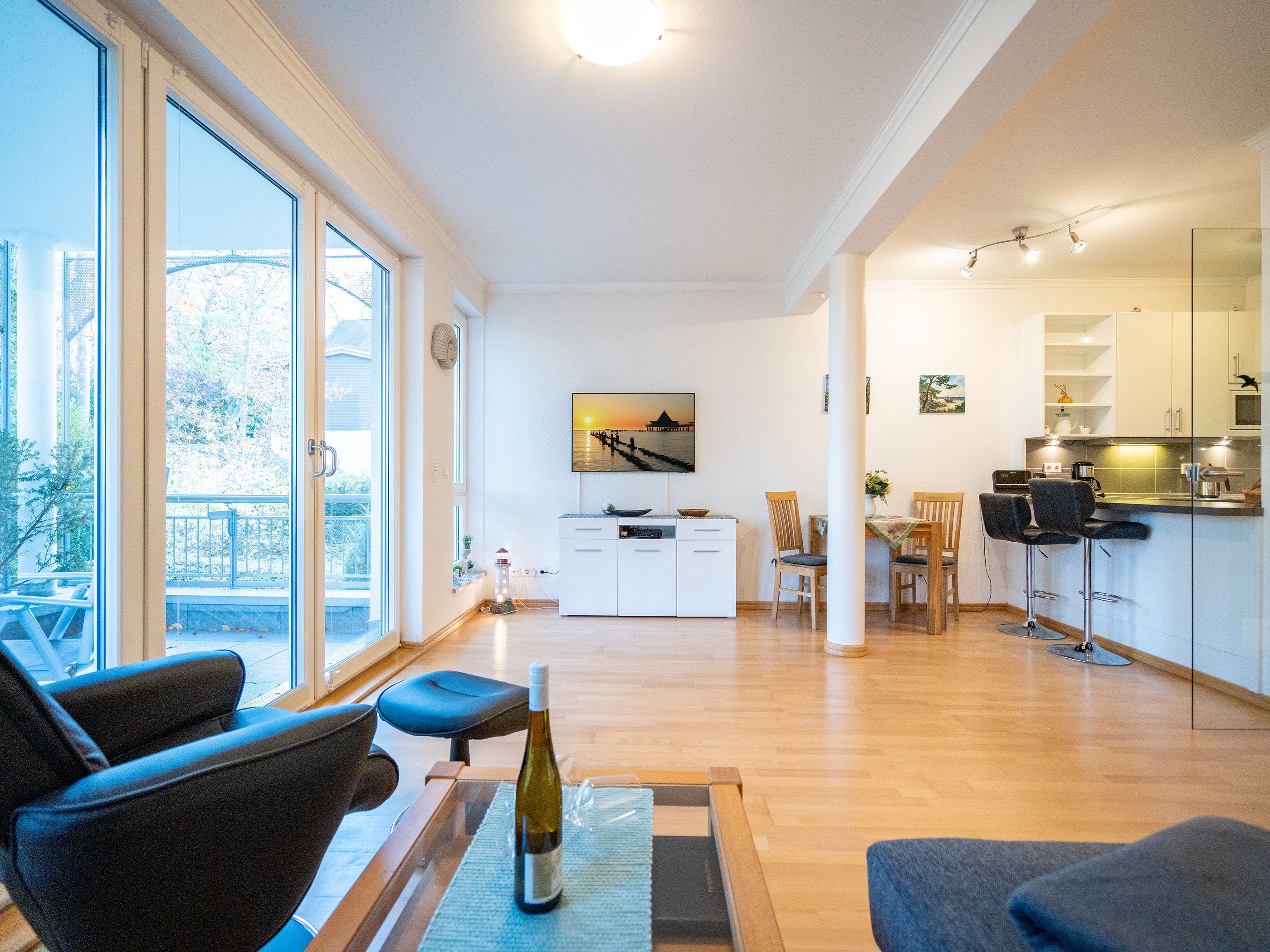 Willkommen in unserer schönen, lichtdurchfluteten 1-Raum-Ferienwohnung direkt an der Promenade von Heringsdorf, perfekt für 2 Personen und befindlich in der 1. Etage. Treten Sie ein in den kombinierten Wohn- und Schlafbereich, der mit einem bequemen Boxspringbett (1,80m x 2,00m), einer gemütlichen Sitzgruppe mit Flat-TV sowie einem CD- und DVD-Player ausgestattet ist. Die offene und komplett ausgestattete Küche verfügt über alles, was Sie benötigen, einschließlich einer zusätzlichen Senseo-Kapselmaschine. Ein Essplatz am Tresen sowie ein separater Essbereich laden zum Genießen Ihrer Mahlzeiten ein. Das Badezimmer ist mit einer Dusche und einem WC ausgestattet. Genießen Sie die frische Luft auf dem großzügigen und überdachten Balkon (ca. 12 qm) mit Blick zur Seeseite. Für zusätzlichen Komfort sorgt eine Fußbodenheizung, und ein PKW-Außenstellplatz (Nr. 17) steht Ihnen direkt am Haus zur Verfügung. Kostenloses WLAN ist ebenfalls verfügbar. Als besonderes Highlight bieten wir Ihnen von April bis Ende September (abhängig von der Witterung) einen kostenlosen Strandkorb am Strand an. Erleben Sie erholsame Tage in unserer charmanten Ferienwohnung und lassen Sie sich von der Schönheit der Region verzaubern.