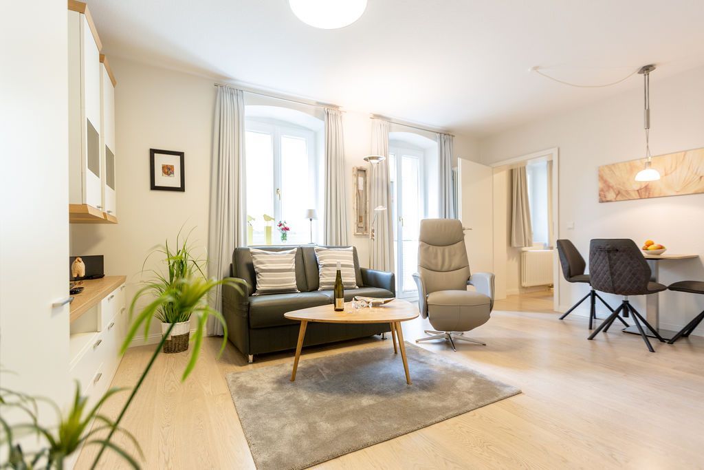 Die Ferienwohnung 2 in der Villa Medici ist ein ideales Urlaubsdomizil für zwei Personen. Der Wohnbereich mit Parkettboden, die geschmackvolle Möblierung mit liebevollen Dekorationen und die komplette Ausstattung gestalten Ihren Urlaub von der ersten Minute an komfortabel. An den Wohnbereich schließt sich eine Terrasse mit Gartenmöbeln an und ein Schlafzimmer mit Doppelbett bietet Erholung für den nächsten Tag. Im Badezimmer mit Dusche gibt es zusätzlich für Ihren Komfort eine Waschmaschine. Auf Wunsch stellen wir für unsere kleinen Gäste ein Kinderreisebett (ohne zusätzliche Matratze & Bettzeug) und einen Kinderhochstuhl ( gegen einen Aufpreis) zur Verfügung. Für Ihren Komfort sind die Betten bei der Anreise bezogen und Handtücher liegen bereit (Erstausstattung).
