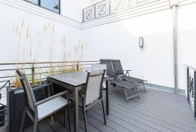 Ankommen, abschalten und neue Energie tanken. Im neu gebauten Quartier 7 im Herzen des Kaiserbades Ahlbeck fällt Ihnen das sicher ganz leicht. Moderne und stilvoll eingerichtete Appartements laden zum Wohlfühlen und Entspannen ein. In den ersten und zweiten Stock gelangen Sie via Fahrstuhl. Schöne, alte Villen umgeben die Anlage, verleihen dem Wohngefühl ein besonderes Flair. Die Zwei- und Drei-Zimmer-Appartements sind geräumig, offen und hell und teilweise mit einer Sauna oder einem Kamin ausgestattet. Wohnkomfort vom Feinsten lädt zum Faulenzen ein. Genießen Sie die frische Ostseeluft auf dem Balkon oder der Terrasse, denn jede Wohnung besitzt einen kleinen Außenbereich. An stürmischen Tagen können Sie von hier aus sogar die Wellen rauschen hören. Das beste Rezept für einen erholsamen Schlaf. Offene Wohnbereiche und voll ausgestattete Küchen sorgen für alle Annehmlichkeiten. Das Haus bietet eine Tiefgarage (Einfahrthöhe ca. 2,03 m). Einige Wohnungen verfügen über einen Kellerraum, der als Unterstellmöglichkeit für Fahrräder genutzt werden kann. Das WLAN-Netz ist für alle kostenfrei. Willkommen also in Ihrem kleinen Urlaubsparadies.