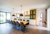 Gestalten Sie Ihren Urlaub ganz nach Ihren Wünschen in diesem großzügigen Feriendomizil. Auf insgesamt 224qm und drei Ebenen bietet das Ferienhaus ab Juni 2024 sogar Platz für bis zu 12 Personen und 2 Kleinkinder (bis 2 Jahre im Kinderreisebett). Ob Großfamilie oder Firmenevent - genießen Sie modernen Wohnkomfort und die Exklusivität Usedoms Steilküste in Ihrer direkten Umgebung zu haben (Entfernung 295m). Die ruhige Lage des Einfamilienhauses trägt darüber hinaus zu Entspannung und Erholung in Ihrem Urlaub bei. Im Erdgeschoss befindet sich der offene Wohnbereich mit großzügiger Wohnlandschaft und Design-Sesseln. Ein Kamin und ein 55 Zoll Flat-TV sorgen für entsprechende Gemütlichkeit an Ihren Urlaubsabenden. Der angrenzende Essbereich ist mit einem 3,60m langen Esstisch mit massiver Eichenplatte ausgestattet. Hier finden bis zu 12 Personen ausreichend Platz für gemeinsame Urlaubsstunden. Die modern und voll ausgestattete Küche mit Markengeräten (Backofen, Ceranfeld, Mikrowelle, Spülmaschine, Kühlschrank mit Gefrierfach, Mixer und Kleinküchengeräte) lässt keine Wünsche beim Zubereiten Ihrer Speisen offen. Von hier aus sowie über das Wohnzimmer gelangen Sie auf die 35qm große Terrasse mit ausreichend Sitzmöglichkeiten für Sie und Ihre Begleitpersonen. Ebenfalls zugehörig zum Erdgeschoss ist neben einem Hauswirtschaftsraum (ausgestattet mit einem Waschtrockner) ein Badezimmer mit WC und Finnischer Sauna (geeignet für 4-5 Personen) sowie ein separates Gäste-WC und ein Schlafzimmer mit Boxspringbett (1,80m x 2,00m). Im ersten Obergeschoss befinden sich 5 weitere Schlafzimmer, die alle mit komfortablen Boxspringbetten (1,80m x 2,00m), Schrank, elektrische Rolläden und Flat-TV ausgestattet sind. Auch zwei weitere Badezimmer mit Dusche, WC und Waschtisch gehören zum Komfort dieser Etage. Ein weiteres Wohnzimmer mit Sitzlandschaft und 55 Zoll Flat-TV bietet zudem die Möglichkeit sich in dieser Etage zurückzuziehen. Unter dem Dach (in der zweiten Etage) verbirgt sich ein weiteres Zimmer, dass sich als Spielzimmer eignet. Große Dachfenster und Dachschrägen sorgen hier für besondere Gemütlichkeit. Ein Highlight dieses Ferienhauses ist der 940qm große Garten. Neben einem Grill befindet sich auch ein abschließbares Gartenhaus auf dem Grundstück, dass Abstellmöglichkeiten für Fahrräder, Bollerwagen oder Kinderwagen bietet. Kostenfreies W-Lan, drei Safes und insgesamt drei PKW-Stellplätze direkt am Grundstück runden Ihren perfekten Urlaub in diesem Ferienhaus ab.