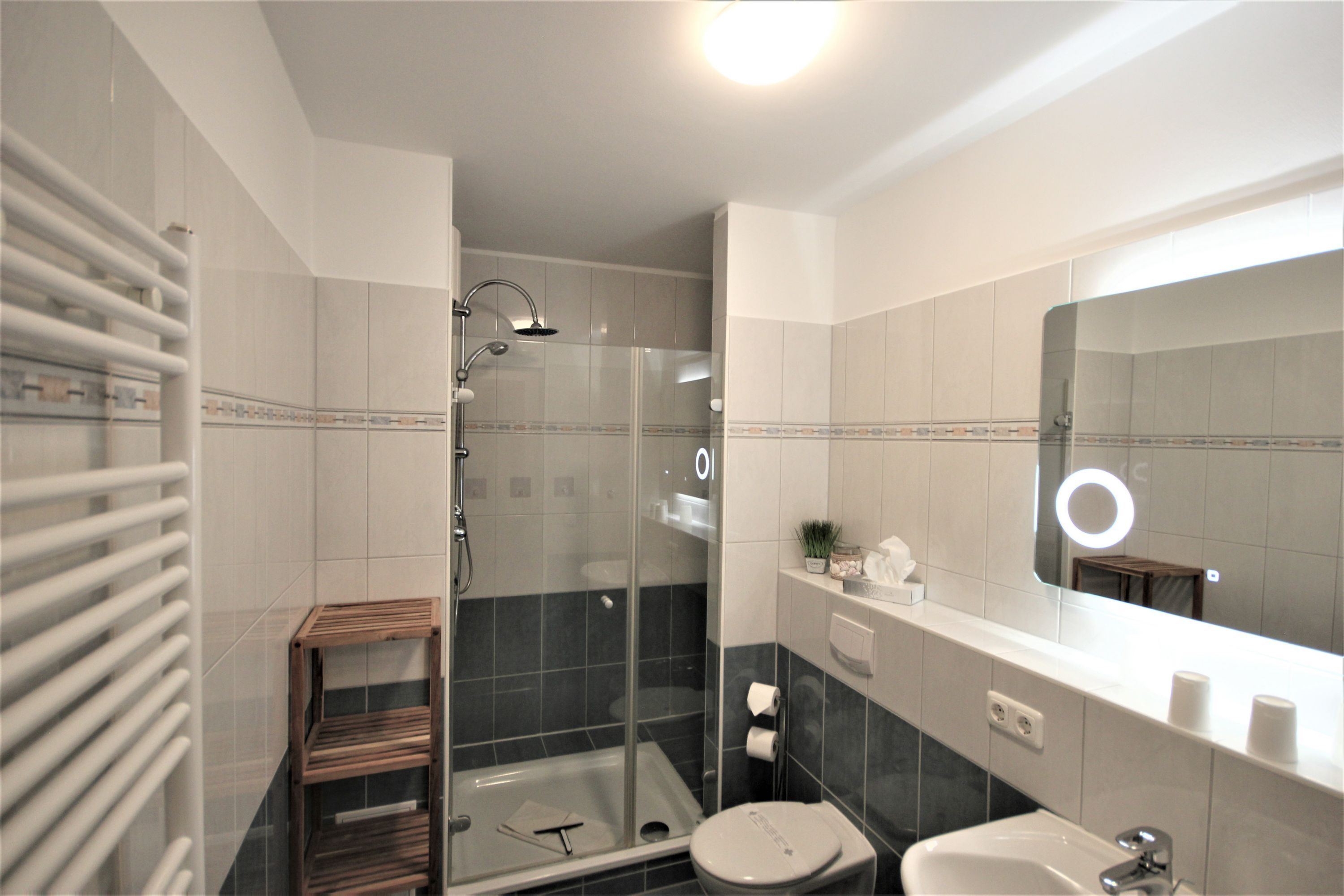 Ihre 2-Zi. Wohnung 219RB11 (Nichtraucher) besitzt eine Größe von ca. 57 qm und ist mit bis zu 4 Personen belegbar. Sie befindet sich im 1. Obergeschoss des Hauses. Auf dem Frühstücksbalkon werden Sie von der Morgensonne gekitzelt. Hier befindet sich auch ein Strandkorb, welcher zum Verweilen einlädt. Die moderne Ferienwohnung in Vintage-Optik teilt sich auf in einen Flur mit Garderobe und großem Schrank für Ihr Gepäck, einen Wohnraum mit offener Küche und Essbereich, ein separates Schlafzimmer sowie ein Duschbad. Der großzügige Wohnbereich verfügt über eine Sitzecke mit Schlaffunktion für die 3. / 4. Person, einen Flachbild-TV samt DVD-Player, Radio sowie einen gebührenfreien WLAN-Zugang. Im Schlafraum befindet sich ein Doppelbett, ein zusätzlicher TV und ein Kleiderschrank. Vom Schlafzimmer und auch vom Wohnbereich gelangen Sie auf den Balkon. Verdunklungsstoffe im Wohn- und Schlafbereich bereiten eine behagliche Nachtruhe. Die Küchenzeile ist mit Geschirrspüler, Ceranfeld, Backofen, Kühl-/Gefrierkombination, Kaffeemaschine, Wasserkocher, Toaster und anderen diversen Küchenhelfern komplett ausgestattet. Das Badezimmer verfügt über einen Waschtisch mit großem Spiegel, eine Dusche, WC und einen Handtuchheiztrockner. Ein kostenfreier Tiefgaragenstellplatz steht Ihnen während Ihres Aufenthaltes zur Verfügung. Rundum eine schön eingerichtete Wohnung, die zum Entschleunigen einlädt. Genießen Sie Ihren Urlaub und machen Sie diese Wohnung zu Ihrem zweiten Zuhause!