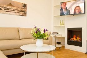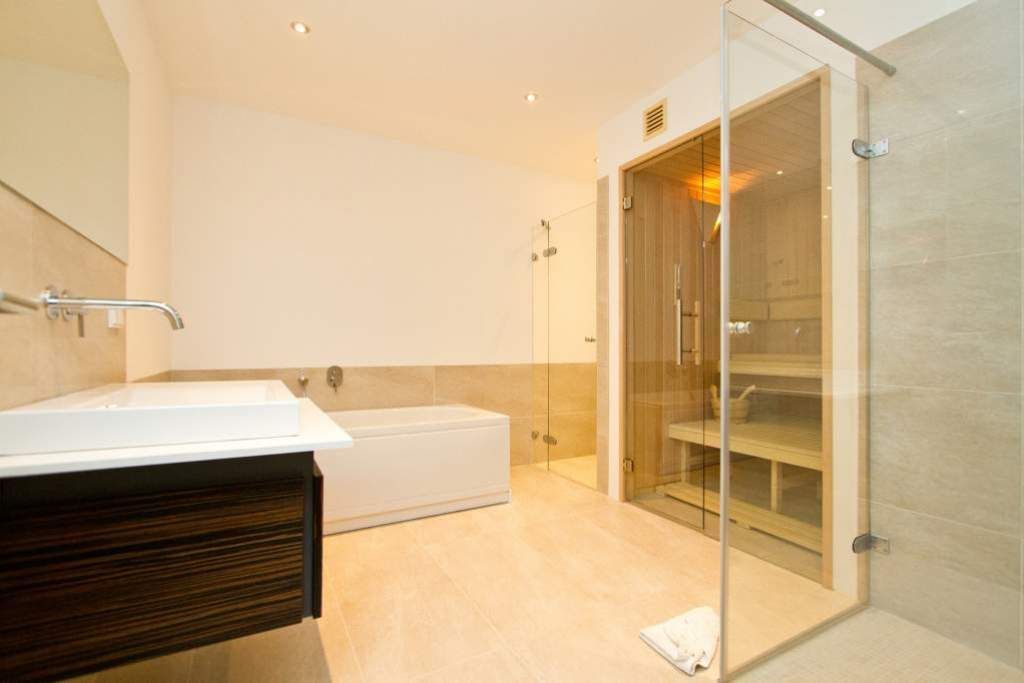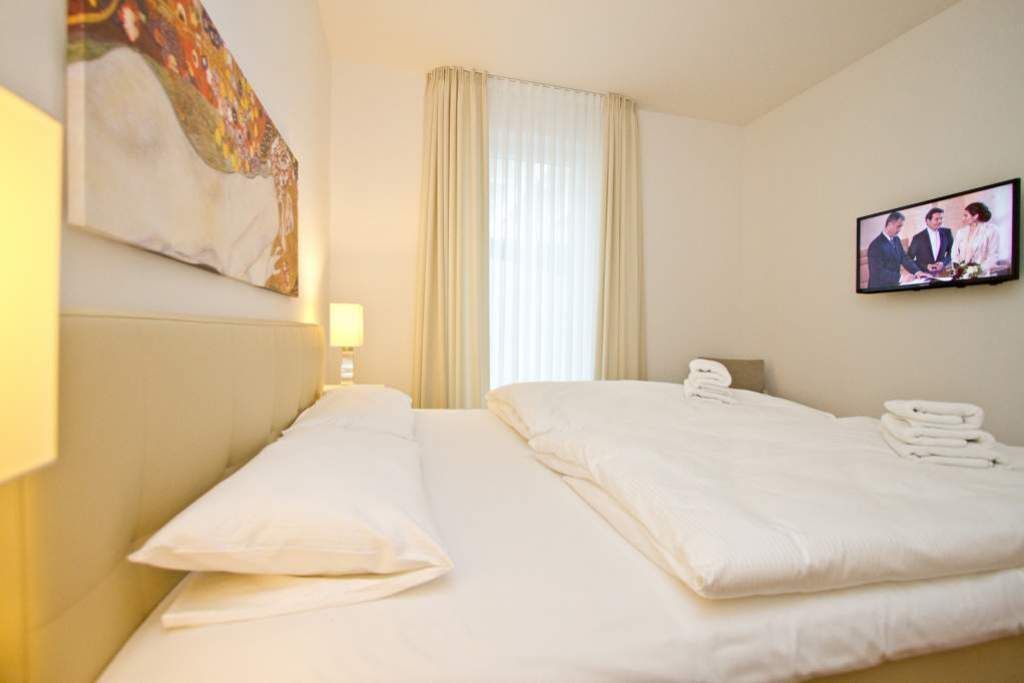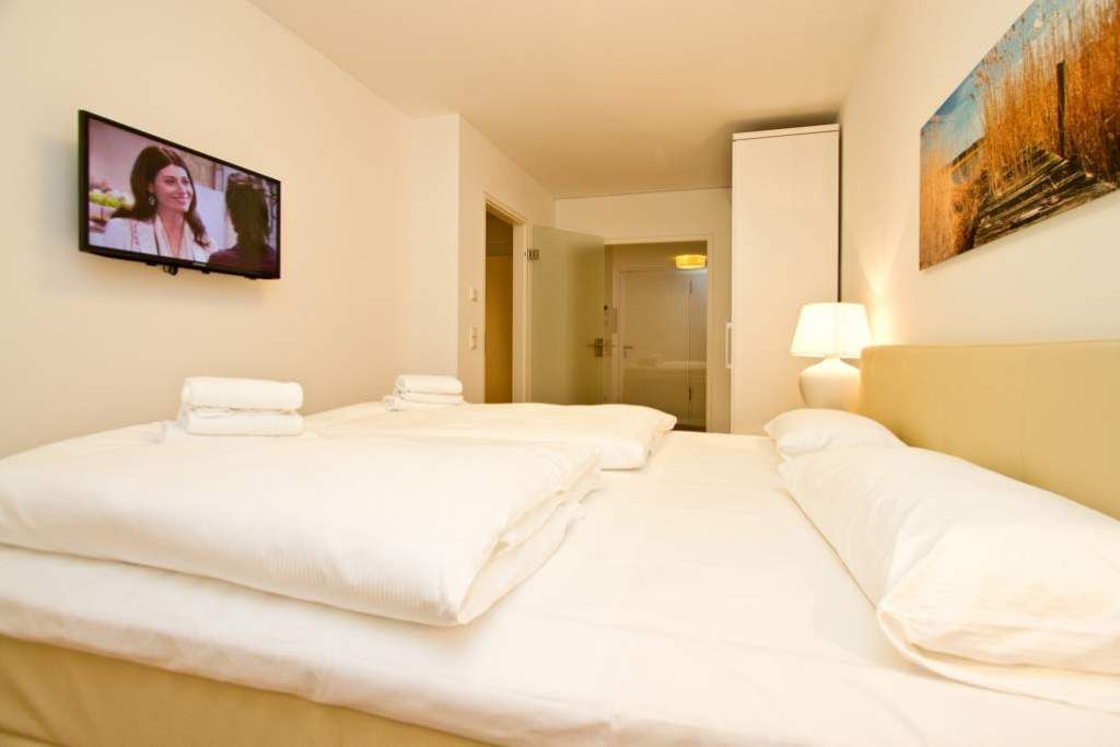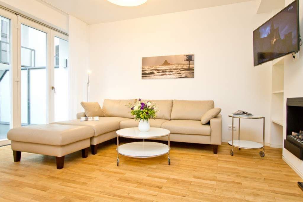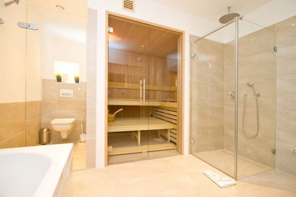 Sonnige Aussichten verspricht die Ferienwohnung 1 im Erdgeschoss des Ostseepalais. Geschützt hinter dem Dünenbereich erwartet Sie hier eine riesige Sonnenterrasse mit Strandkorb und ein großzügiges 4-Raum-Appartement (120qm) mit toller, moderner Einrichtung! Ausgestattet für 6 Erwachsene und 2 Kleinkinder (bis 3 Jahre im Kinderreisebett) finden Sie einen hellen Wohnbereich ausgestattet mit bequemer Ledercouch, Flat-TV und Elektrokamin. Die angrenzende, offene Küche ist mit allem Komfort ausgestattet und der große Esstisch lädt nicht nur zum ausgiebigen Frühstücken ein. Die 3 Schlafzimmer sind mit Doppelbetten und Einbauschränken mit viel Platz ausgestattet. Zwei Schlafzimmer führen auf die umlaufende Terrasse, ein Schlafzimmer ist innenliegend (wie auch die Bäder). Ein besonderes Highlight ist die wohnungseigene Sauna im großen Bad. Hier gibt es eine Badewanne und eine große Dusche. Ein zusätzliches Bad verfügt über eine Dusche. Für Ihren Komfort ist die Erstausstattung Wäsche inklusive. Auf Wunsch stellen wir ein Kinderreisebett und einen Kinderhochstuhl gegen einen Aufpreis zur Verfügung. Zwei Stellplätze befinden sich in der Tiefgarage. Das Wlan-Netz in der Wohnung ist kostenlos nutzbar-bitte fragen Sie an unserer Rezeption.