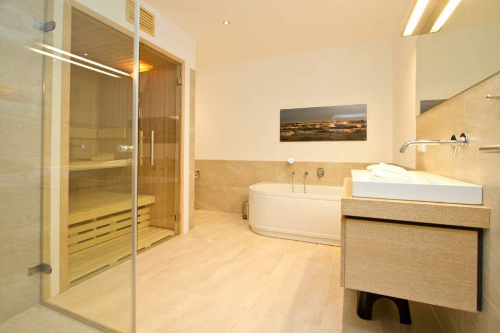 Großzügige 120qm und der Strand direkt vor der Haustür, das erwartet Sie im Appartement 2 im Ostseepalais in Seebad Bansin. Ein helles Interieur und die Usedomer Sonne begleiten Sie hier den ganzen Tag und sorgen für Urlaubsfeeling ab der ersten Minute. Der offene Wohn-Essbereich ist mit einer riesigen Sonnenterrasse in südlicher Ausrichtung ausgestattet, die über Eck geht und hinter dem Dünenbereich liegt. Sonnenliegen und ein Strandkorb sowie ein Sitzplatz für bis zu 6 Personen laden zum entspannten Sonnenbaden und Frühstücken ein. Ausreichend Platz zum Relaxen bietet die großzügige Sofalandschaft, auf der Sie es sich vor dem Elektrokamin und den Flat-TV gemütlich machen können. Die helle Einbauküche ist in den Wohnbereich integriert und ist mit einer Kochinsel ausgestattet. Hier finden Sie alles, was Ihr Herz zum Zubereiten Ihrer Speisen benötigt. Auf erholsamen Schlaf müssen Sie auch in Ihrem Urlaub nicht verzichten. Das 4-Raumappartement verfügt über 3 Schlafzimmer (ein Schlafzimmer innenliegend), die ausreichend Platz für bis zu 6 Personen und 2 Kleinkinder (bis 3 Jahre im Kinderreisebett) bieten und mit Doppelbetten und Flat-TVs ausgestattet sind. Der Urlaub startet perfekt mit einem Gang auf die Terrasse, die von zwei Schlafzimmern aus bequem zu begehen ist. Meeresrauschen inklusive! Über das Masterbad gelangen Sie ins Highlight des Appartements: Eine finnische Sauna, die auch an kühleren Tagen für wohltuende Wärme sorgt. Eine Badewanne sowie eine Dusche, Waschtisch und WC runden das große Hauptbad ab. Ein weiteres Duschbad mit Waschtisch und WC ist die ideale Ergänzung bei Reisen mit der Familie oder Freunden. Bei Ihrer Anreise sind die Betten bereits bezogen und Handtücher liegen für Sie bereite. Außerdem steht Ihnen ein Stellplatz in der hauseigenen Tiefgarage zur Verfügung. Kostenfreies WLAN rundet Ihren Ostseeurlaub ab.