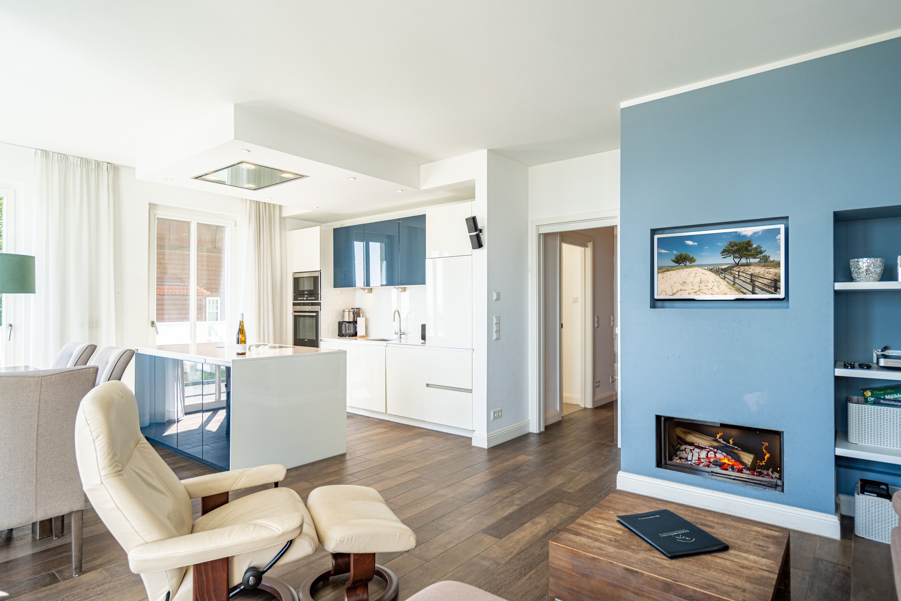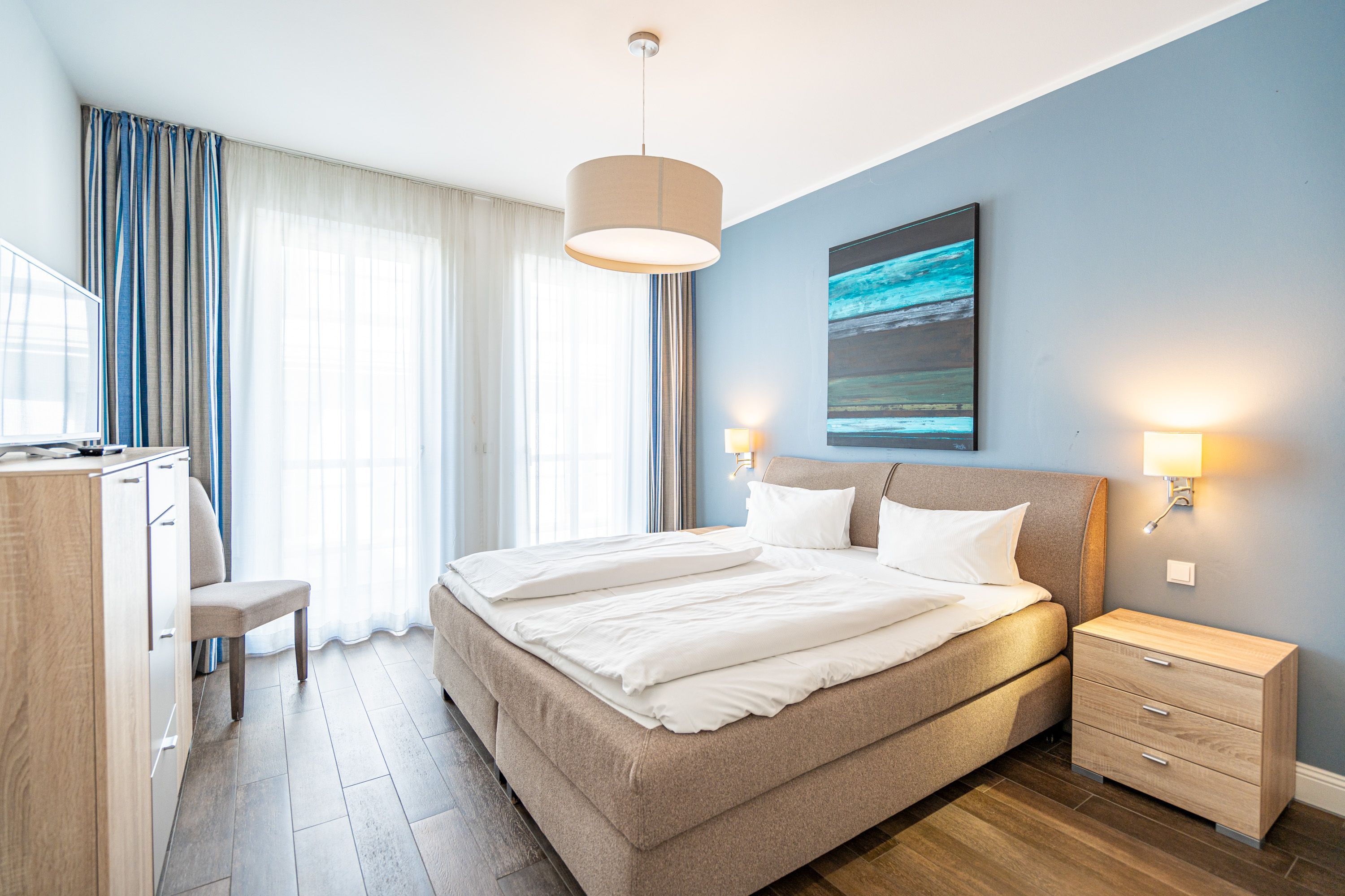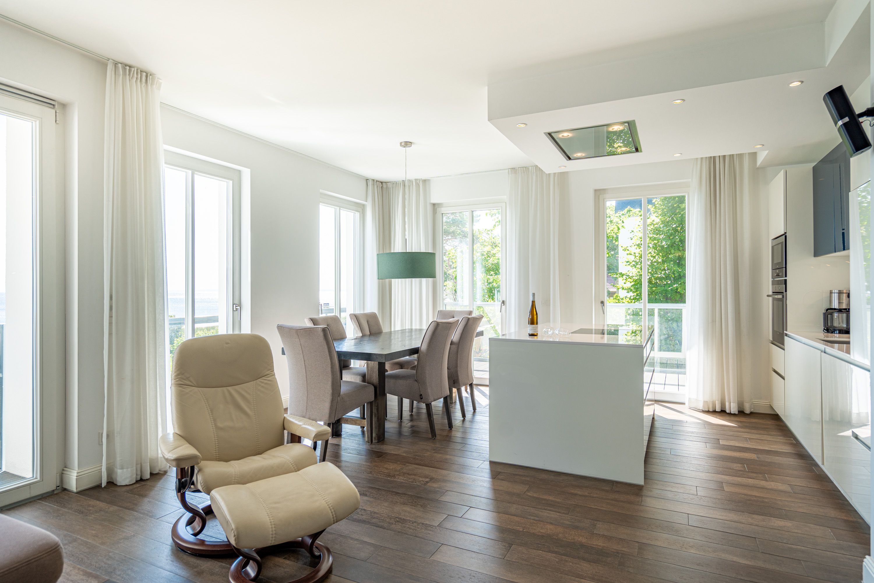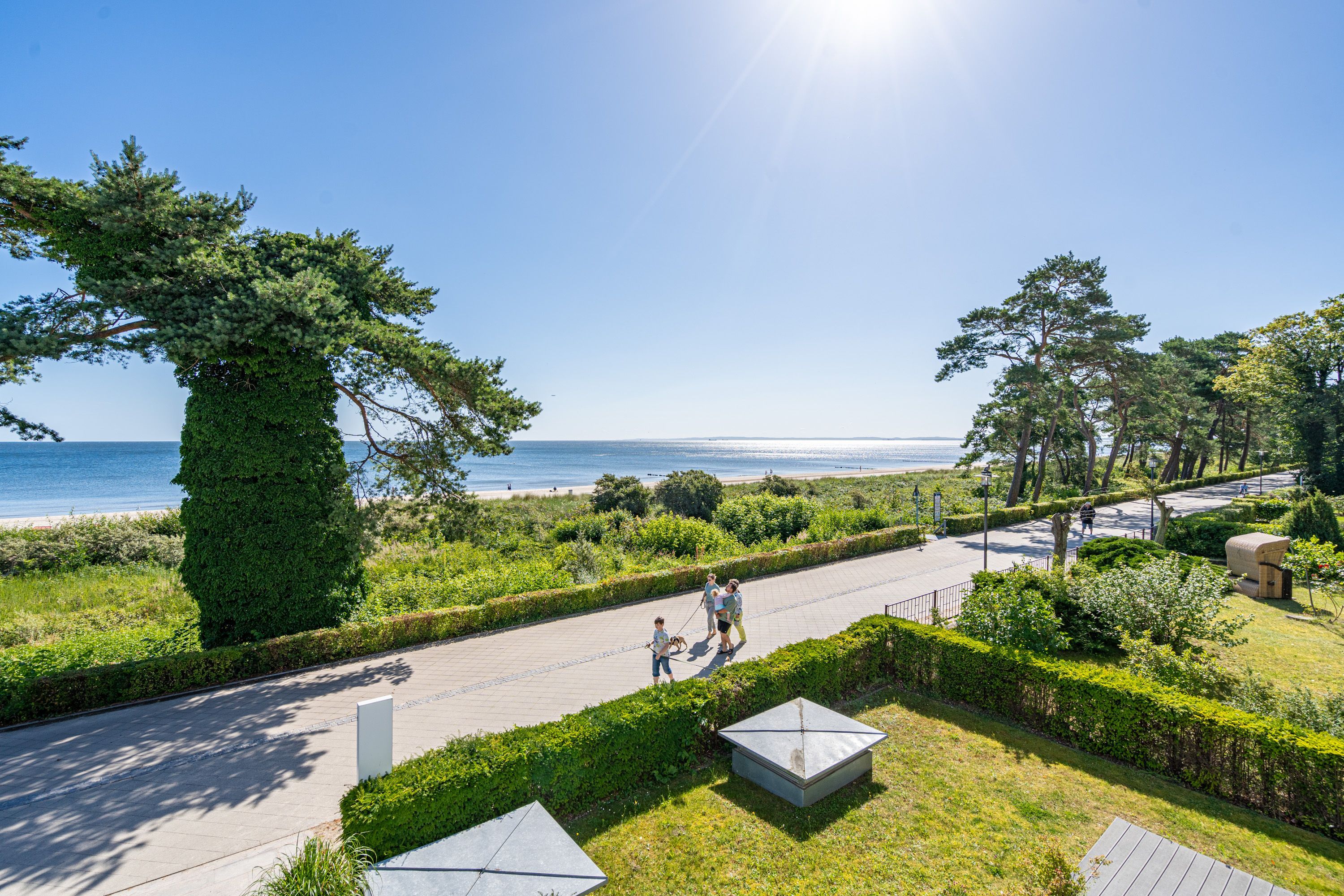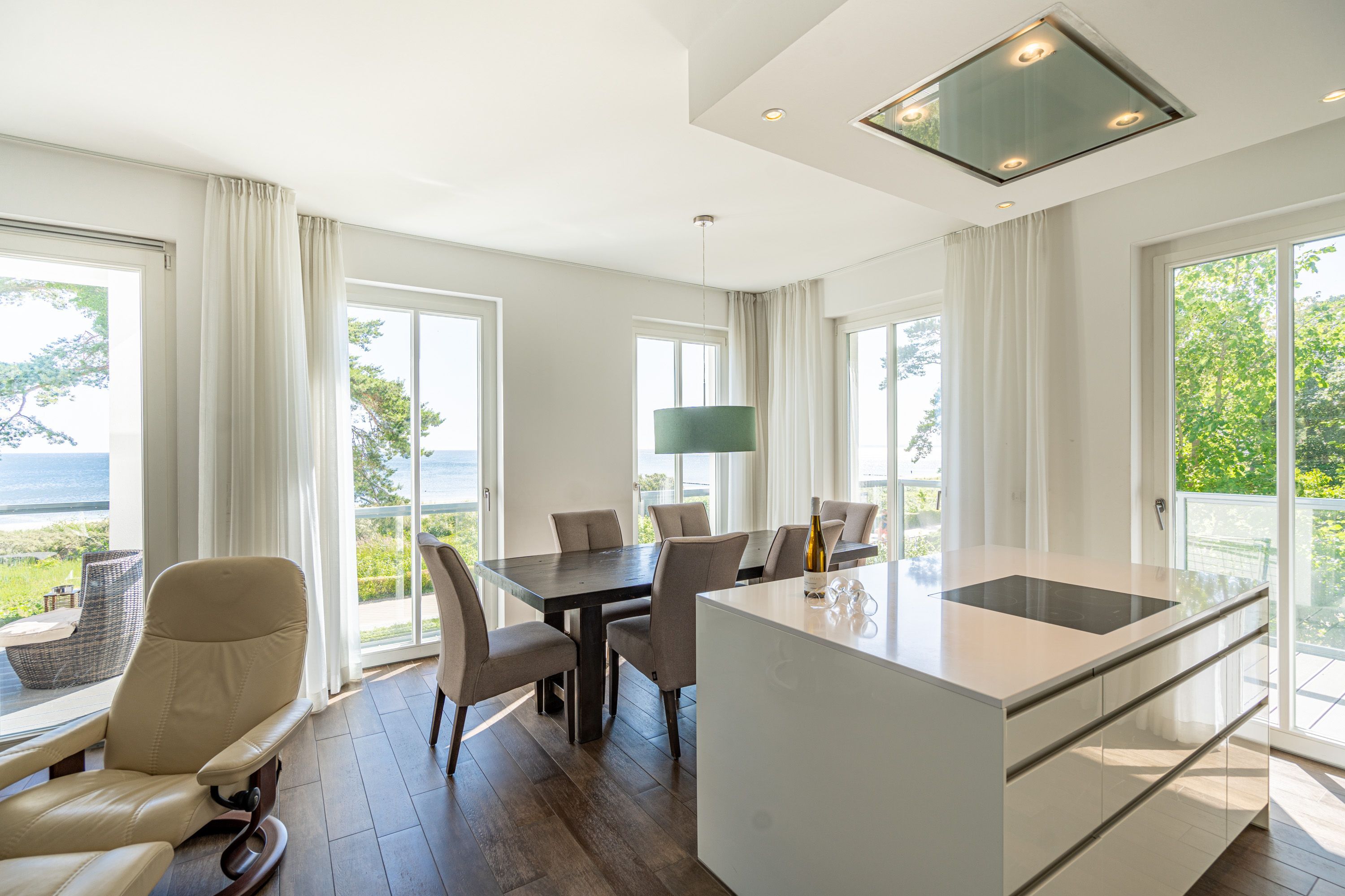 Modernes Design trifft fantastischen Meerblick! In dieser exklusiven 4-Raum-Ferienwohnung direkt an der Ostsee erwarten Sie 120 qm stilvoll gestaltete Wohnfläche entworfen von einer renommierten Innenarchitektin. Die Wohnung bietet Platz für bis zu 6 Personen sowie ein Kleinkind (bis 3 Jahre im Kinderreisebett). Hochwertige Möbel, stilvolle Farbkonzepte und edle Materialien schaffen eine luxuriöse Wohlfühlatmosphäre. Das Herzstück der Wohnung ist der lichtdurchflutete Wohnbereich mit einer großzügigen Fensterfront zum Meer. Eine gemütliche Sitzgruppe, ein Kaminofen und ein Flat-TV sorgen für entspannte Stunden. Die offene, hochwertig ausgestattete Küche mit großem Essbereich lädt zu geselligen Abenden ein. Drei Schlafzimmer mit bequemen Boxspring-Doppelbetten zwei davon mit eigenem TV garantieren erholsamen Schlaf. Die zwei eleganten Bäder wurden mit der exklusiven Badkollektion von Philippe Starck ausgestattet. Während das erste Bad mit einer freistehenden Badewanne und zwei Waschtischen beeindruckt, begeistert das zweite Bad mit einer großen Glasdusche und einer wohnungseigenen Sauna ein echtes Highlight, besonders in der kühleren Jahreszeit. Ein absoluter Lieblingsplatz: die Balkone mit spektakulärem Meerblick, perfekt zum Entspannen und Genießen. Zusätzlicher Komfort: kostenfreies WLAN, ein Kinderreisebett und ein Hochstuhl können gegen Gebühr hinzugebucht werden.
