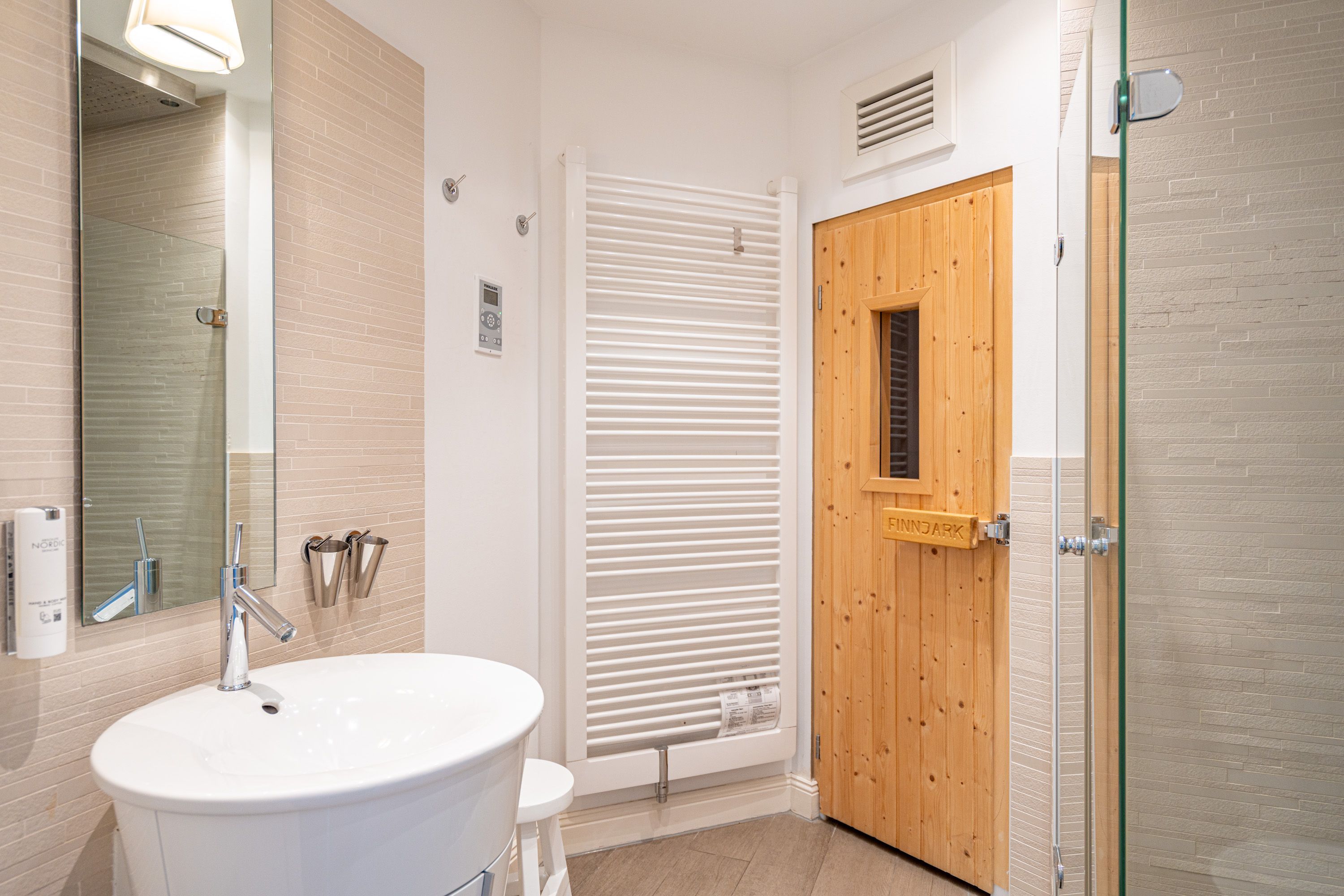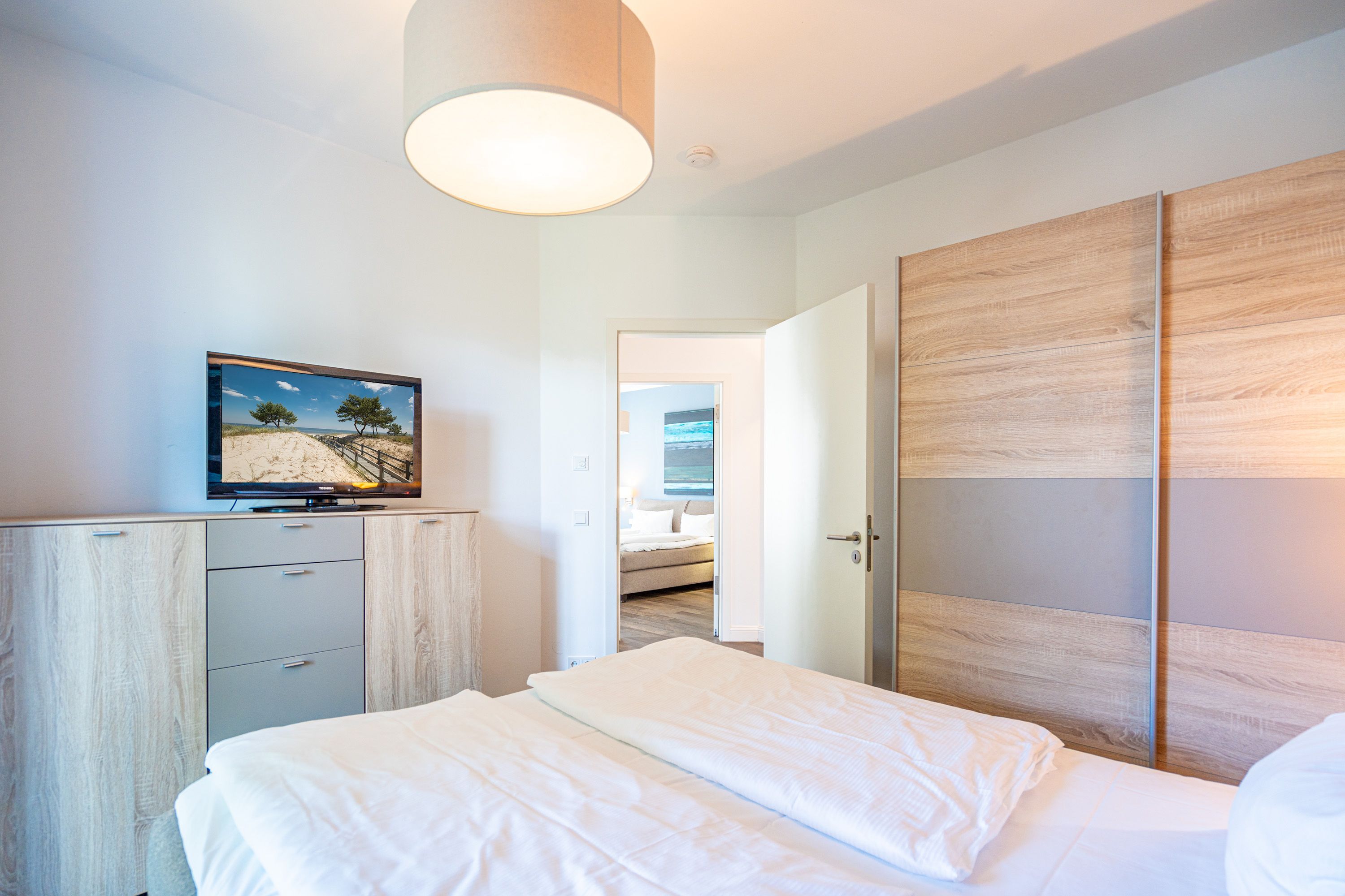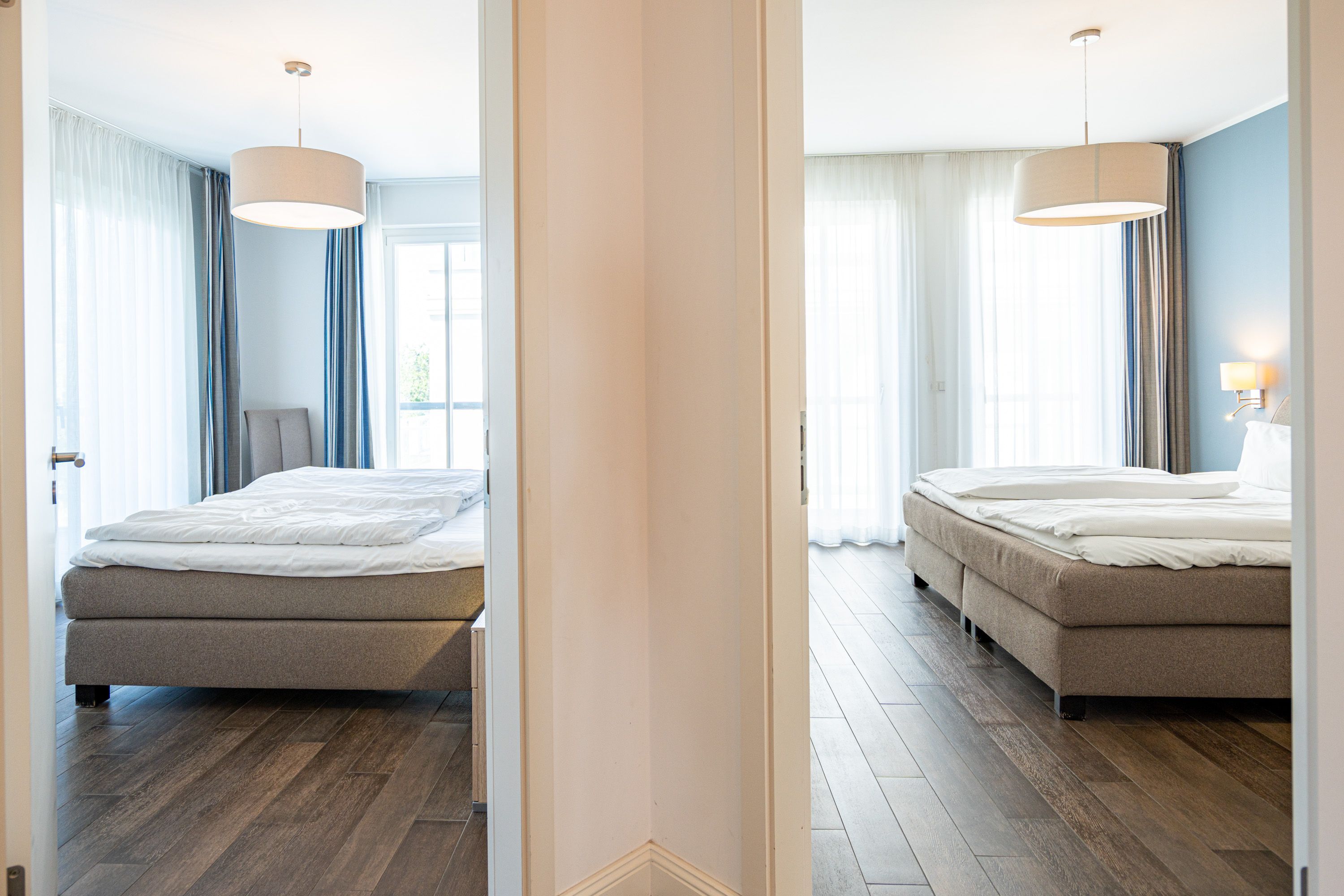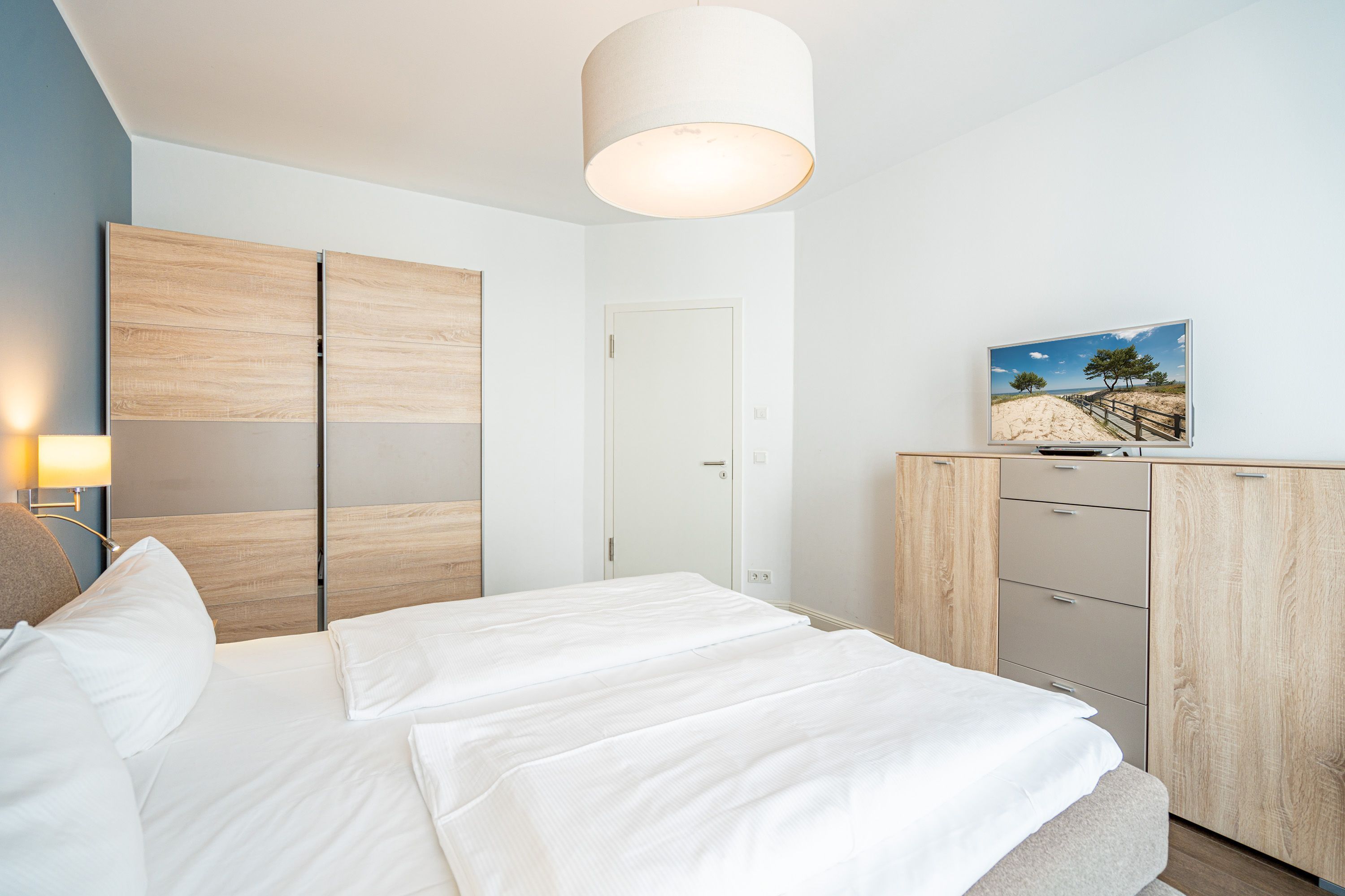 Modernes Design trifft fantastischen Meerblick! In dieser exklusiven 4-Raum-Ferienwohnung direkt an der Ostsee erwarten Sie 120 qm stilvoll gestaltete Wohnfläche entworfen von einer renommierten Innenarchitektin. Die Wohnung bietet Platz für bis zu 6 Personen sowie ein Kleinkind (bis 3 Jahre im Kinderreisebett). Hochwertige Möbel, stilvolle Farbkonzepte und edle Materialien schaffen eine luxuriöse Wohlfühlatmosphäre. Das Herzstück der Wohnung ist der lichtdurchflutete Wohnbereich mit einer großzügigen Fensterfront zum Meer. Eine gemütliche Sitzgruppe, ein Kaminofen und ein Flat-TV sorgen für entspannte Stunden. Die offene, hochwertig ausgestattete Küche mit großem Essbereich lädt zu geselligen Abenden ein. Drei Schlafzimmer mit bequemen Boxspring-Doppelbetten zwei davon mit eigenem TV garantieren erholsamen Schlaf. Die zwei eleganten Bäder wurden mit der exklusiven Badkollektion von Philippe Starck ausgestattet. Während das erste Bad mit einer freistehenden Badewanne und zwei Waschtischen beeindruckt, begeistert das zweite Bad mit einer großen Glasdusche und einer wohnungseigenen Sauna ein echtes Highlight, besonders in der kühleren Jahreszeit. Ein absoluter Lieblingsplatz: die Balkone mit spektakulärem Meerblick, perfekt zum Entspannen und Genießen. Zusätzlicher Komfort: kostenfreies WLAN, ein Kinderreisebett und ein Hochstuhl können gegen Gebühr hinzugebucht werden.