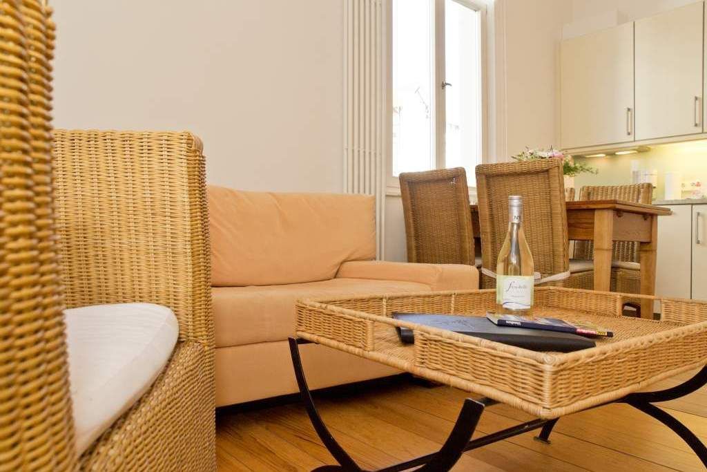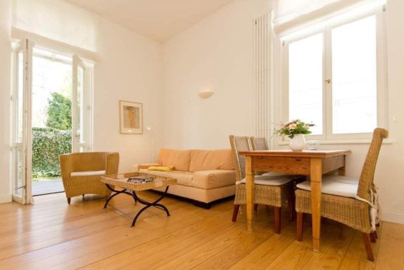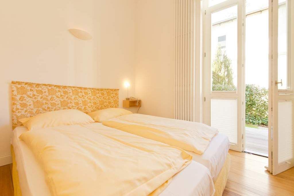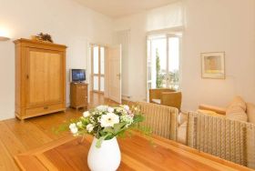 Die Ferienwohnung 1 in der Villa Artemis befindet sich im Erdgeschoß des Hauses und ist zur Südseite ausgerichtet. Die Wohnung überzeugt durch klare Linien, moderne Möblierung und hohe helle Räume. Vom Wohnbereich und Schlafzimmer aus gelangen Sie auf Ihre Terrasse. Hochwertige Materialien, wie Granit Arbeitsplatten auf der Küchenzeile und als Waschtische im Bad, sowie helle Pitchpine Böden unterstreichen den klaren Stil dieser Wohnung. Geschützt im Strandkorb genießen Sie auf der Terrasse die Nachmittagssonne. Ein DVD-Player kann Ihnen auf Anfrage zur Verfügung gestellt werden.