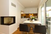 Schon morgens wird der Frühstückstisch auf der Süd-Ost-Terrasse von der Sonne verwöhnt. So wird schon der Genuss des ersten Kaffees oder Tees zum Urlaub. Von hier aus geht’s in die offene Küche eines rundum kuscheligen und modernen Feriendomizils. Auf 64 Quadratmetern ist aller erdenkliche Urlaubskomfort geboten. Gönnen Sie sich Ihre Auszeit in diesem kleinen Paradies mit bis zu vier Personen. Eine bequeme Sofalandschaft lädt zum Entspannen ein. Der Kamin – von drei Seiten aus einsehbar – ist ein absoluter Hingucker. Die Küche ist mit allen Geräten und hochwertigem Geschirr ausgestattet. Elektronik? Auch hier ist das Appartement Nummer 02 im Erdgeschoss des Quartier Ahlbeck auf dem neuesten Stand. Egal ob Flat-TV, Kaffeemaschine oder Waschmaschine – diese Wohnung hat all das und noch vieles Schöne mehr. Die beiden Schlafzimmer sind hell und freundlich eingerichtet und die Doppelbetten (1,80 m x 2,00 m) verheißen nicht nur beim Schlafen Freude. Die großen Schränke bieten viel Platz zur Ablage. Das Badezimmer verfügt über eine Dusche, einen Waschtisch, WC, die erwähnte Waschmaschine und eine Finnische Sauna. Genießen Sie das Schwitzen und Abschalten, Entspannen und Energietanken an ungemütlichen Tagen oder Abenden. Für Ihren Komfort sind die Betten bei Ihrer Anreise bezogen und Handtücher liegen für Sie bereit. Ein Pkw-Stellplatz steht am Haus zur Verfügung.