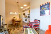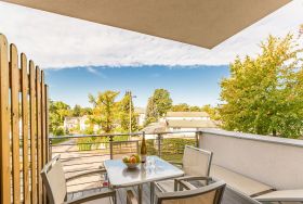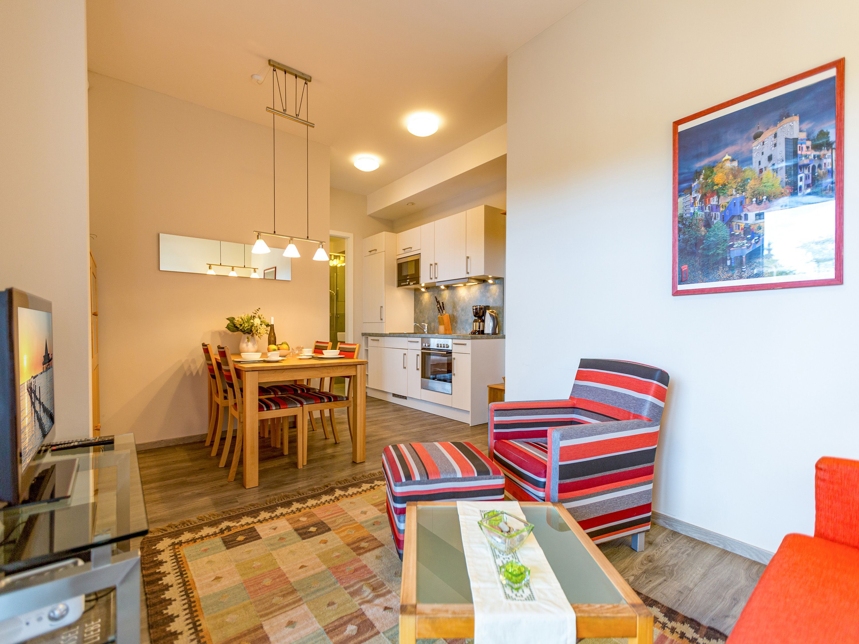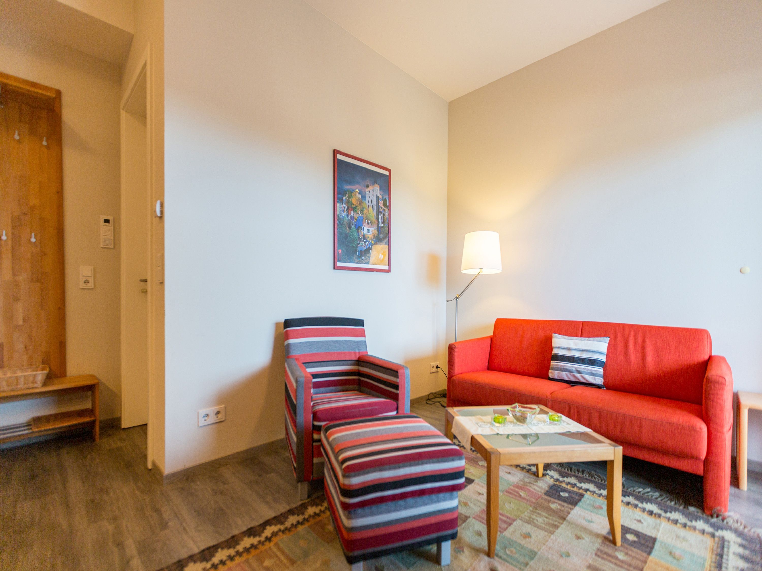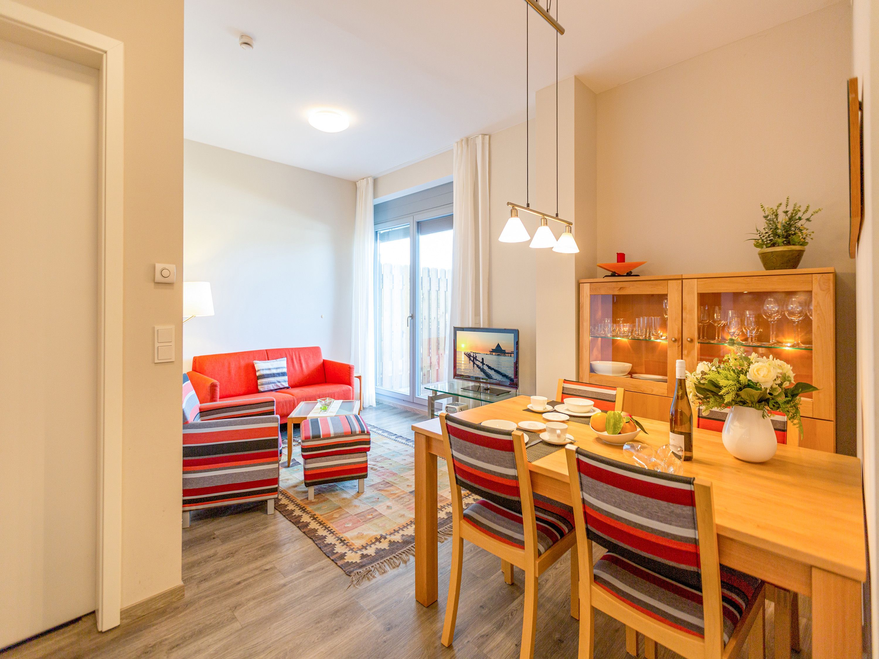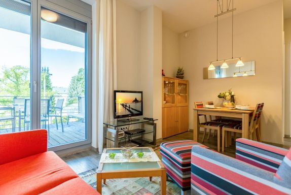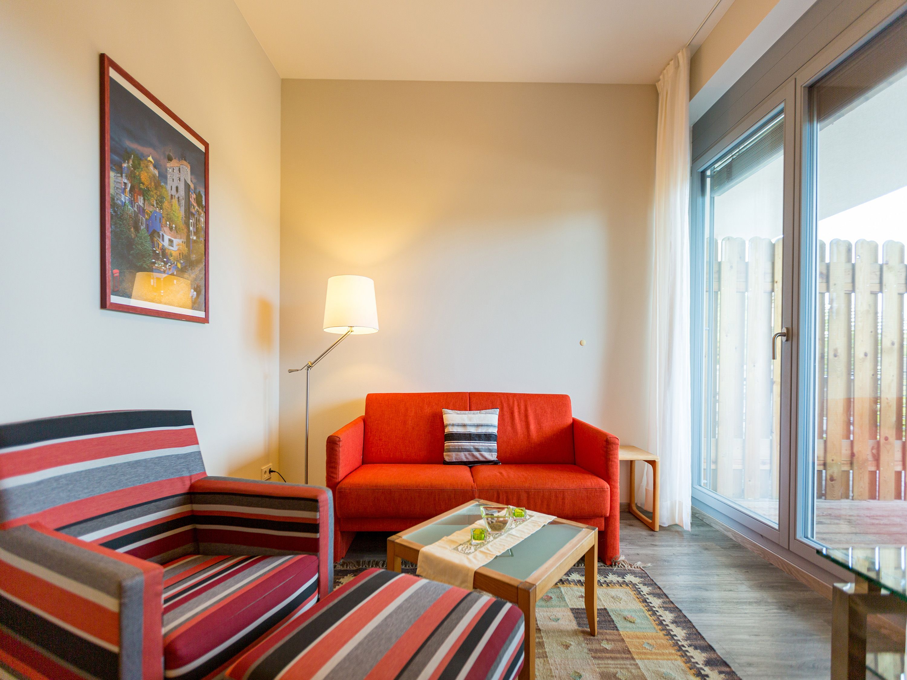 Genießen Sie eine charmante 2-Raum-Ferienwohnung mit geschmackvoller, hochwertiger Möblierung, freundlichen Farben und schönen Stoffen. Der helle Wohnbereich ist mit Schlafcouch und Essbereich ausgestattet. Die komplette Küchenzeile lässt keine Wünsche offen. Im Schlafzimmer mit Doppelbett, Einbauschrank und 2.TV findet auch ein Kinderreisebett Platz. Auf Wunsch stellen wir für unsere kleinen Gäste ein Kinderreisebett (ohne zusätzliche Matratze & Bettzeug) und einen Kinderhochstuhl ( gegen einen Aufpreis) zur Verfügung. Ein modernes Bad und ein wunderschöner sonniger Balkon komplettieren das Domizil und bieten Platz für 3 Erwachsene und 1 Kleinkind im Reisebett bis 3 Jahren. Das WLAN-Netz im Haus kann kostenfrei genutzt werden.