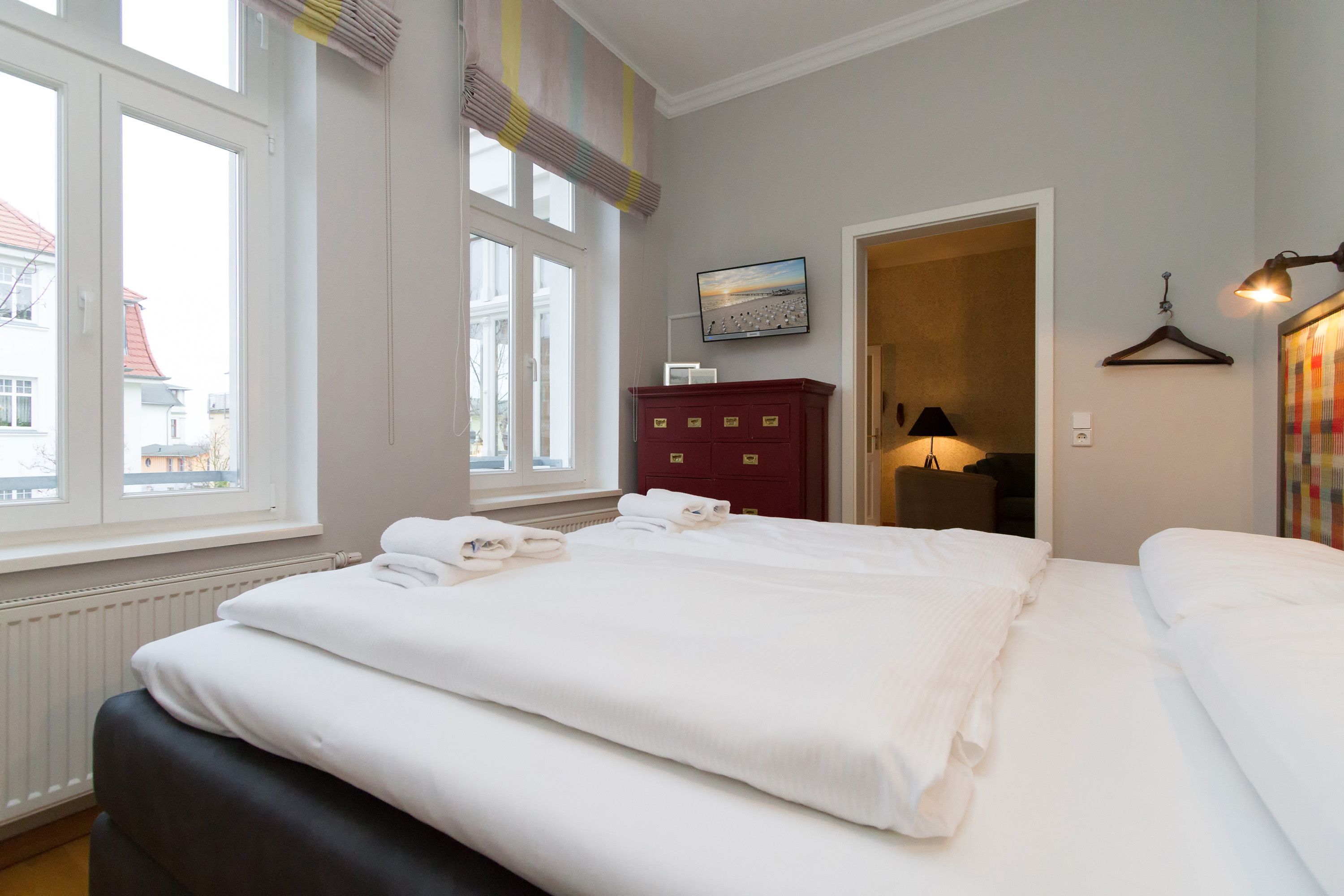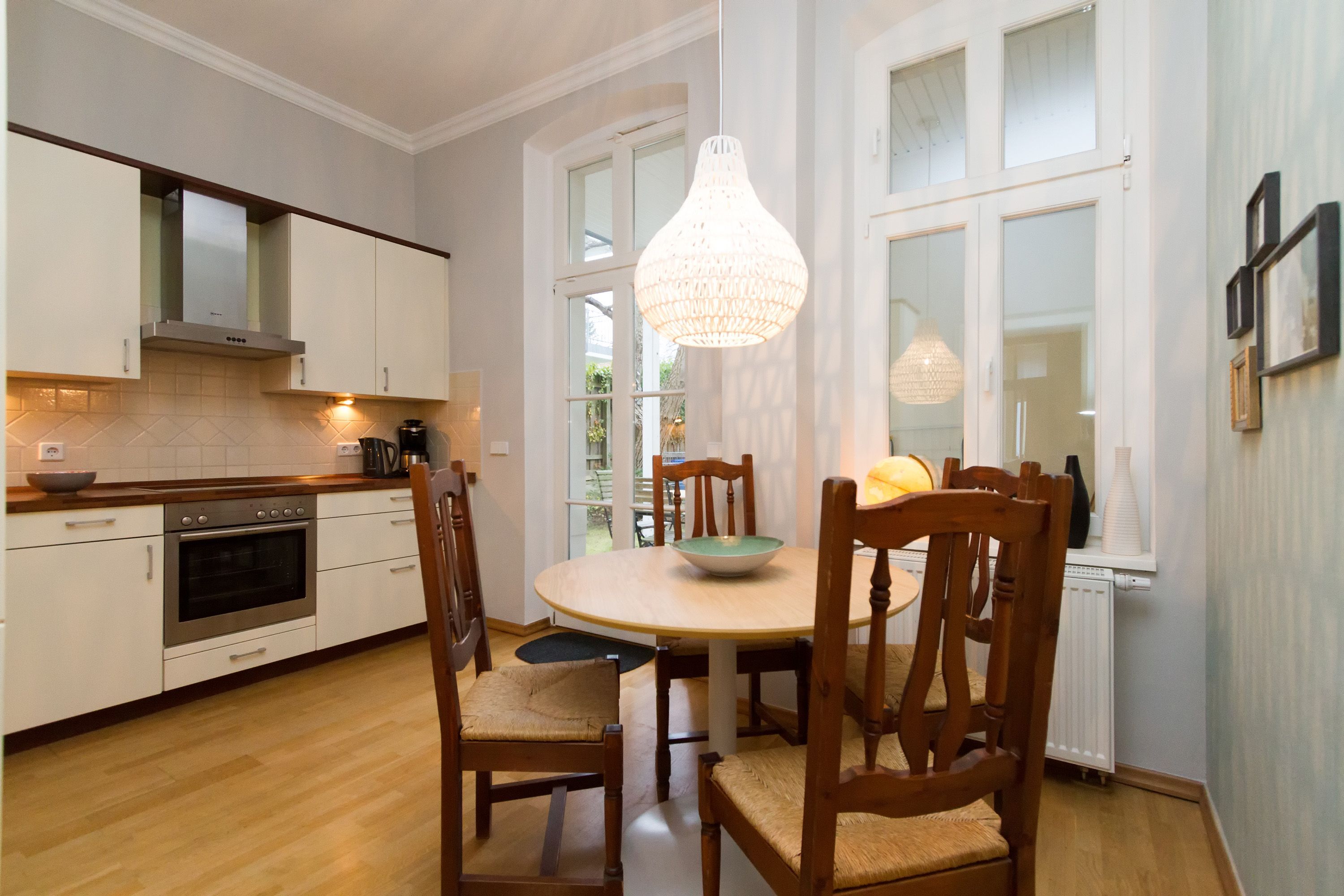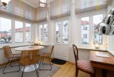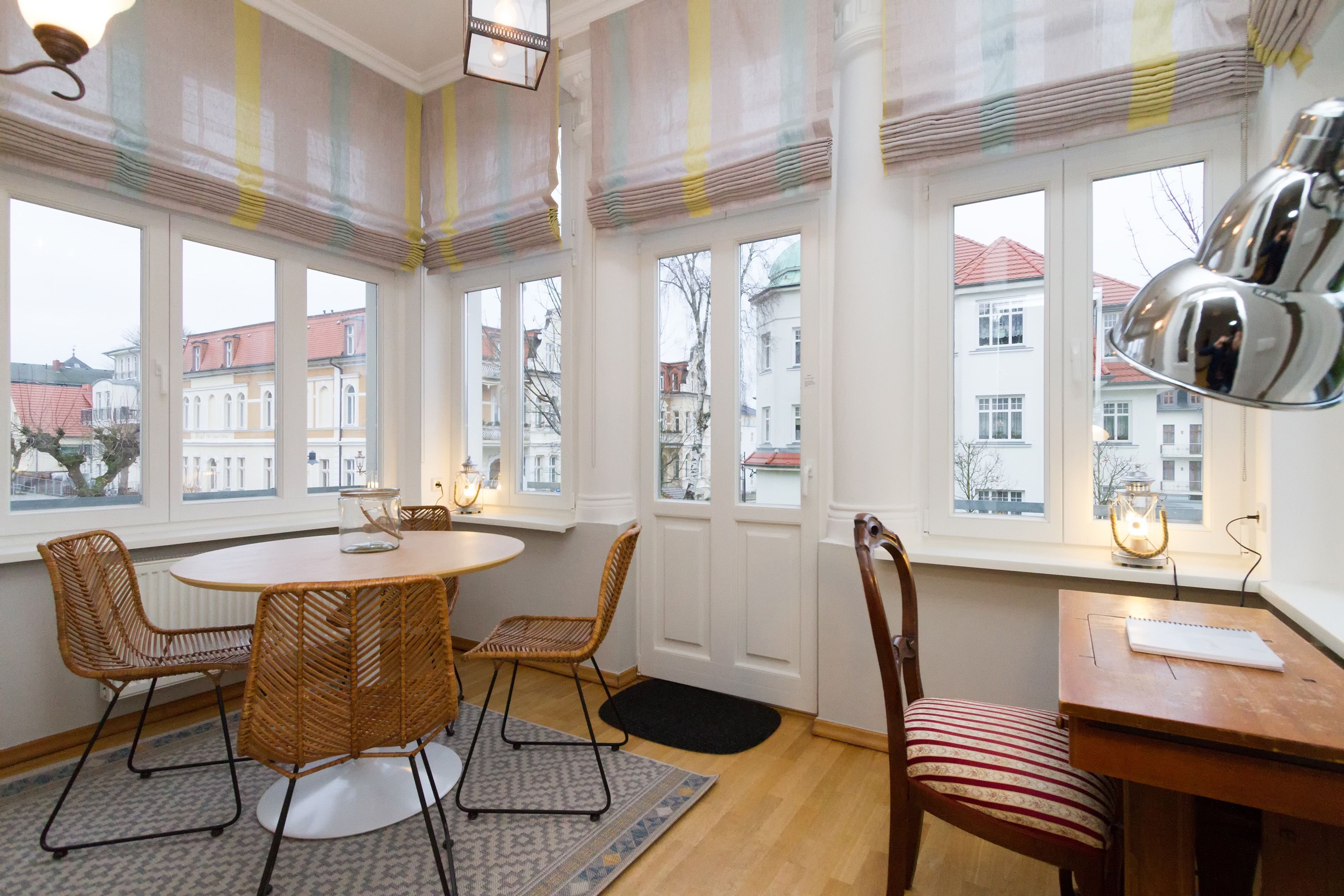 Liebevoll saniert, erstrahlt das Schloss am Meer im neuen alten Glanz. Wunderschön restauriert und exklusiv ausgestattet, bieten Ihnen die Wohnungen ein fantastisches, strandnahes Urlaubsdomizil (nur 80 m) im Seebad Ahlbeck. Stilvoll romantische Bäderarchitektur gepaart mit modernem Komfort. Diese elegante Villa verfügt über einen Fahrstuhl und teilweisen Meerblick, die einzelnen Ferienwohnungen sind mit Balkonen oder Terrassen ausgestattet. Als besonderes Highlight finden Sie in jedem Appartement einen Kaminofen. Im Schwesternhaus, der Residenz Bismarck befindet sich ein Saunabereich (gegen Gebühr). Jede Wohnung verfügt über einen Stellplatz in der Tiefgarage für Fahrzeuge bis 1,90 m Höhe ( Stellplätze relativ eng, eingeschränkte Wendemöglichkeit). Für Ihren Komfort steht die Erstausstattung Wäsche für Sie bereit. Bitte beachten Sie, dass Kaminholz in der Wohnung nicht vorhanden ist. Das WLAN-Netz ist kostenfrei nutzbar.