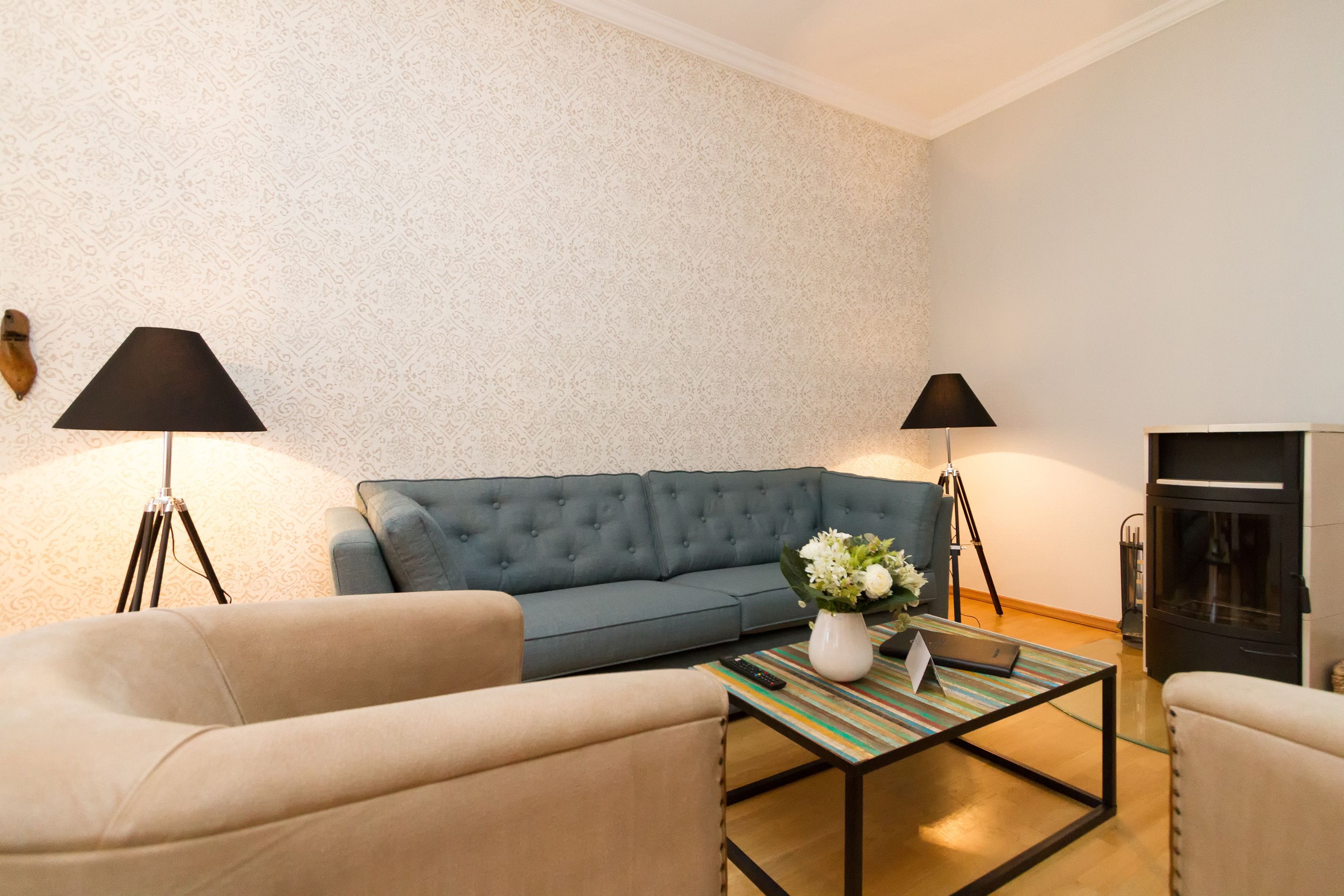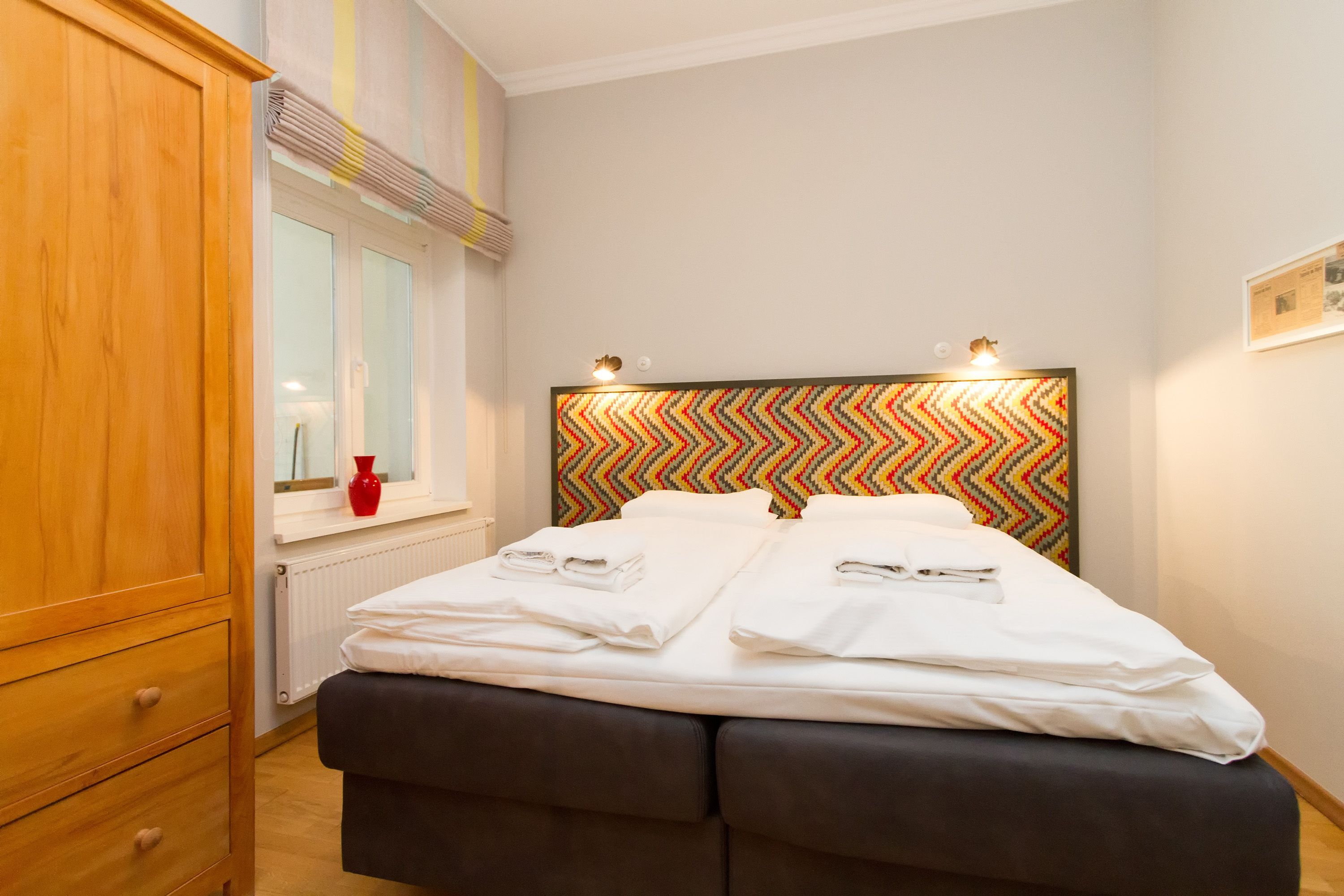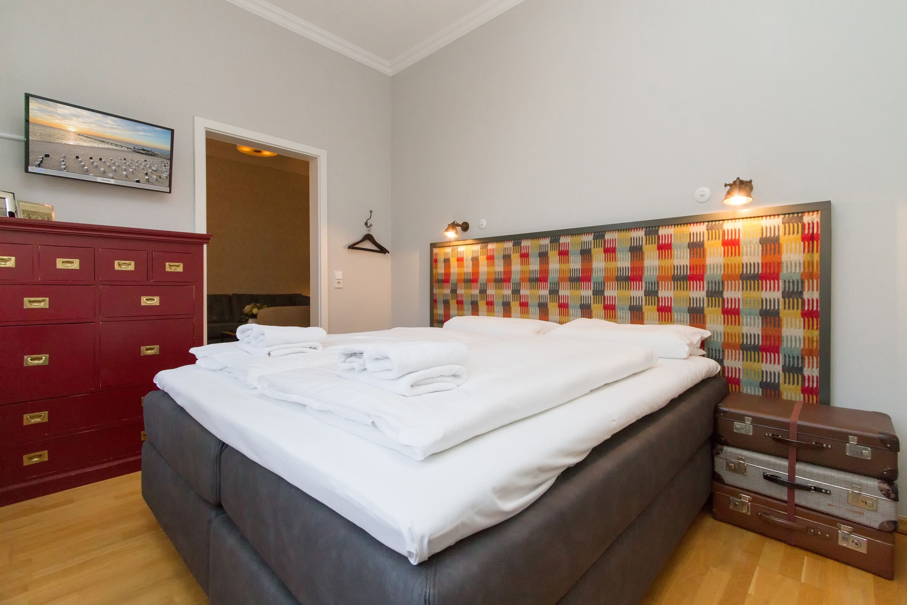 Wohlfühlen von der ersten Minute an. In der Ferienwohnung 1 der Villa erwartet Sie ein Spiel von Farben und Stoffen, die auf Wärme und Behaglichkeit abgestimmt sind. Vom Wohnzimmer mit Kamin gelangen Sie in Ihre verglaste Veranda mit Essbereich, vor der sich auch gleich die erste Terrasse befindet. Zwei Schlafzimmer mit Boxspringdoppelbetten ( 1,80m x 2,00m), eines mit TV, bieten 4 Personen Platz für eine erholsame Nacht. Die separate Küche mit Essplatz und der zweiten Terrasse unterstreichen den Komfort dieses Domizils. Für Ihren Komfort steht die Erstausstattung Wäsche (Bettwäsche & Handtücher) für Sie bereit.