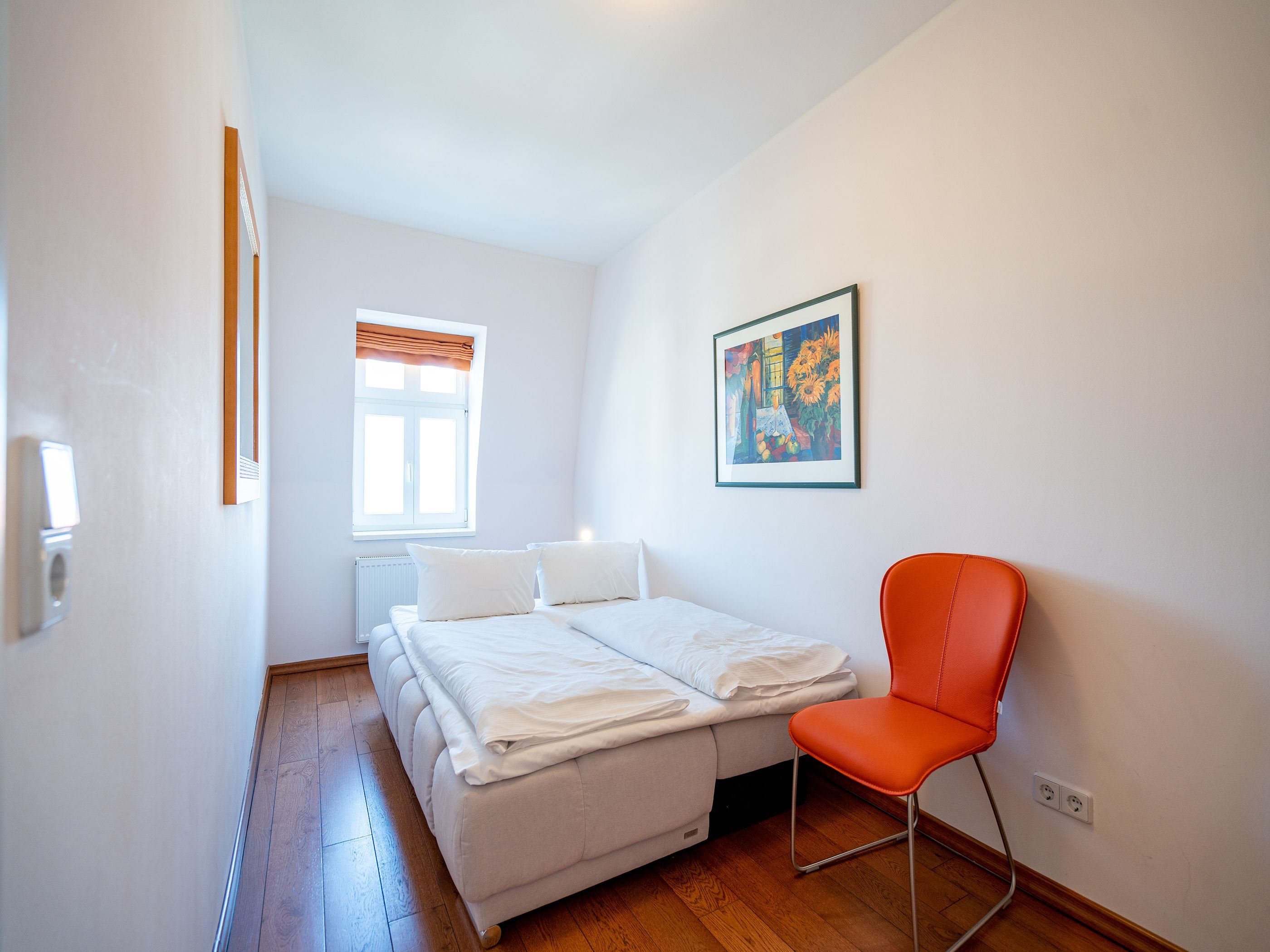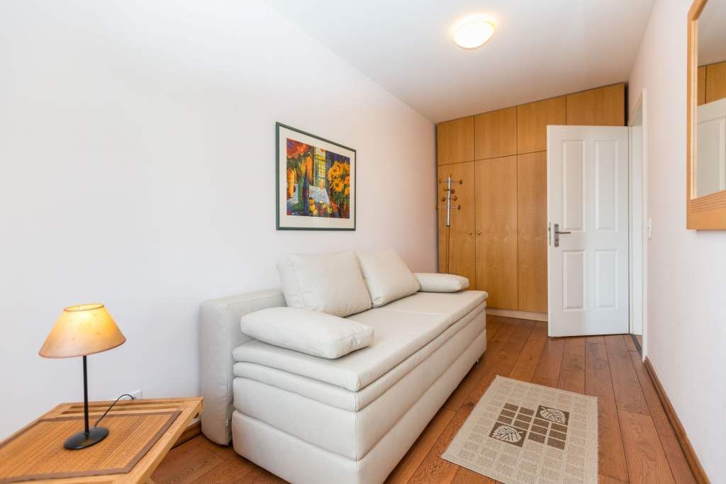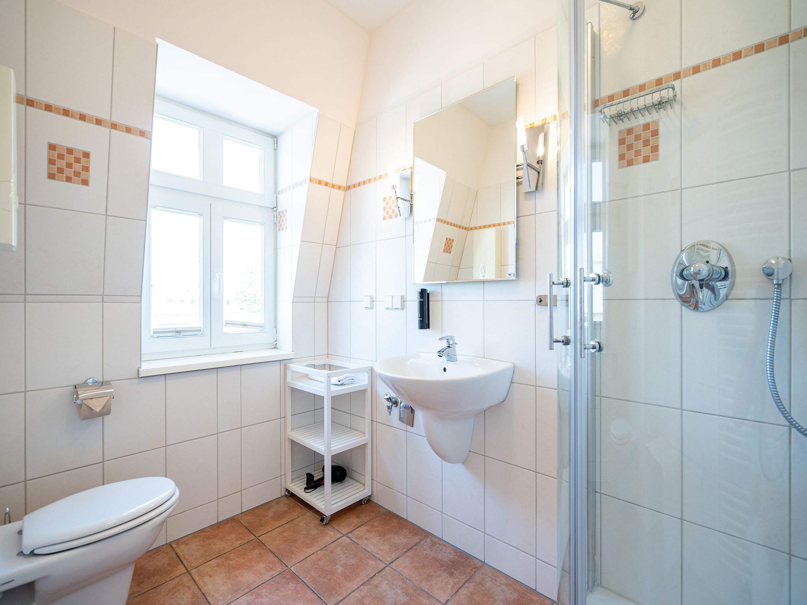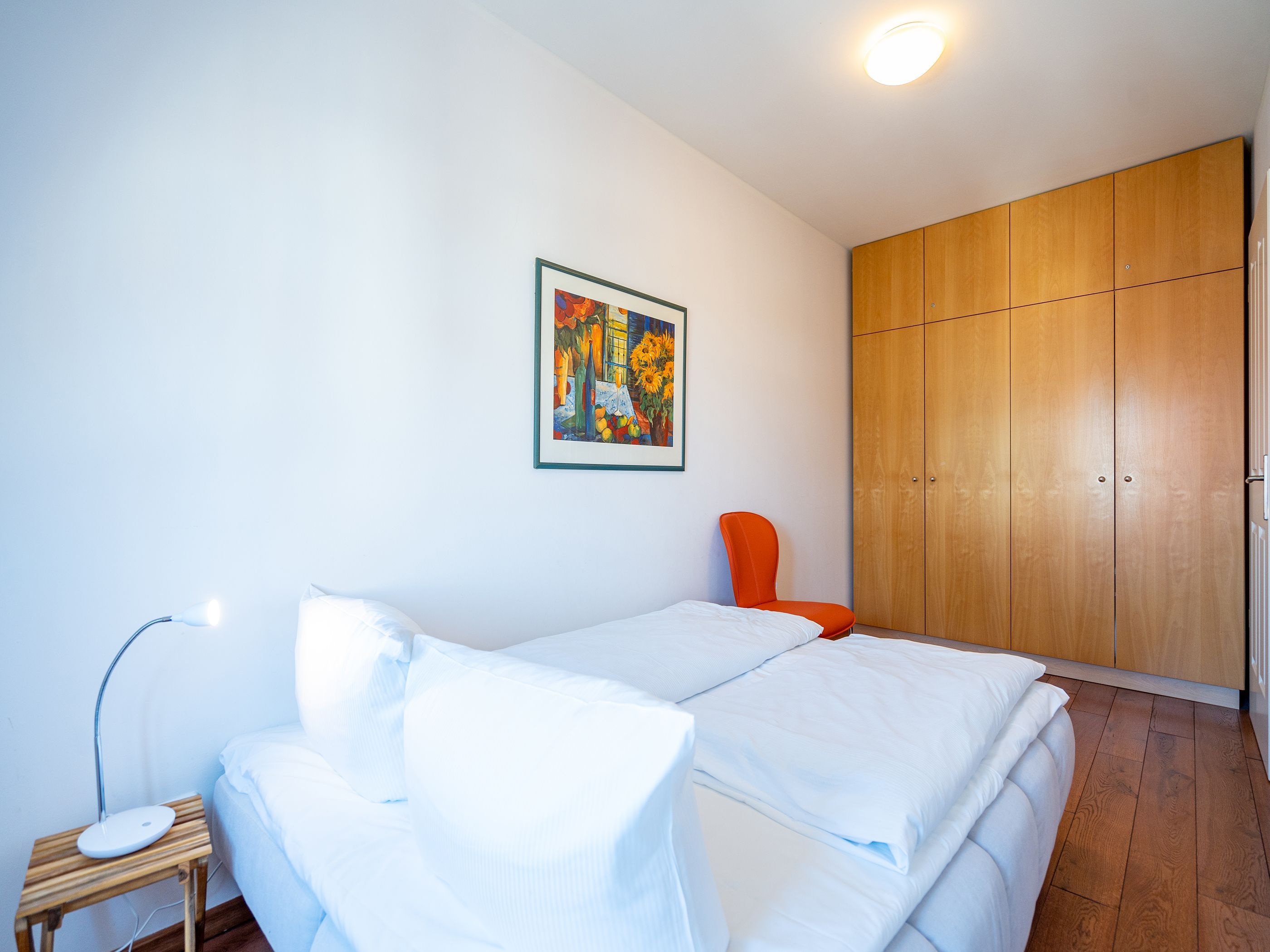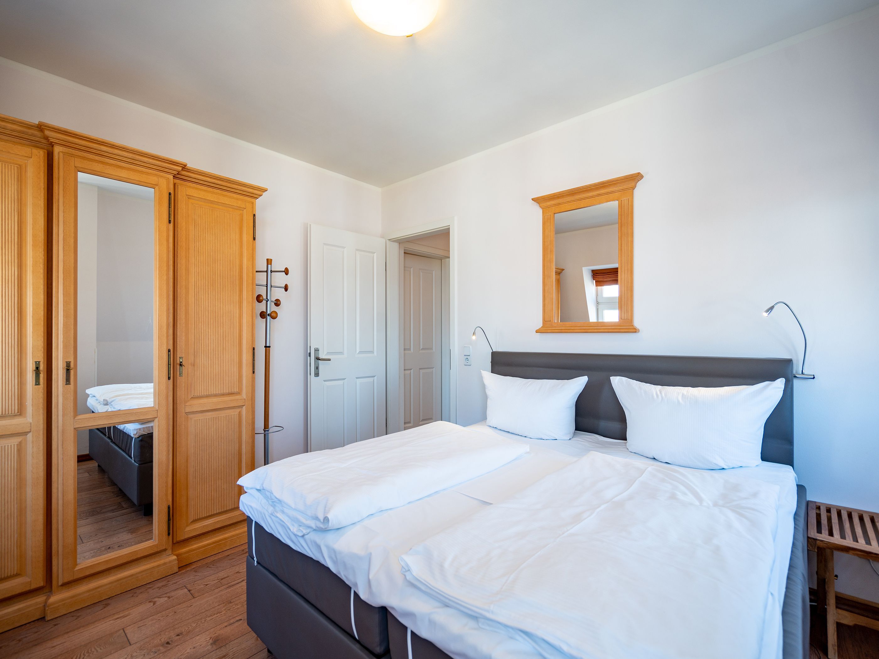 Stilvoll, Exklusiv, Extraklasse! Die Ferienwohnung 6 im Obergeschoß der Villa fasziniert durch warme, harmonierende Farben und Stoffe. Hier überzeugen edle Materialien – mediterrane Möblierung von Chalet, Echtholzböden und ein Kaminofen im Wohnbereich. Ein Schlafzimmer mit Doppelbett ( Breite 1,80m) und ein weiterer Schlafbereich mit komfortabler Schlafcouch, die man zu einer Doppelliege umfunktionieren kann, bieten 4 Personen Platz für erholsame Nächte. Für Ihren Komfort steht die Erstausstattung Wäsche (Bettwäsche & Handtücher) für Sie bereit. Im Erker mit großem Lesesessel entspannt man beim Blick auf die Ostsee oder Sie genießen die Abendsonne auf Ihrem Südbalkon. Schöner wohnen im Urlaub!