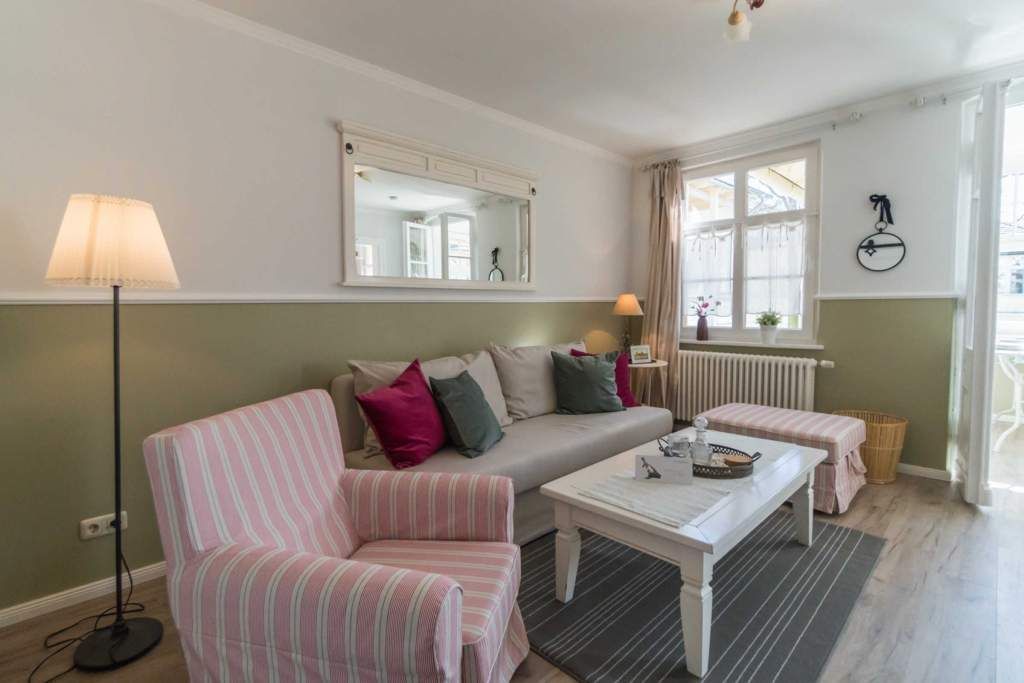 Gemütliche 2-Raum-Ferienwohnung ( 59 qm) für 2 Erwachsene und 1 Kind bis 5 Jahre; schöner Wohnbereich mit Sitzgruppe & Flat-TV und angrenzende helle Veranda mit Essplatz, kleine offene Küche mit Backofen & Geschirrspüler, Schlafzimmer mit 1 Doppelbett ( 1,60m x 2,00m) und 1 Juniorbett ( 0,70m x 1,60m) mit Zugang zum Balkon ( mit Gartenmöbeln ausgestattet und zur Südseite gelegen, 2. Eingang zum Balkon ist vom Flur möglich); Bad mit Dusche und WC, 1 PKW-Stellplatz am Haus, kostenfreies WLAN. Auf Wunsch stellen wir für unsere kleinen Gäste ein Kinderreisebett (ohne zusätzliche Matratze & Bettzeug) und einen Kinderhochstuhl ( gegen einen Aufpreis) zur Verfügung. Bei Ihrer Anreise sind die Betten bezogen und Handtücher liegen bereit (als Erstausstattung). Auf Nachfrage ist es möglich ein 2. Kind ( bis 3 Jahre im Kinderreisebett) mitzubringen. Für den Tag am Meer steht Ihnen von Mitte Mai bis September (je nach Witterung) ein Strandkorb am Strand zur Verfügung. Sie planen einen größeren Familienausflug - dann lässt sich diese Wohnung super mit der Wohnung 05 ( im Erdgeschoss) kombinieren. Beide Appartements befinden sie in einem Haus und sind über den selben Haupteingang zu nutzen.