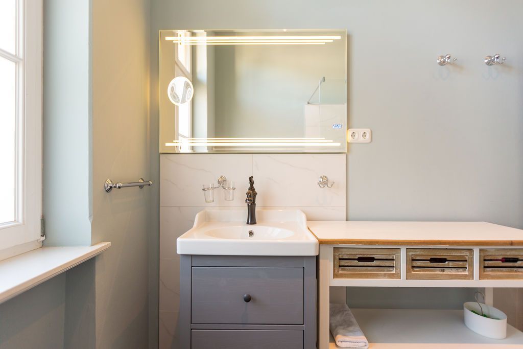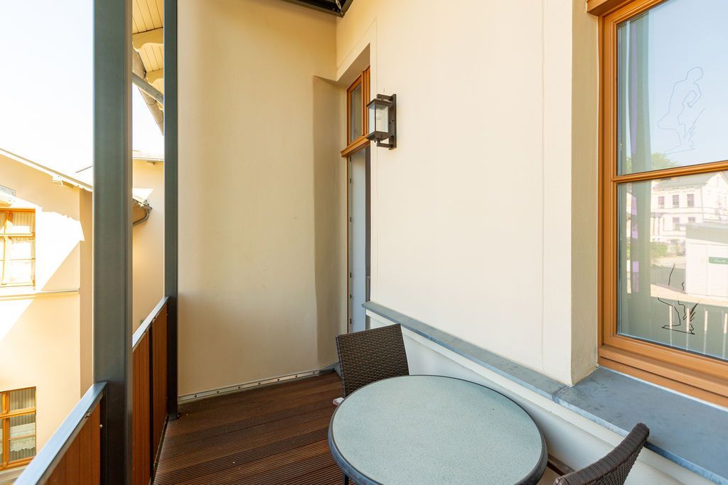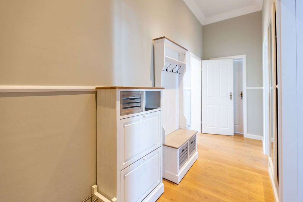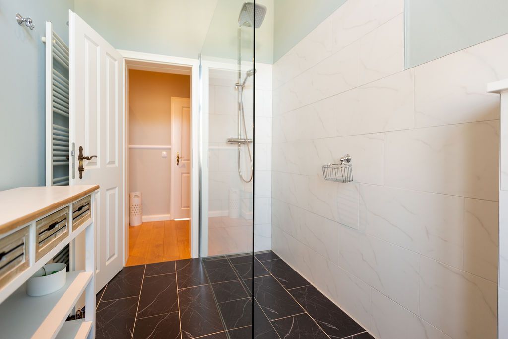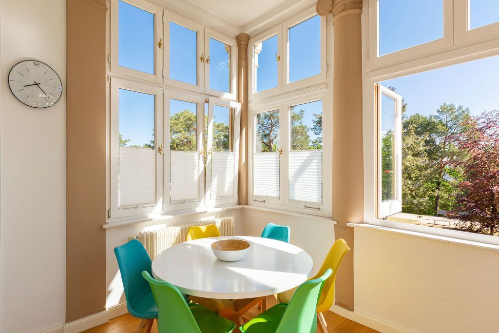 Freuen Sie sich auf eine erholsame Auszeit in der 3-Raum-Ferienwohnung Nr. 09 (79 qm) in der 1. Etage der charmanten Villa Saphira. Die Wohnung bietet Platz für bis zu 4 Personen und 1 Kleinkind (bis 3 Jahre) und überzeugt durch ihre stilvolle Einrichtung, eine Loggia mit Promenadenblick und einen eingeschränkten Meerblick durch die Begrünung. Der helle Wohnbereich ist mit einer gemütlichen Sitzgruppe, einem Kaminofen und einem Flat-TV ausgestattet und lädt zu entspannten Stunden ein. Direkt angrenzend finden Sie die charmante Loggia mit Küchenzeile, Essplatz und einem wunderschönen Blick zur Promenade. Die beiden Schlafzimmer bieten höchsten Schlafkomfort: Ein Schlafzimmer verfügt über zwei Einzelbetten (0,80 m x 2,00 m), Flat-TV und Zugang zum sonnigen Südbalkon (ca. 7 qm). Das zweite Schlafzimmer ist mit einem großzügigen Doppelbett (1,80 m x 2,00 m) und ebenfalls einem Flat-TV ausgestattet. Das moderne Badezimmer mit Dusche und WC rundet das Komfortangebot ab. Kostenloses WLAN und ein eigener PKW-Stellplatz am Haus stehen Ihnen ebenfalls zur Verfügung. Für Familien stellen wir auf Wunsch ein Kinderreisebett (ohne zusätzliche Matratze und Bettzeug) und einen Hochstuhl gegen einen kleinen Aufpreis bereit. Damit Sie sich von Anfang an wohlfühlen, sind die Betten bei Ihrer Ankunft bereits bezogen, und eine Erstausstattung mit Handtüchern liegt für Sie bereit. Genießen Sie die perfekte Kombination aus Komfort, Eleganz und einer hervorragenden Lage in der Villa Saphira. Wir freuen uns darauf, Sie willkommen zu heißen!