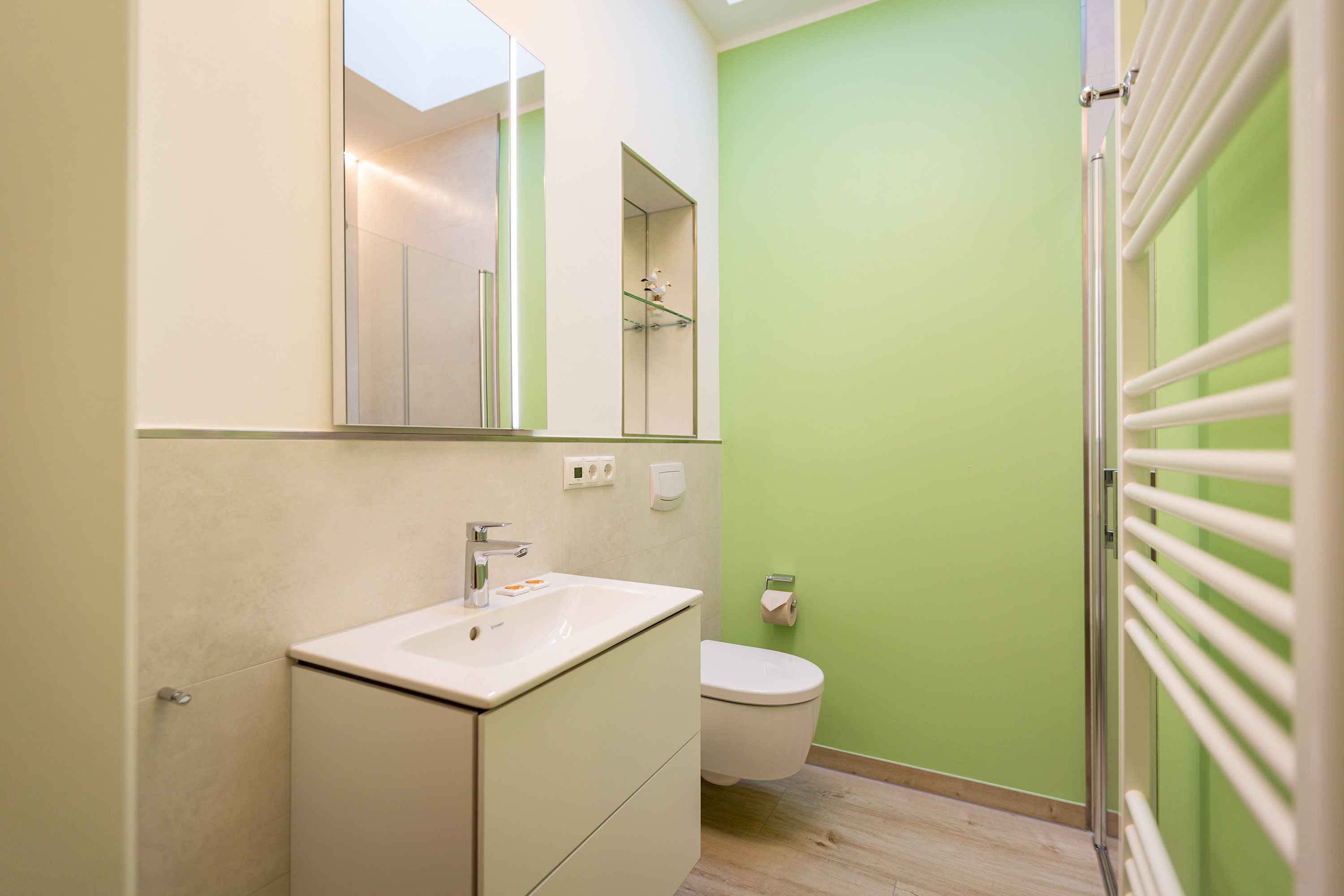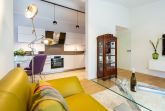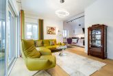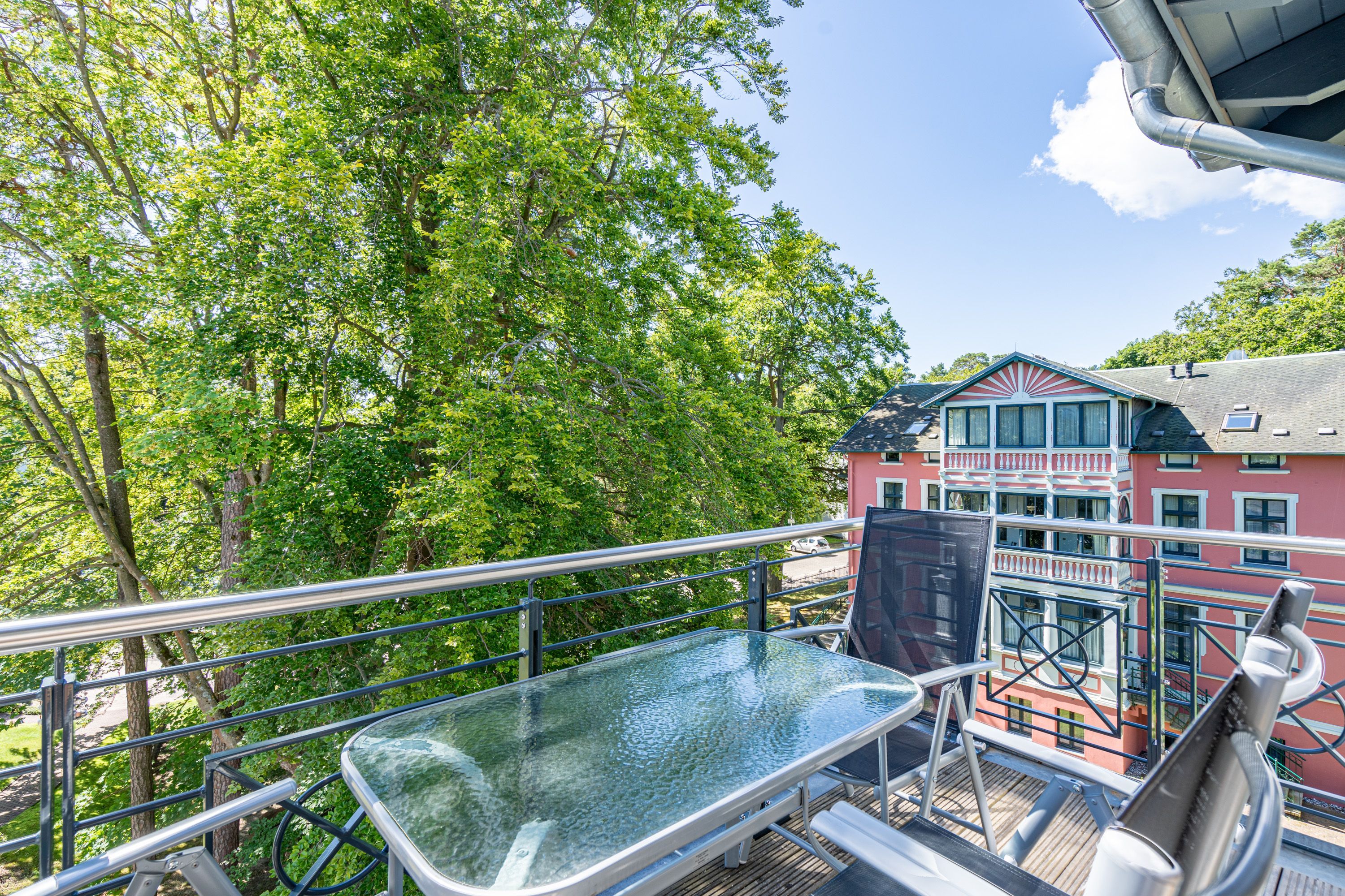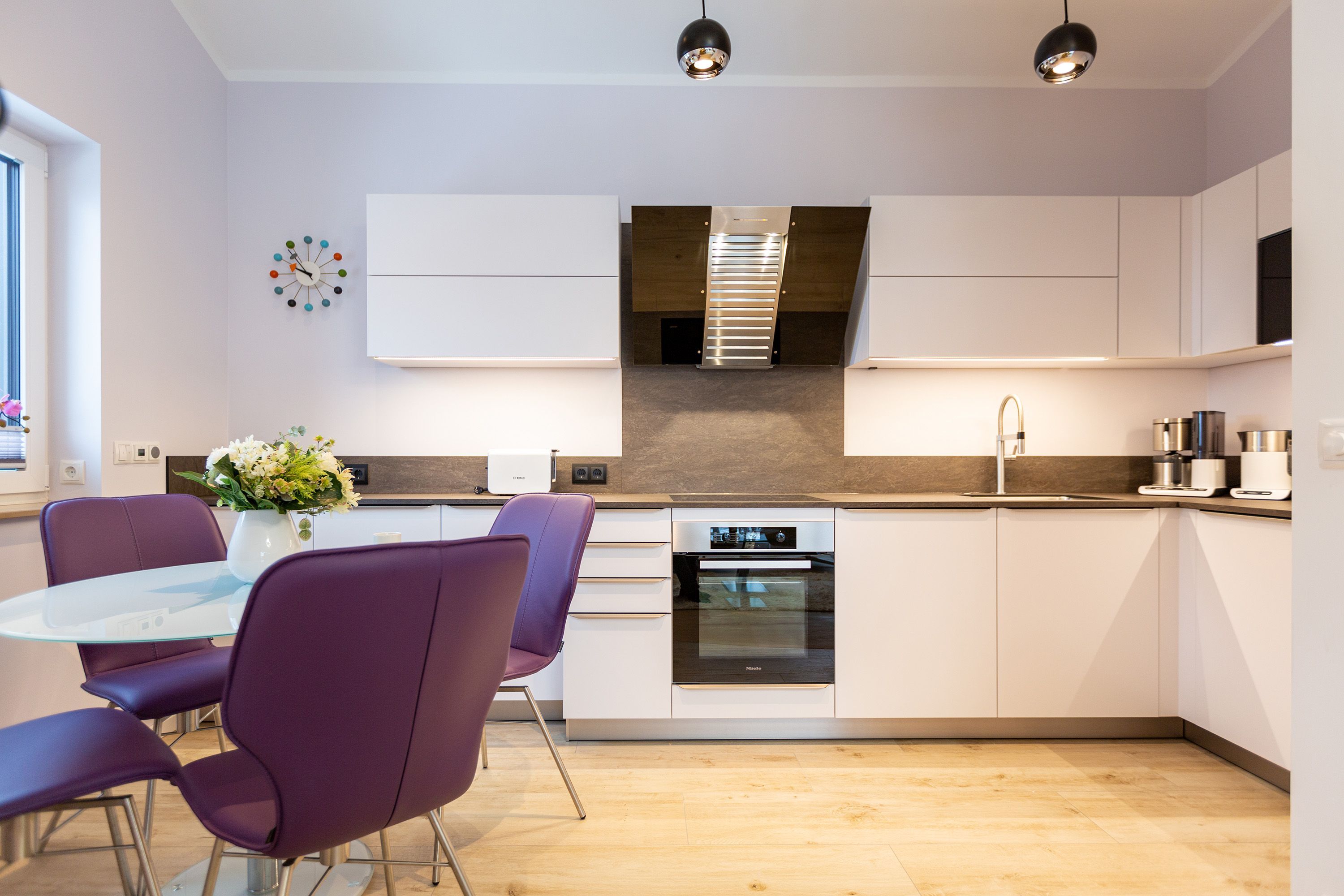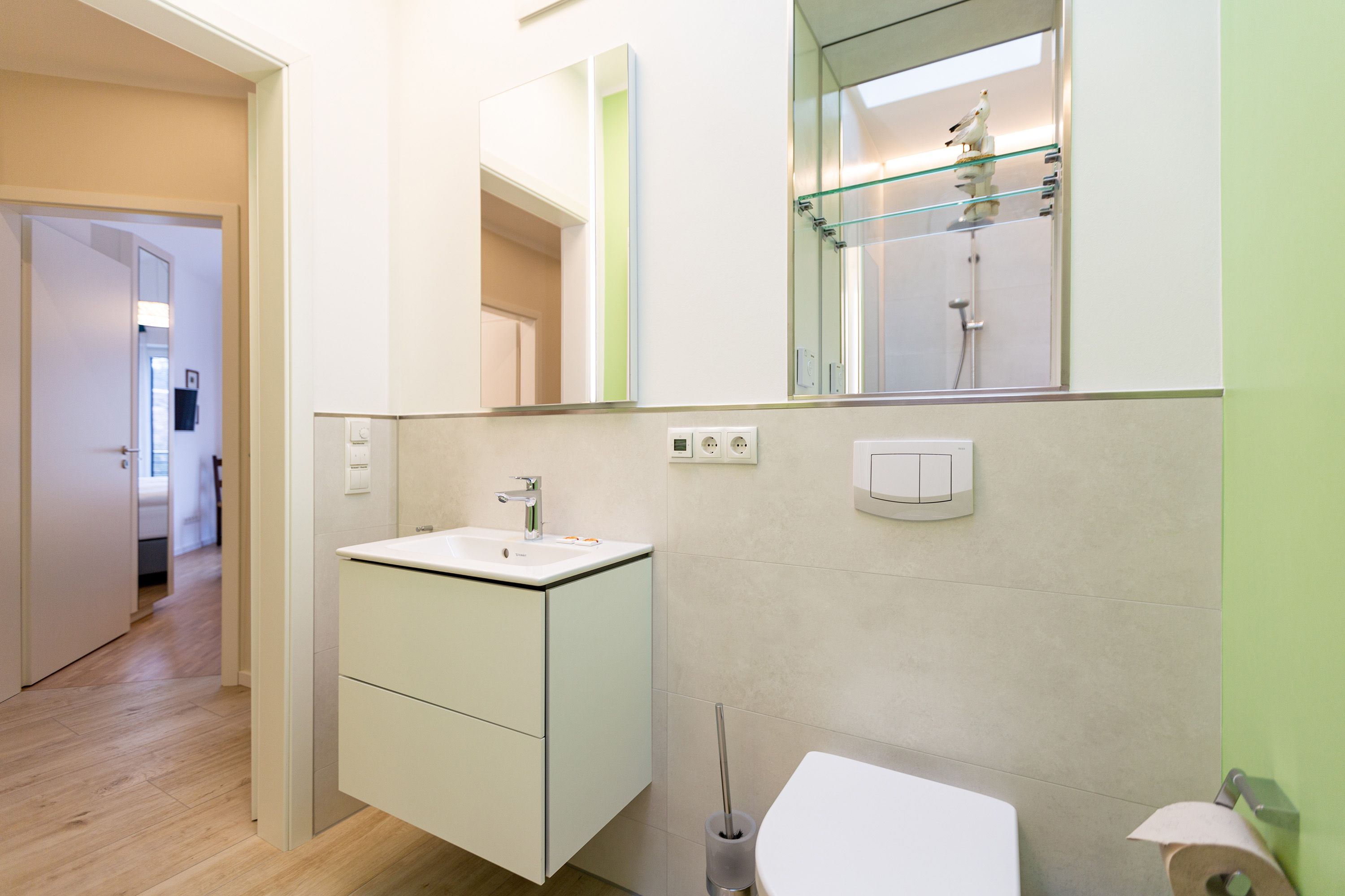 Das Appartement Nummer 8 in der 3. Etage setzt auf seinen 79 Quadratmetern gleich mehrere Akzente: Farbakzente, Lichtakzente und Designakzente. Alles zusammen sorgt dafür, dass sich die bis zu vier Personen in dem Drei-Zimmer-Urlaubsdomizil rundum wohlfühlen. Hier ist nichts 0815. Schon gar nicht die Farben. Dezent, aber dennoch präsent verleihen sie der Wohnung eine behagliche Atmosphäre: Von der lindgrünen Leder-Landschaft zum Faulenzen und Entspannen bis zum Indigo der Stühle rund um den Esstisch. Große, helle Räume sorgen für Leichtigkeit und Komfort. Treten Sie vom Wohnzimmer aus auf den sonnigen Süd-Ost-Balkon (6 Quadratmeter) und atmen Sie die gesunde Ostseeluft tief in sich ein. Ebenfalls an das geräumige Wohnzimmer angeschlossen, ist die offene Küche mit einer voll ausgestattete Küchenzeile und einem schönen Essplatz. Alle Geräte sind Markengeräte. Ein komplettes Geschirr-Service finden Sie in den Schränken. Auch die beiden Schlafzimmer empfangen den Gast mit modernem Design. Jedes verfügt über ein Boxspringdoppelbett (eines 1,80 m x 2,00 m, das zweite 1,60 m x 2,00 m) sowie einen extra angefertigten Kleiderschrank. Alle drei Zimmer des Appartements sind mit einem Flat-TV ausgestattet. In den beiden Badezimmern sind je eine Dusche und eine Toilette vorhanden. Darüber hinaus besitzt das Masterbad eine Badewanne und ein Bidet. Handtücher liegen selbstverständlich bereit und auch die Betten sind bereits bezogen. Zu dem Appartement gehört der Außenstellplatz Nummer 8 im Hof. In einem separaten und abschließbaren Kellerraum befindet sich eine Ladestation für E-Bikes. Der WLAN-Zugang ist kostenfrei. Sie brauchen also nur ankommen, mit dem Fahrstuhl in die 3. Etage fahren und schon sind Sie mitten im Urlaub.