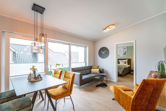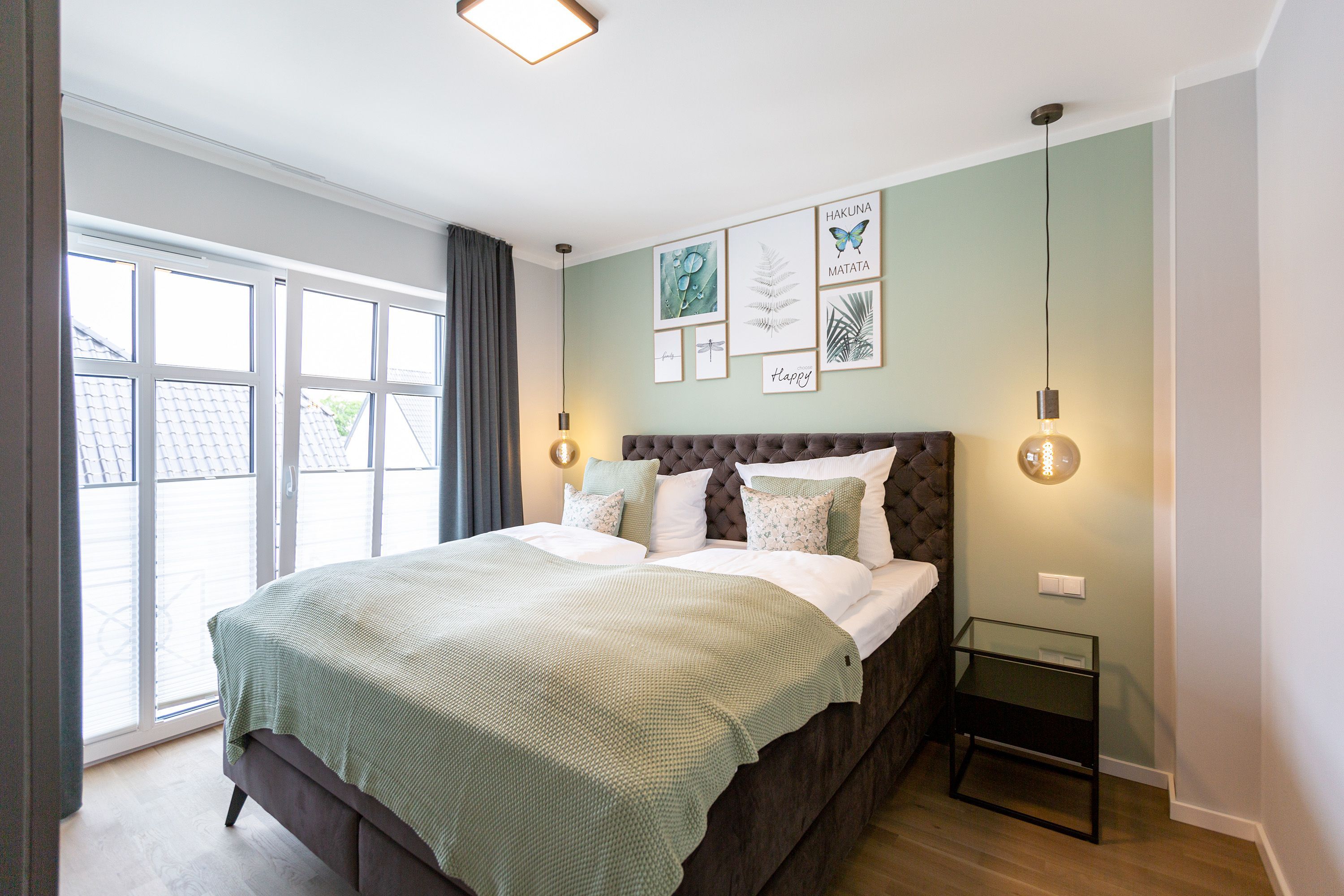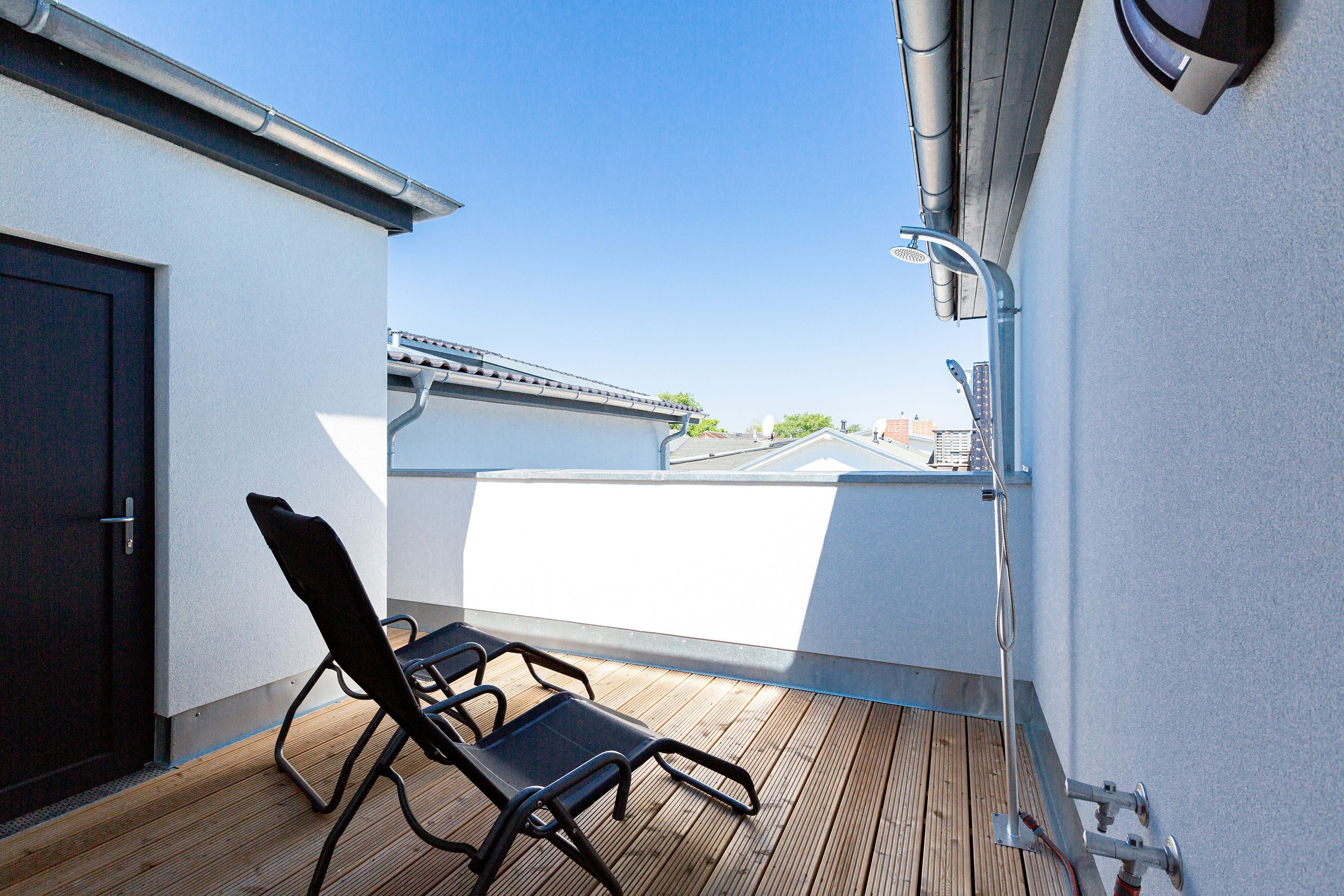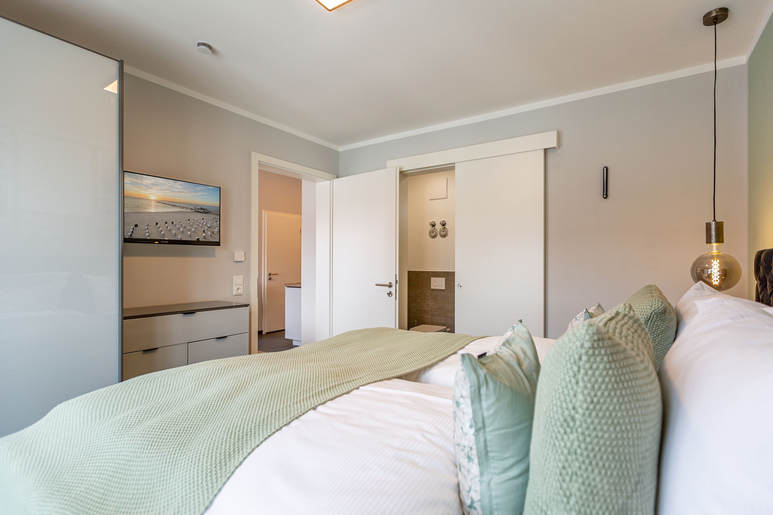 Das Appartement 11 unter dem Dach des Quartiers ist mit seinen 83 luftig hellen Quadratmetern etwas ganz Besonderes. Drei Zimmer für bis zu vier Personen und ein Kleinkind (im Kinderreisebett) finden hier Platz und Ruhe für eine entspannte Ostseezeit. Viel Gemütlichkeit und wohliger Komfort erwartet die Bewohner auf Zeit. Pastelltöne, modernes Design und Wohnkomfort gehen in dieser Wohnung Hand in Hand. Ein geräumiges Wohn-Esszimmer weiß, mit bequemen Möbeln in den richtigen Urlaubsmodus zu versetzen. Eine Sofa-Sessellandschaft, ein Flat-TV, ein schöner, großer Esstisch – alles ist erlesen und ausgewählt. Ein Balkon lädt bei schönem Wetter dazu ein, viel Zeit an der frischen Seeluft zu verbringen - von hier aus hat man einen seitlichen Blick auf die Ostsee und auf die Ahlbecker Seebrücke. Die offene Küche ist voll ausgestattet, verfügt über einen Induktionsherd mit den passenden Töpfen, eine Spülmaschine, einen Toaster, eine Kaffeemaschine und Geschirr. Auch eine Waschmaschine ist vorhanden. Zwei Schlafzimmer laden mit ihren großen Boxspringdoppelbetten (1,80 m x 2,00 m) zum Kuscheln und Träumen ein. Jedes Schlafzimmer hat einen Schrank, eine Kommode und einen Flat-TV. Zwei Bäder mit Dusche und WC sorgen für entspannte Badzeiten. Handtücher liegen bereit und die Betten sind bei Anreise bereits bezogen. Freuen Sie sich dann noch auf einen Extra-Clou. Denn die Wohnung verfügt über eine wunderschöne Dachterrasse mit Sonnenliegen. Hier lässt sich ein Sommertag relaxed angehen. Zudem befindet sich auf der Terrasse der Zugang zu einer Sauna. Ihr kleiner Private SPA verfügt über eine Außendusche. So können Sie direkt aus der Wärme unter das kühle Nass springen. In der Tiefgarage gibt es für Ihr Auto 2 Stellplätze hintereinander und einen separaten Fahrradraum. Das WLAN ist kostenfrei nutzbar.