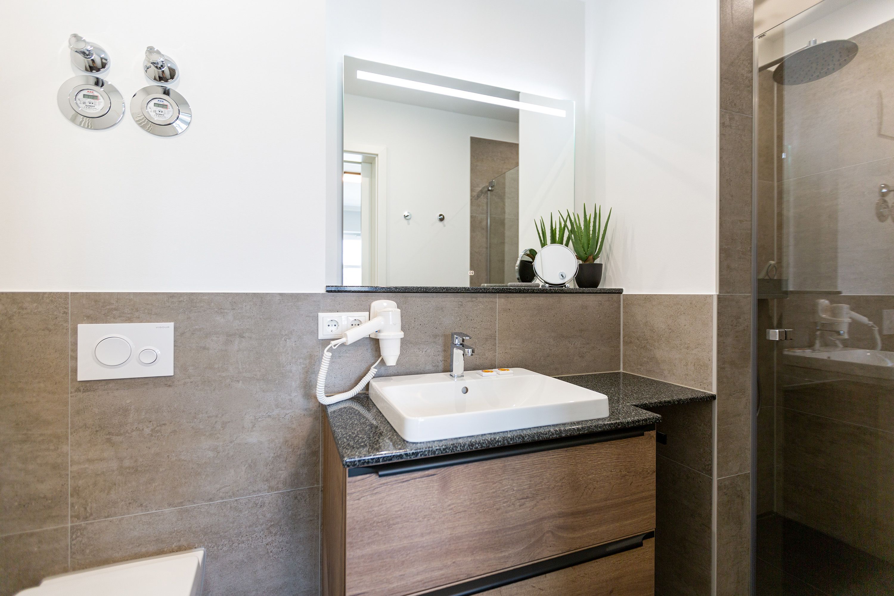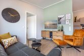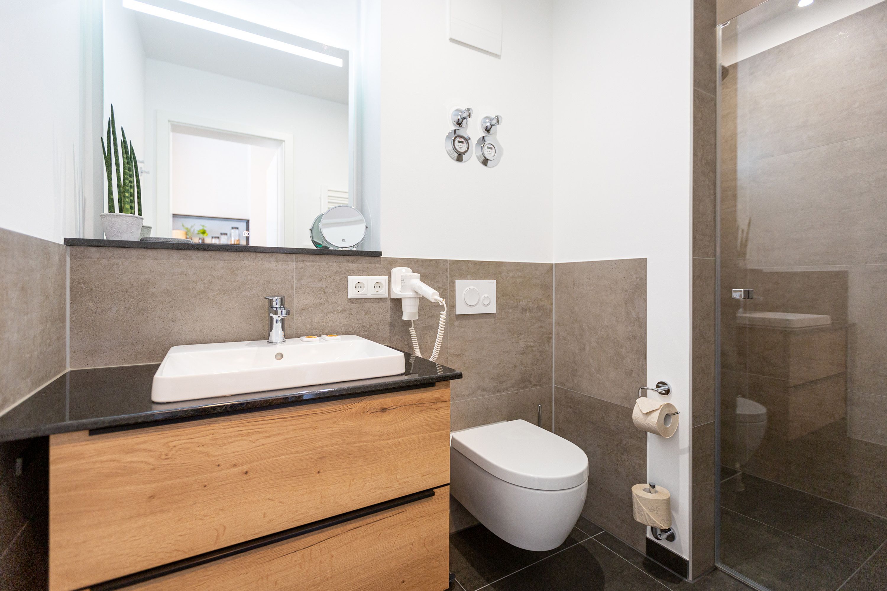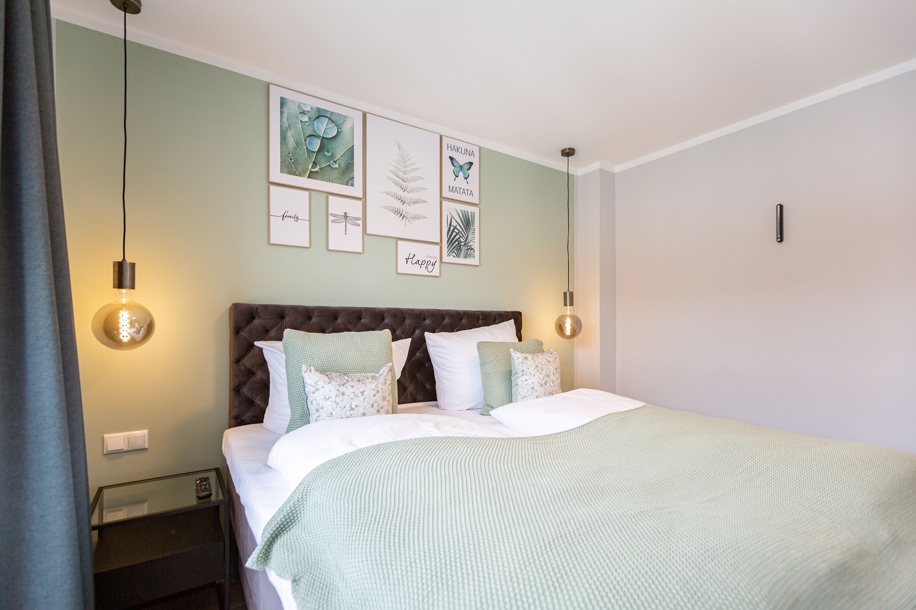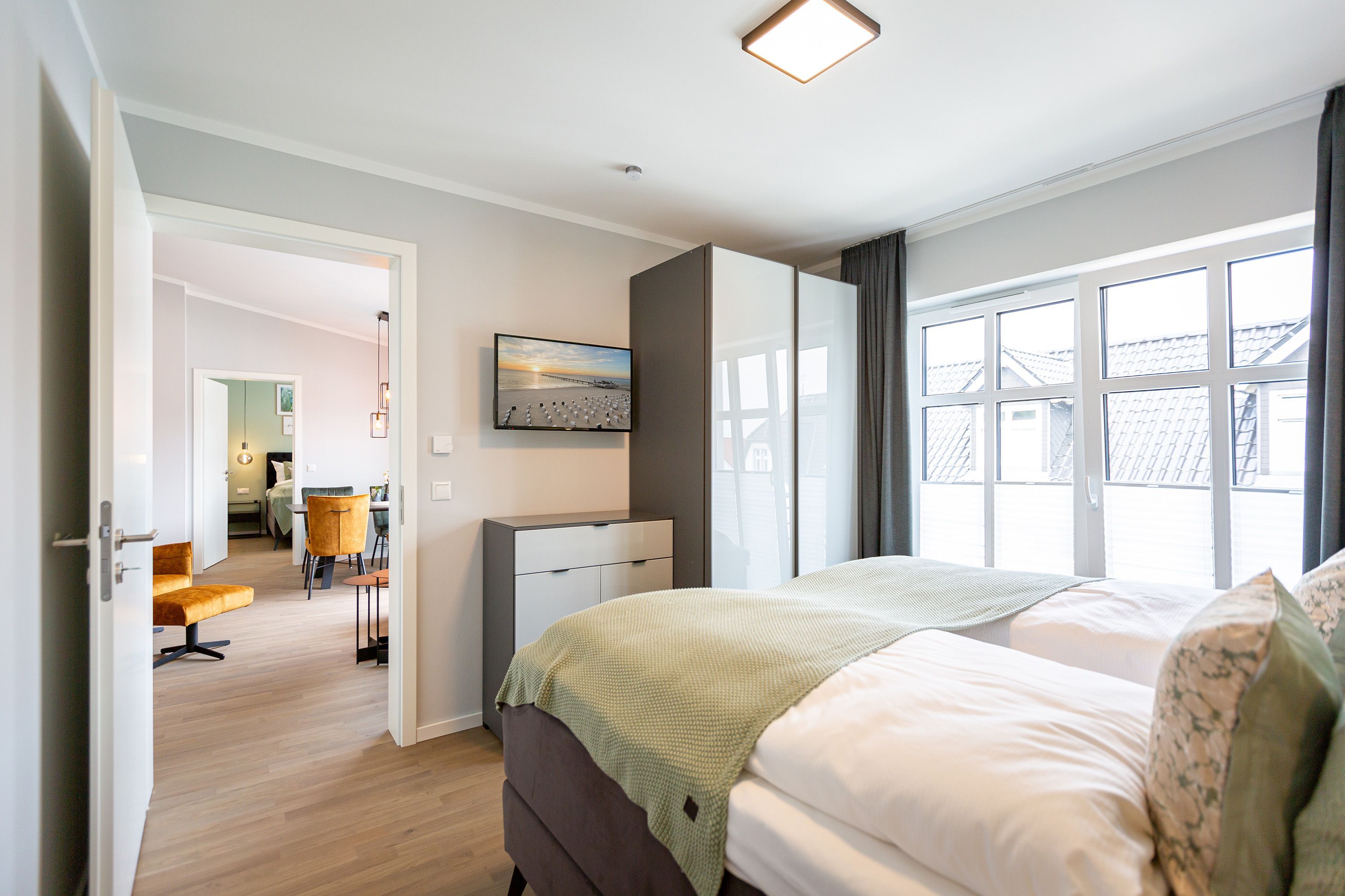 Das Appartement 11 unter dem Dach des Quartiers ist mit seinen 83 luftig hellen Quadratmetern etwas ganz Besonderes. Drei Zimmer für bis zu vier Personen und ein Kleinkind (im Kinderreisebett) finden hier Platz und Ruhe für eine entspannte Ostseezeit. Viel Gemütlichkeit und wohliger Komfort erwartet die Bewohner auf Zeit. Pastelltöne, modernes Design und Wohnkomfort gehen in dieser Wohnung Hand in Hand. Ein geräumiges Wohn-Esszimmer weiß, mit bequemen Möbeln in den richtigen Urlaubsmodus zu versetzen. Eine Sofa-Sessellandschaft, ein Flat-TV, ein schöner, großer Esstisch – alles ist erlesen und ausgewählt. Ein Balkon lädt bei schönem Wetter dazu ein, viel Zeit an der frischen Seeluft zu verbringen - von hier aus hat man einen seitlichen Blick auf die Ostsee und auf die Ahlbecker Seebrücke. Die offene Küche ist voll ausgestattet, verfügt über einen Induktionsherd mit den passenden Töpfen, eine Spülmaschine, einen Toaster, eine Kaffeemaschine und Geschirr. Auch eine Waschmaschine ist vorhanden. Zwei Schlafzimmer laden mit ihren großen Boxspringdoppelbetten (1,80 m x 2,00 m) zum Kuscheln und Träumen ein. Jedes Schlafzimmer hat einen Schrank, eine Kommode und einen Flat-TV. Zwei Bäder mit Dusche und WC sorgen für entspannte Badzeiten. Handtücher liegen bereit und die Betten sind bei Anreise bereits bezogen. Freuen Sie sich dann noch auf einen Extra-Clou. Denn die Wohnung verfügt über eine wunderschöne Dachterrasse mit Sonnenliegen. Hier lässt sich ein Sommertag relaxed angehen. Zudem befindet sich auf der Terrasse der Zugang zu einer Sauna. Ihr kleiner Private SPA verfügt über eine Außendusche. So können Sie direkt aus der Wärme unter das kühle Nass springen. In der Tiefgarage gibt es für Ihr Auto 2 Stellplätze hintereinander und einen separaten Fahrradraum. Das WLAN ist kostenfrei nutzbar.