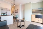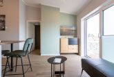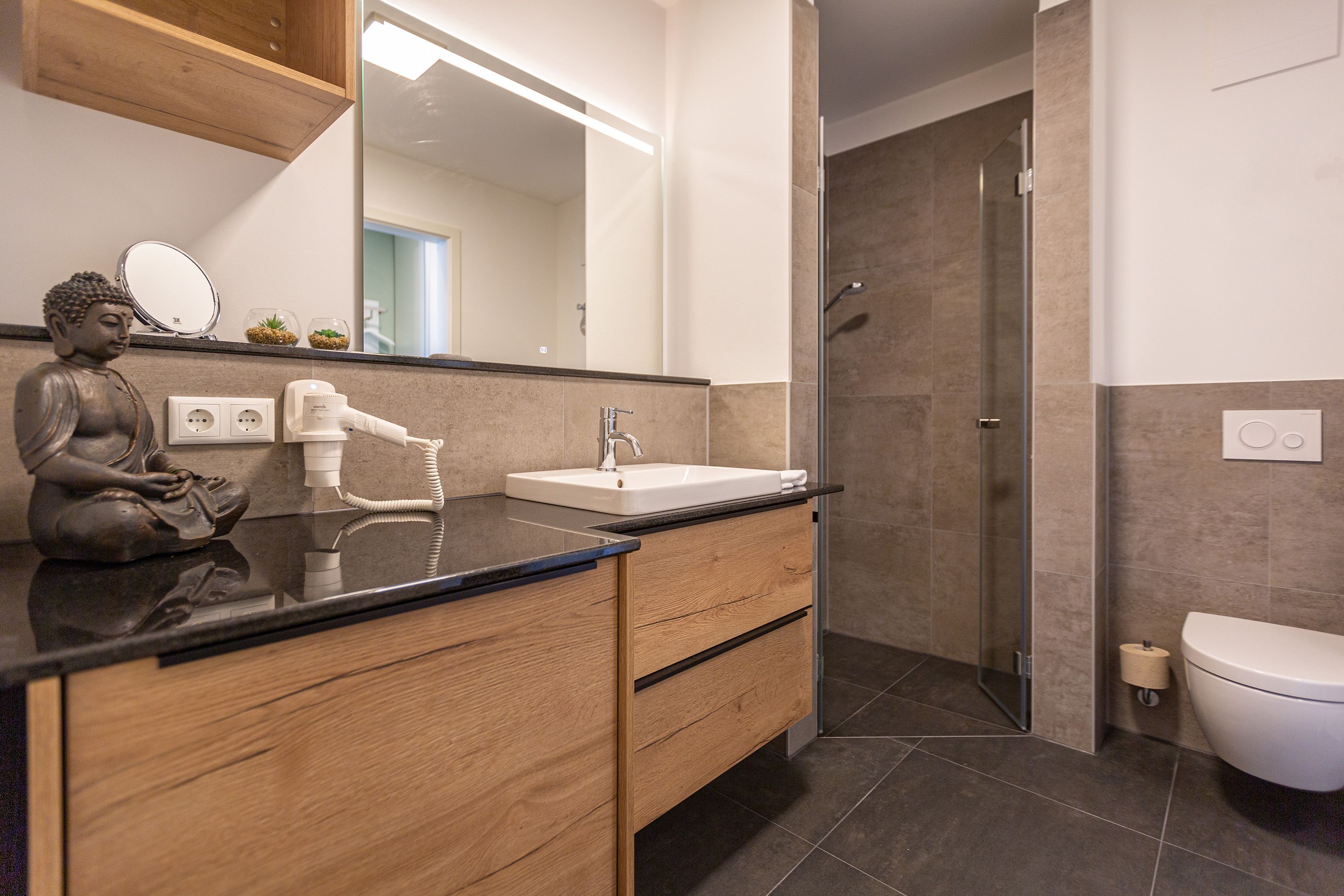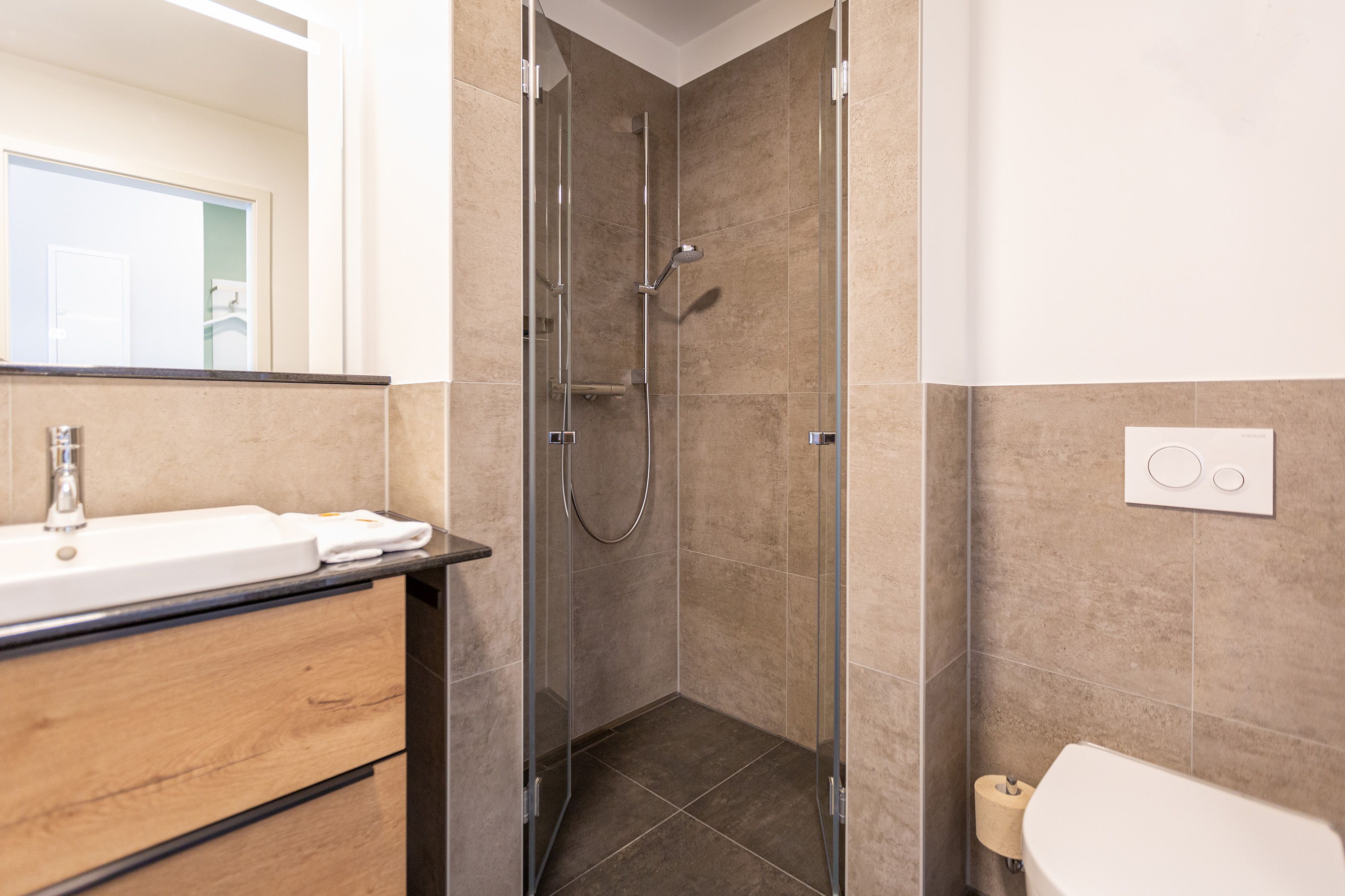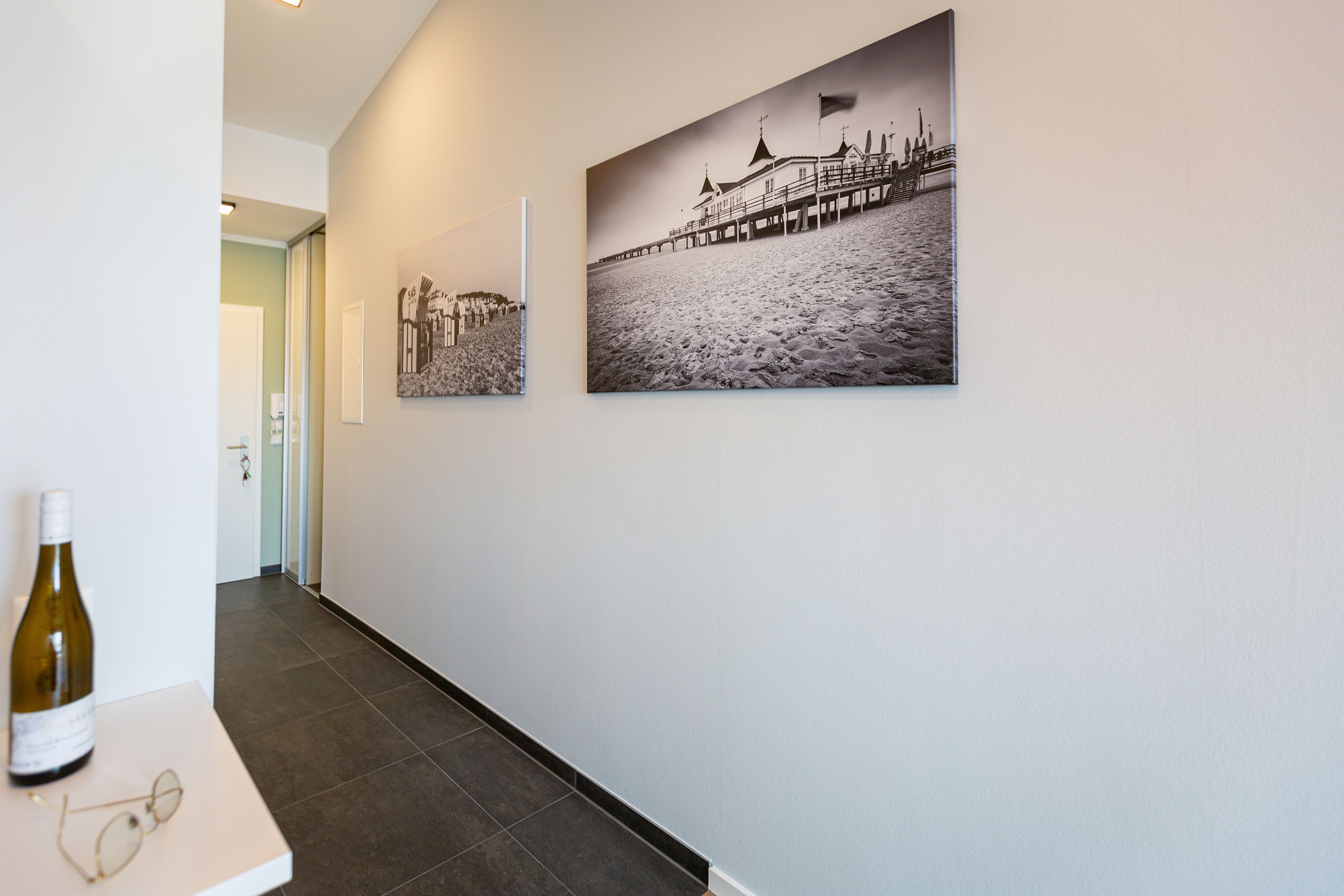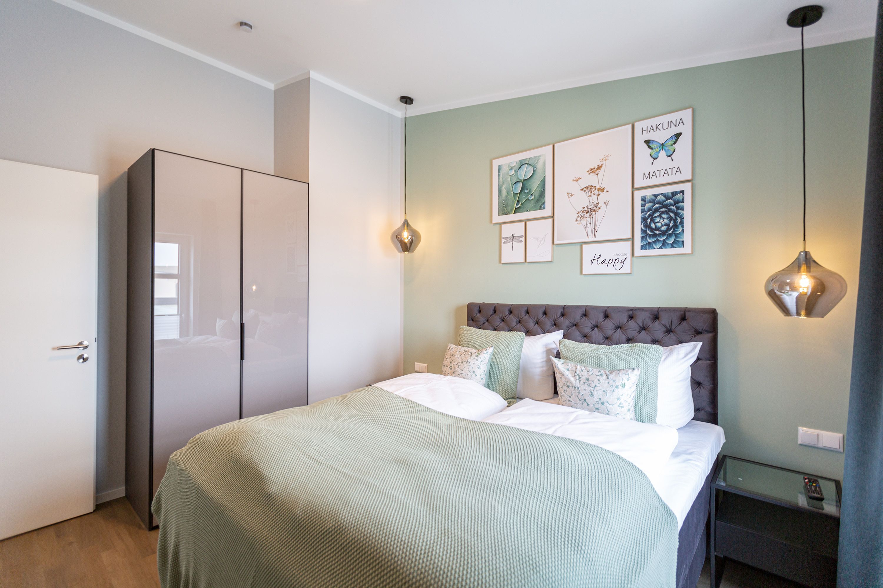 Klein, aber fein und absolut kuschelig ist dieses 46 Quadratmeter große Zwei-Raum-Appartement für zwei Personen direkt unter dem Dach im 3. Obergeschoss des Quartiers Frohsinn. Wer sich zu zweit oder auch allein mal in aller Ruhe für eine Auszeit an der Ostsee in ein wunderschönes Ambiente zurückziehen möchte, findet hier ein kleines Wohlfühlparadies vor. Der Blick vom sonnigen Balkon (8 Quadratmeter groß) mit Gartenmöbeln und Liegestuhl offeriert einen traumhaften Blick über die Dächer des altehrwürdigen Seebades. Das Wohnzimmer ist dank der großen Fenster hell und freundlich. Kuscheln Sie bei einem spannenden Film auf dem Flat-TV auf der Ledercouch oder lassen Sie es sich am gemütlichen Essplatz gut gehen. Eine offene Küchenzeile bietet alles Nötige zum Kochen, Backen und Zubereiten. Ihnen stehen hochwertige Markengeräte wie ein Induktionsherd, eine Spülmaschine, ein Kühlschrank mit Gefrierfach, edles Geschirr und vieles mehr zur Verfügung. Modernes Design durchzieht jeden Winkel dieser schönen Wohnung. Auch das Schlafzimmer ist modern mit einem bequemen Boxspringdoppelbett (1,60 m x 2,00 m), einem Schrank, einer Kommode und ebenfalls mit einem Flat-TV eingerichtet. Das Bett ist bei Ihrer Anreise schon bezogen und das WLAN können Sie kostenfrei nutzen. Das Bad mit Dusche, Waschtisch und WC ist geräumig und hält eine kleine Überraschung bereit. Hier können Sie in der Finnischen Sauna so richtig aus- und entspannen. Handtücher liegen natürlich für das Wellness-Vergnügen sowie für Ihren Aufenthalt bereit. In der Tiefgarage gibt es einen Stellplatz für Ihr Auto und einen separaten Raum für Fahrräder.