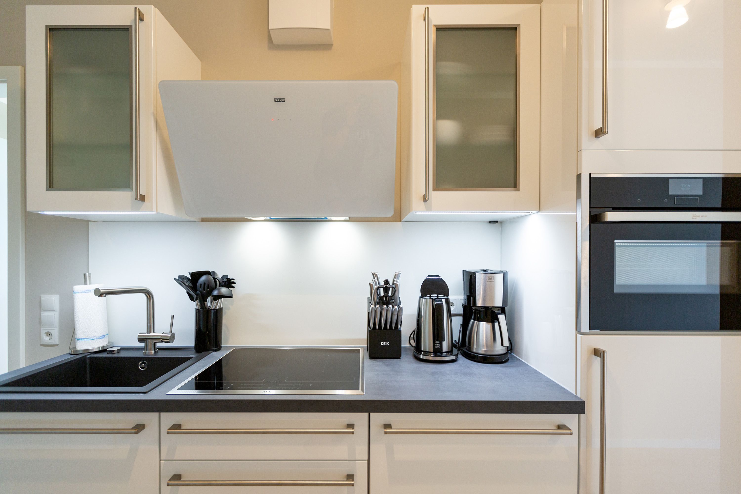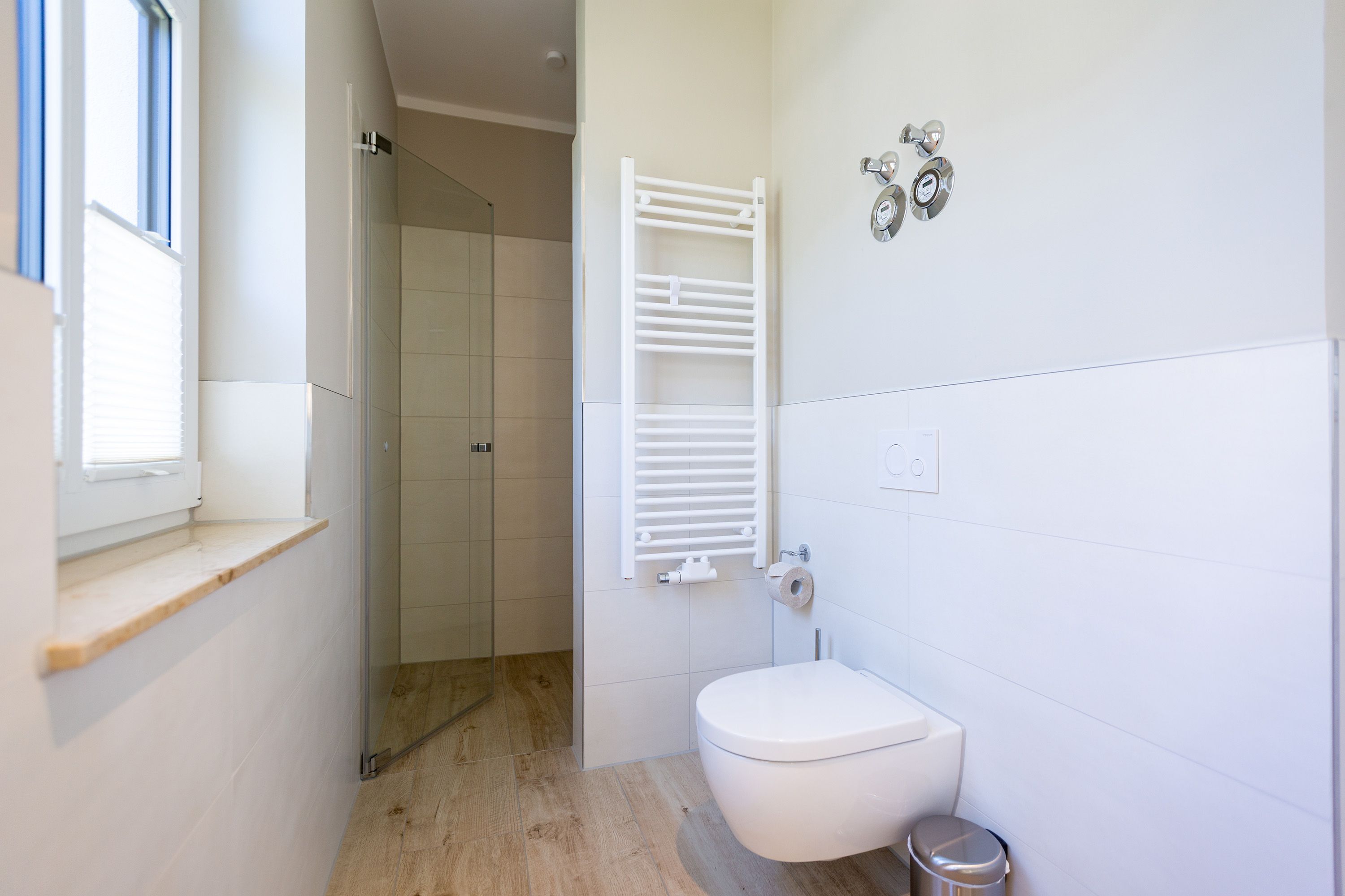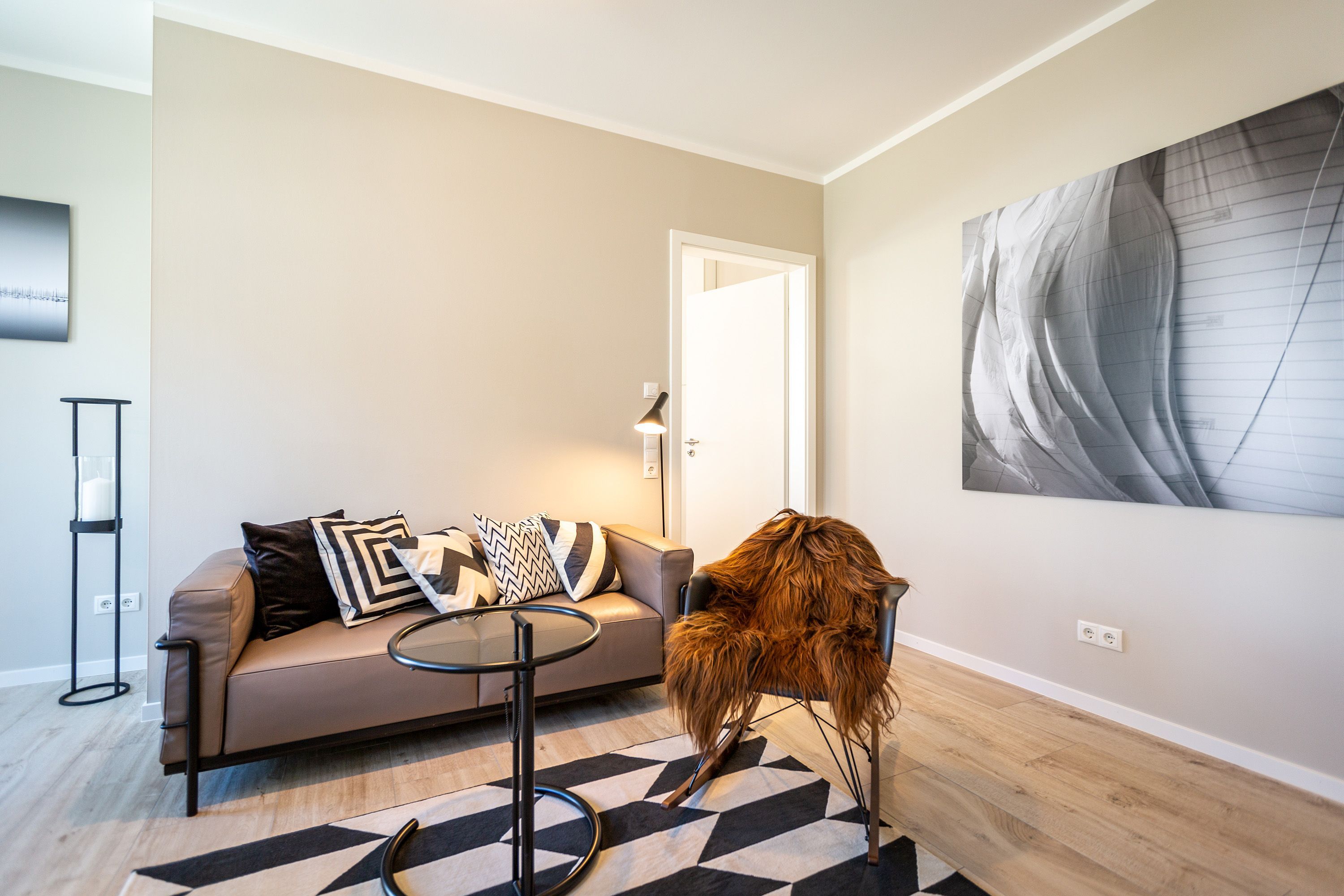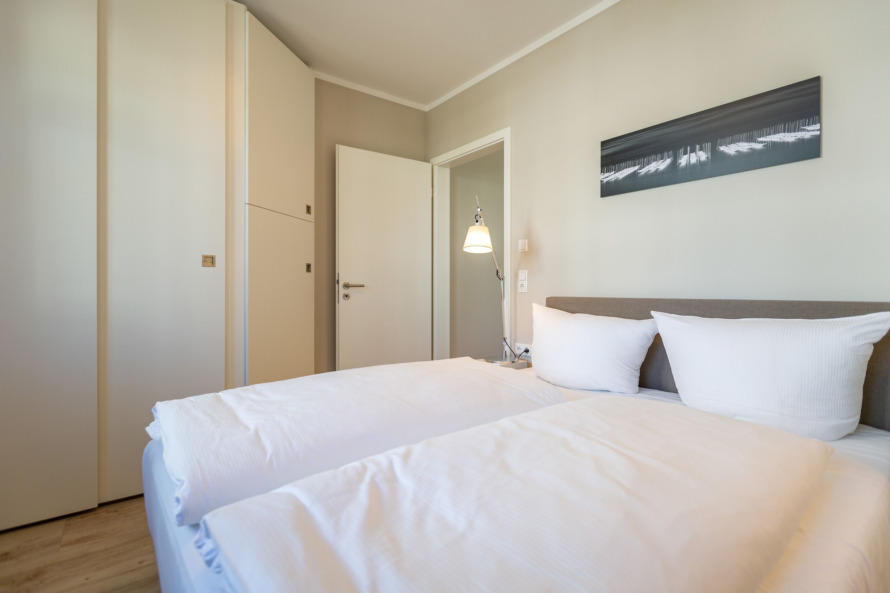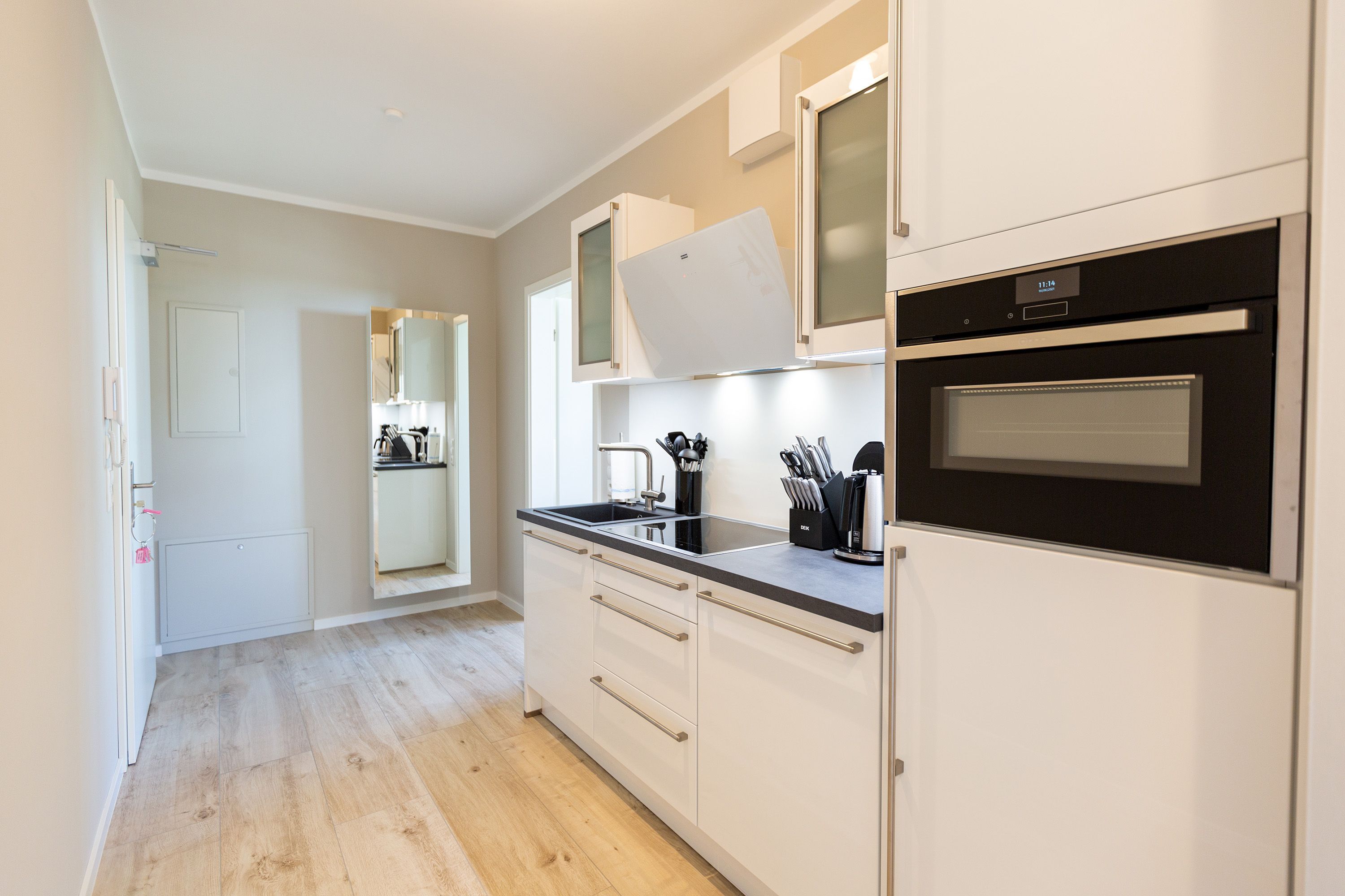 Dieses kleine, aber feine Design-Appartement für zwei Personen mit Kleinkind (im Kinderreisebett) ist das perfekte Erholungsrefugium für alle, die es gern schick, modern und stylisch mögen. Auch Ihren geliebten Vierbeiner dürfen Sie hier mitbringen. Wohlfühlen auf 50 Quadratmetern ist hier garantiert. Da sich das Appartement im Erdgeschoss befindet, hat es Zugang zu einer natürlich nur für Sie reservierten und zur Wohnung gehörenden Sonnenterasse mit Strandkorb und Gartenmöbeln. Mitten im Grün und umgeben von wunderschönen Bädervillen können Sie hier eine entspannte Zeit beim Essen oder Sonnenbaden genießen. Das Wohnzimmer dieses Zwei-Raum-Appartements ist modern und elegant mit ausgesuchten Design-Möbeln eingerichtet. Die Cassina Couch nach dem berühmten Design von Le Corbusier, aber auch der Schalen-Schaukelstuhl eignen sich perfekt zum Runterkommen und Faulenzen. Ein großer Flat TV (50 Zoll) sorgt für Unterhaltung. An kühlen Inseltagen wärmt der Kaminofen und sorgt für eine gemütliche und romantische Atmosphäre. Die an das Wohnzimmer angrenzende Küche ist mit hochwertigen Markengeräten voll ausgestattet. Ob Qualitätsmesser-Set, Induktionsherd, Senseo Padmaschine, Geschirrspüler oder das Geschirr selbst hier werden Sie alles zu Ihrer Zufriedenheit vorfinden. Kochen macht mit diesem Equipment sogar im Urlaub Spaß. Im Wohnzimmer befindet sich zudem ein schöner Essplatz. Im Schlafzimmer wartet viel Gemütlichkeit mit einem bequemen Boxspringdoppelbett (1,60 m x 2,00 m) auf Sie. Viel Platz für die Urlaubsgarderobe bietet der eigens angefertigte Einbauschrank. Das Bad hat Tageslicht und verfügt über eine Regendusche und ein WC. Bei Anreise sind die Betten bezogen und Handtücher liegen für Sie bereit. In der Tiefgarage gehört zu der Wohnung 4a ein Stellplatz. Ein separater Fahrradraum ist im Keller ebenfalls vorhanden.