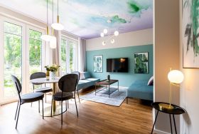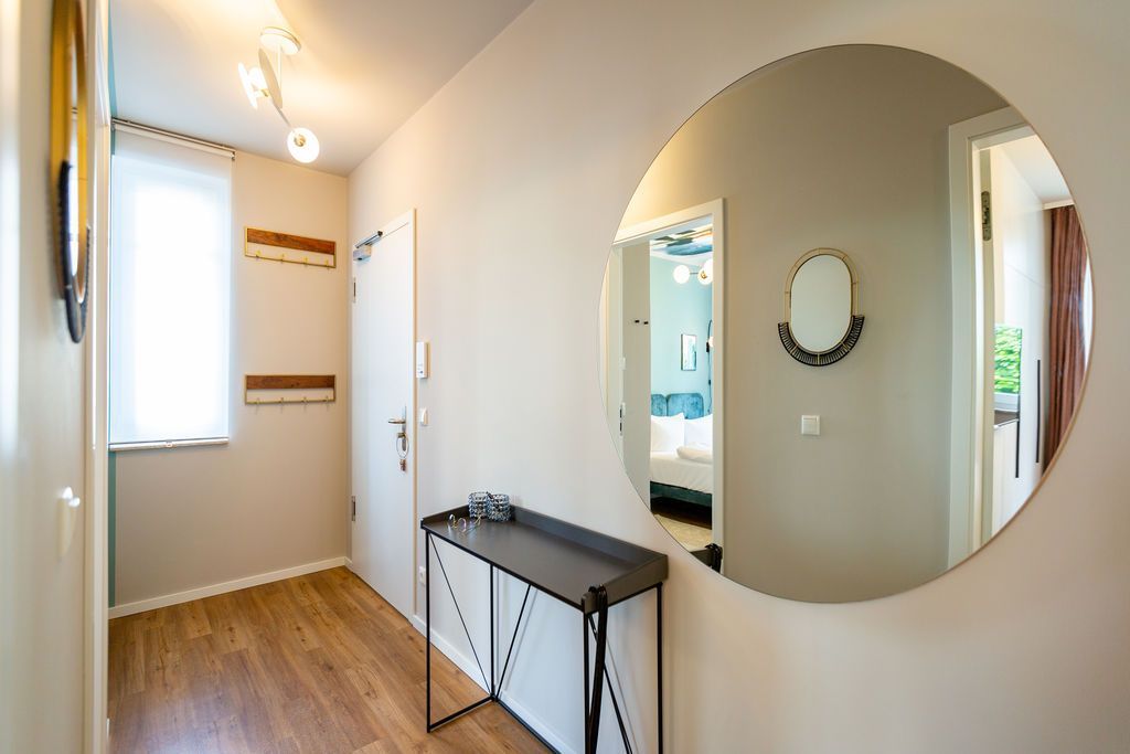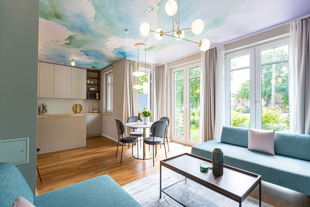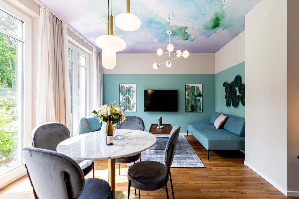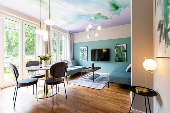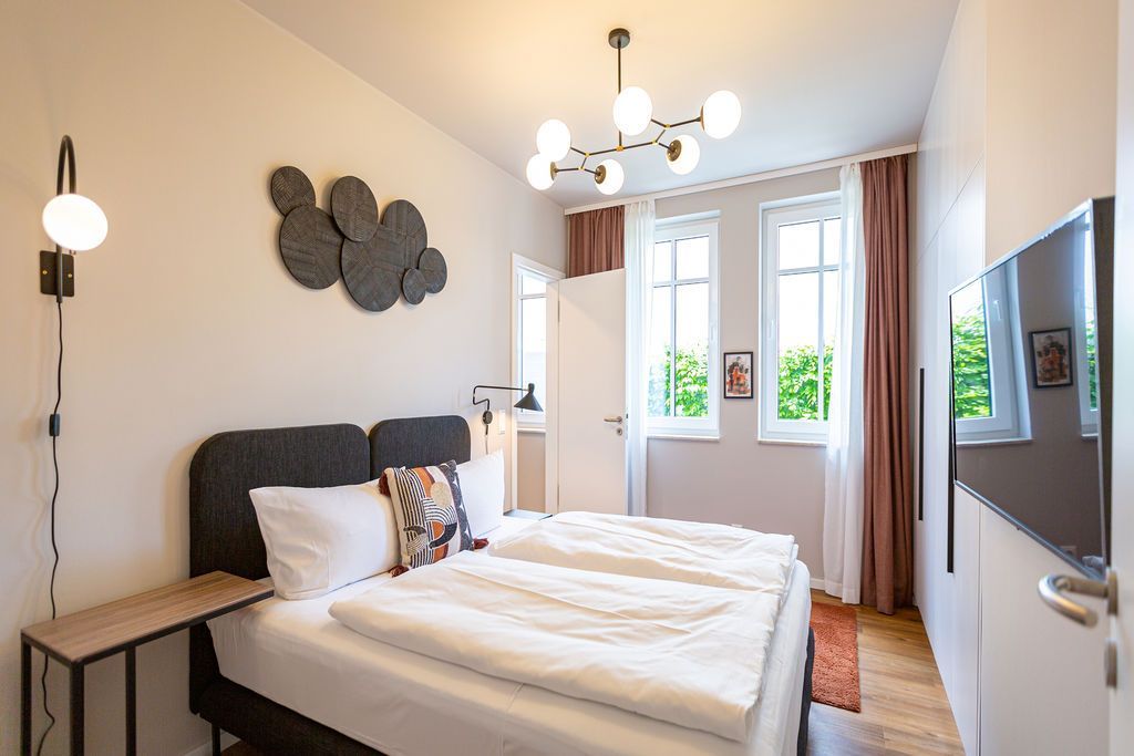 Urlaub mit Stil - Umgeben von wunderschönen, alten Bädervillen und mitten im Zentrum des Seebades Ahlbeck gelegen, befindet sich das neu gebaute Strandhaus nur einen Steinwurf weit vom feinen Sandstrand entfernt. 2021 erst fertig gestellt, bietet das Ferienareal mit seinen Appartements allen Urlaubs- und Wohnkomfort, den man sich für eine entspannte Ostsee-Auszeit nur wünschen kann. Die Nähe zum Strand und zur Promenade ist ideal. An manchen Tagen ist das Meeresrauschen bis hierher hörbar. Direkt vor der Haustür befindet sich der Kurpark mit dem Ahlbecker Rathaus. Selbst ein Stückchen neue Bäderarchitektur fügt sich der elegante Neubau wunderbar in seine Umgebung ein. Und so umweht das Feriendomizil das Flair der mondänen Kaiserzeit. Die Appartements sind großzügig geschnitten, luftig und hell und modern eingerichtet. Mit viel Liebe zum Detail wurde auf hochwertige Möbel und Accessoires geachtet. Vollausgestattete Küchen gehören ebenso zum Interieur wie komfortable Betten und ein stylisches Wohnraum-Design. Zudem hat jedes Appartement einen Stellplatz. Freuen Sie sich auf ein außergewöhnliches Domizil, aus dem Sie am liebsten gar nicht wieder ausziehen wollen. Erholung finden Sie hier ganz sicher.