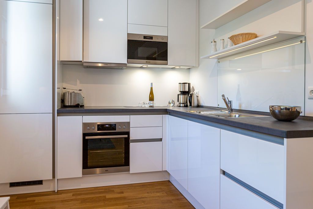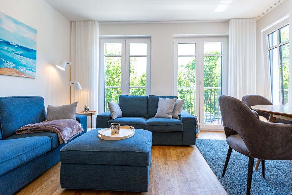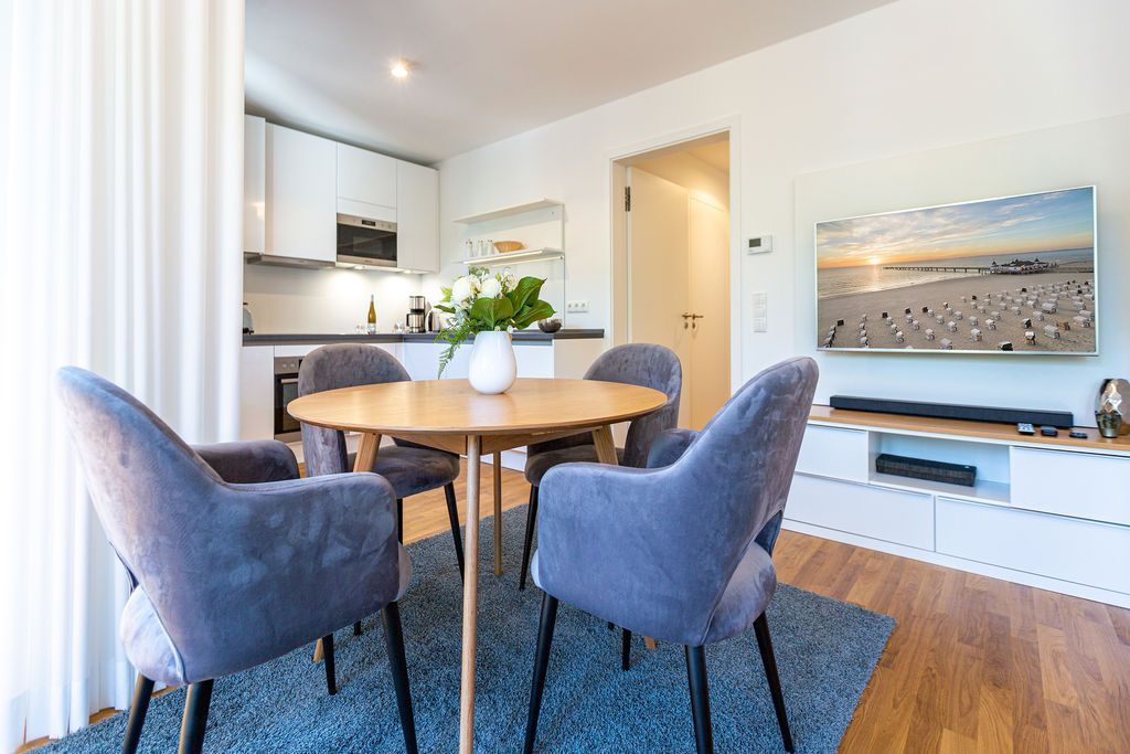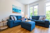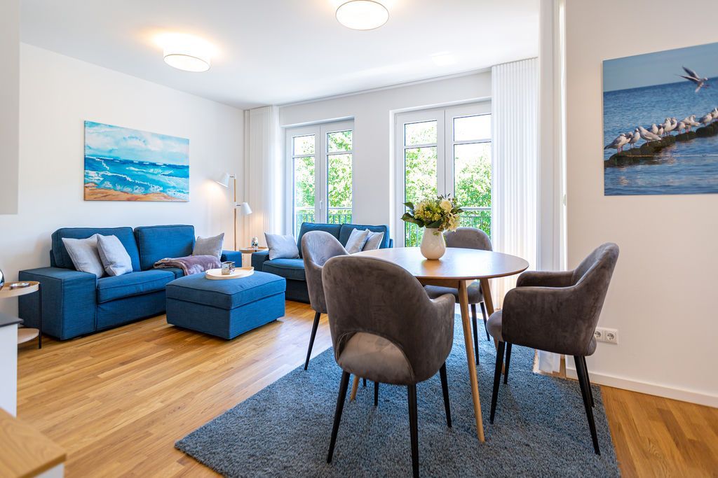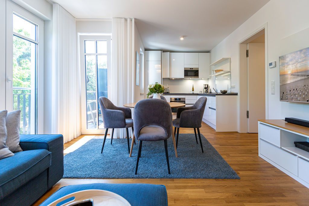 Urlaub mit Stil - Umgeben von wunderschönen, alten Bädervillen und mitten im Zentrum des Seebades Ahlbeck gelegen, befindet sich das neu gebaute Strandhaus nur einen Steinwurf weit vom feinen Sandstrand entfernt. 2021 erst fertig gestellt, bietet das Ferienareal mit seinen Appartements allen Urlaubs- und Wohnkomfort, den man sich für eine entspannte Ostsee-Auszeit nur wünschen kann. Die Nähe zum Strand und zur Promenade ist ideal. An manchen Tagen ist das Meeresrauschen bis hierher hörbar. Direkt vor der Haustür befindet sich der Kurpark mit dem Ahlbecker Rathaus. Selbst ein Stückchen neue Bäderarchitektur fügt sich der elegante Neubau wunderbar in seine Umgebung ein. Und so umweht das Feriendomizil das Flair der mondänen Kaiserzeit. Die Appartements sind großzügig geschnitten, luftig und hell und modern eingerichtet. Mit viel Liebe zum Detail wurde auf hochwertige Möbel und Accessoires geachtet. Vollausgestattete Küchen gehören ebenso zum Interieur wie komfortable Betten und ein stylisches Wohnraum-Design. Zudem hat jedes Appartement einen Stellplatz. Freuen Sie sich auf ein außergewöhnliches Domizil, aus dem Sie am liebsten gar nicht wieder ausziehen wollen. Erholung finden Sie hier ganz sicher.